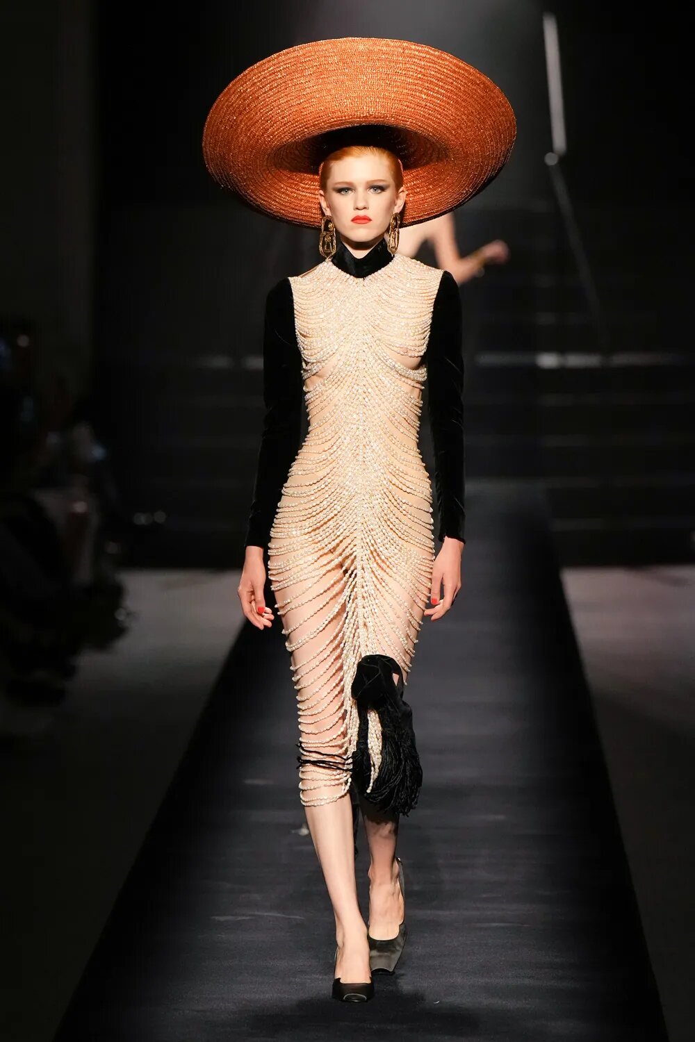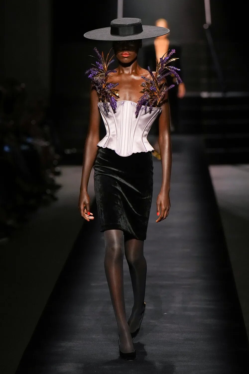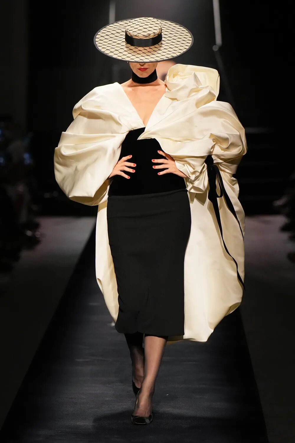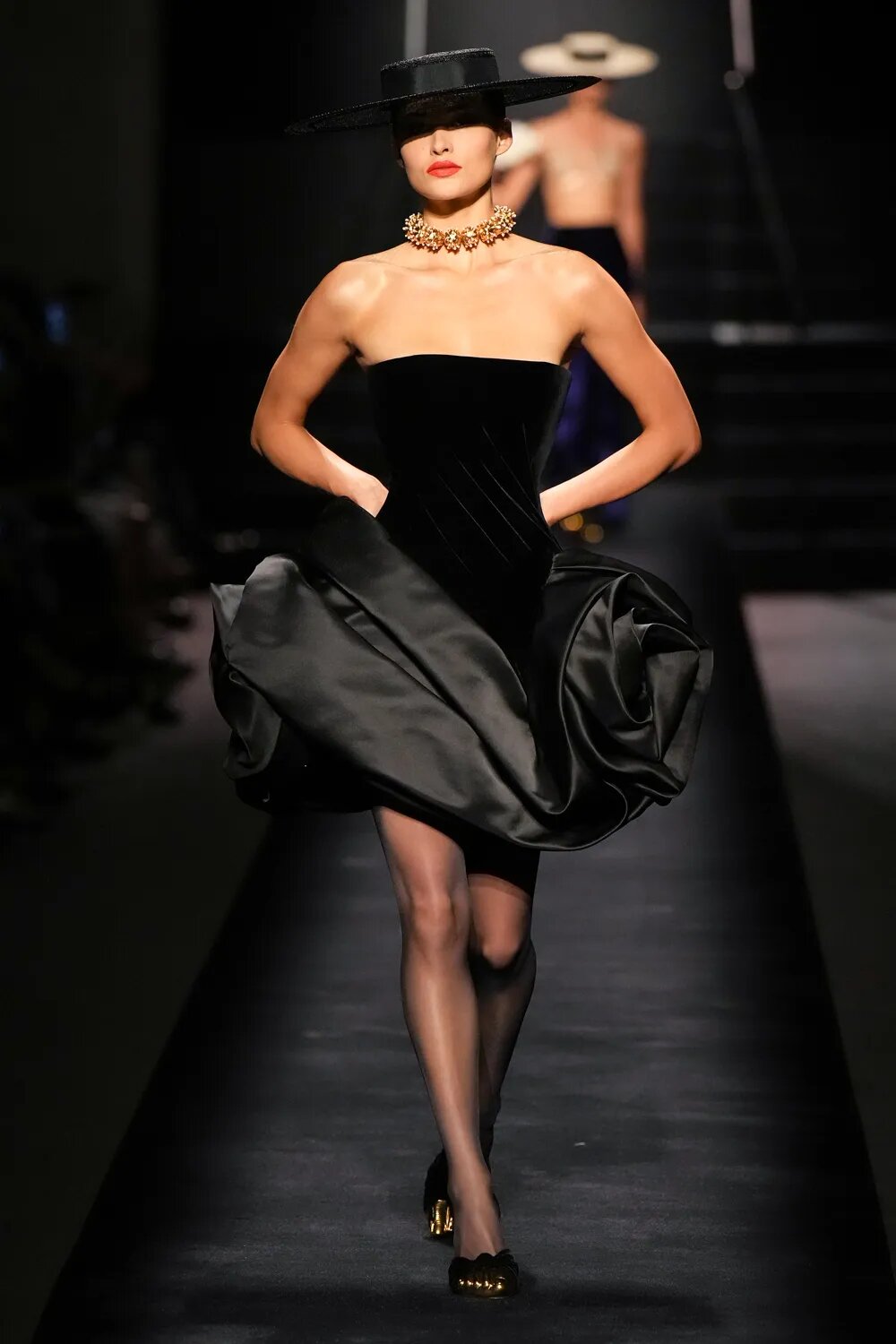 Капелюхи, які так полюбляла Ельза Скіапареллі, стали одним з акцентів кутюрної колекції. Широкі поля — забута деталь, яку ми знову будемо бачити на червоних доріжках. Від соломи до фетру — капелюхи підкреслюють рокову витонченість луків Schiaparelli.