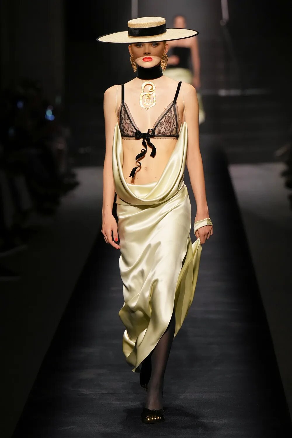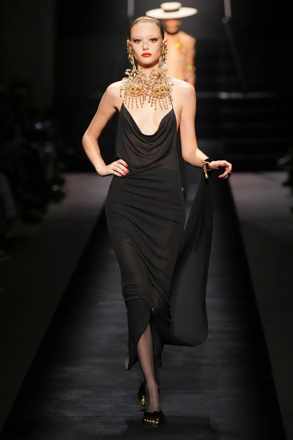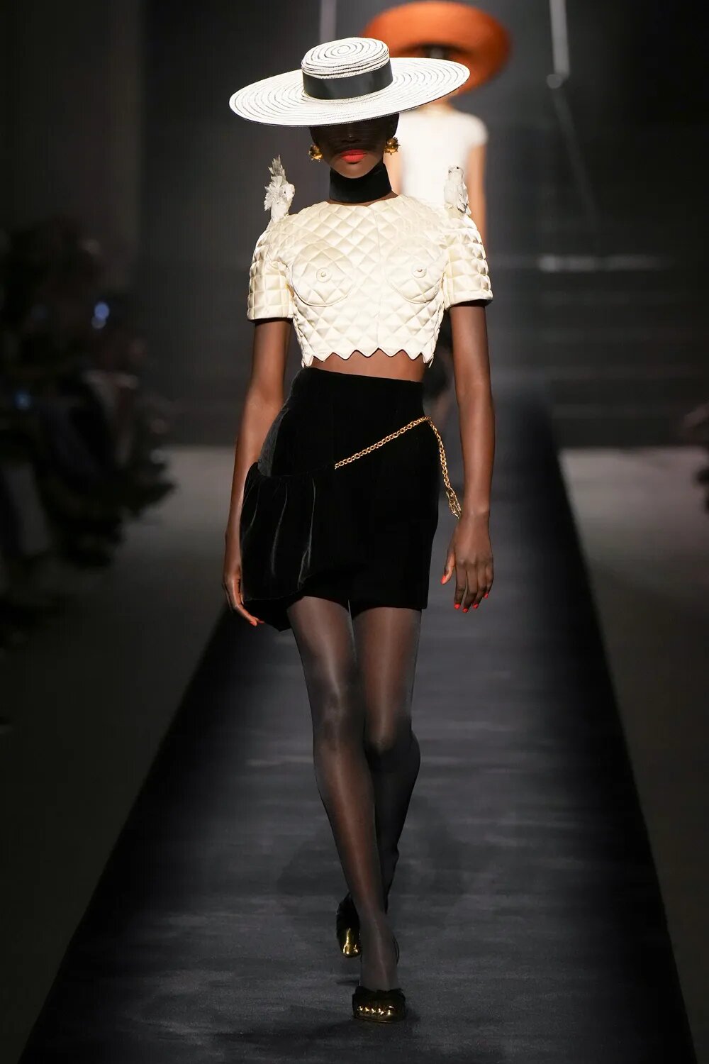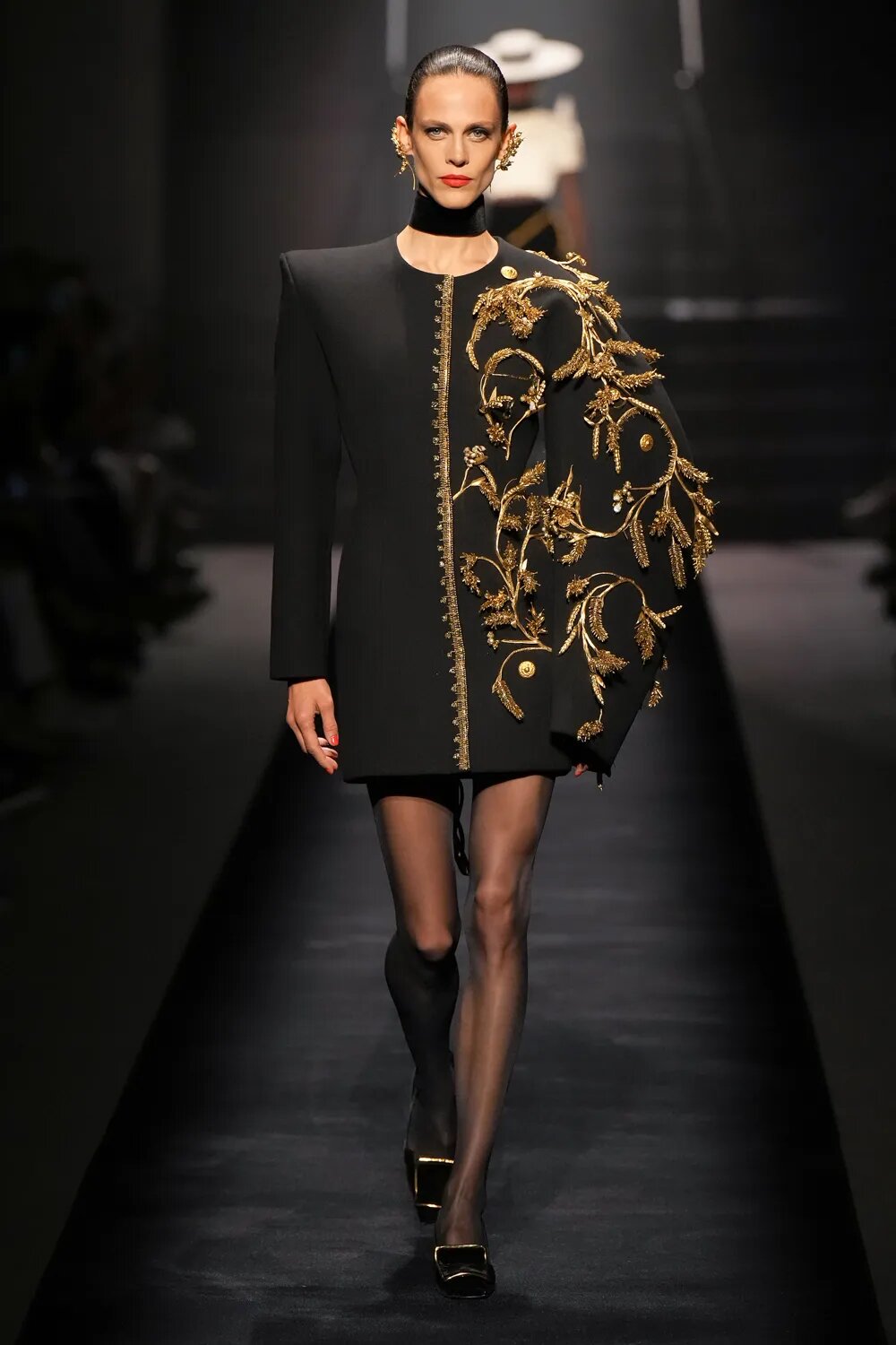 Капелюхи, які так полюбляла Ельза Скіапареллі, стали одним з акцентів кутюрної колекції. Широкі поля — забута деталь, яку ми знову будемо бачити на червоних доріжках. Від соломи до фетру — капелюхи підкреслюють рокову витонченість луків Schiaparelli.