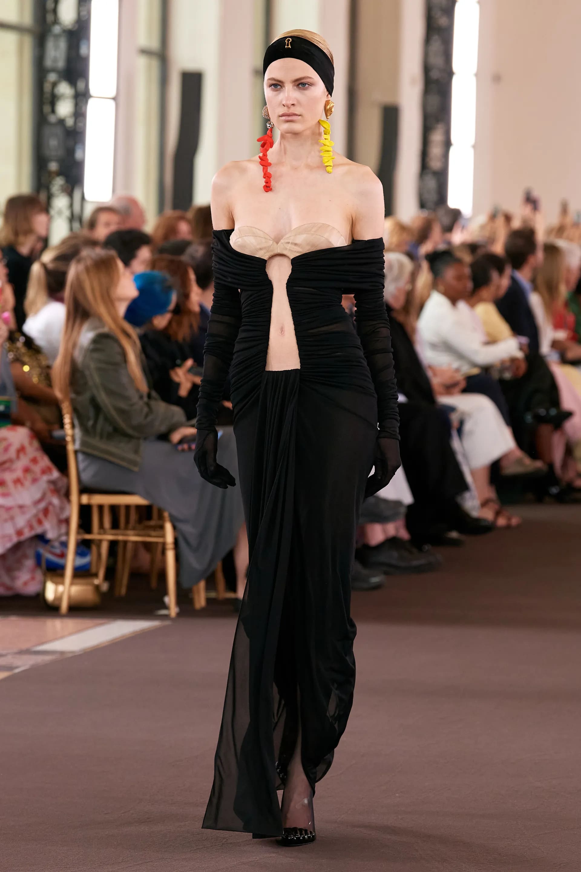 Креативний директор Schiaparelli повертається до історичної співпраці бренду з митцями: у яскравих луках містяться пасхальні яйця, які відсилають нас до творчості французького художника Анрі Матісса, абстракціоніста-новатора й прихильника голубого монохрому Іва Кляйна та британського митця Люсьєна Фрейда (так, його дідусь — Зигмунд).