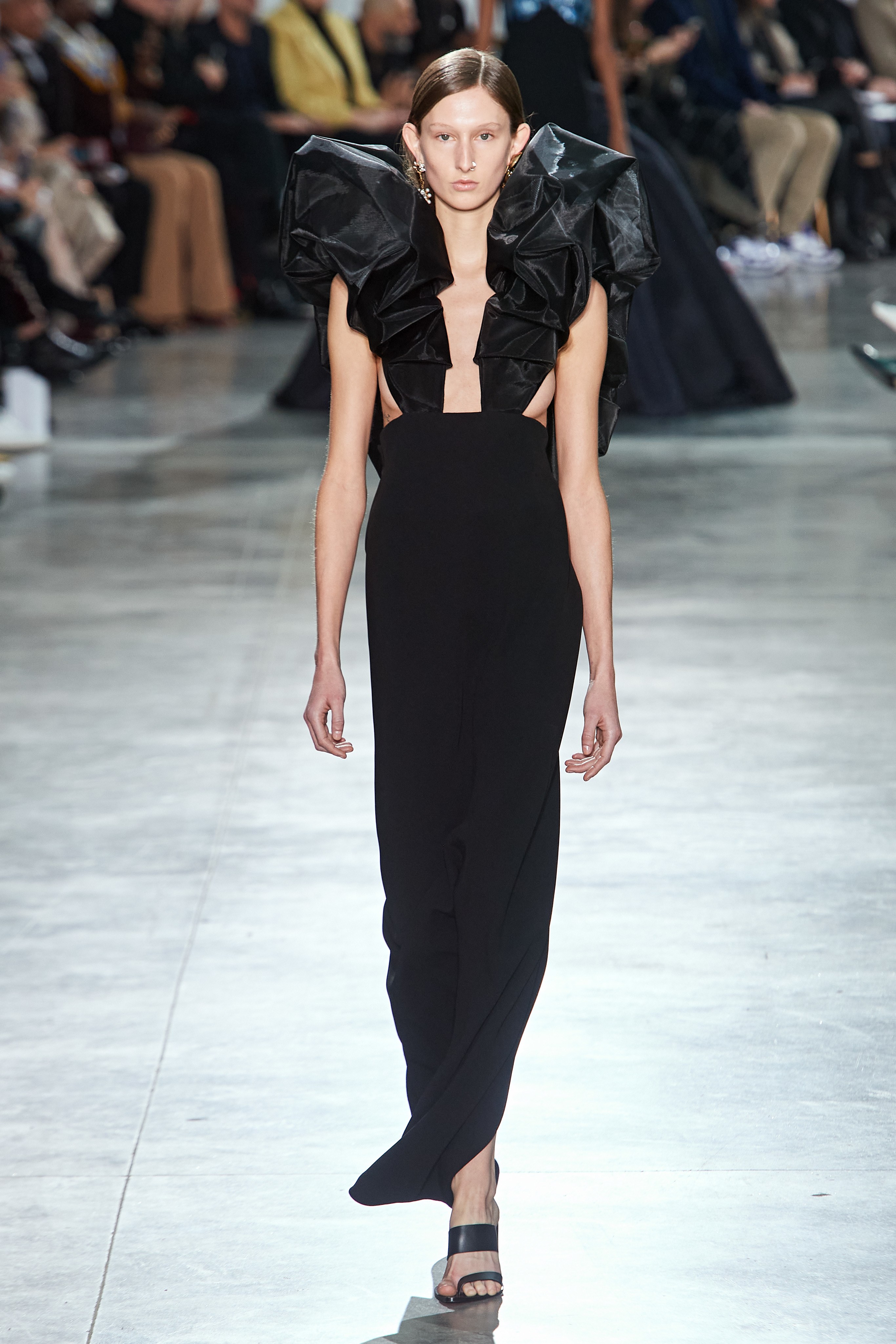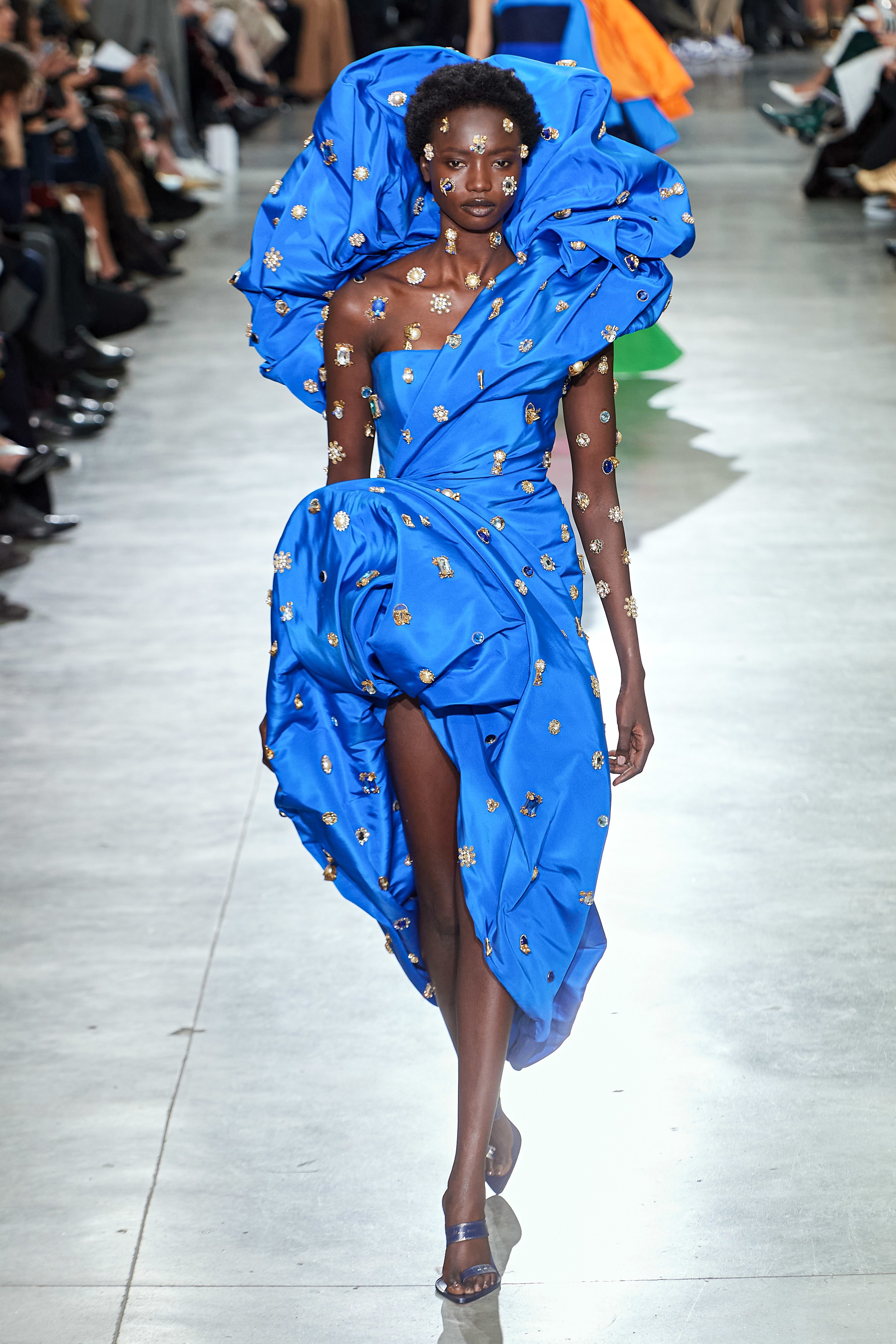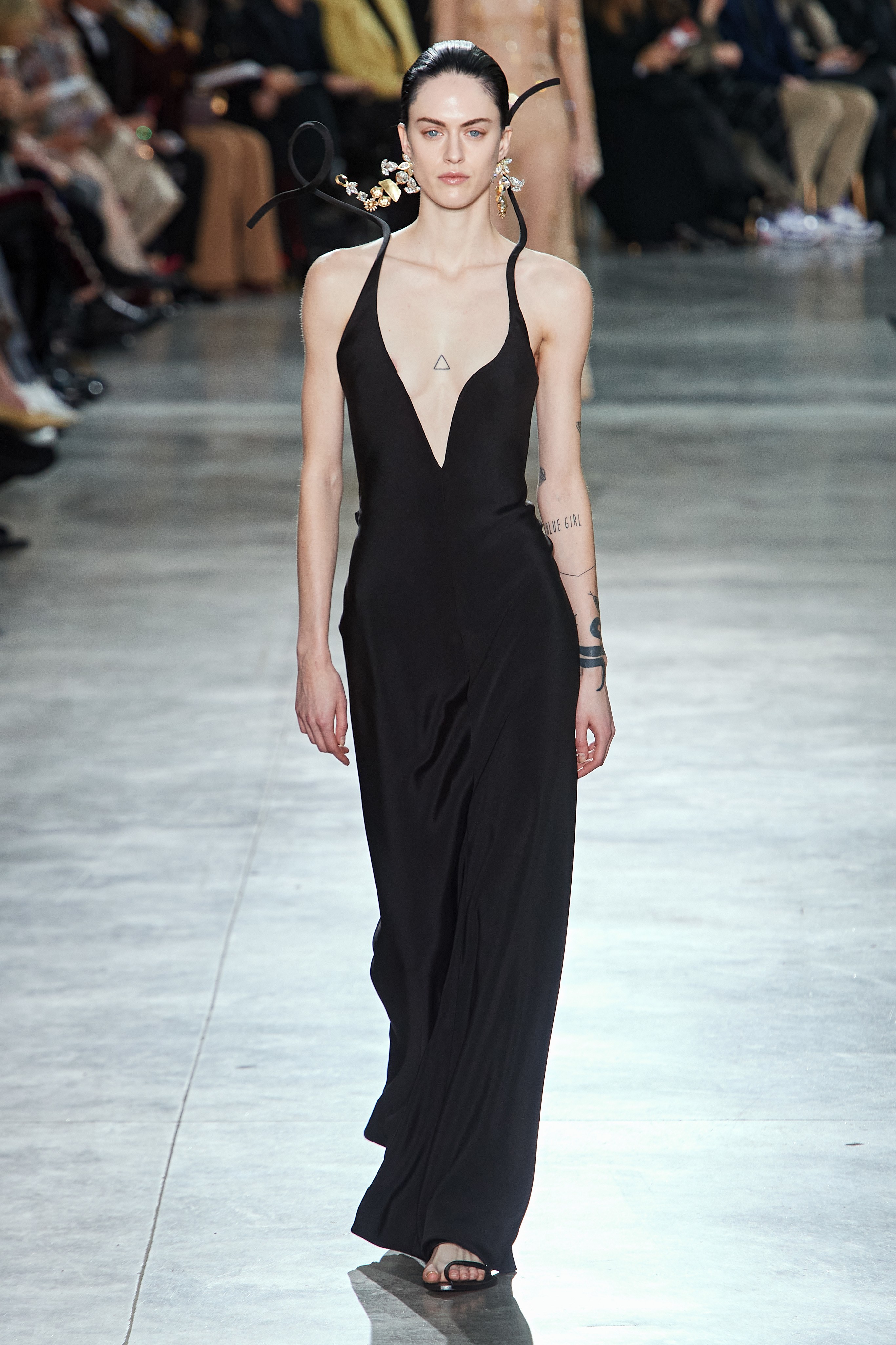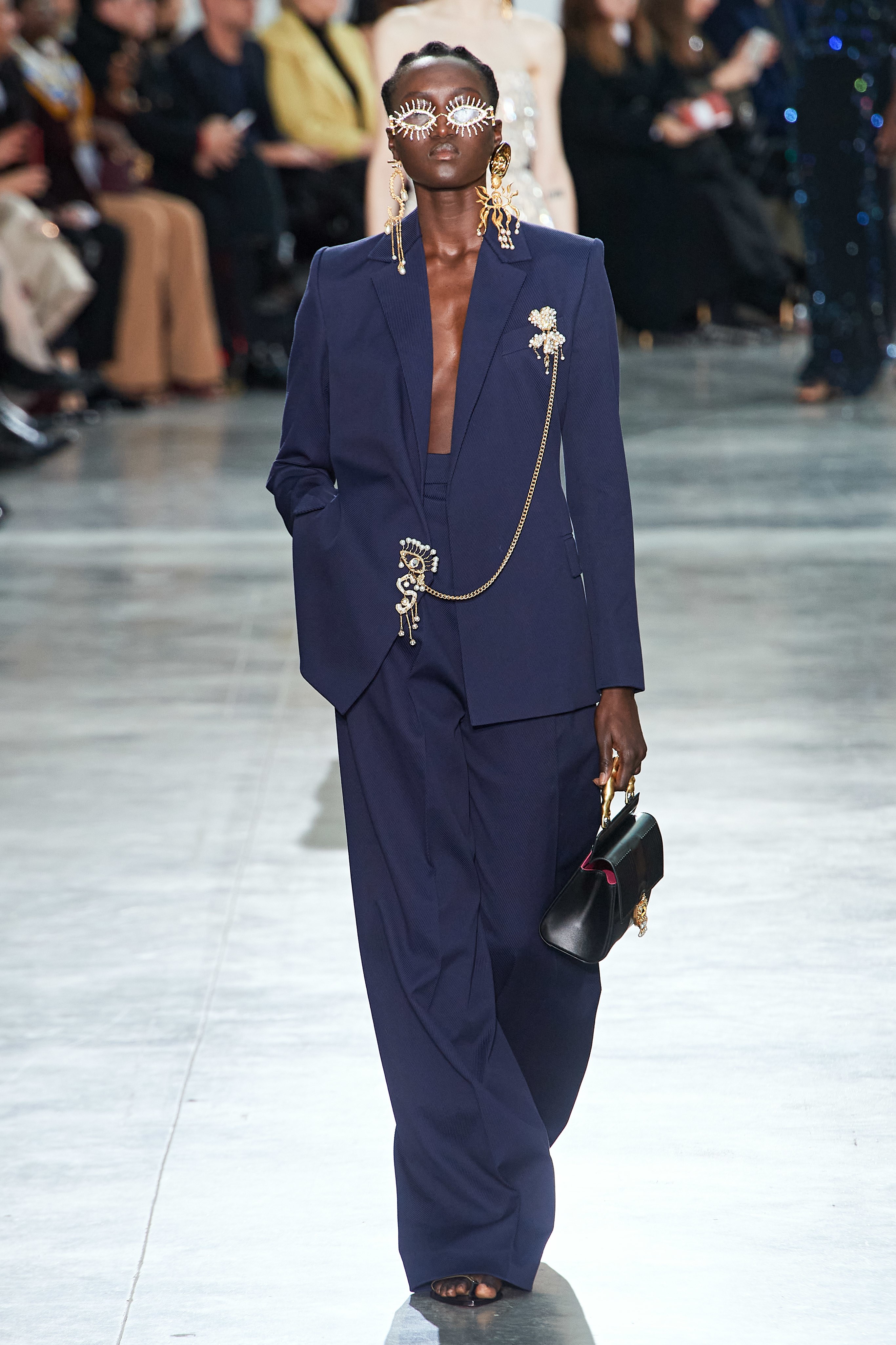 В Токийском дворце, неподалеку от площади Трокадеро в Париже, прошел кутюрный показ Schiaparelli сезона весна-лето — 2020. На создание деталей коллекции у мастеров дома ушли десятки часов ручного труда. Так, блестящие перчатки с накладными ногтями изготавливали в течение 2 дней, 17 часов и 57 минут, а колье из жемчуга и золота — в течение 2 дней, 20 часов и 35 минут. Дизайнер Дэниел Розберри дебютировал в качестве креативного директора бренда в прошлом году и продолжает работу над коллекциями, препарируя архивные модели и эстетику Schiaparelli. Эталонный сюрреализм Эльзы Скиапарелли обрел современное звучание и актуальную элегантность в исполнении Розберри.