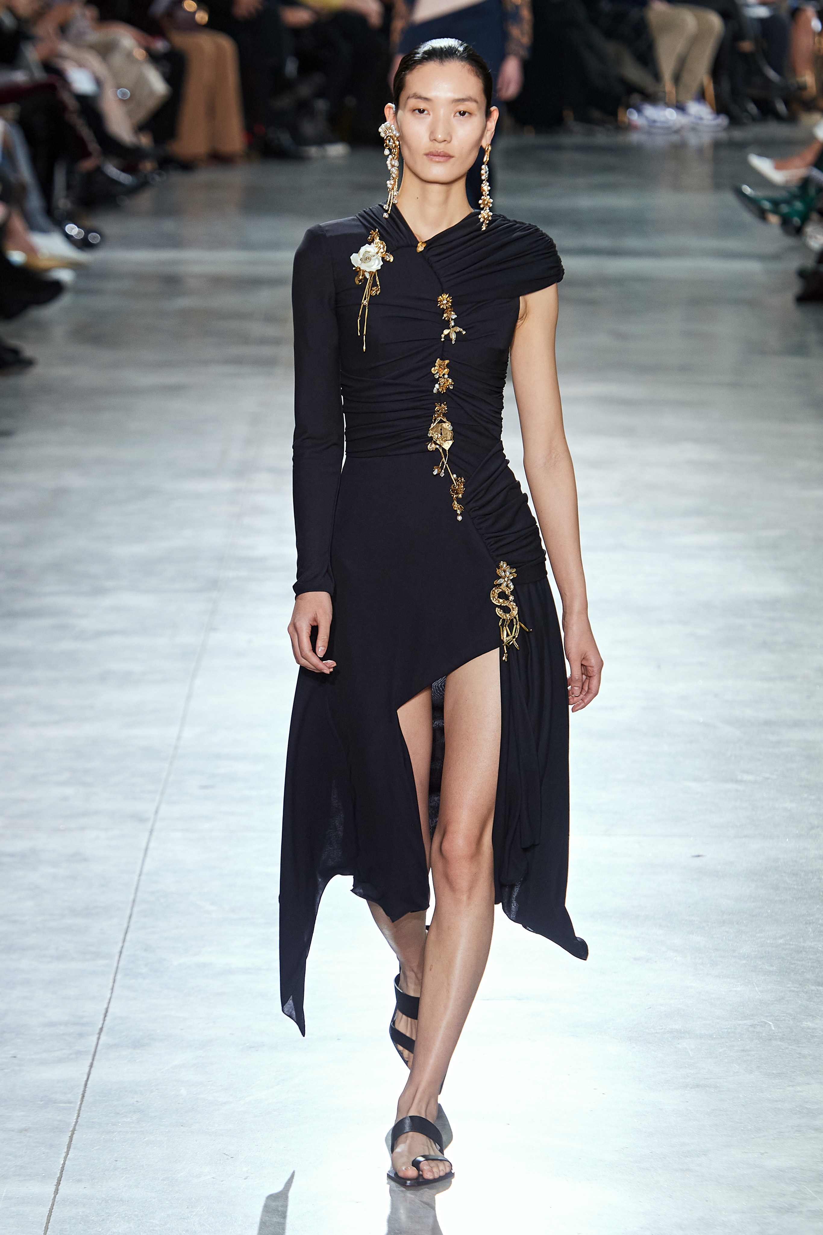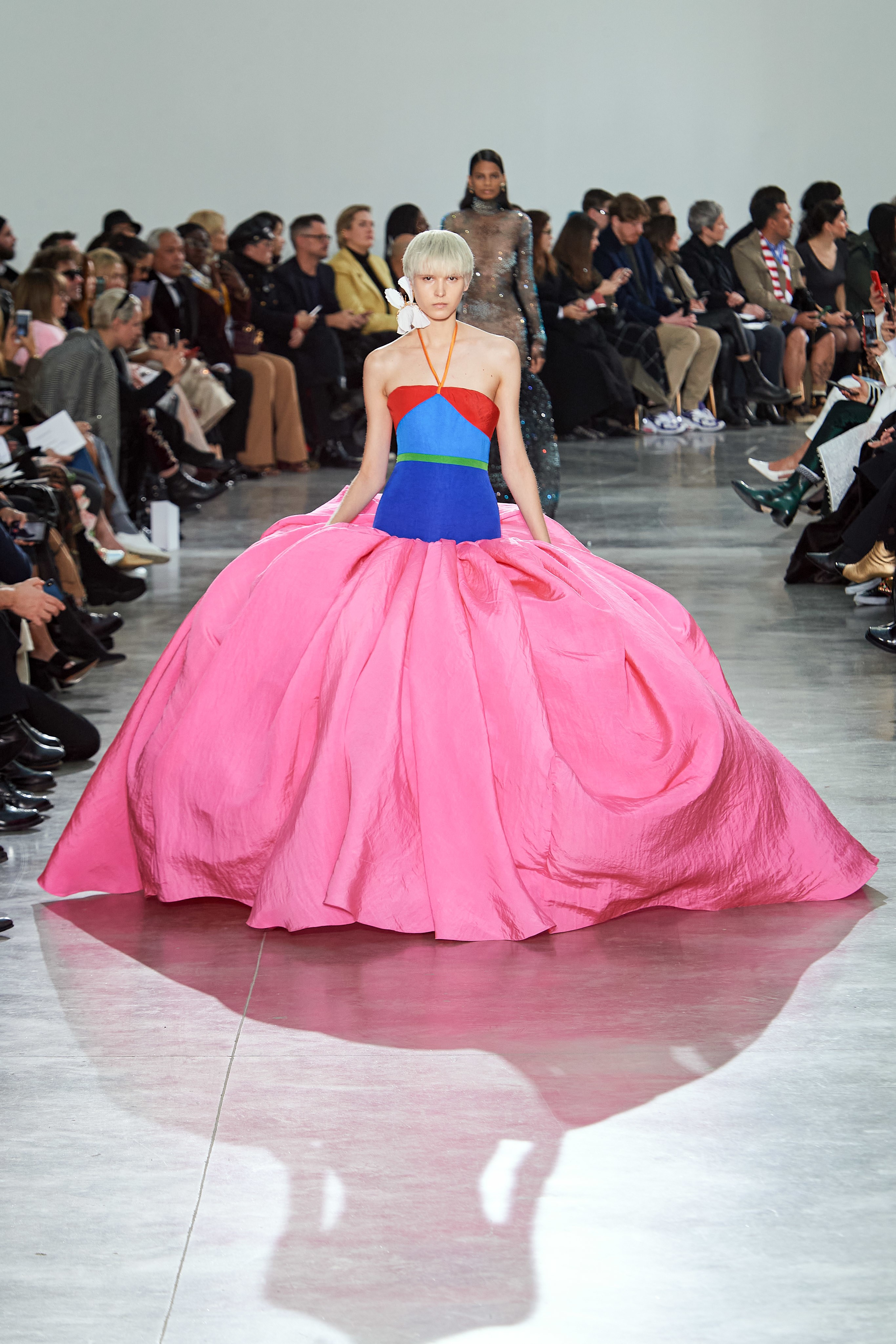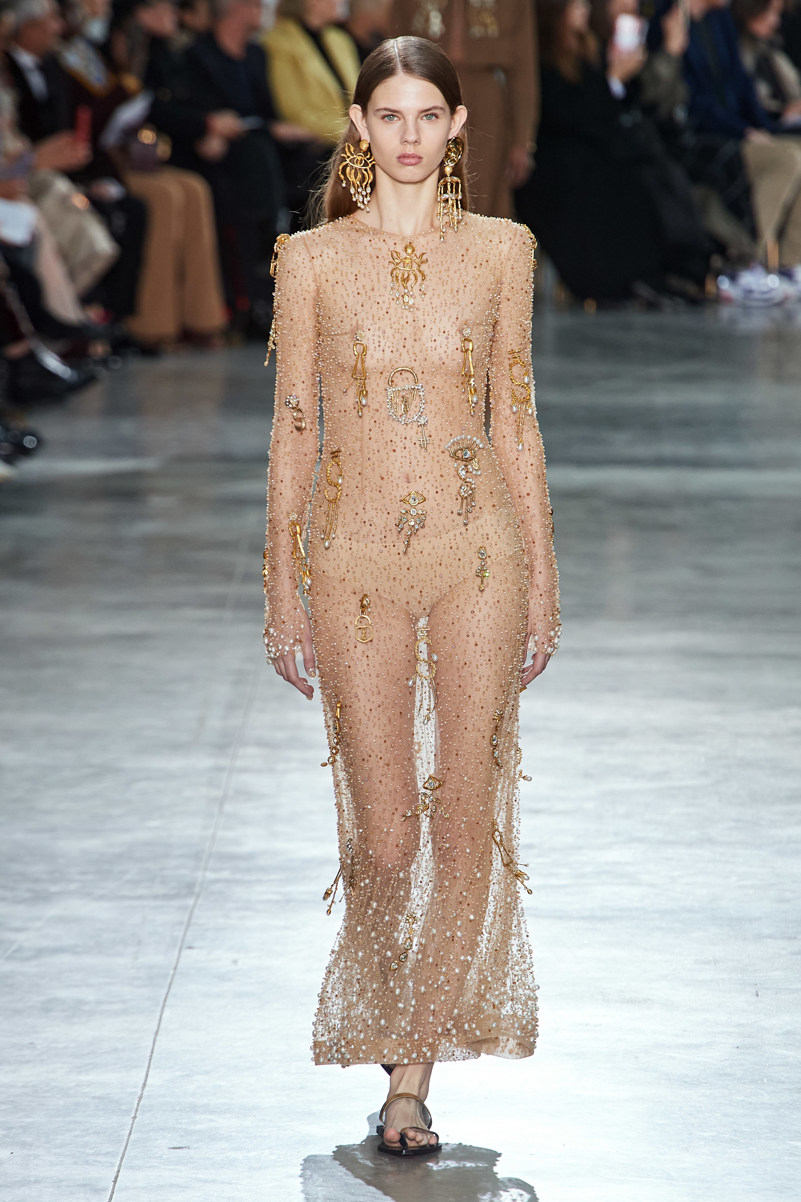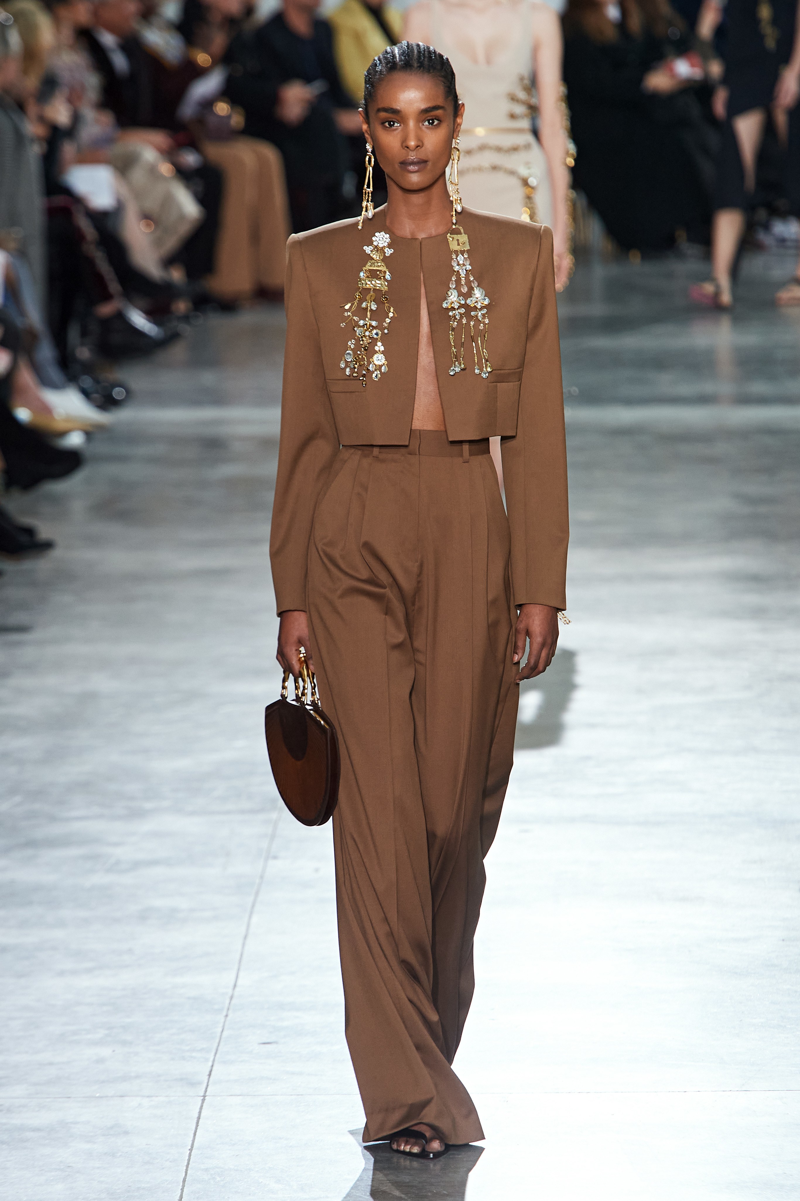 В Токийском дворце, неподалеку от площади Трокадеро в Париже, прошел кутюрный показ Schiaparelli сезона весна-лето — 2020. На создание деталей коллекции у мастеров дома ушли десятки часов ручного труда. Так, блестящие перчатки с накладными ногтями изготавливали в течение 2 дней, 17 часов и 57 минут, а колье из жемчуга и золота — в течение 2 дней, 20 часов и 35 минут. Дизайнер Дэниел Розберри дебютировал в качестве креативного директора бренда в прошлом году и продолжает работу над коллекциями, препарируя архивные модели и эстетику Schiaparelli. Эталонный сюрреализм Эльзы Скиапарелли обрел современное звучание и актуальную элегантность в исполнении Розберри.