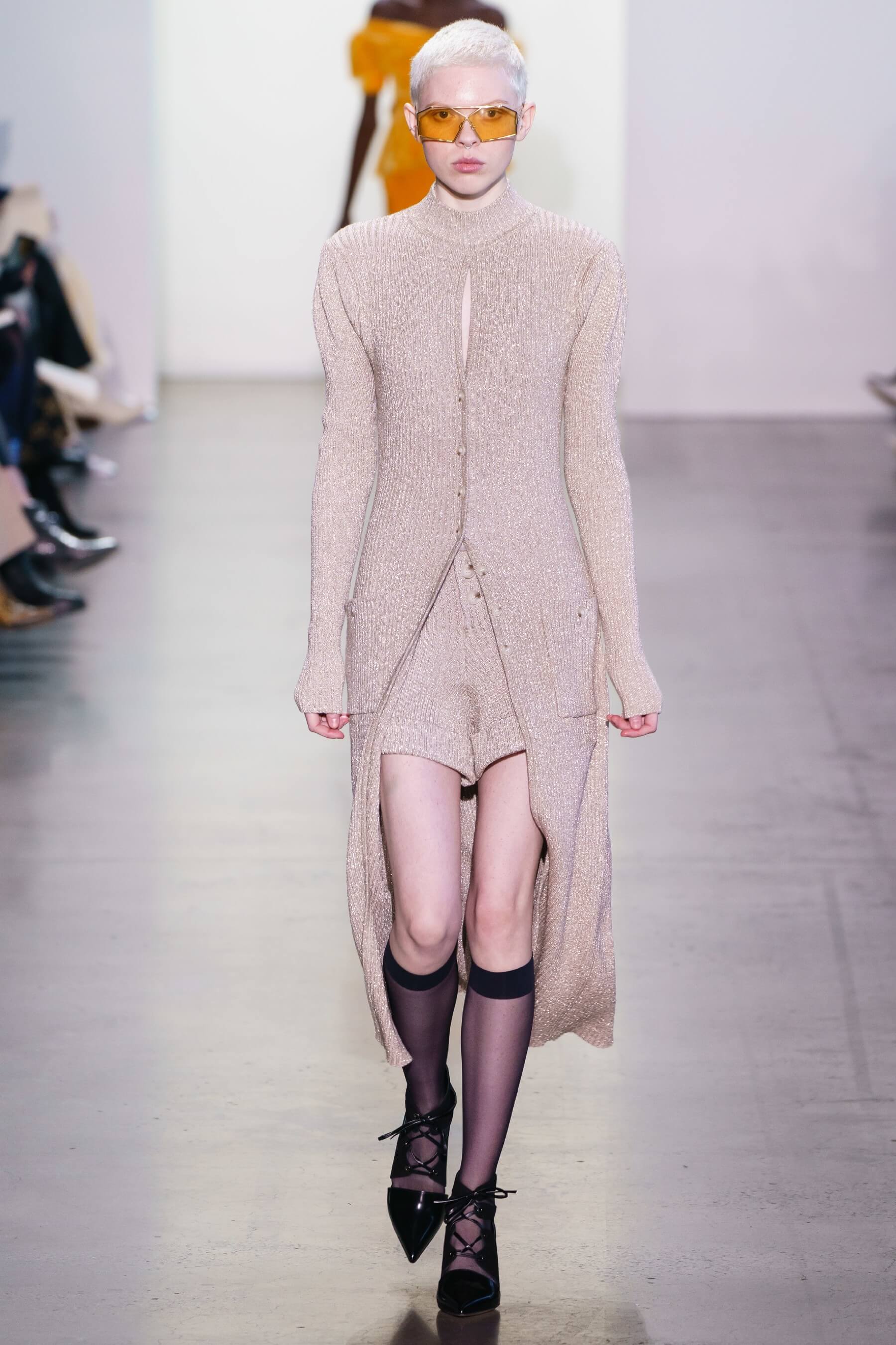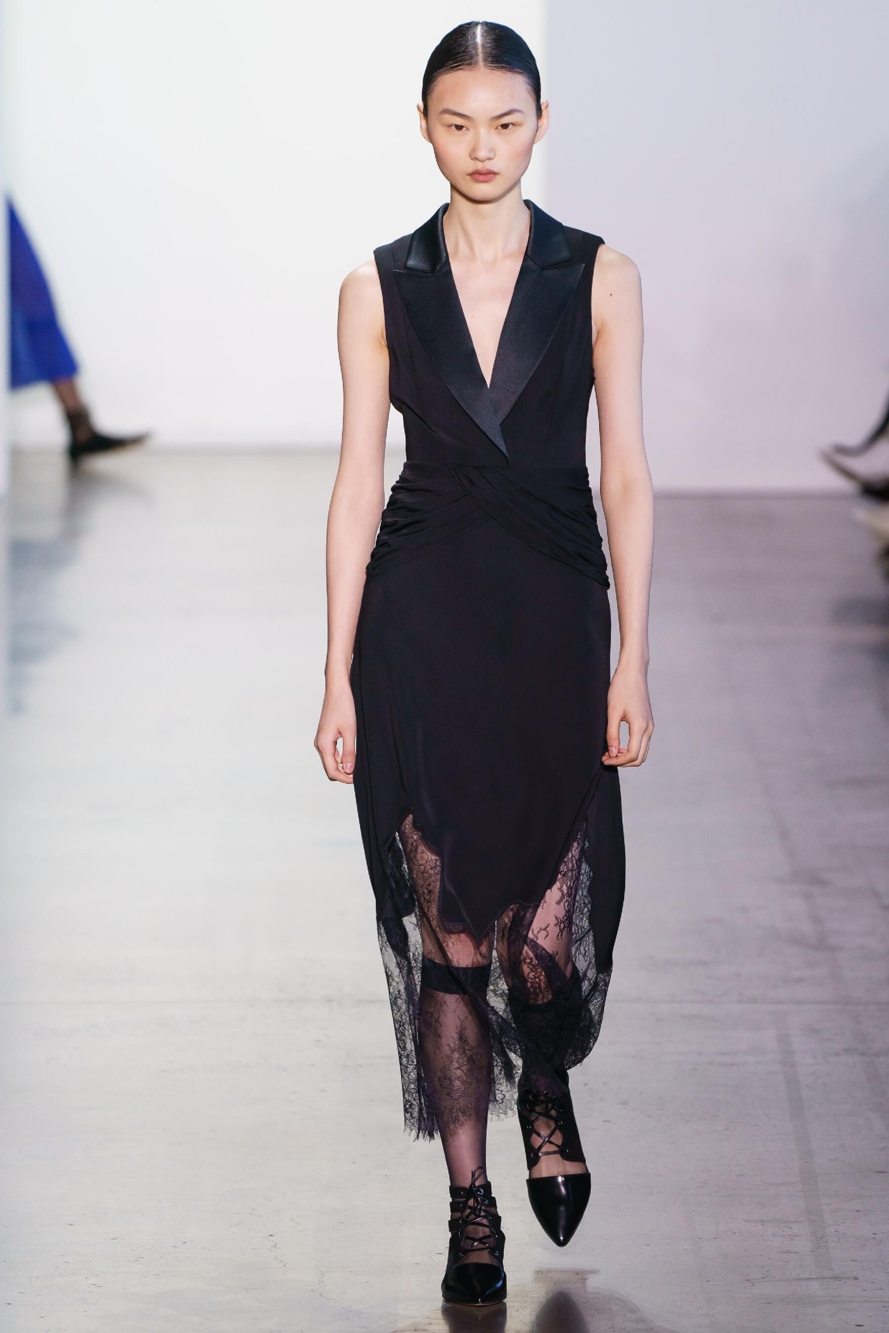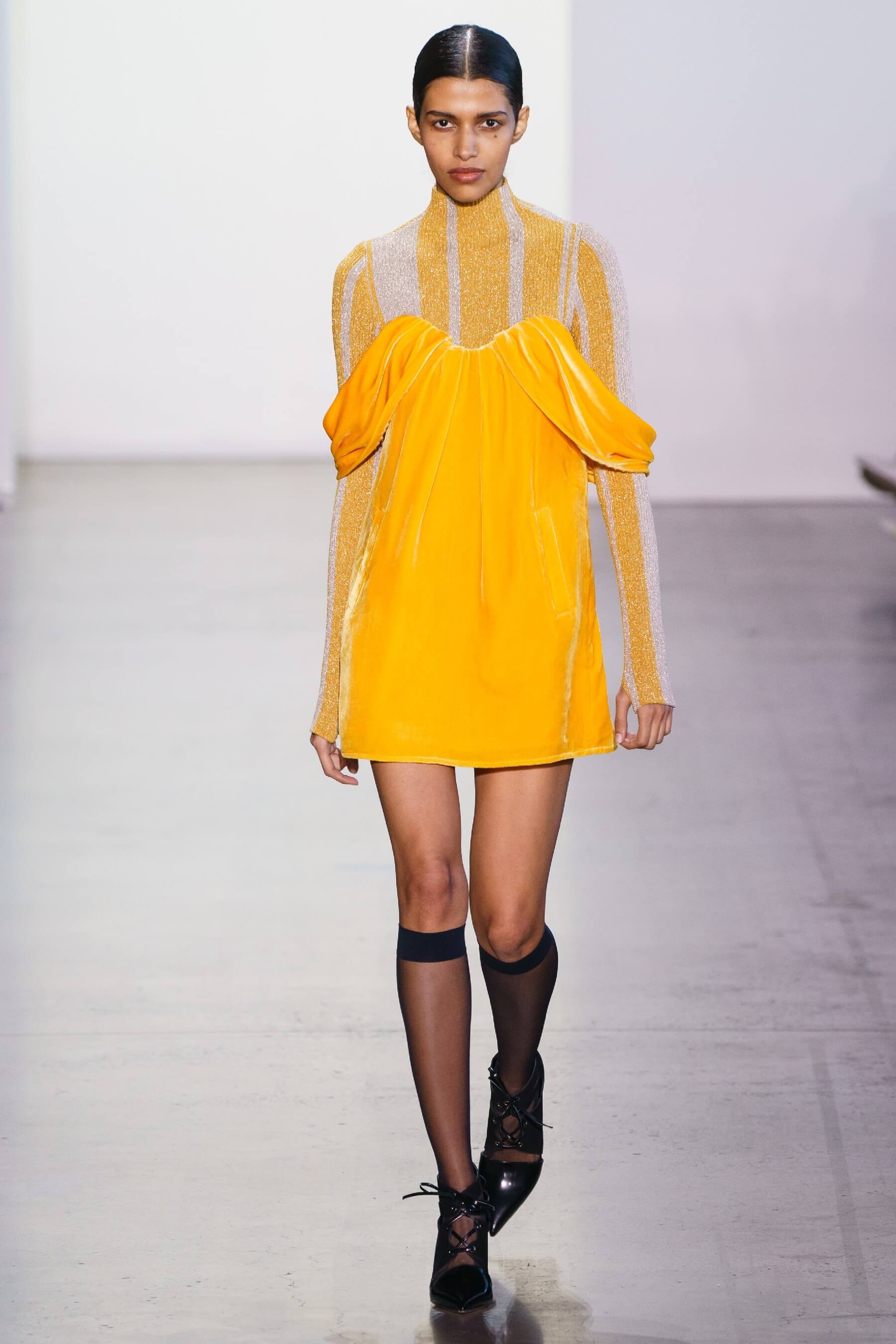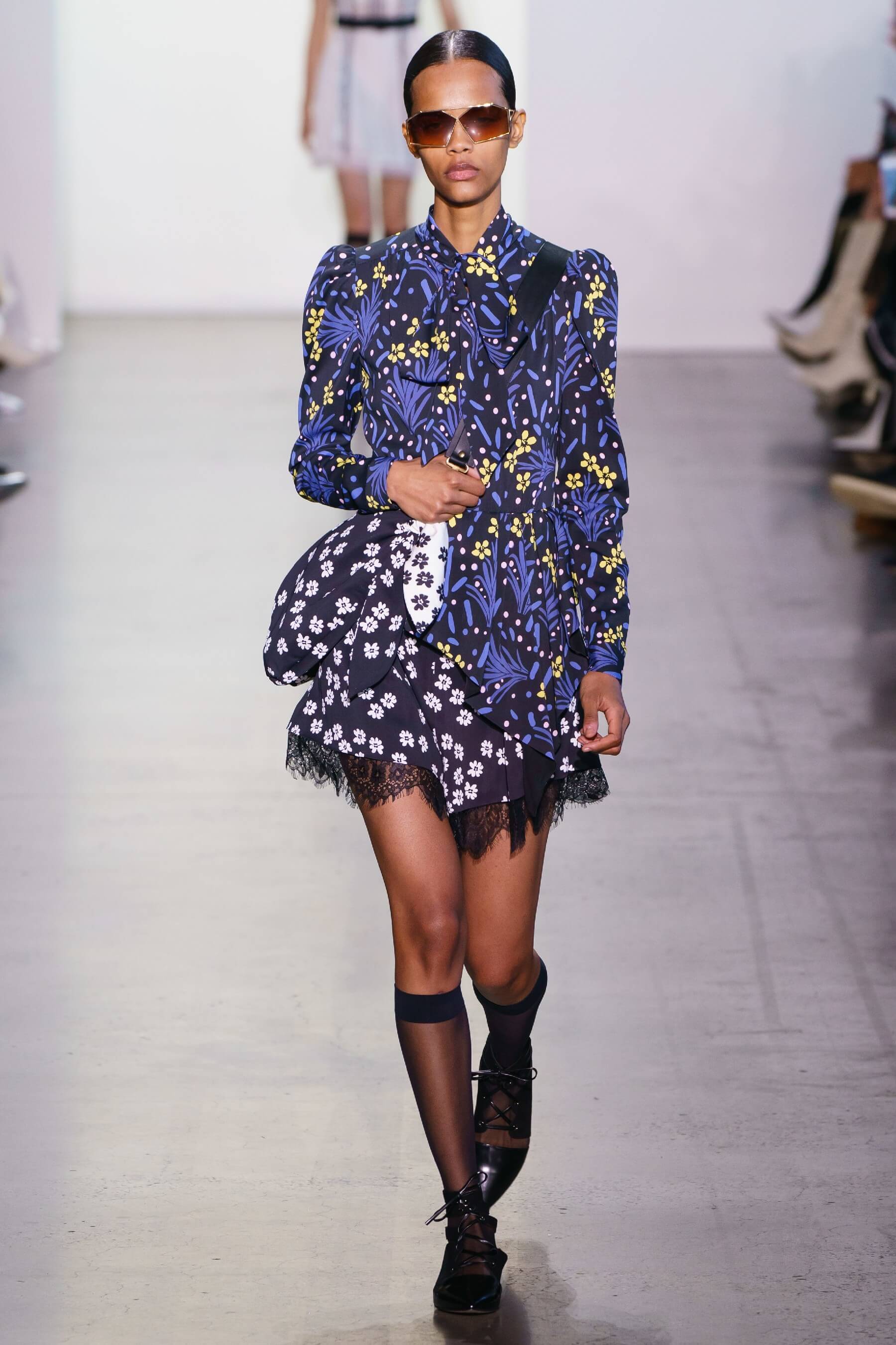Сам дизайнер выразил свои чувства: ему хотелось сделать типичный образ девушки Self-Portrait более изысканным и ретроспективным, придав лоска с помощью фактур и силуэтов. На моделях были вязаные гольфы из люрекса с эффектом второй кожи, поверх которых идеально скроенные, были надеты ставшие привычными для Чонга романтичные платья. Любовь дизайнера к коллажу привела к синтезу эстетики прошлых колелкций и нового виденья.