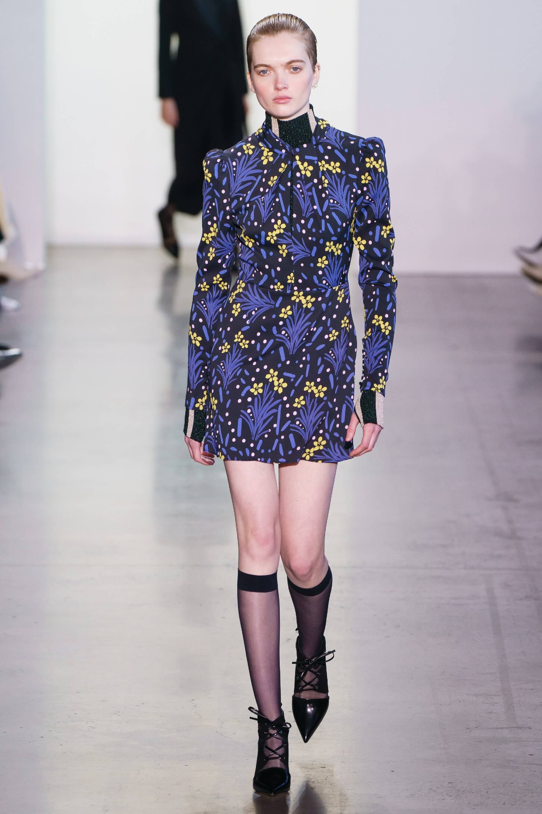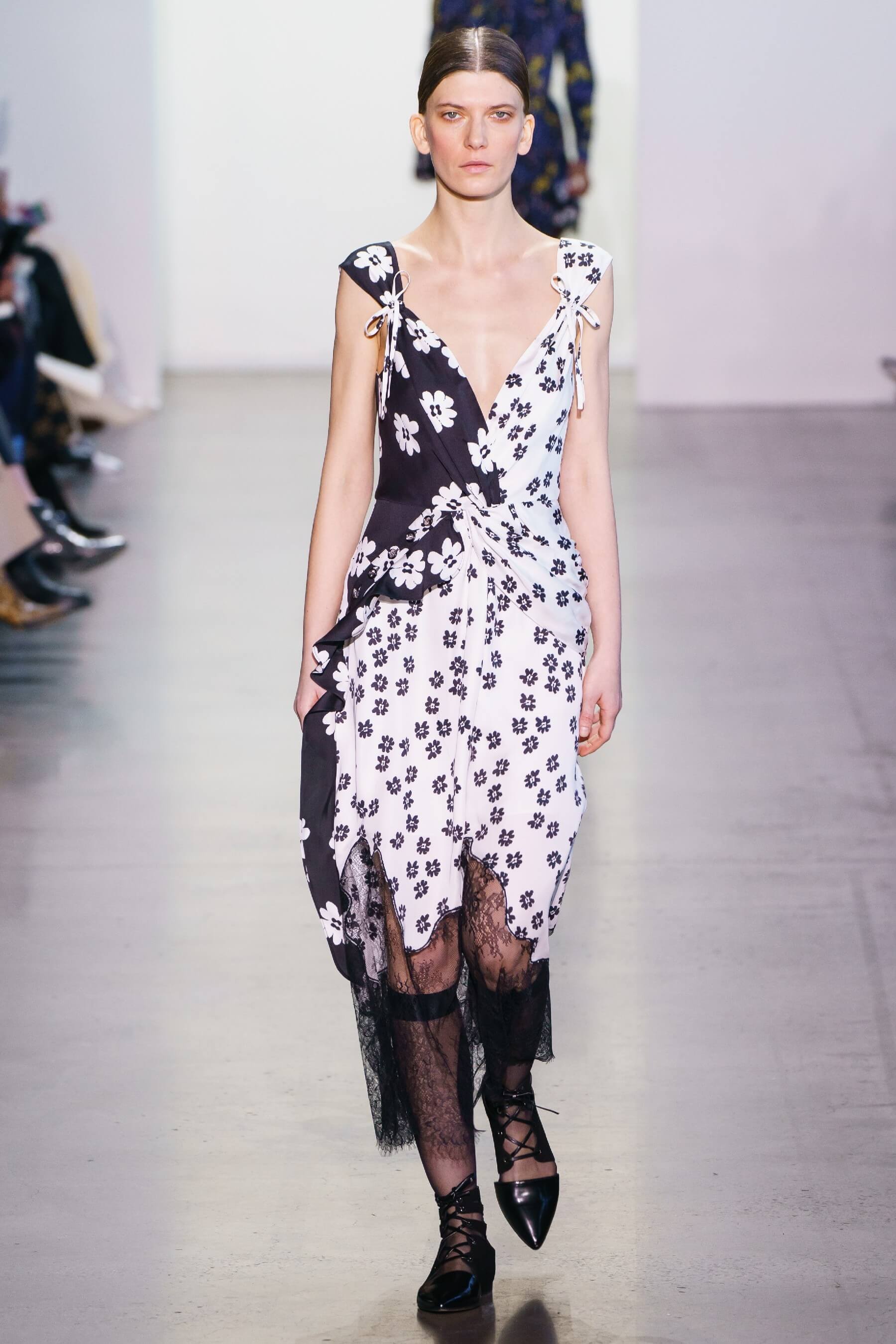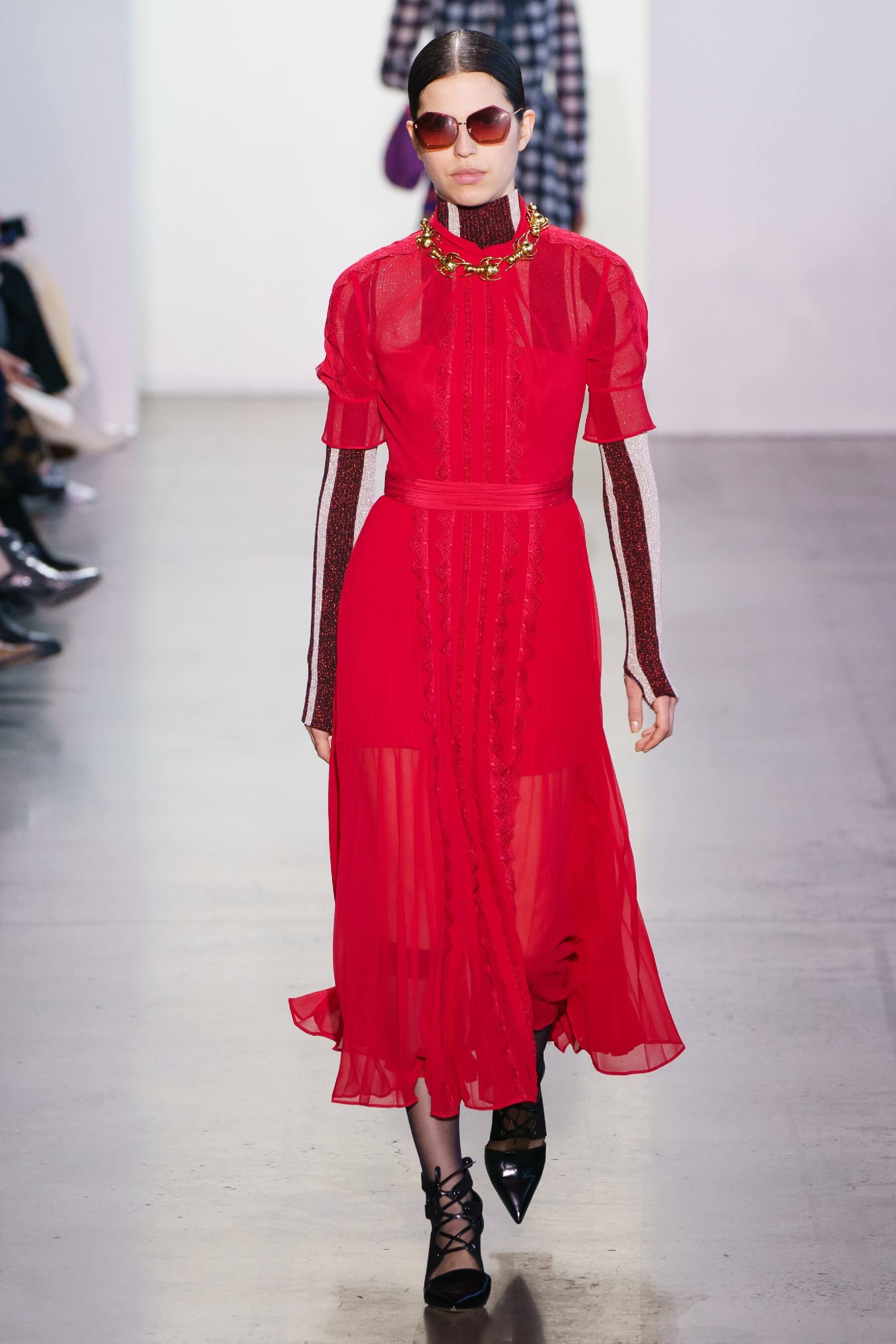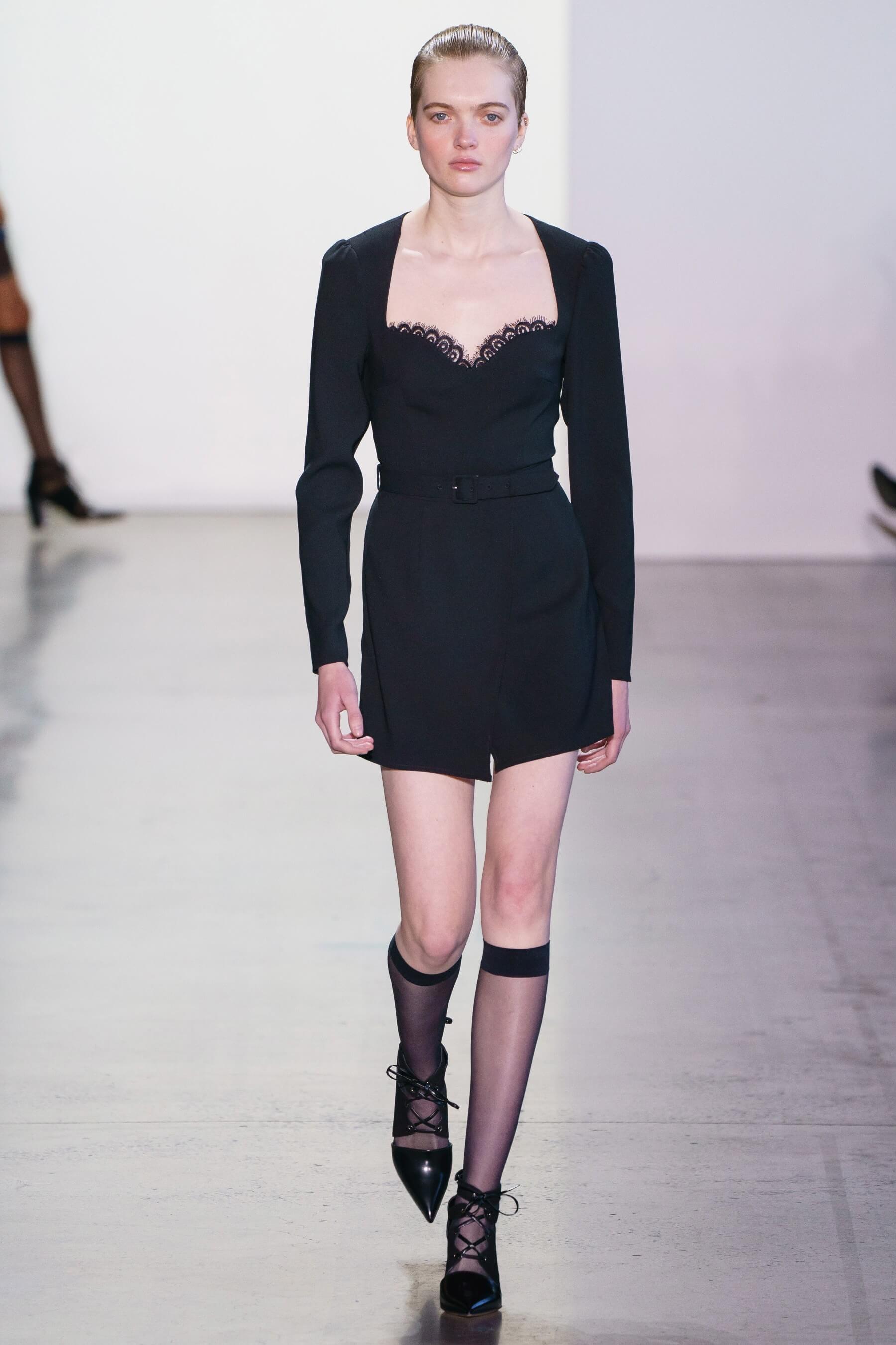 Сам дизайнер выразил свои чувства: ему хотелось сделать типичный образ девушки Self-Portrait более изысканным и ретроспективным, придав лоска с помощью фактур и силуэтов. На моделях были вязаные гольфы из люрекса с эффектом второй кожи, поверх которых идеально скроенные, были надеты ставшие привычными для Чонга романтичные платья. Любовь дизайнера к коллажу привела к синтезу эстетики прошлых колелкций и нового виденья.