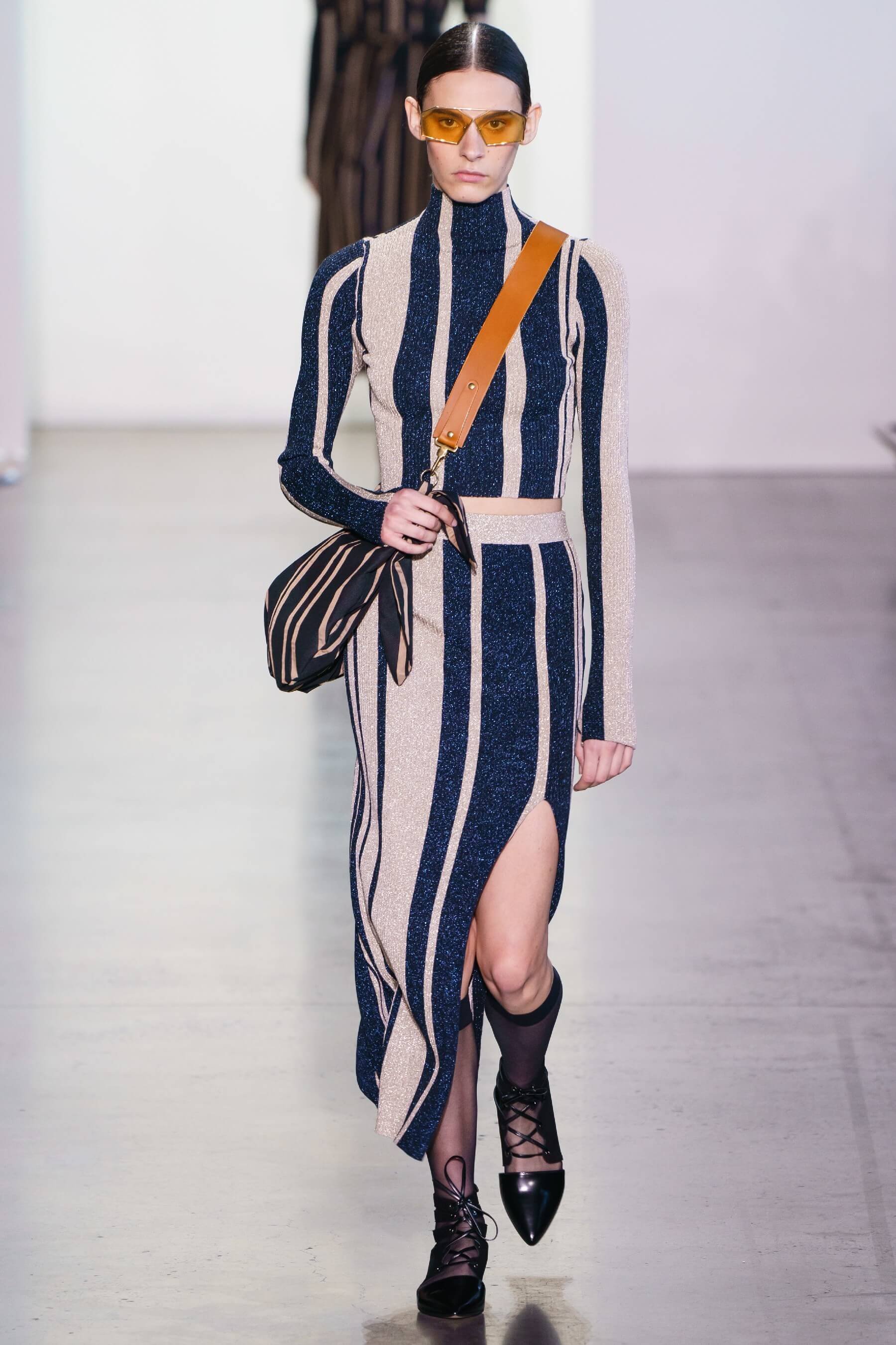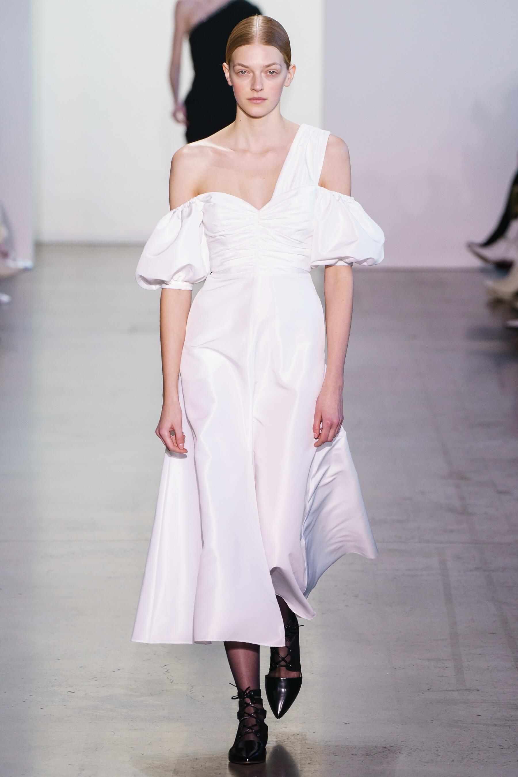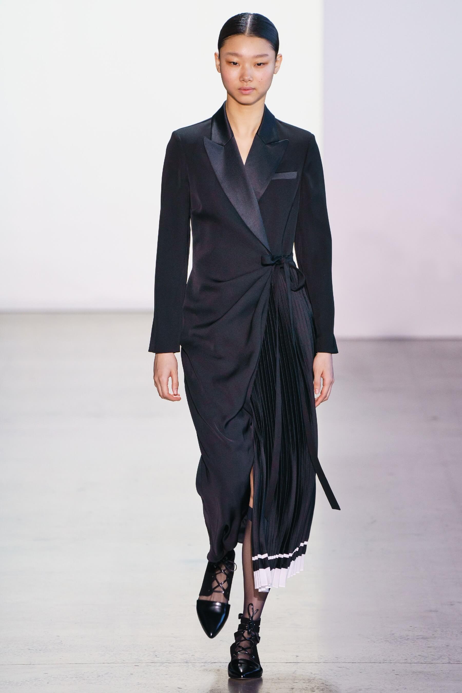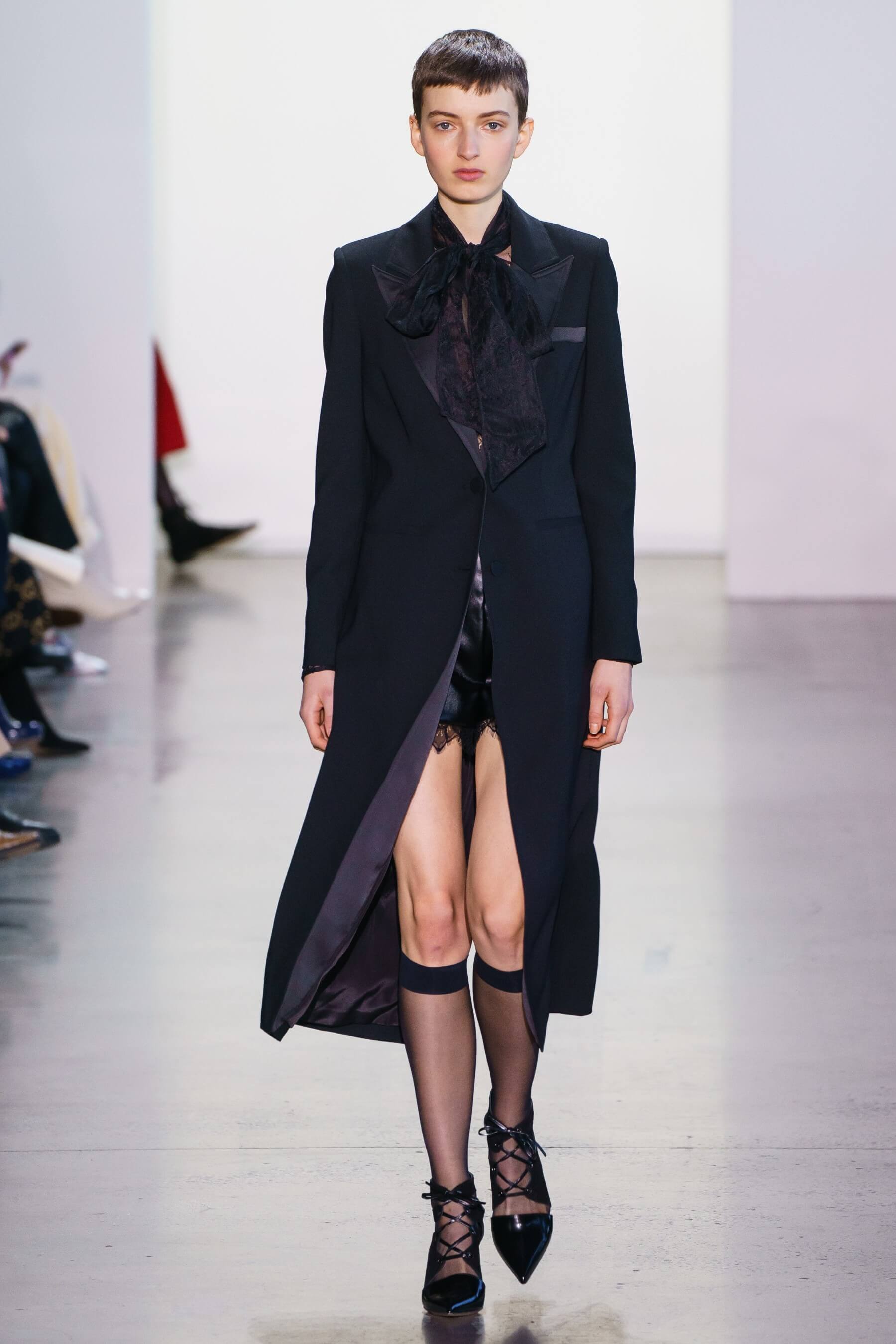 Сам дизайнер выразил свои чувства: ему хотелось сделать типичный образ девушки Self-Portrait более изысканным и ретроспективным, придав лоска с помощью фактур и силуэтов. На моделях были вязаные гольфы из люрекса с эффектом второй кожи, поверх которых идеально скроенные, были надеты ставшие привычными для Чонга романтичные платья. Любовь дизайнера к коллажу привела к синтезу эстетики прошлых колелкций и нового виденья.