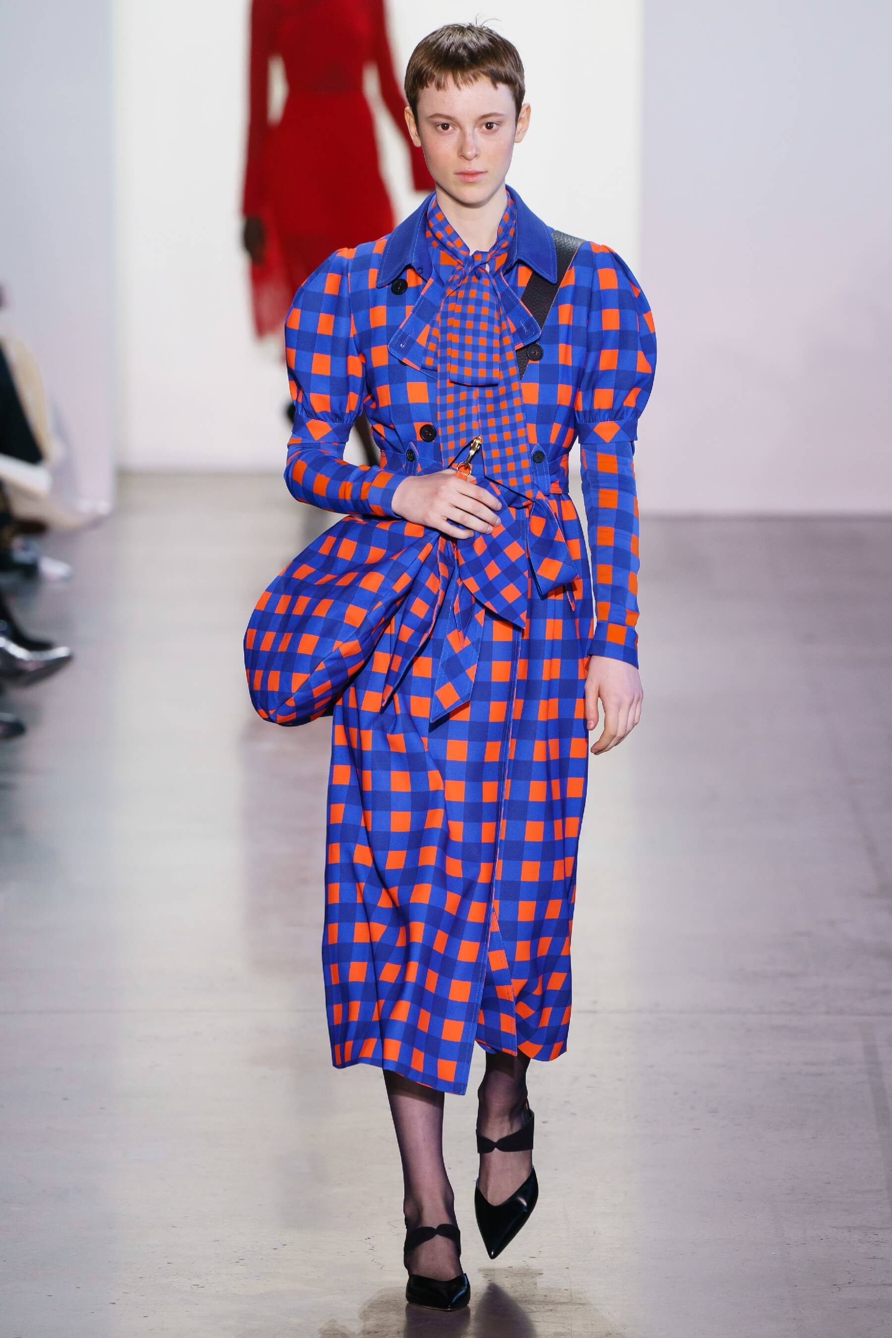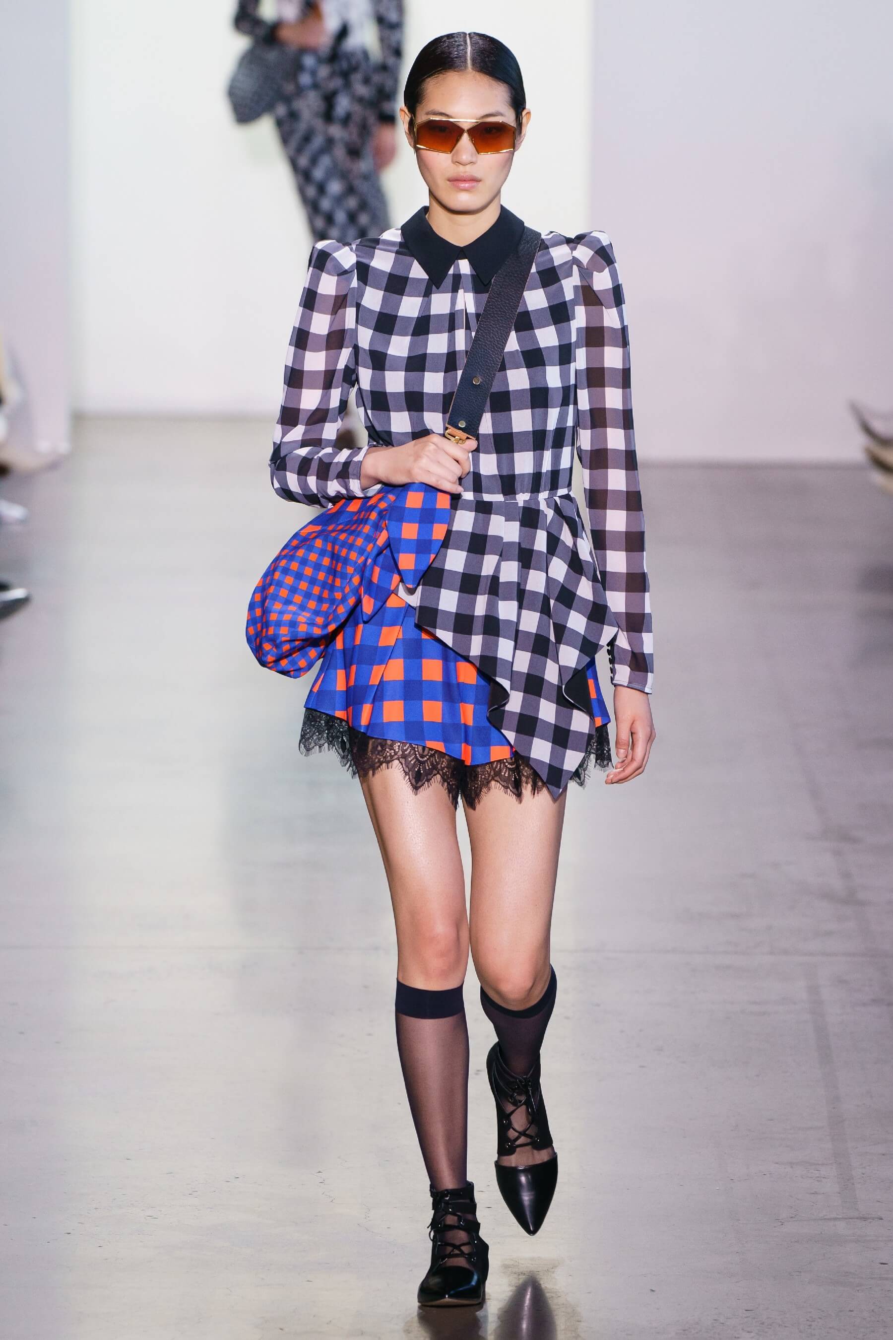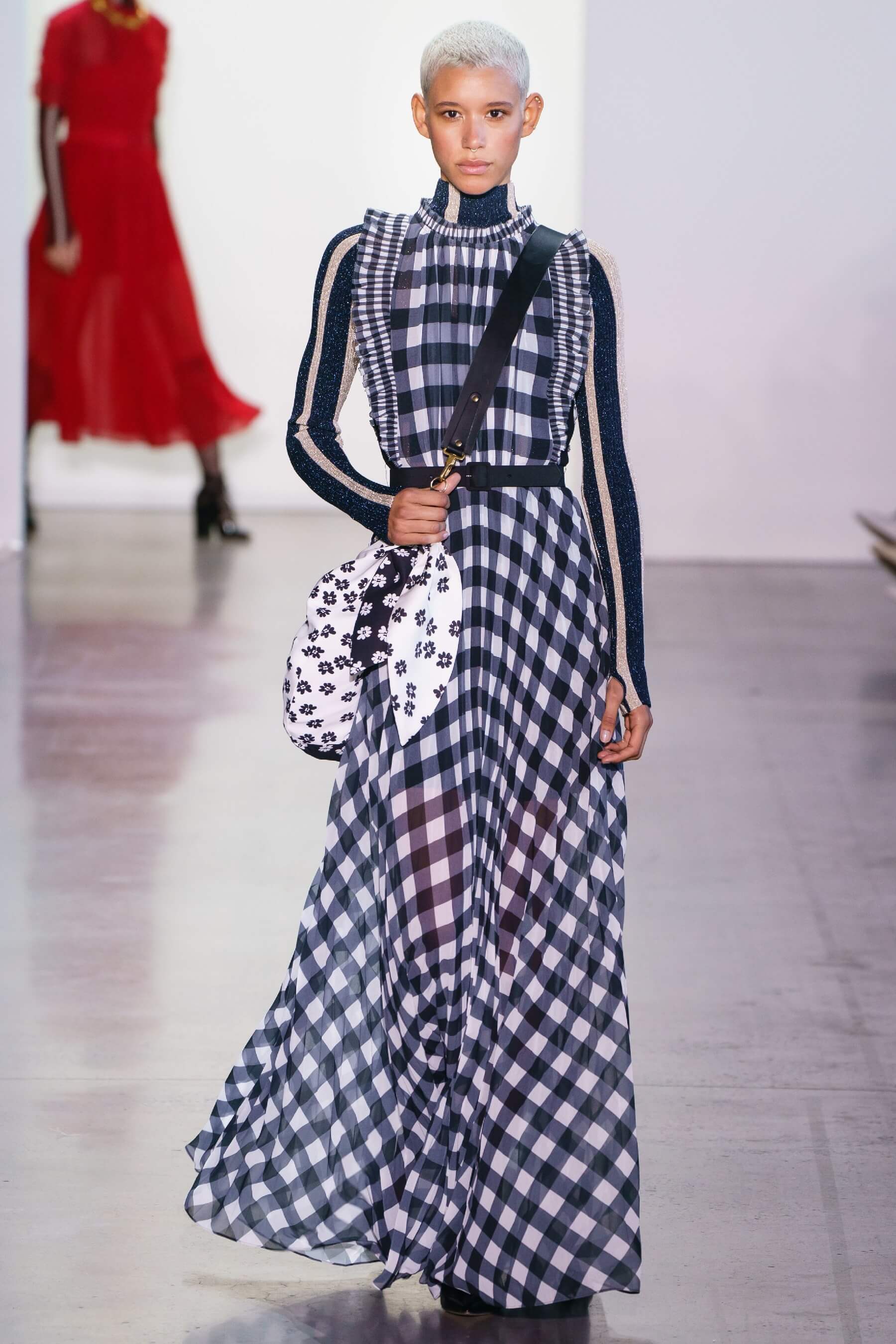 В представленной коллекции есть платья-смокинги с шелковыми лацканами и плиссированной юбкой, комбинезоны с рукавами-буфами, объединяющие элегантность и эксцентричность, высокие кожаные шорты с кружевом, идеальные блестящие платья для вечеринок и много клетки — от авангардных интерпретаций в духе "Унесённых ветром" до изящных платьев точёных силуэтов.