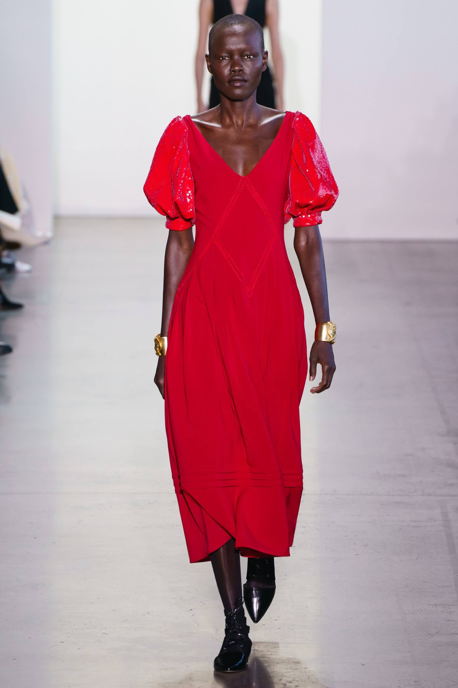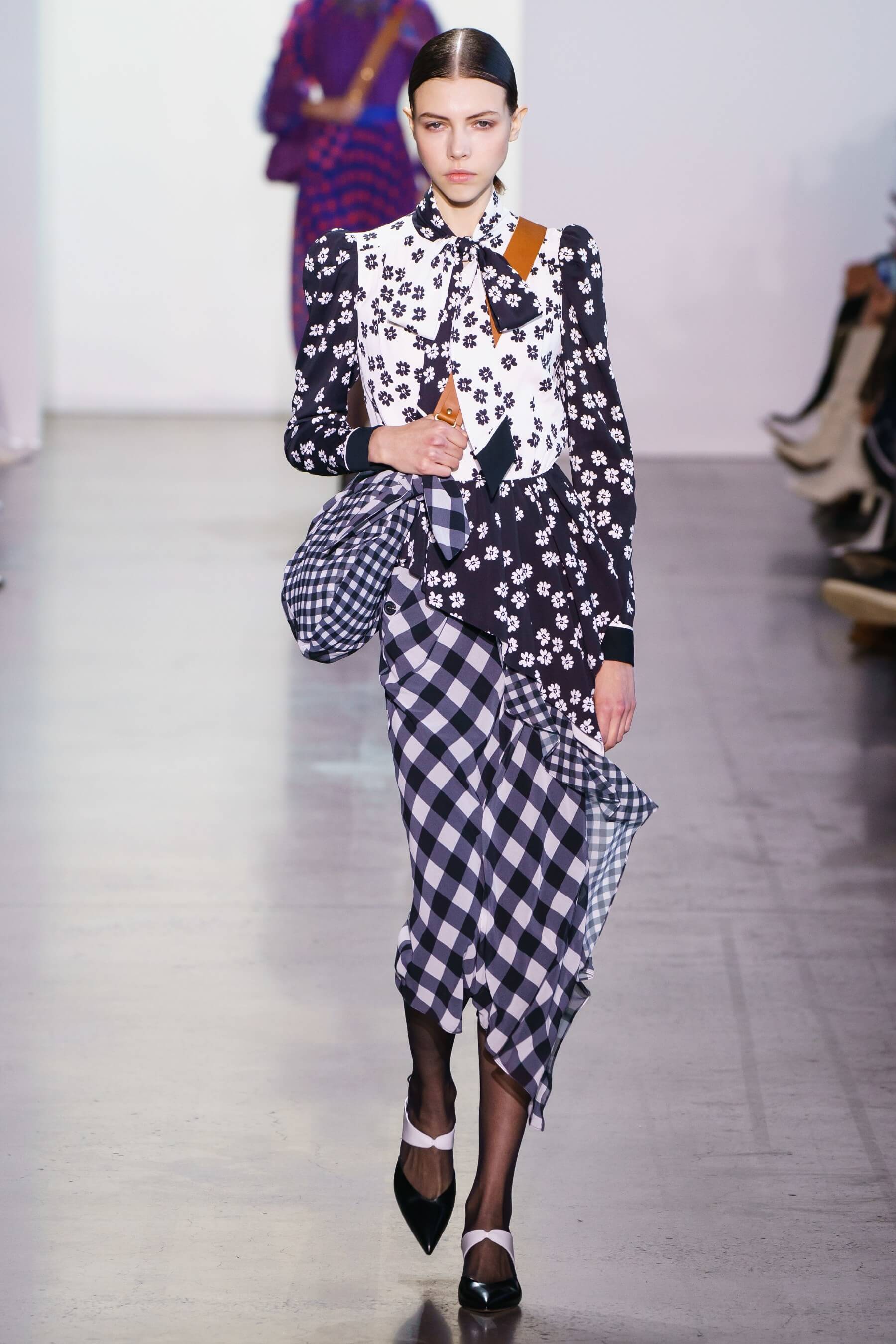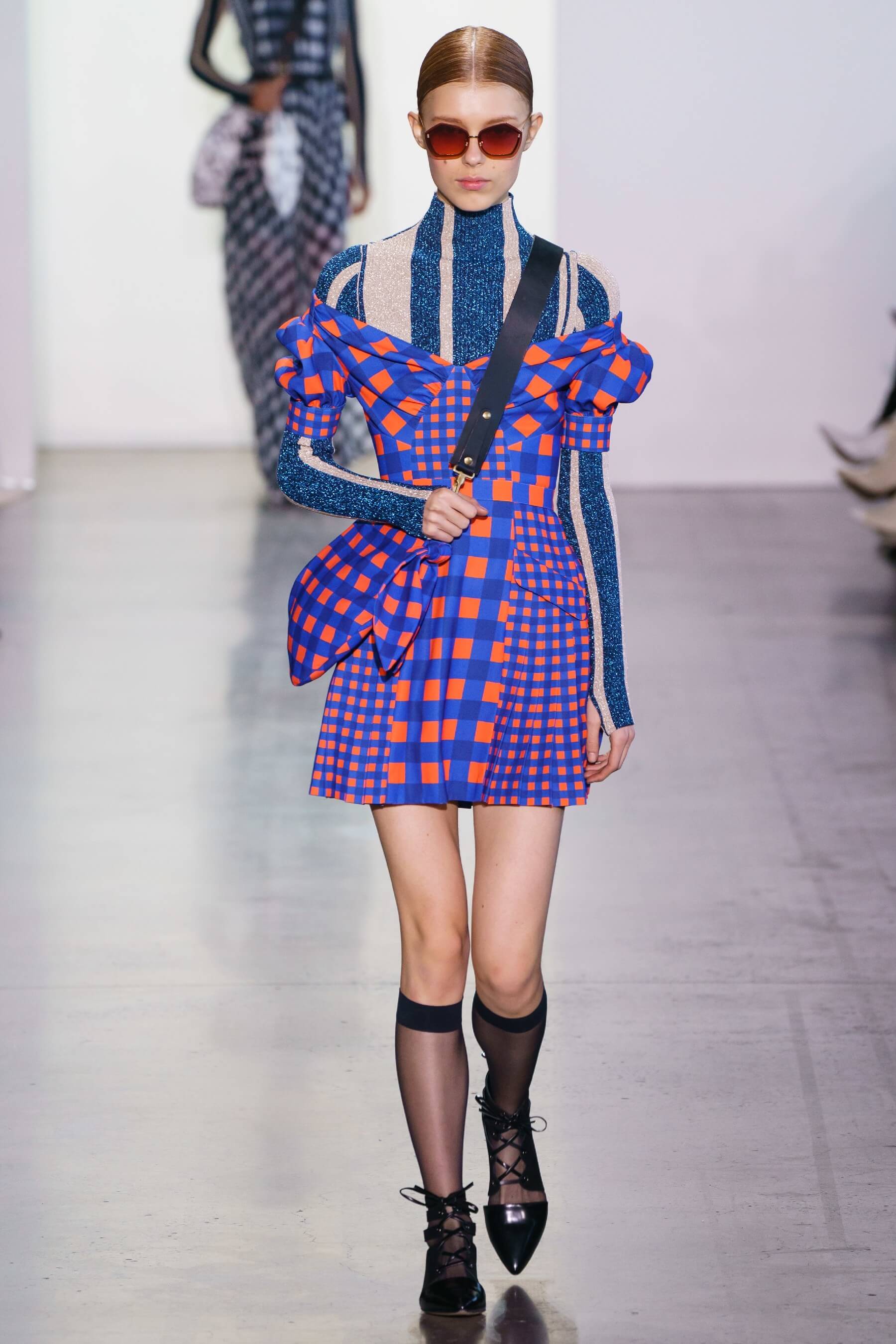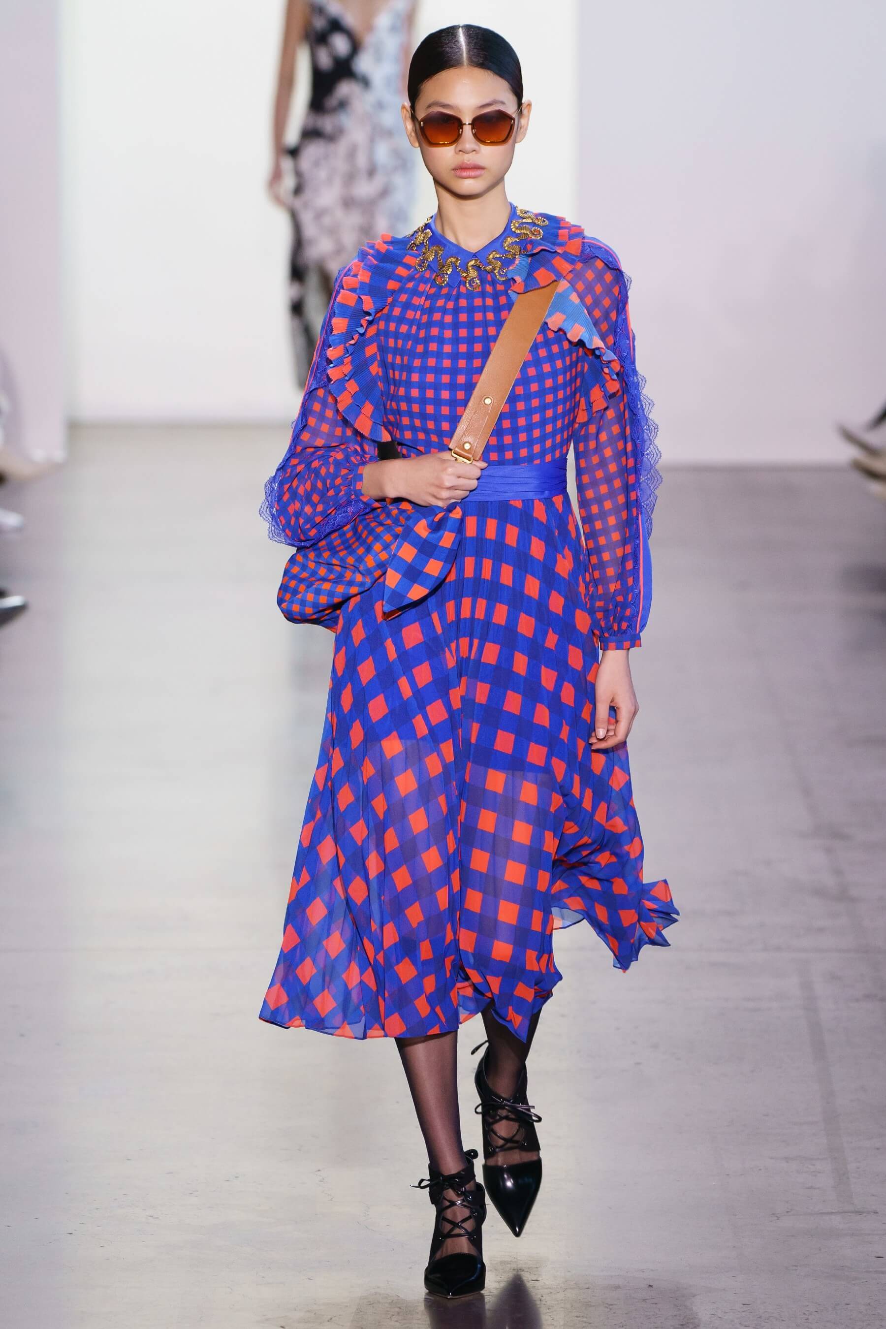 В представленной коллекции есть платья-смокинги с шелковыми лацканами и плиссированной юбкой, комбинезоны с рукавами-буфами, объединяющие элегантность и эксцентричность, высокие кожаные шорты с кружевом, идеальные блестящие платья для вечеринок и много клетки — от авангардных интерпретаций в духе "Унесённых ветром" до изящных платьев точёных силуэтов.