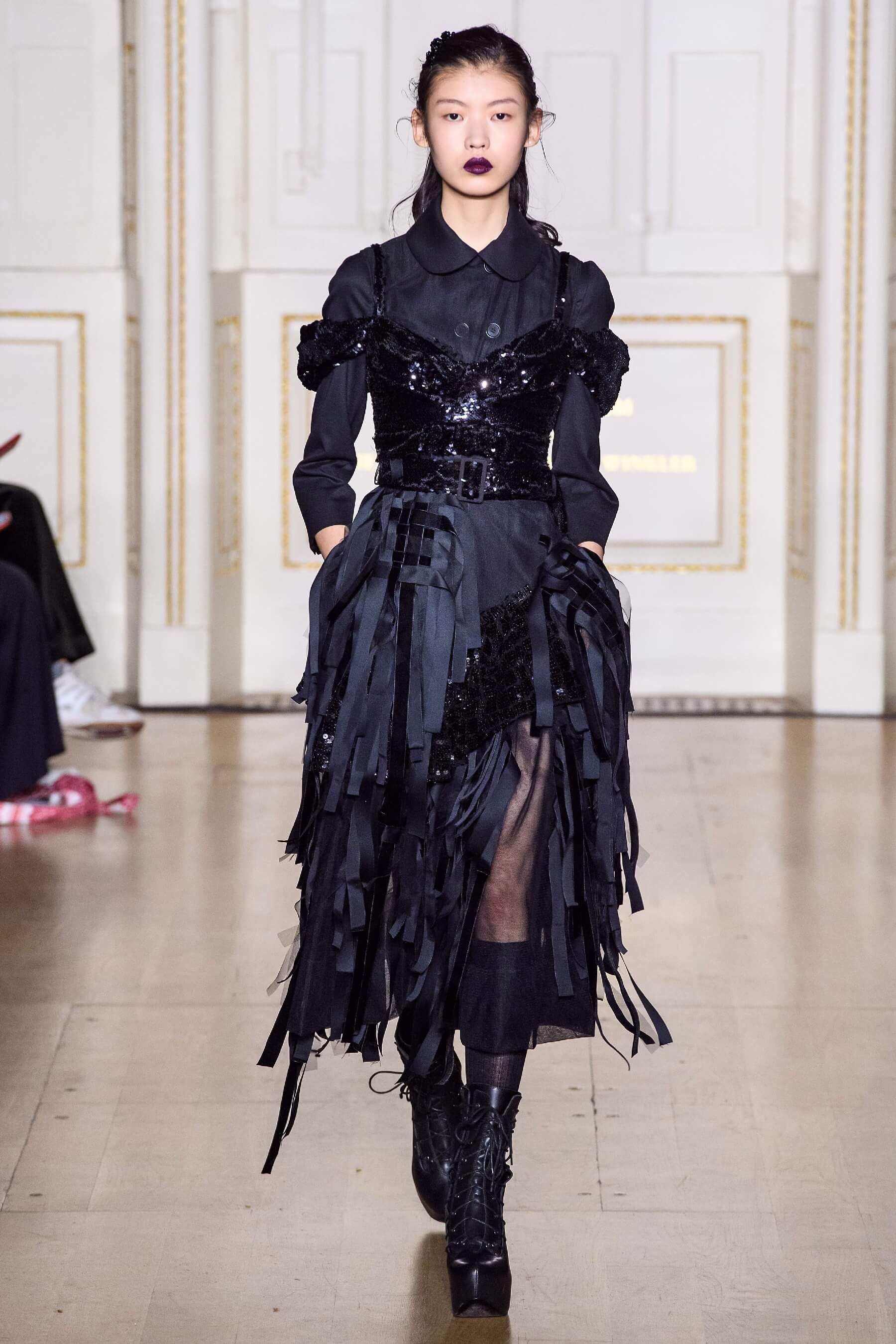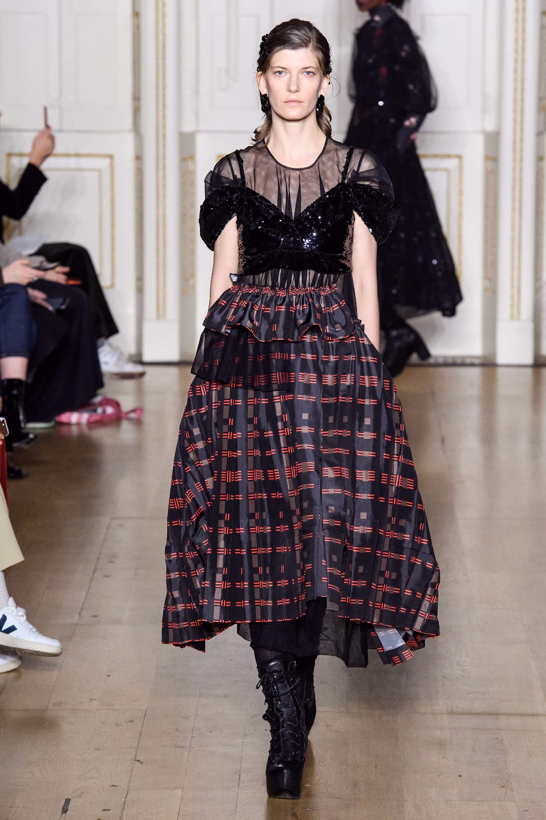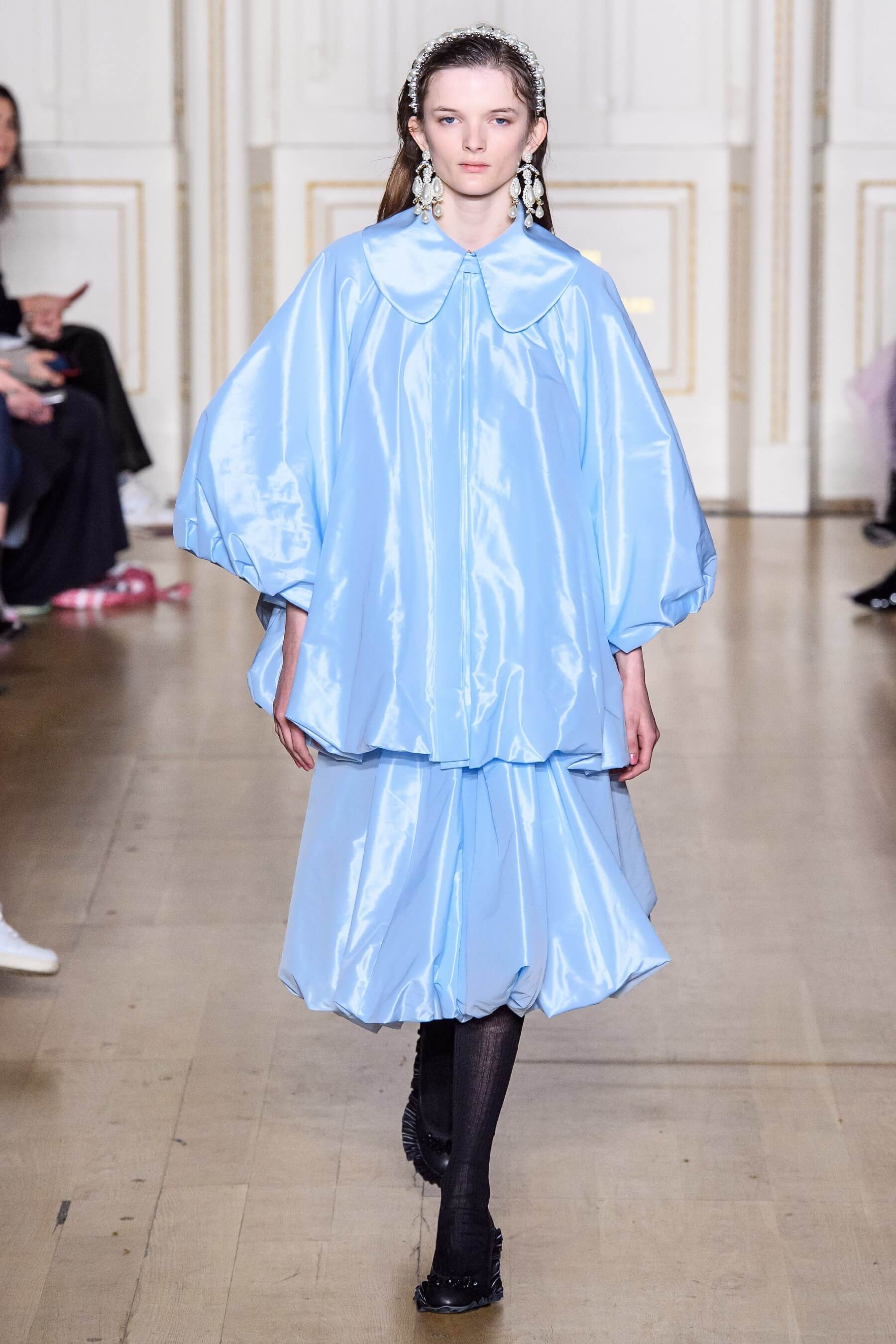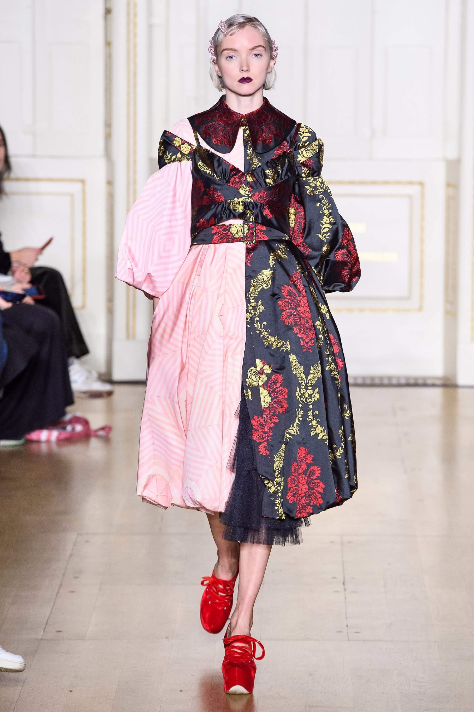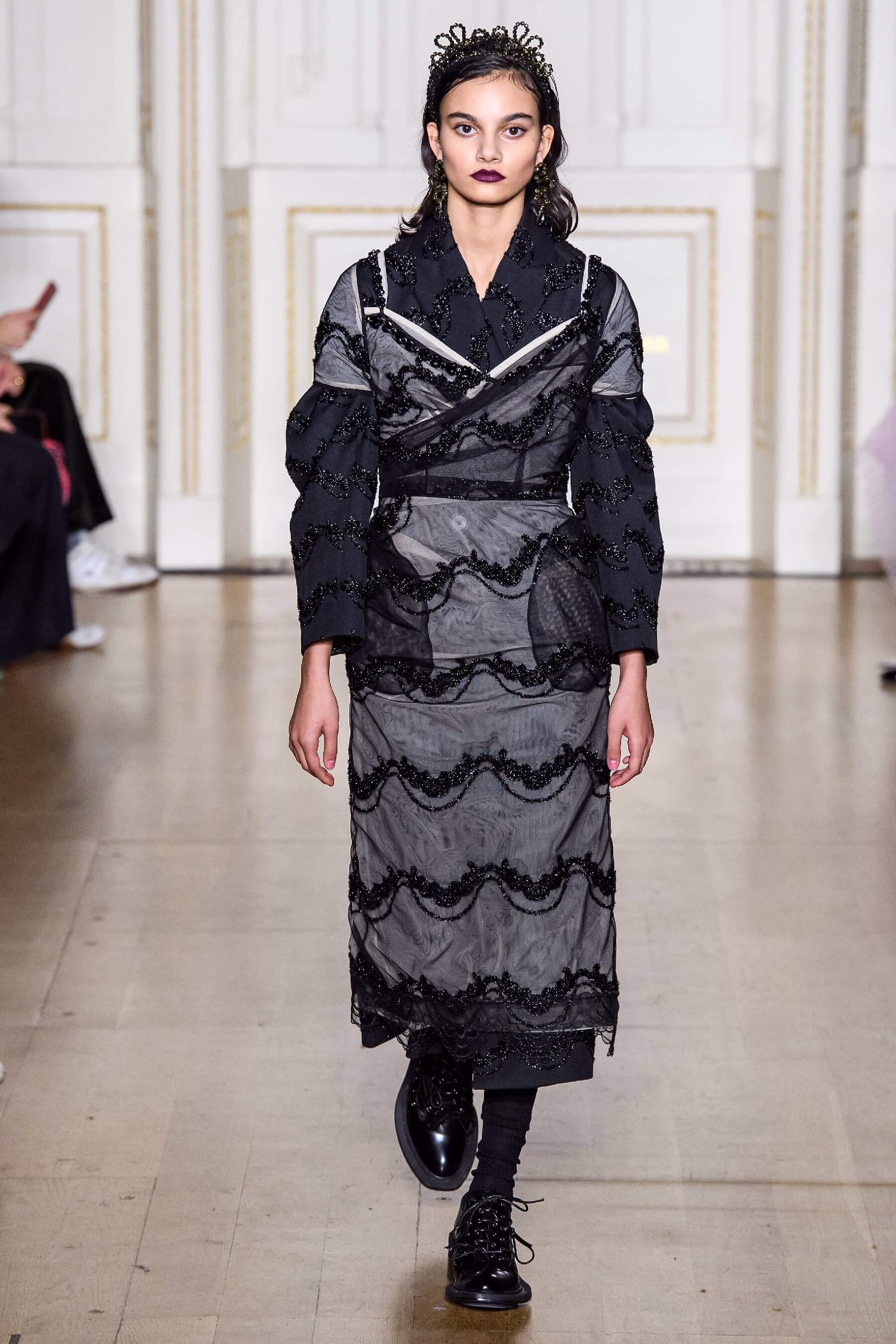 Покатые линии плеча объёмных пальто и присобранные рукава-фонарики на готических платьях из черного шелка не оставляют шанса отыскать в коллекции хотя бы долю игры в маскулинность. А вот источники вдохновения дизайнера имеют жутковатую историю: это фильм-экранизация сказки Андерсена "Красные башмачки" режиссёра Майкла Пауэлла и его же хоррор "Подглядывающий" (1960).