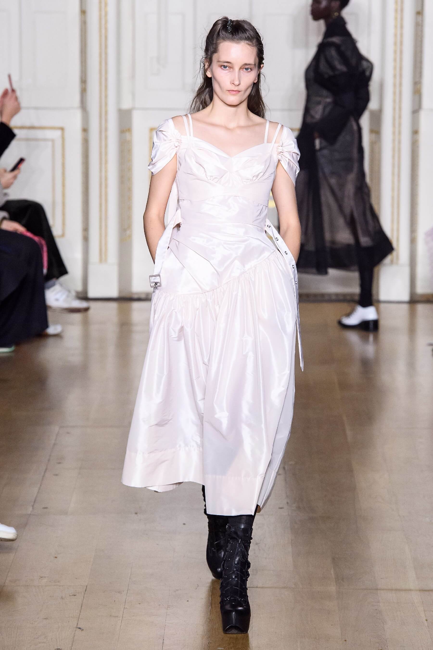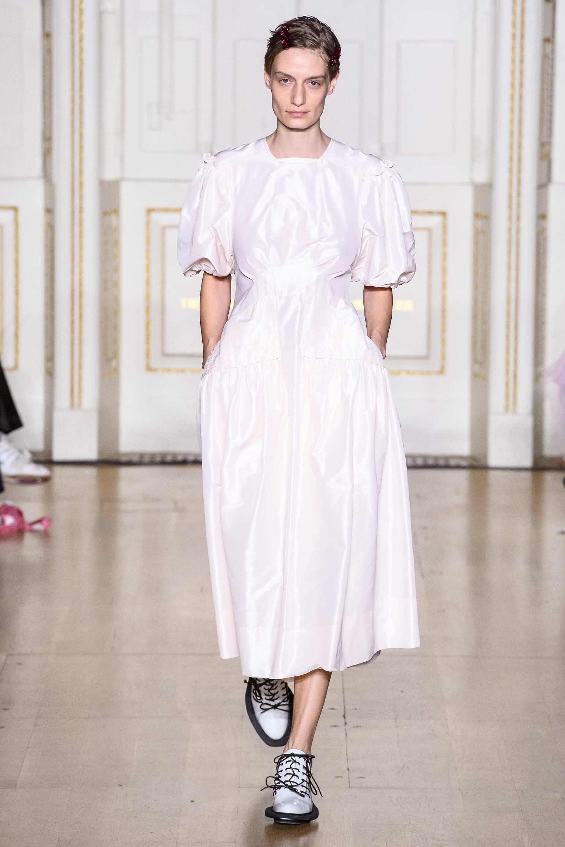 Когда речь заходит о феминизме и girl-power-движениях, на ум сразу приходят реконструированные маскулинные силуэты, широкие плечи и гендерно размытая стилистика. Новая коллекция дизайнера Симон Роша — настоящий островок света и надежды посреди этого всего. Женственность, интеллигентный эротизм и инклюзивность придают ей особое значение. Ни одного брючного костюма, милитаризированного или элемента униформы — только платья и много органзы, которые на подиуме представили Хлоя Севиньи, Лили Коул, Джейд Паффит, Линдси Виксен и Джени Хоуорт.