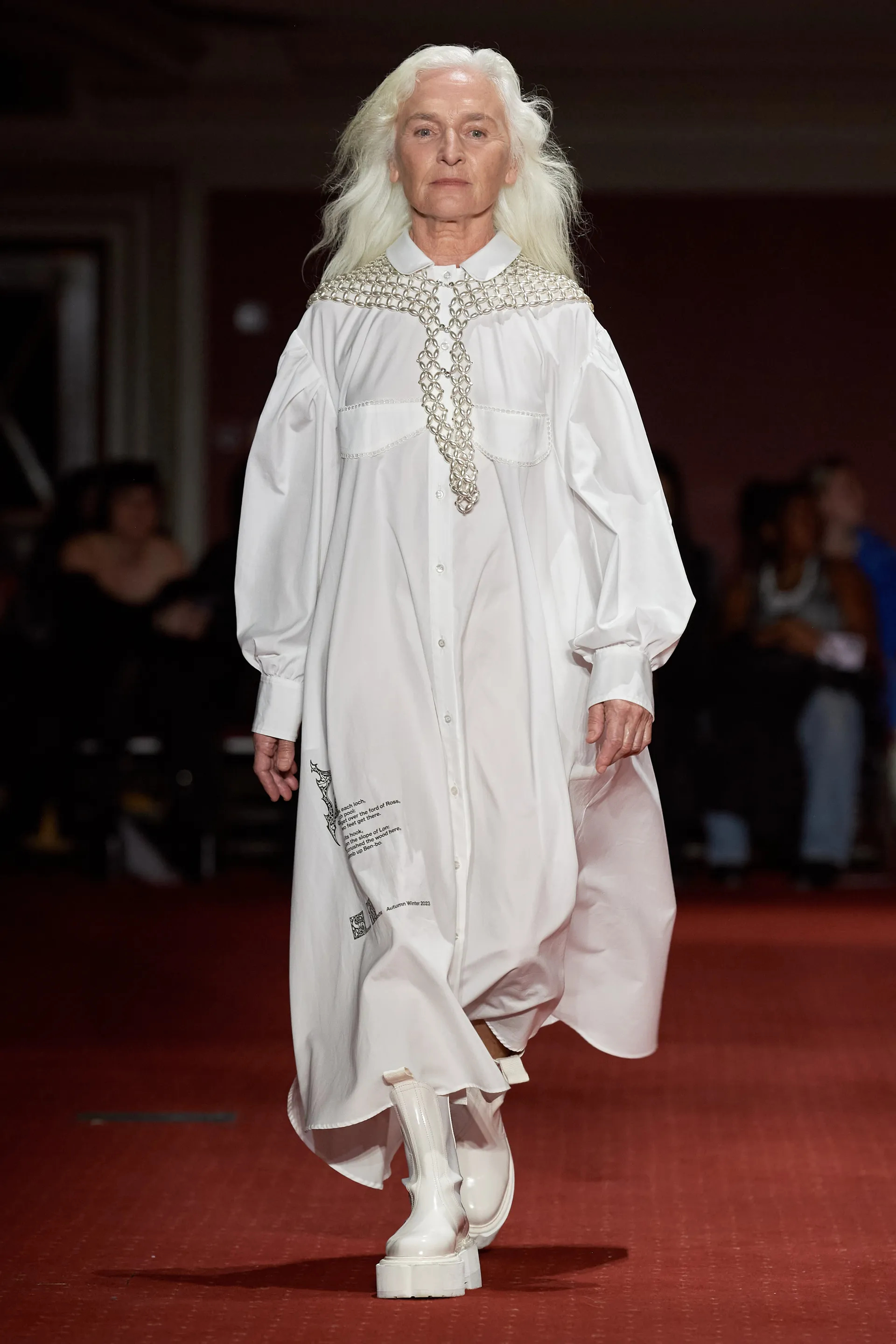 І хоча після показу Сімон сказала, що вона хотіла, аби це “відчувалося приземлено, ніби із землі”, яскравість, об’ємність, силуетність цієї колекції і в чоловічих, і в жіночих образах була помітною, що робить шоу Simone Rocha FW 23/24 одним із найяскравіших показів лондонського сезону.