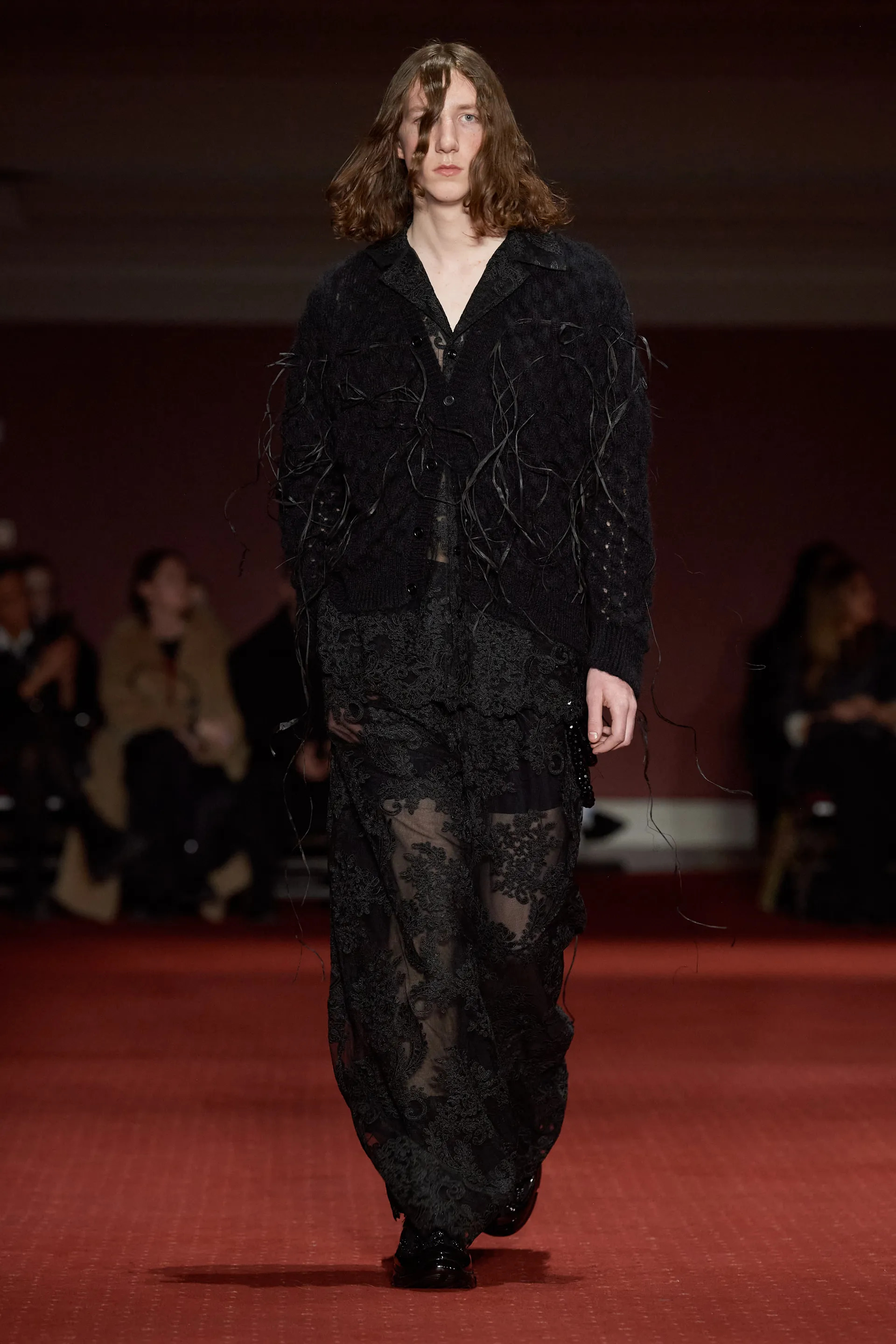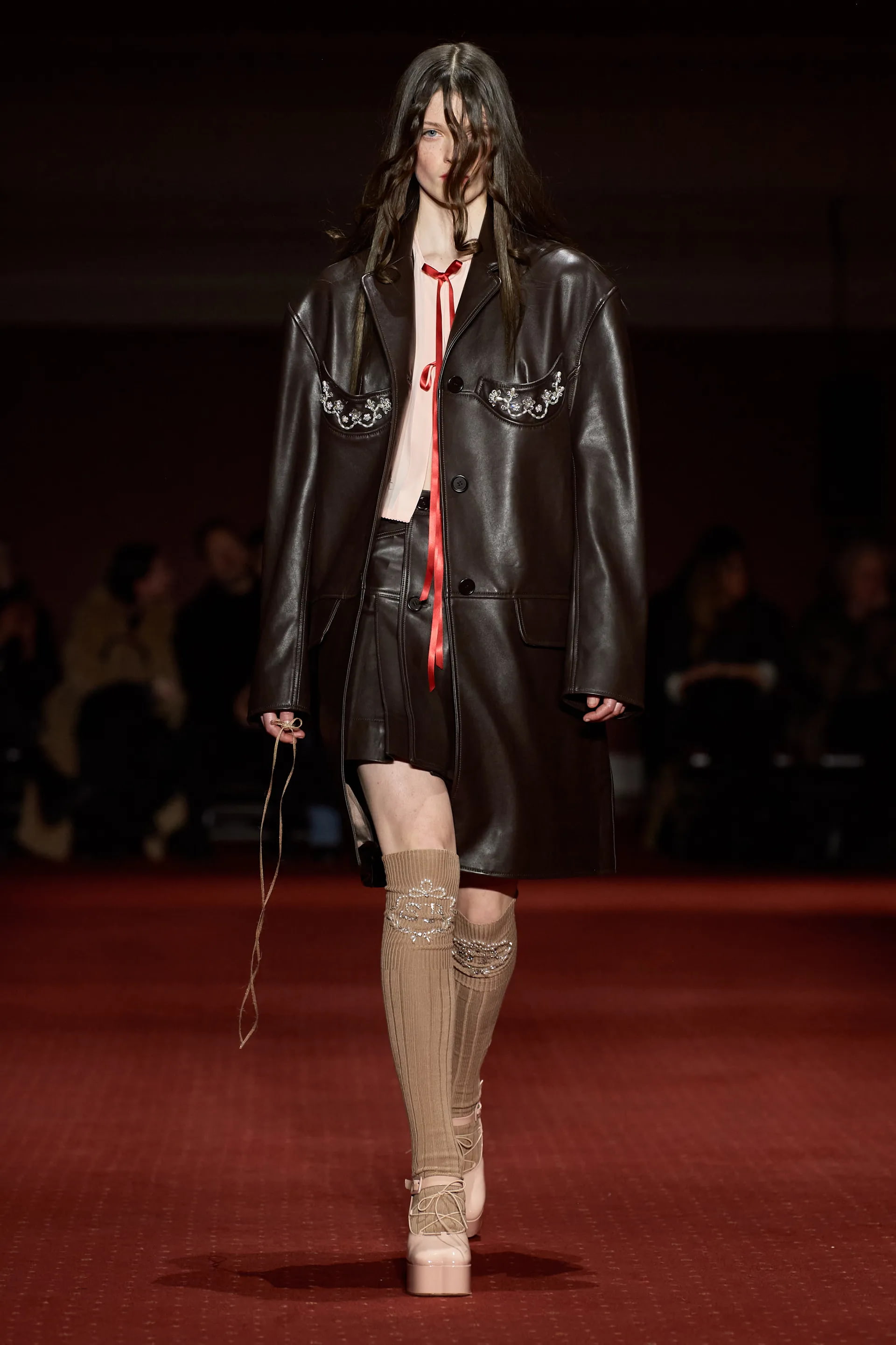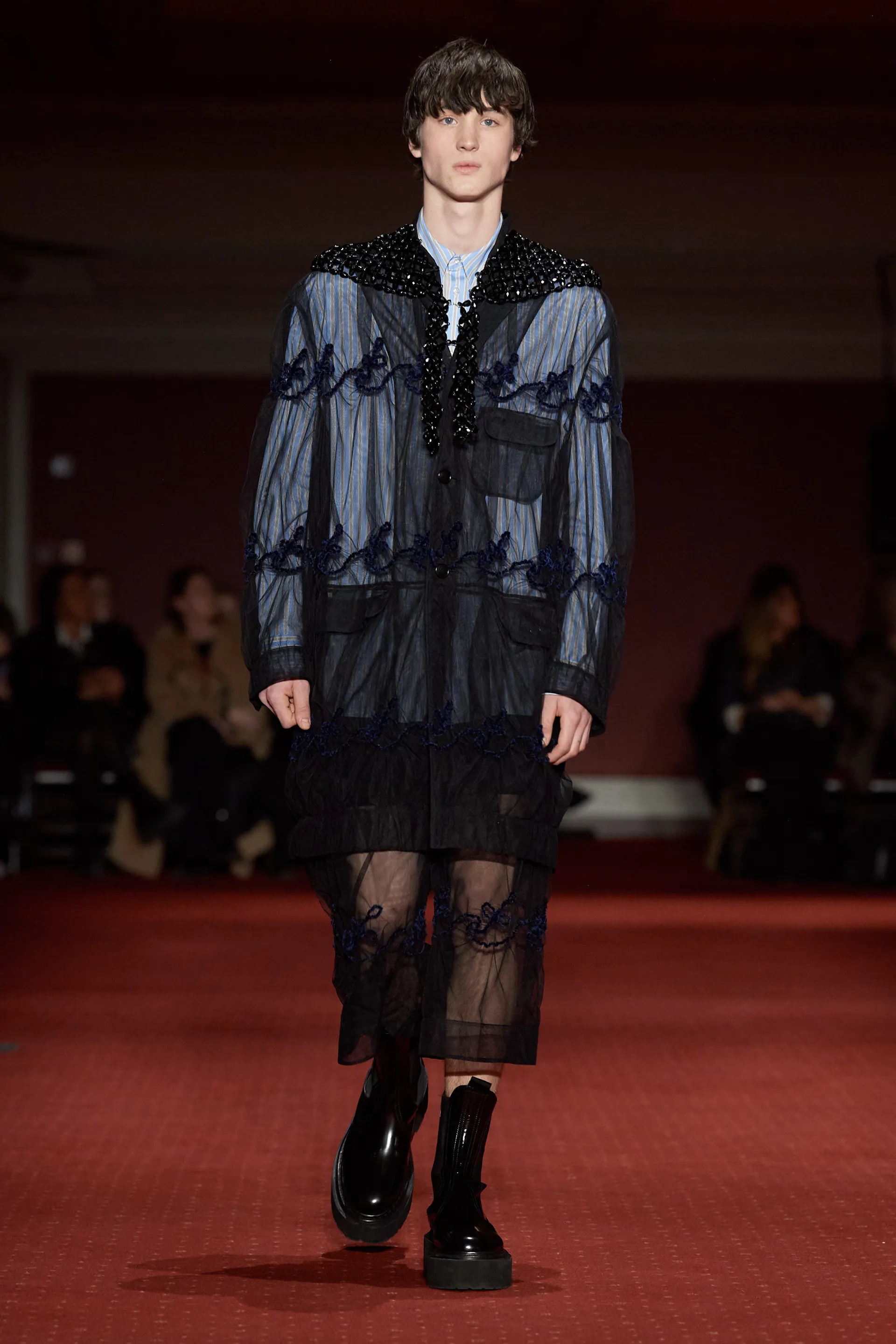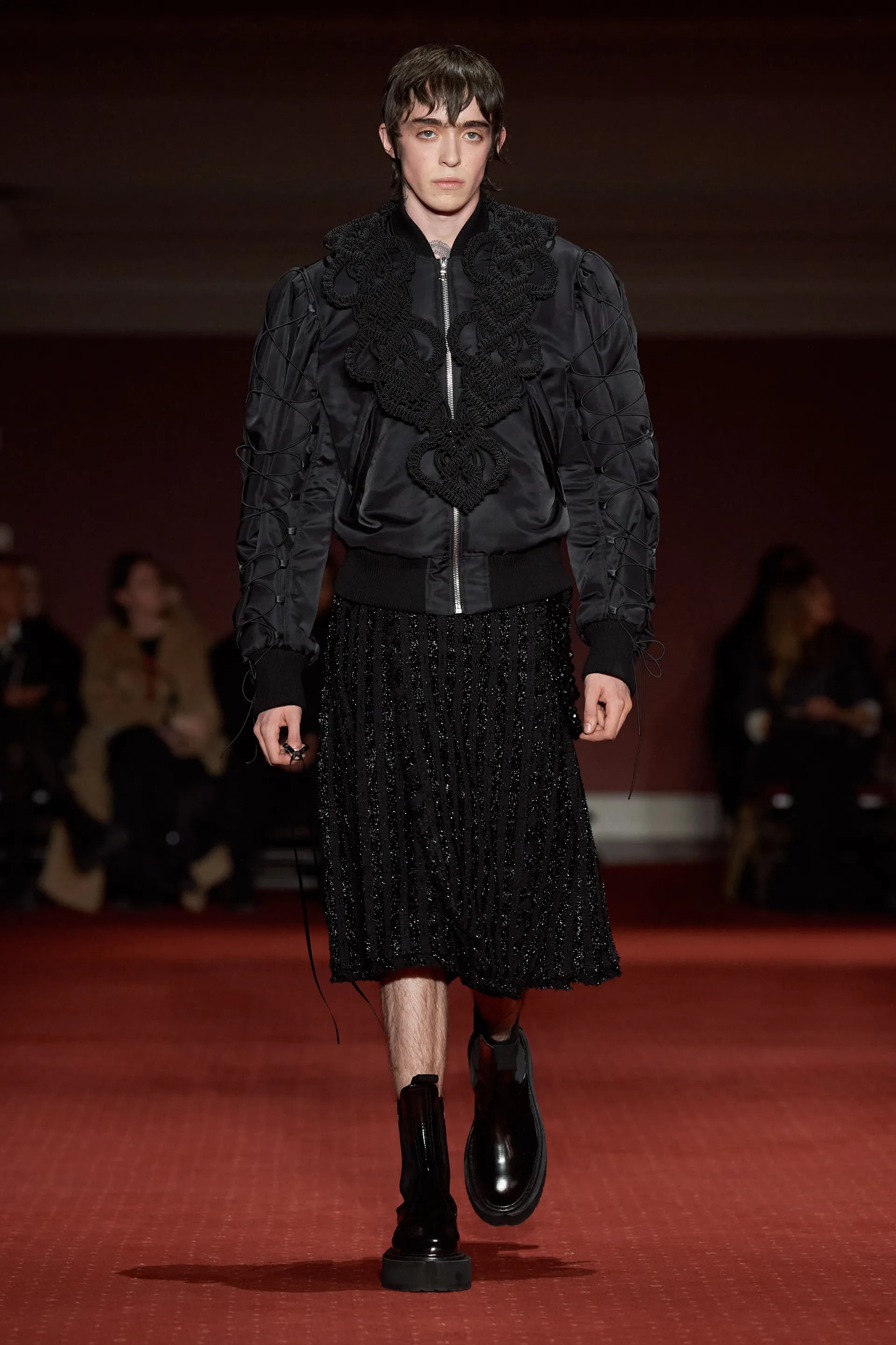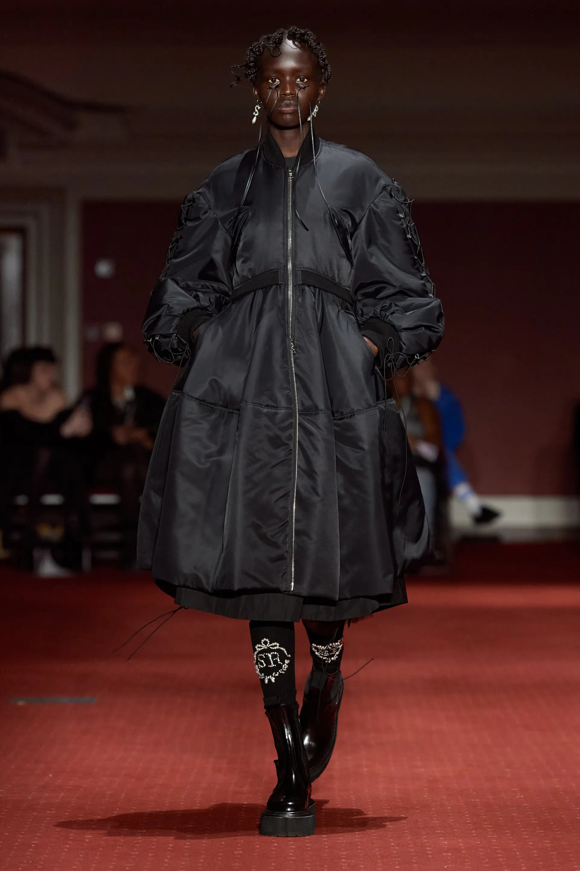 Об’ємні міді та мінісукні з криноліном, фактурні та реструктуровані класичні пальта і піджаки: це все досить класична історія для Simone Rocha. У цій колекції варто відмітити деталізацію до кожного луку: банти, бісер, вишивки на шкарептах та колготках, криноліни, наповнені сіном, квіткова вишивка паєтками та бісером, прикраси у вигляді кров’яних сліз, пухнасті балетки “Мері Джейн”. У прев’ю до колекції Сімон Роша зізналася, що ця колекція “змусила її по-новому оцінити технічну майстерність одягу”.