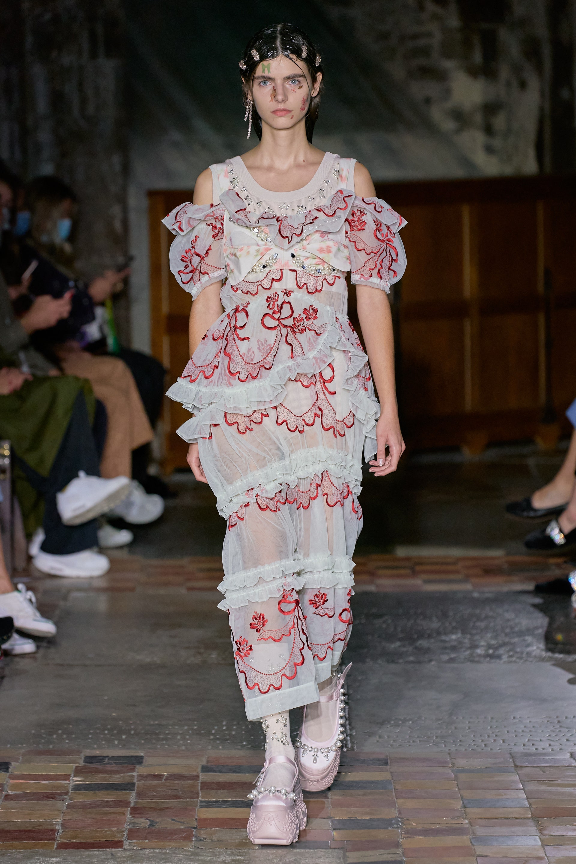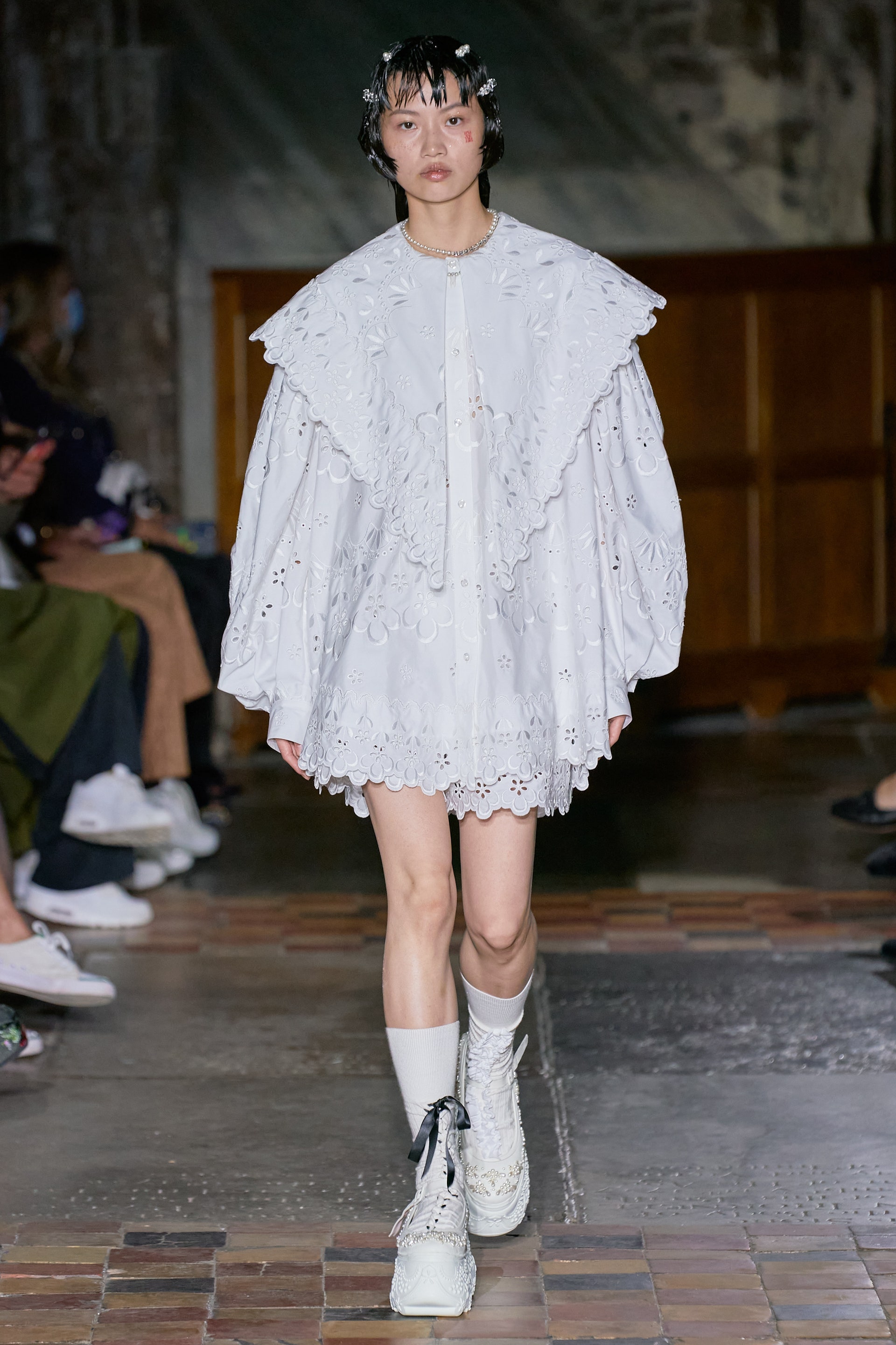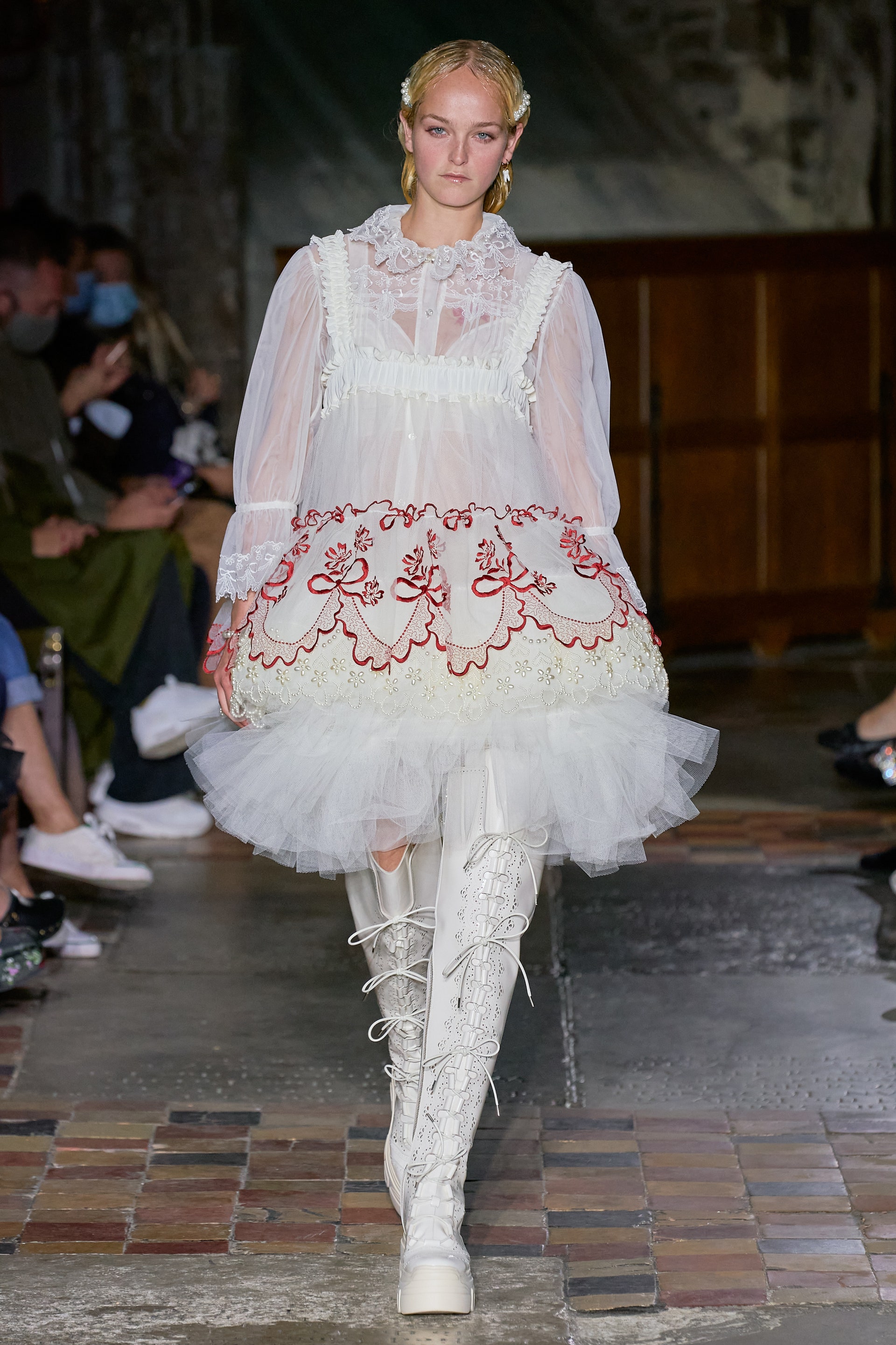 Симон Роша провела показ весенней коллекции в церкви Святого Варфоломея в лондонском Сити, посвятив его таинству появления на свет новой жизни. Симон, как и её коллега Молли Годдар, родила. Свою вторую дочь она назвала Ноа Роузес. Коллекция традиционно наполнена отсылками к исторической одежде, кукольными многослойными нарядами, которые теперь выглядят еще более нежно, отражая материнские чувства и любовь, которыми было наполнено сердце дизайнера во время беременности. Узнаваемая инфантильность при этом обрела новое звучание благодаря высоким ботфортам на шнуровке и частично обнаженным участкам тела — будущая весна, по версии Роша, принесет с собой еще больше чувственности и свободы.