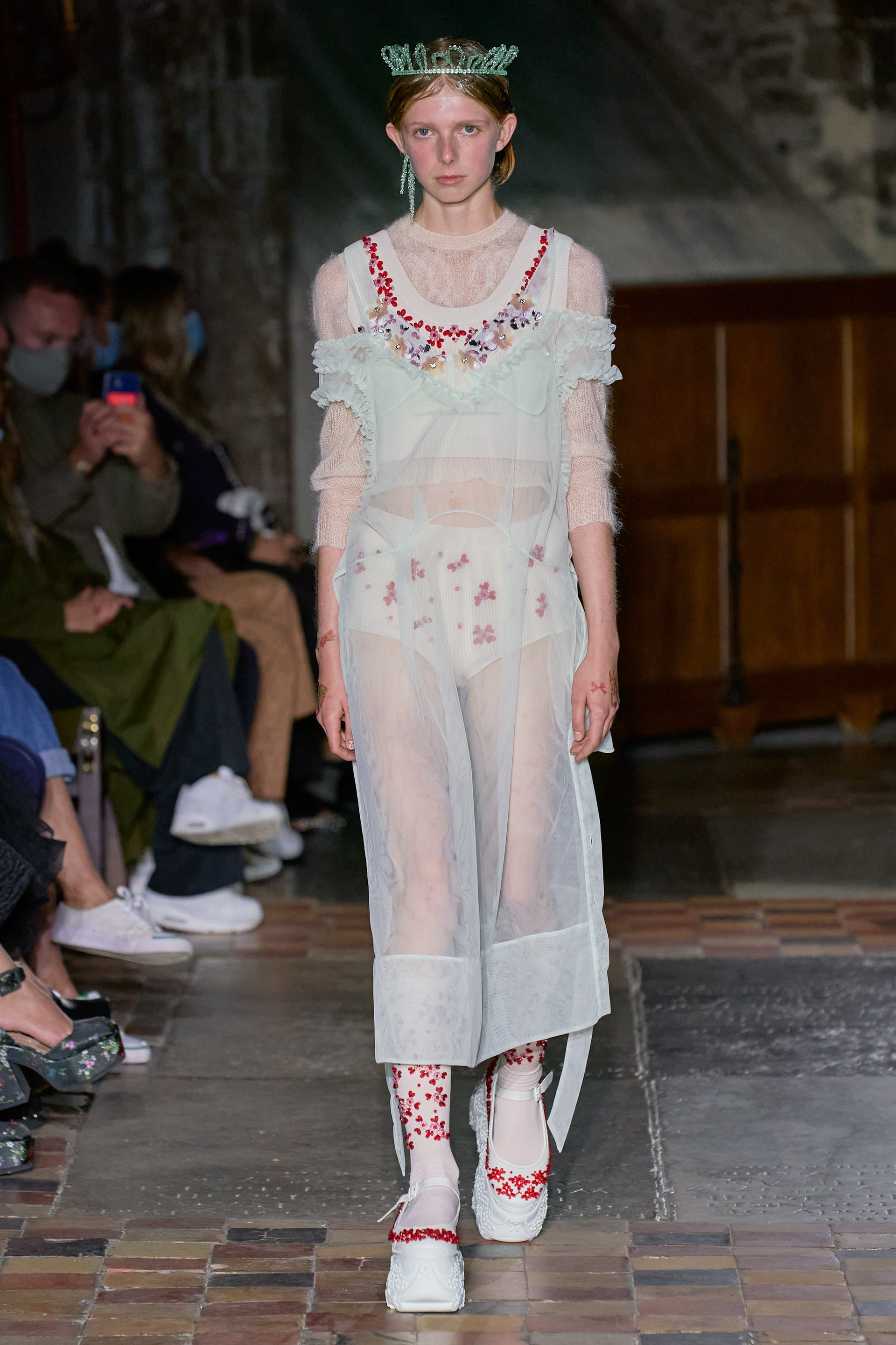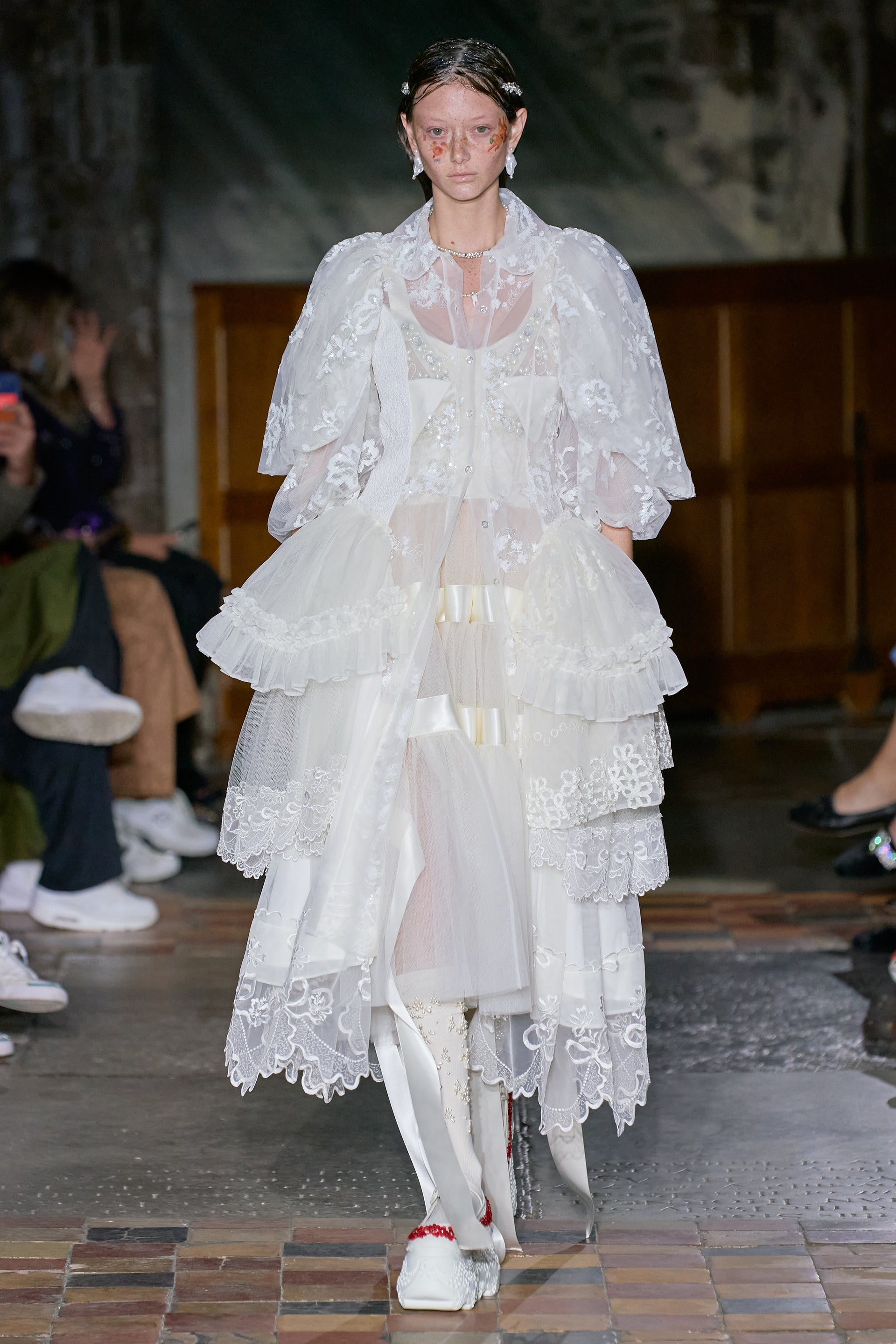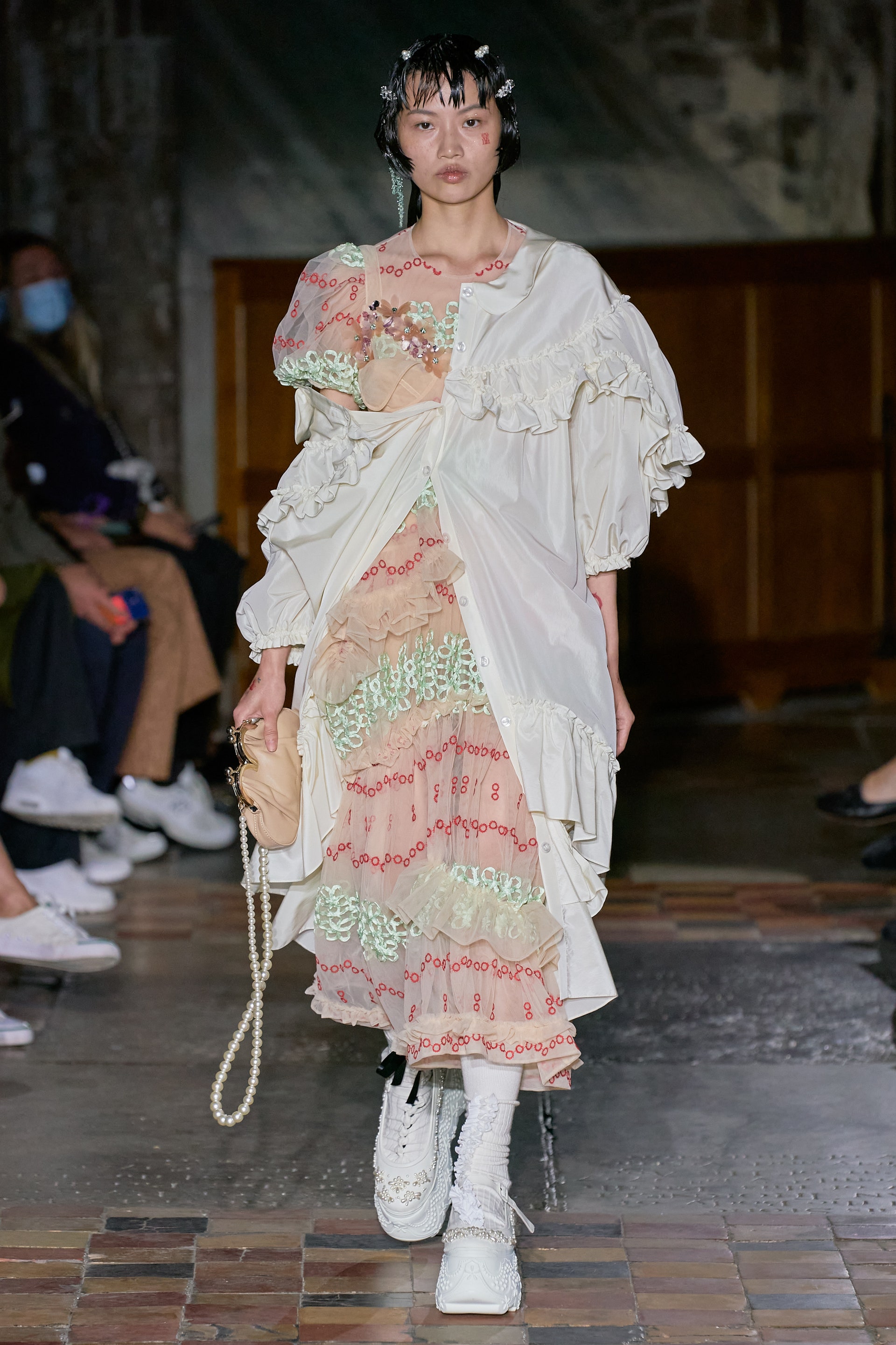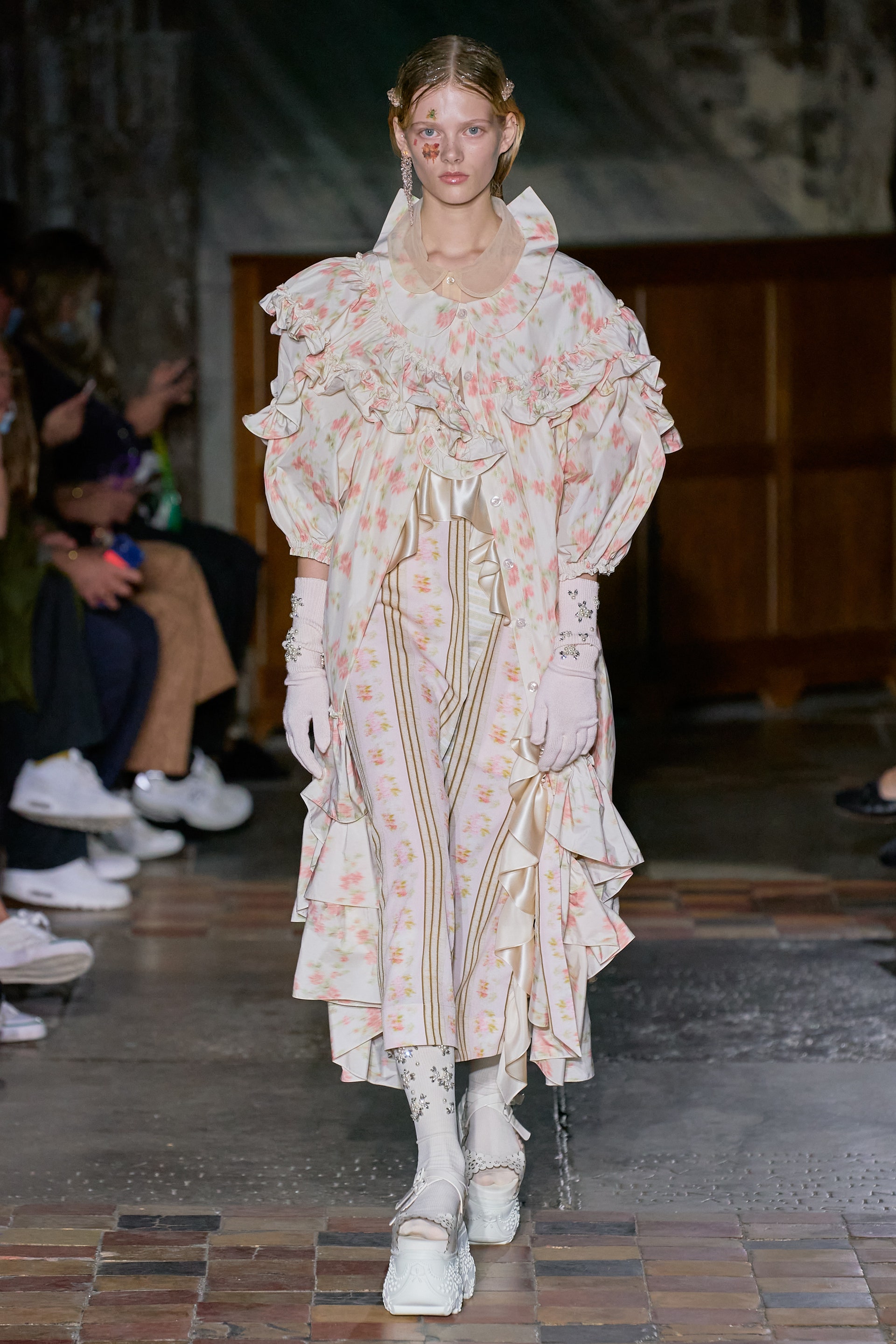 Симон Роша провела показ весенней коллекции в церкви Святого Варфоломея в лондонском Сити, посвятив его таинству появления на свет новой жизни. Симон, как и её коллега Молли Годдар, родила. Свою вторую дочь она назвала Ноа Роузес. Коллекция традиционно наполнена отсылками к исторической одежде, кукольными многослойными нарядами, которые теперь выглядят еще более нежно, отражая материнские чувства и любовь, которыми было наполнено сердце дизайнера во время беременности. Узнаваемая инфантильность при этом обрела новое звучание благодаря высоким ботфортам на шнуровке и частично обнаженным участкам тела — будущая весна, по версии Роша, принесет с собой еще больше чувственности и свободы.