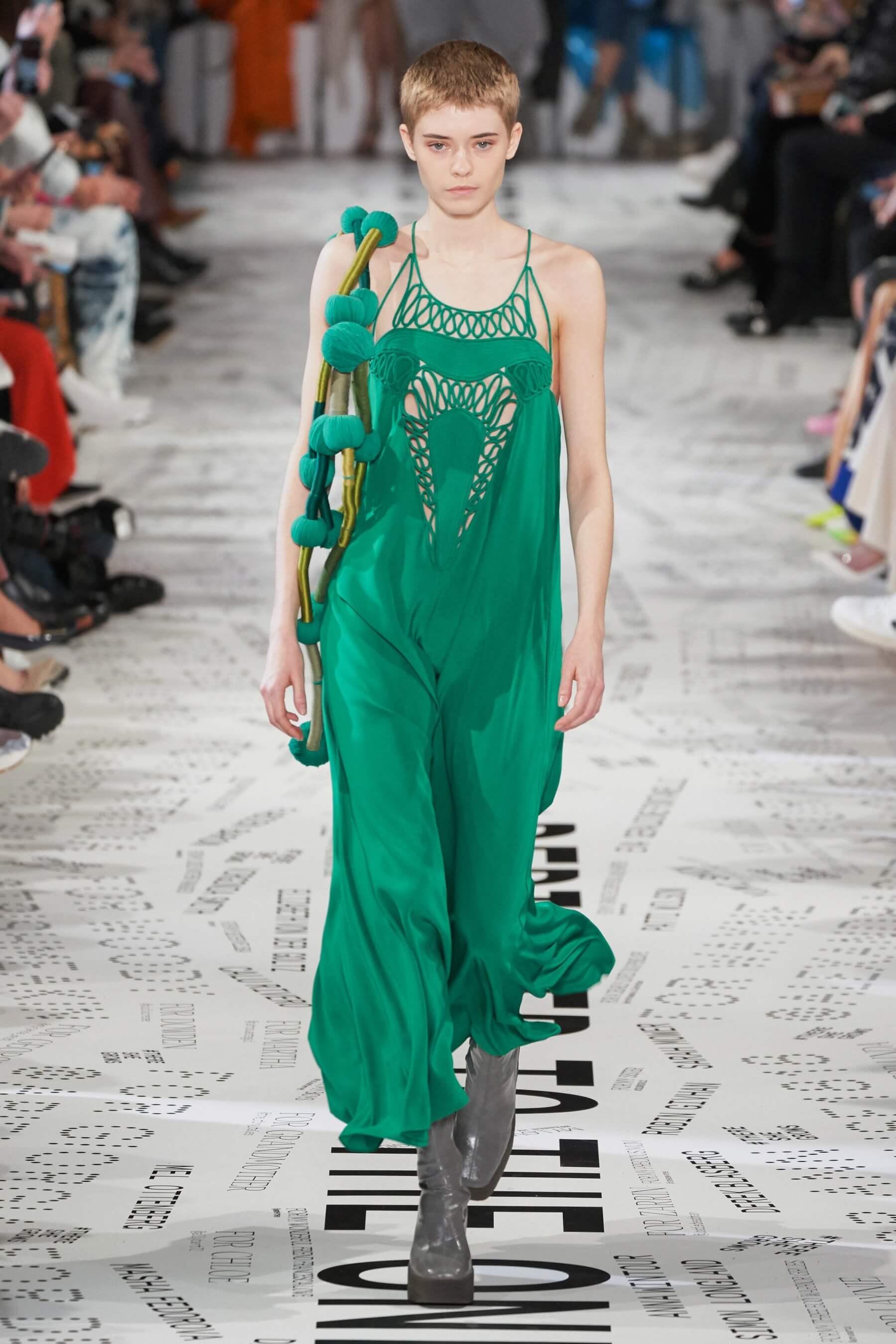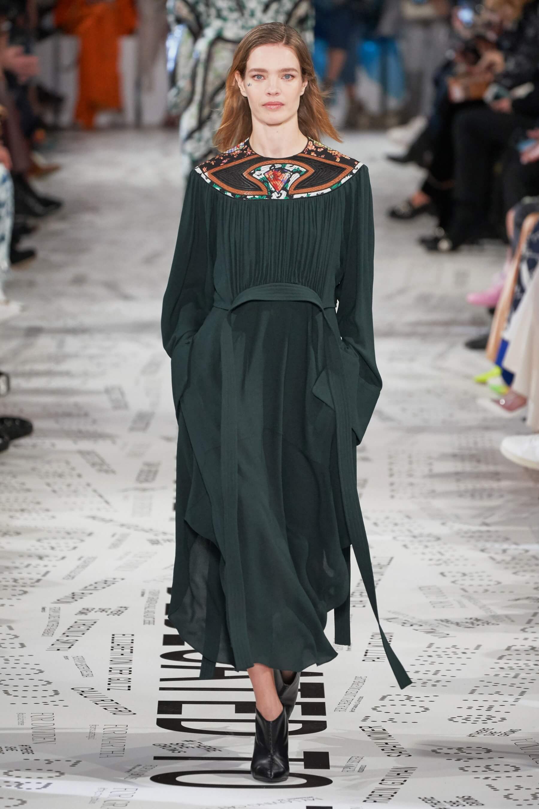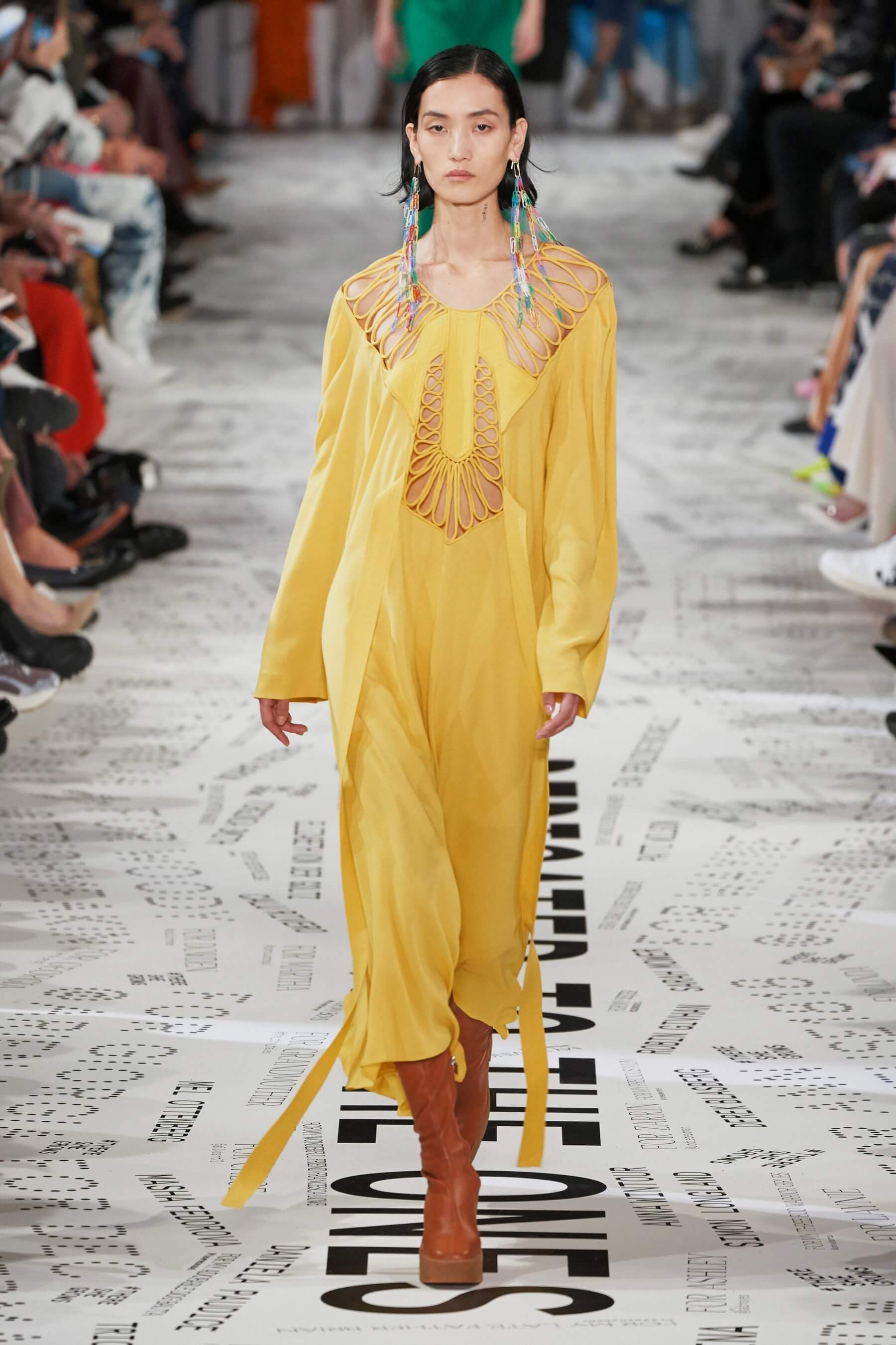 Лидер среди брендов в сфере устойчивого производства, Stella McCartney представили новую коллекцию, в которой заложен важный посыл — призыв сохранить тропические леса в Индонезии, в которых вырубают более 150 миллионов деревьев ежегодно для производства материалов. Для создания коллекции Стелла Маккартни использовала ткани, полученные путем переработки урожайных отходов в сертифицированных лесных зонах Швеции, винтажные детали одежды и остатки прошлых коллекций. На подиуме в парижской опере Гарнье дважды появилась модель Наталья Водянова, у которой недавно был день рождения, Кайя Гербер и Крис Грикайте. Показ пестрил яркими шубами из экомеха, удивительно красивыми и жизнерадостными платьями из разноцветных лент и скульптурными костюмами природных оттенков. В качестве поясов и шарфов были использованы этнические жгуты из цветных нитей, а пальто с узорным тиснением напоминало резные деревянные перекрытия или фрагменты дверей, покрытых лаком.