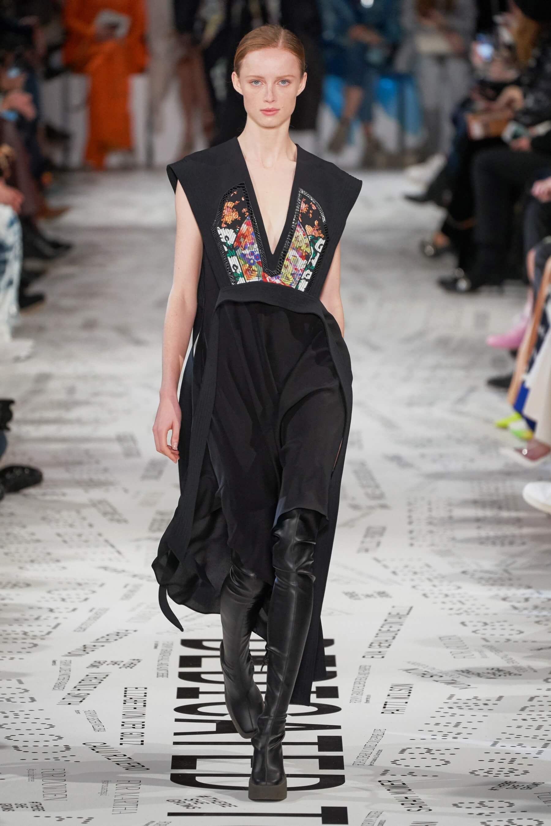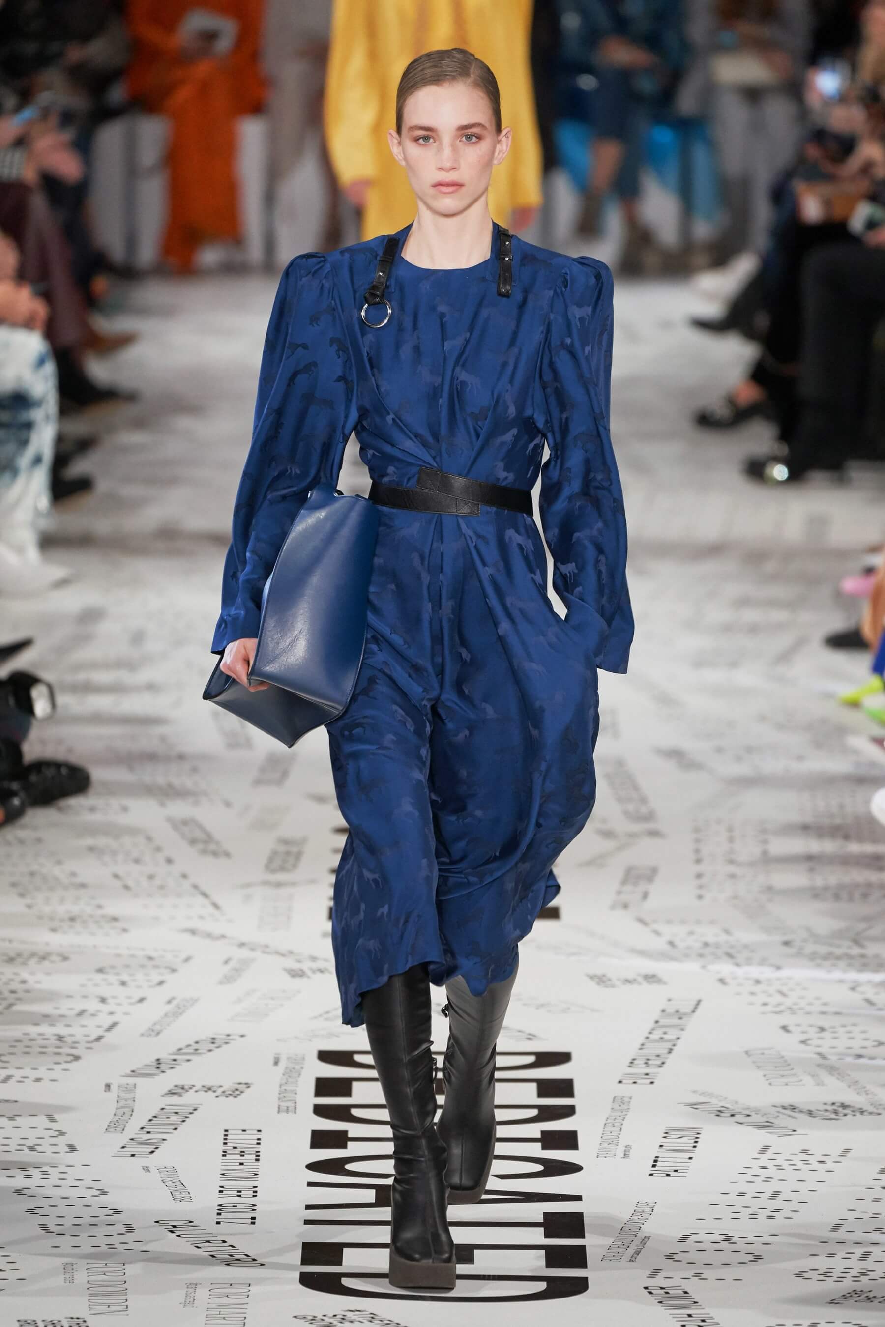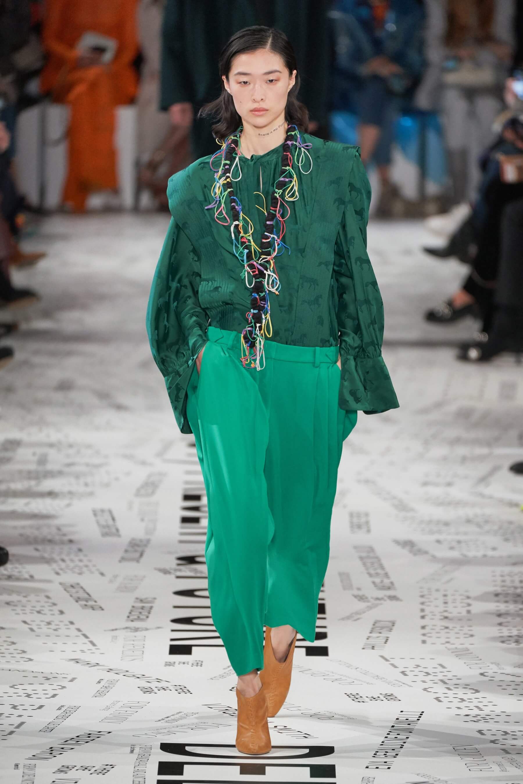 Лидер среди брендов в сфере устойчивого производства, Stella McCartney представили новую коллекцию, в которой заложен важный посыл — призыв сохранить тропические леса в Индонезии, в которых вырубают более 150 миллионов деревьев ежегодно для производства материалов. Для создания коллекции Стелла Маккартни использовала ткани, полученные путем переработки урожайных отходов в сертифицированных лесных зонах Швеции, винтажные детали одежды и остатки прошлых коллекций. На подиуме в парижской опере Гарнье дважды появилась модель Наталья Водянова, у которой недавно был день рождения, Кайя Гербер и Крис Грикайте. Показ пестрил яркими шубами из экомеха, удивительно красивыми и жизнерадостными платьями из разноцветных лент и скульптурными костюмами природных оттенков. В качестве поясов и шарфов были использованы этнические жгуты из цветных нитей, а пальто с узорным тиснением напоминало резные деревянные перекрытия или фрагменты дверей, покрытых лаком.