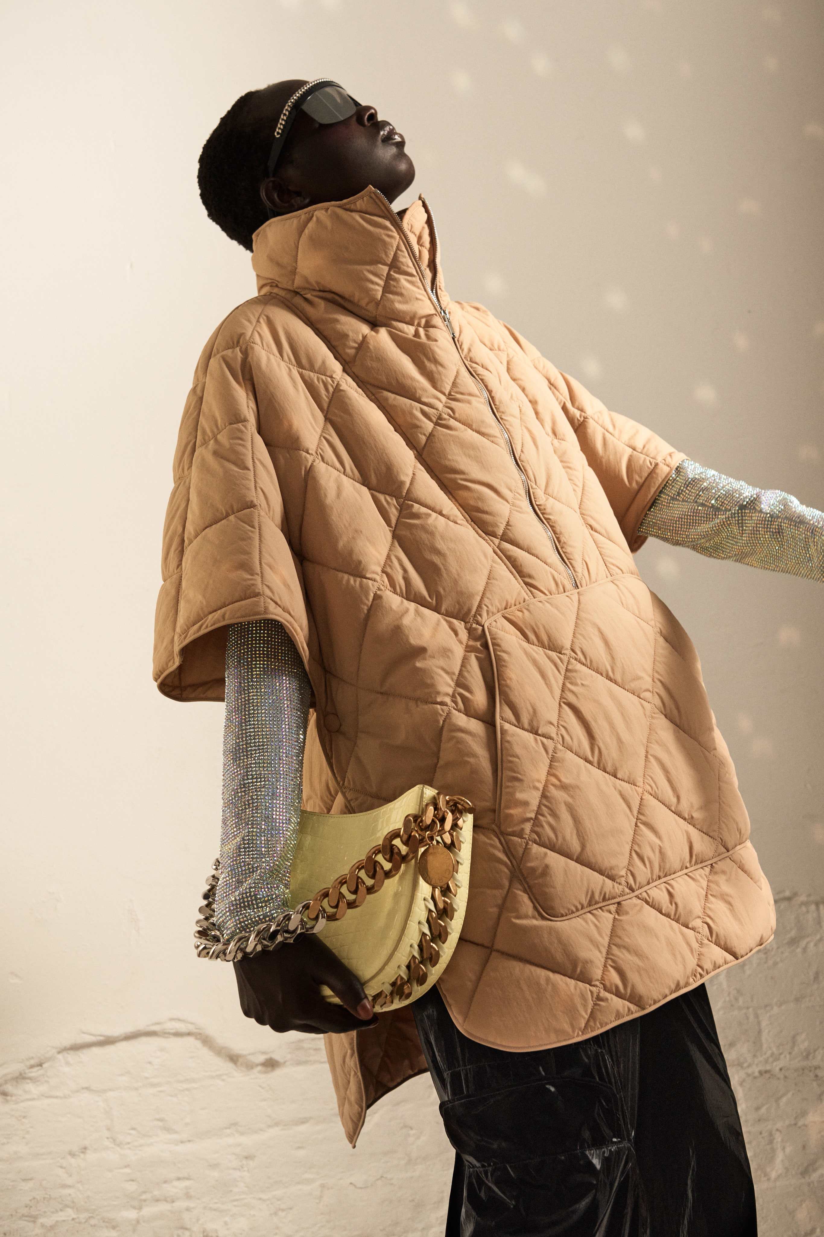 Сверкающее платье в стиле диско Стелла Маккартни надевает поверх лыжных брюк, шорты со вставками из гипюра дополняет спортивной флисовой курткой, а платье мини в драпировках — лыжными очками. Дизайнер подхватила дорожно-туристические мотивы будущего сезона и представила свою версию гардероба для вечеринки в заснеженных Альпах.
