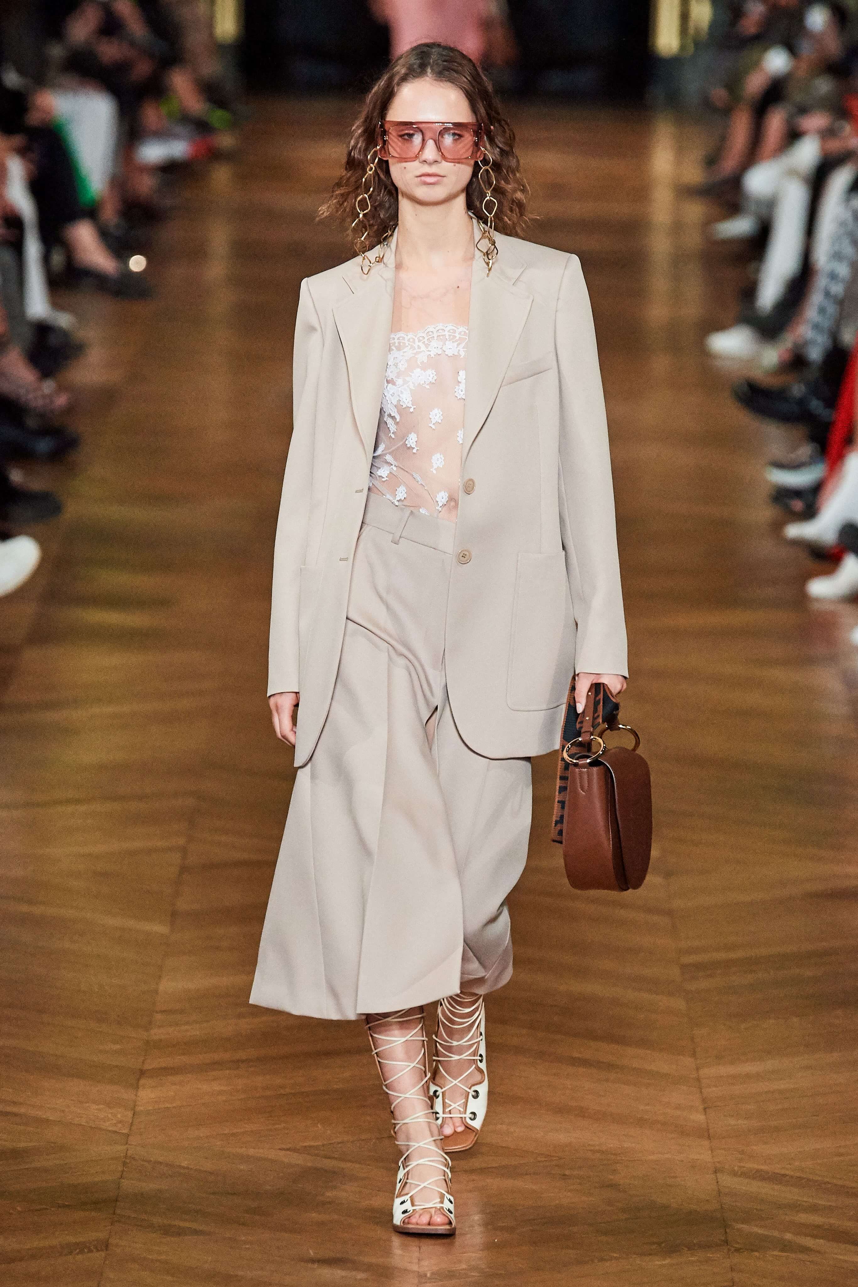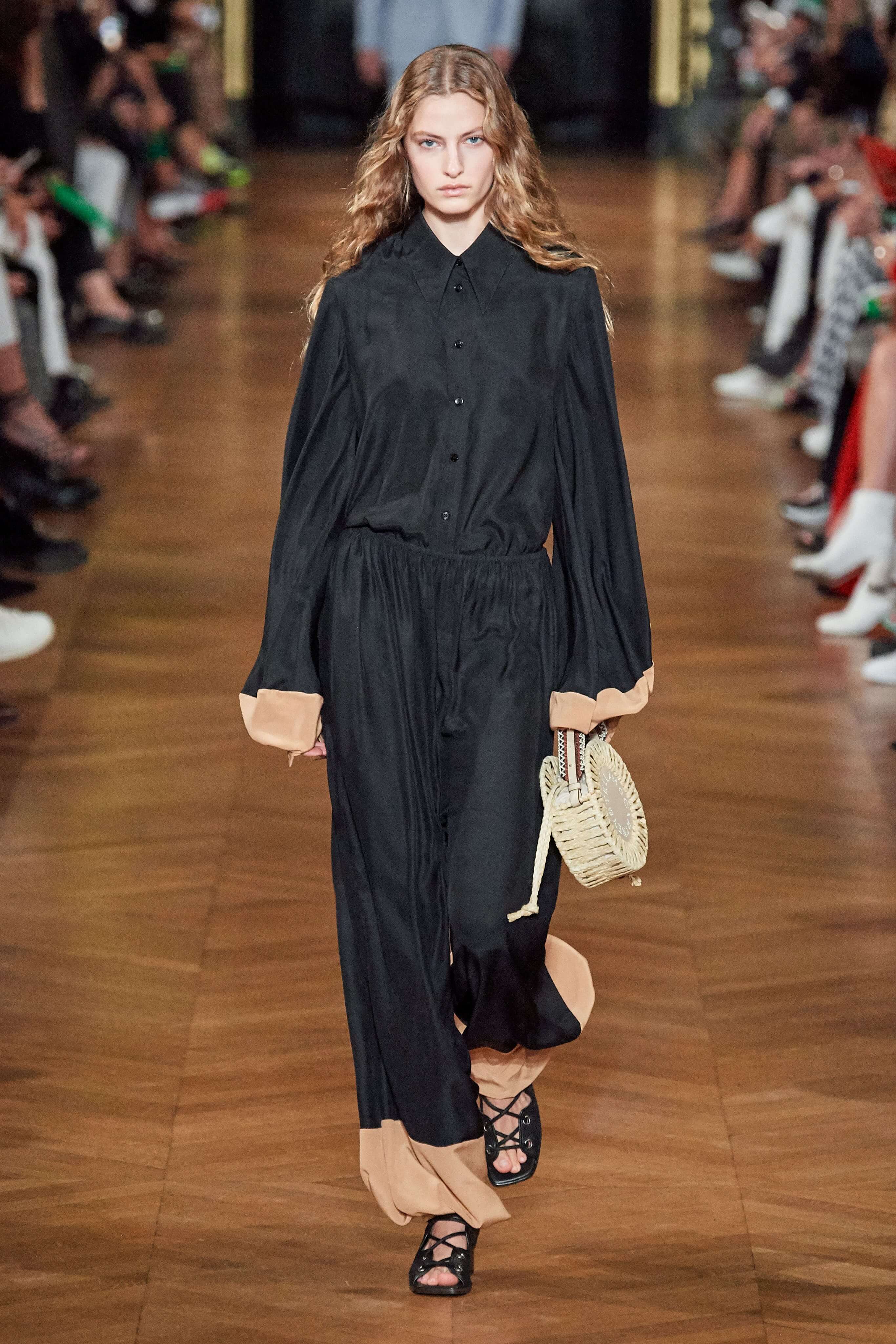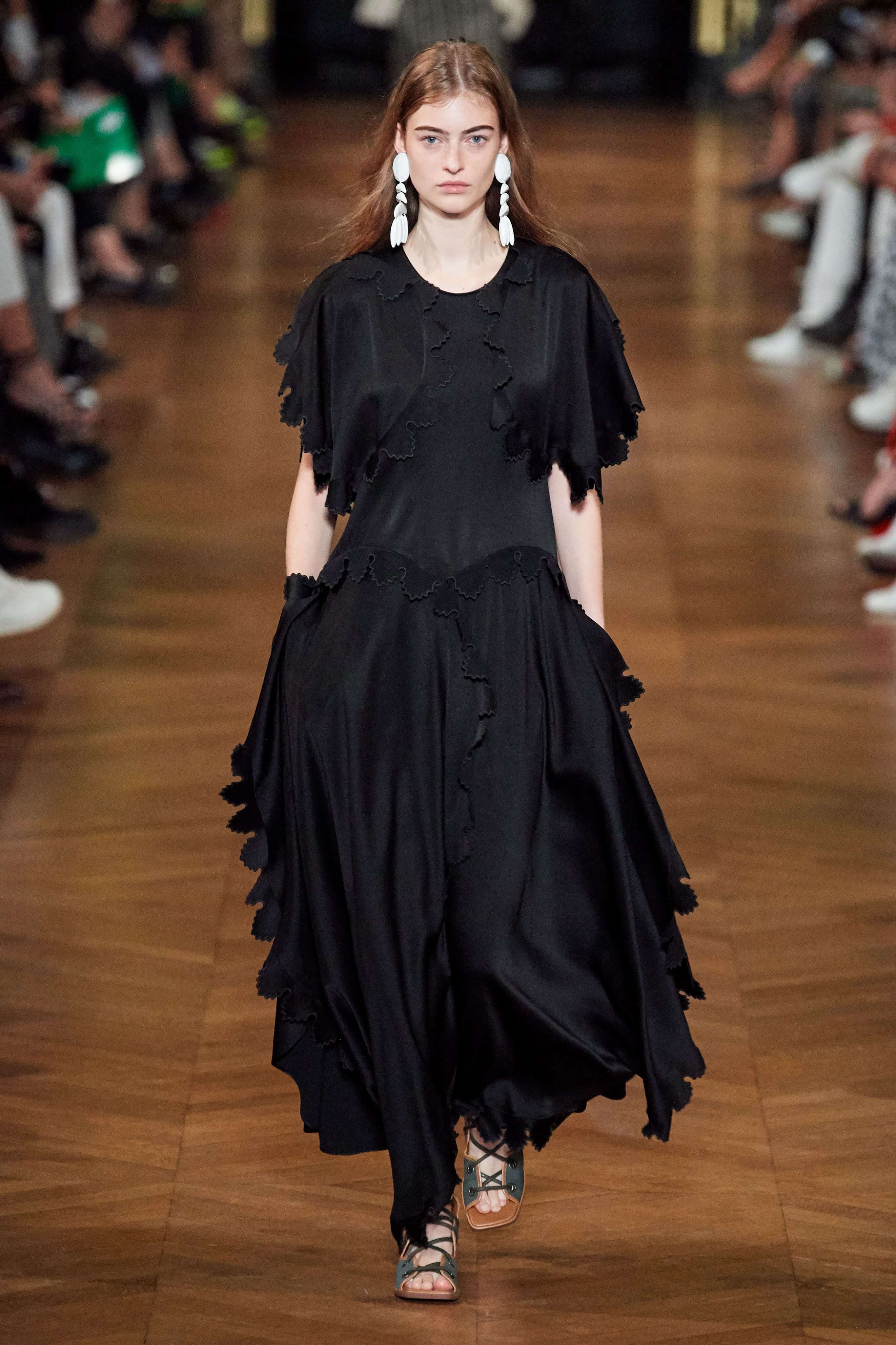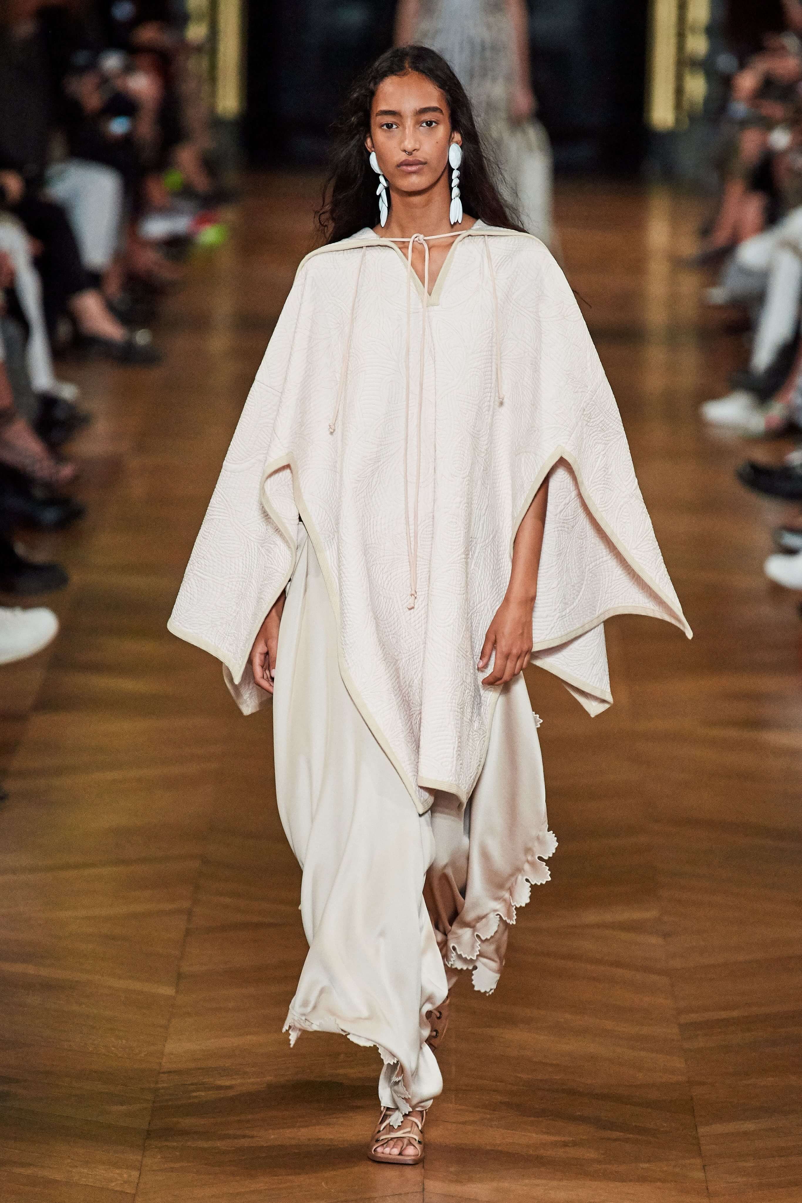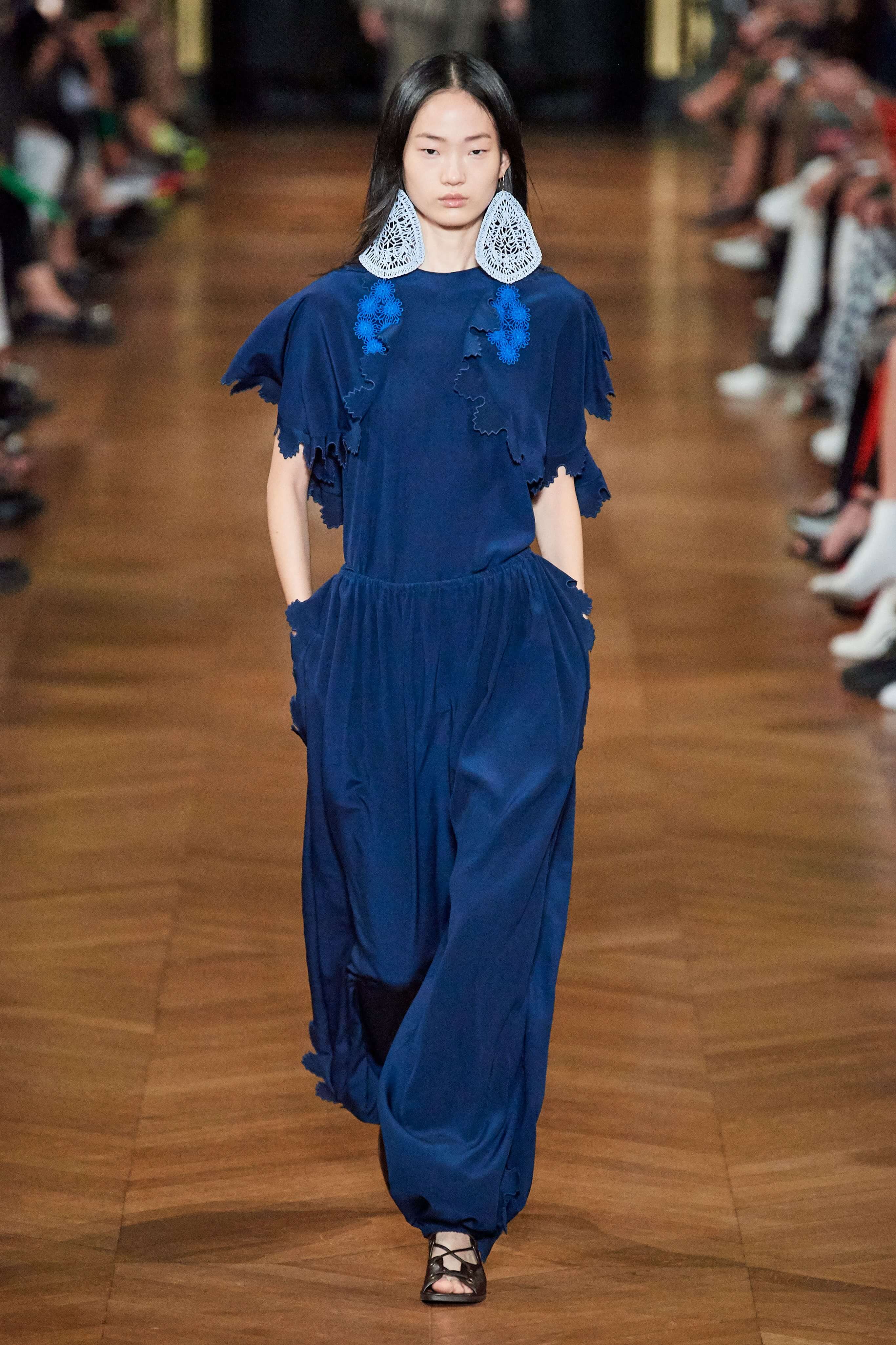 Вещи из коллекции Стеллы Маккартни нам всем будут нужны будущей весной: это женственные блузы нежных оттенков с рукавами-крыльями и резными зубчатыми краями, уютные платья-халаты в ориентальных узорах, мягкие платья из трикотажа с люрексом, прозрачные кружевные топы, надетые под расслабленные околоделовые костюмы, романтичные тренчи и "рабочие" жилеты с накладными карманами и поясами-канатами, с кисточками на конце. В линии аксессуаров – кепки-блейзеры из сетки, сумки-мешки, очки на цепях в стиле 70-х, деревянные серьги и серьги из связанных крючком кружевных салфеток.