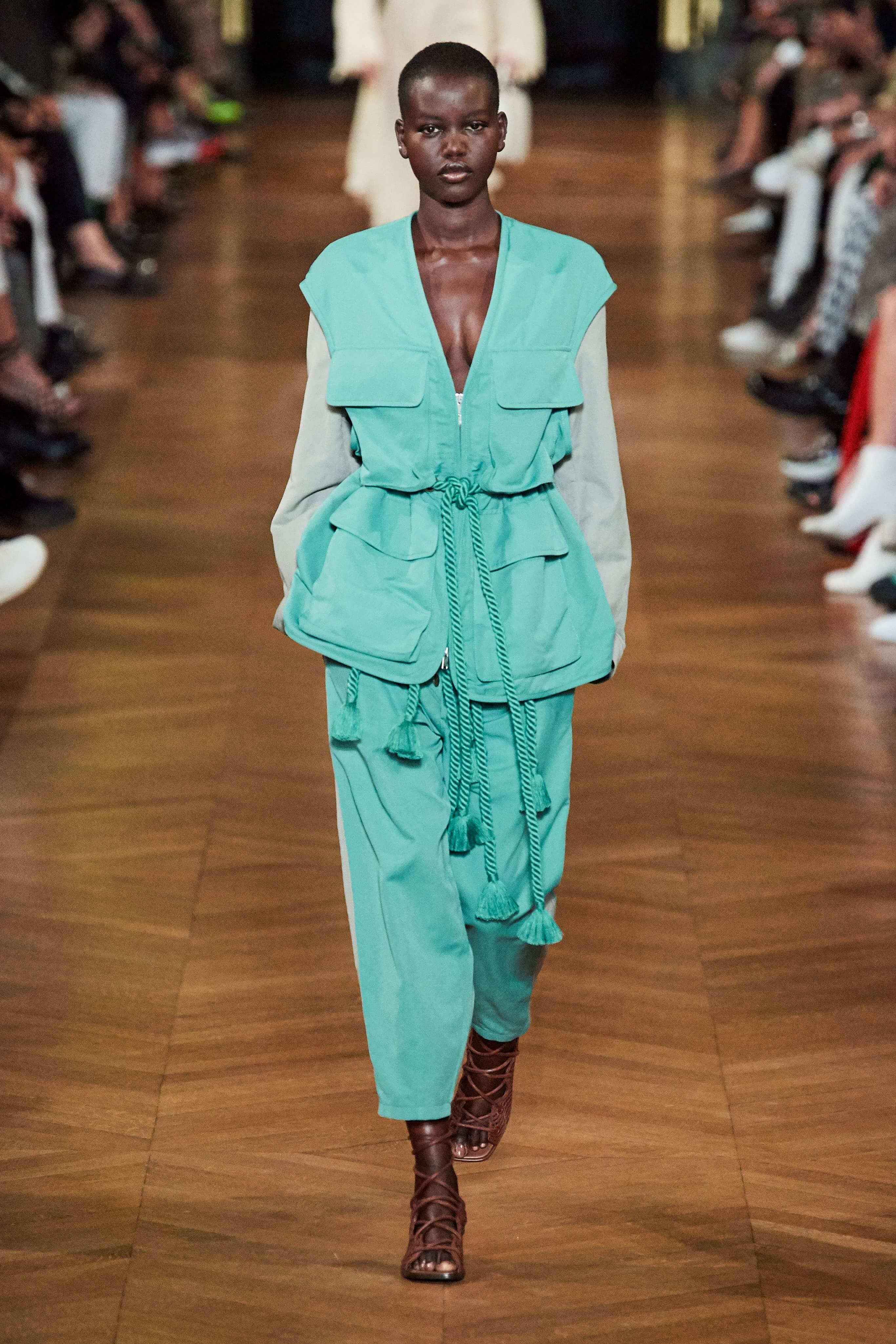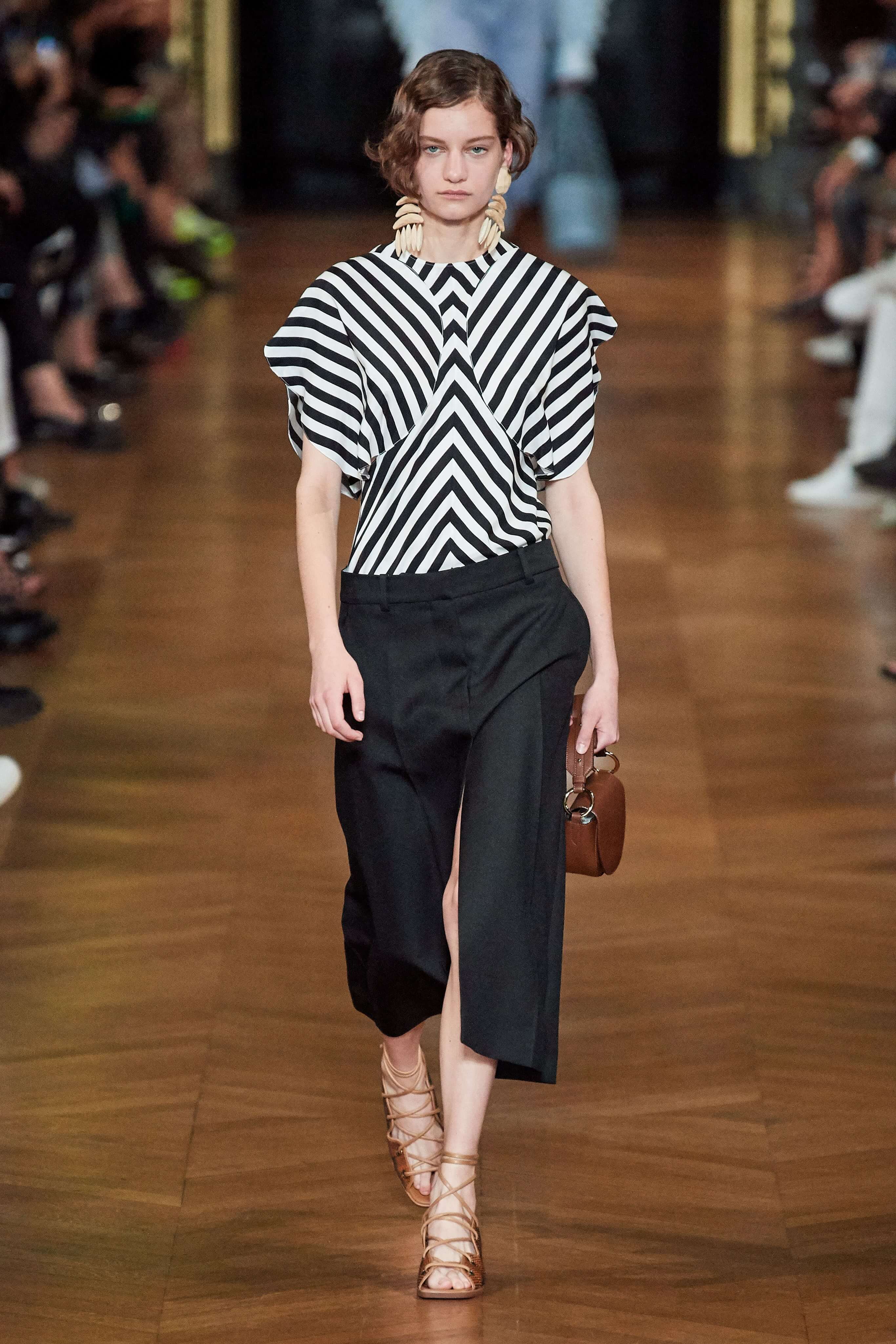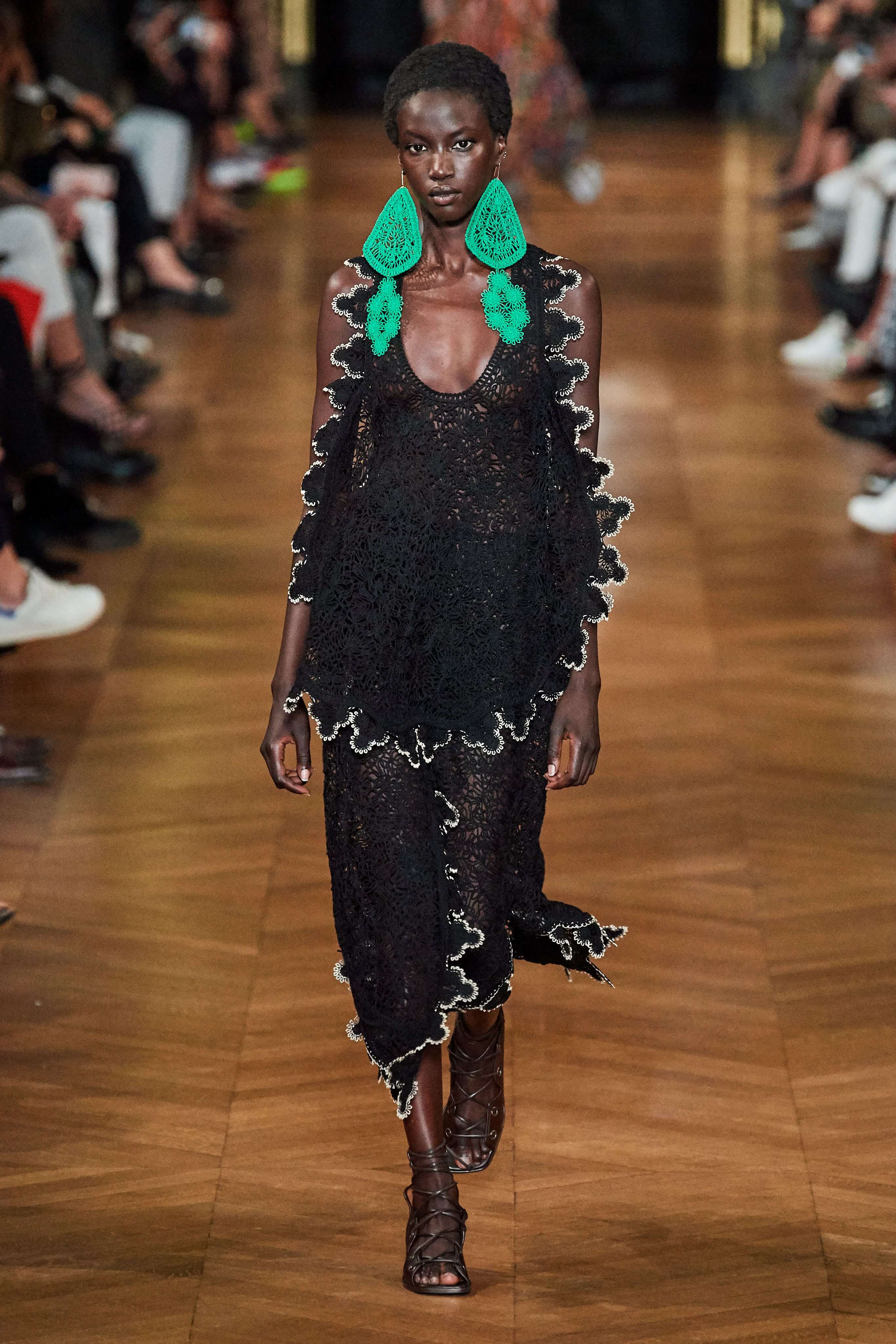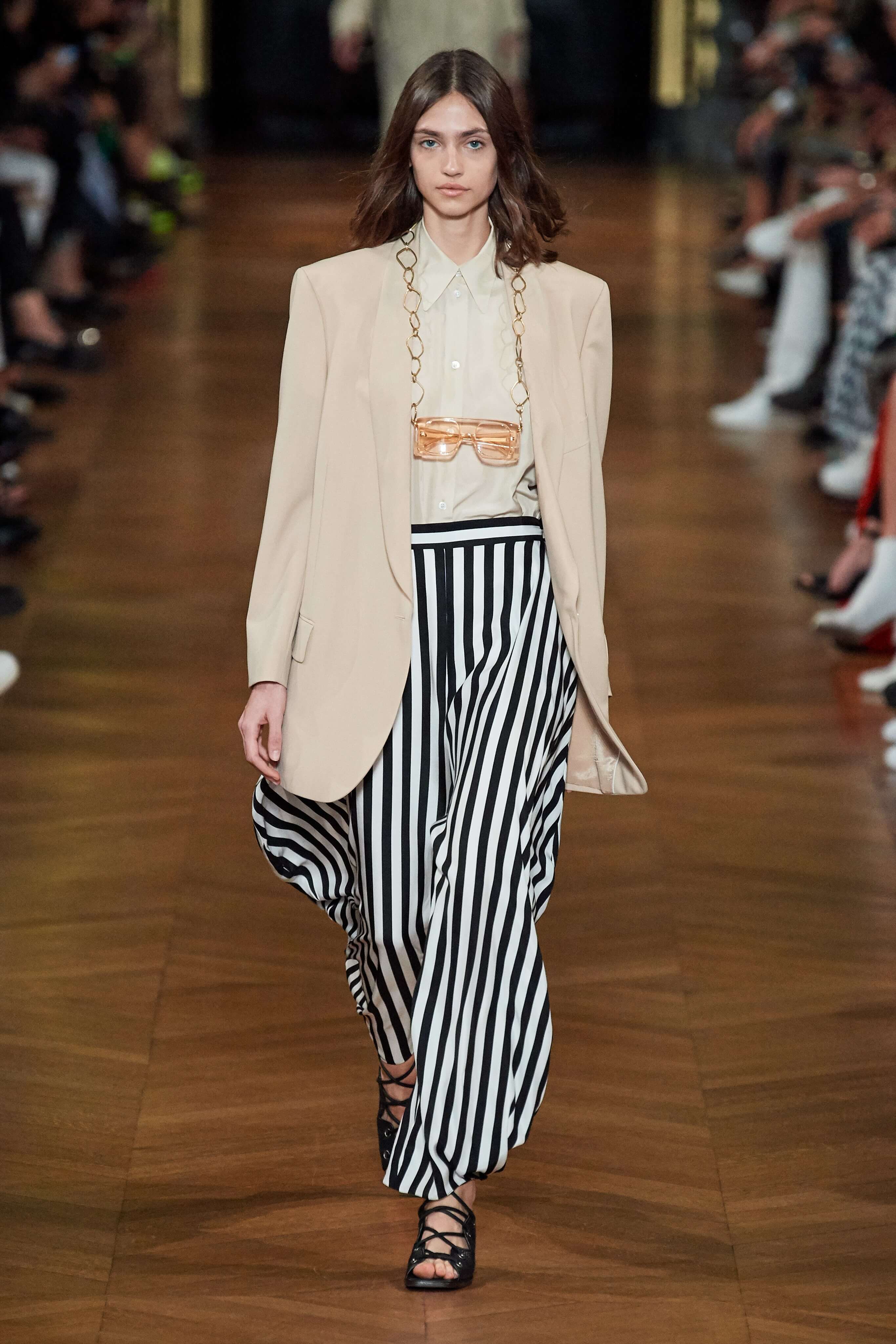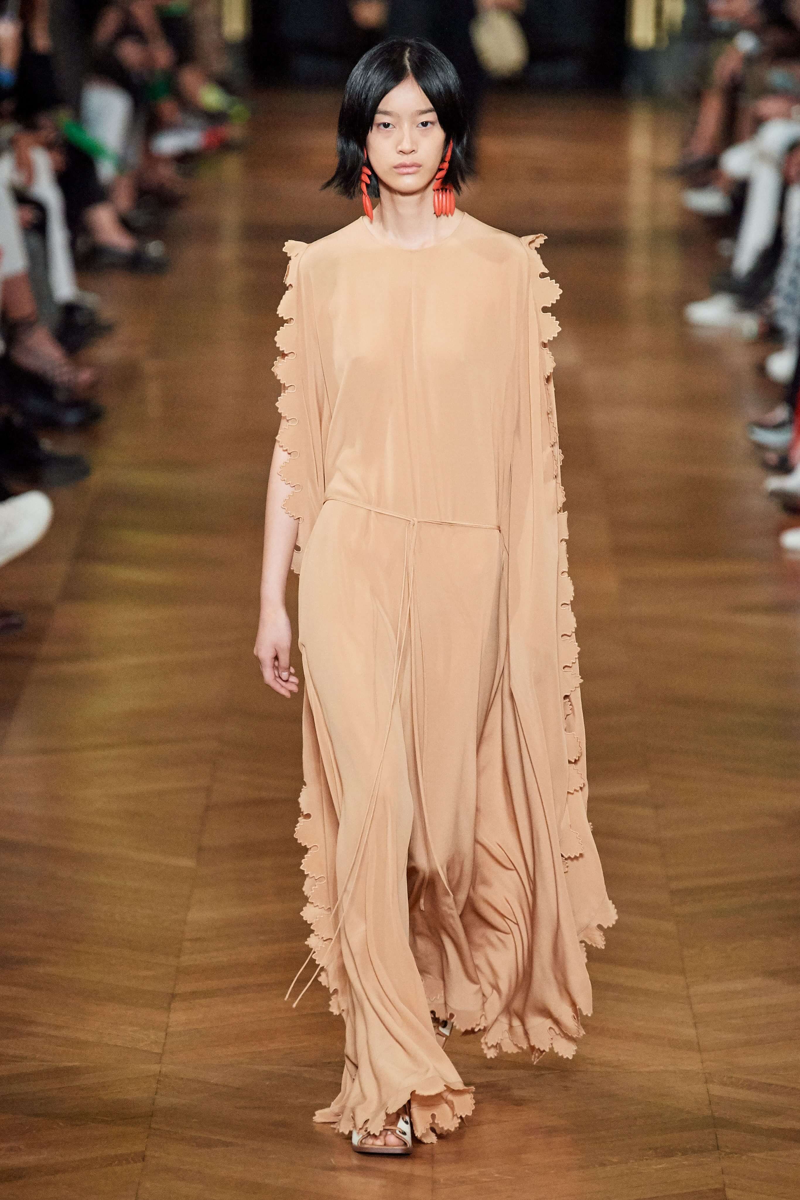 Вещи из коллекции Стеллы Маккартни нам всем будут нужны будущей весной: это женственные блузы нежных оттенков с рукавами-крыльями и резными зубчатыми краями, уютные платья-халаты в ориентальных узорах, мягкие платья из трикотажа с люрексом, прозрачные кружевные топы, надетые под расслабленные околоделовые костюмы, романтичные тренчи и "рабочие" жилеты с накладными карманами и поясами-канатами, с кисточками на конце. В линии аксессуаров – кепки-блейзеры из сетки, сумки-мешки, очки на цепях в стиле 70-х, деревянные серьги и серьги из связанных крючком кружевных салфеток.