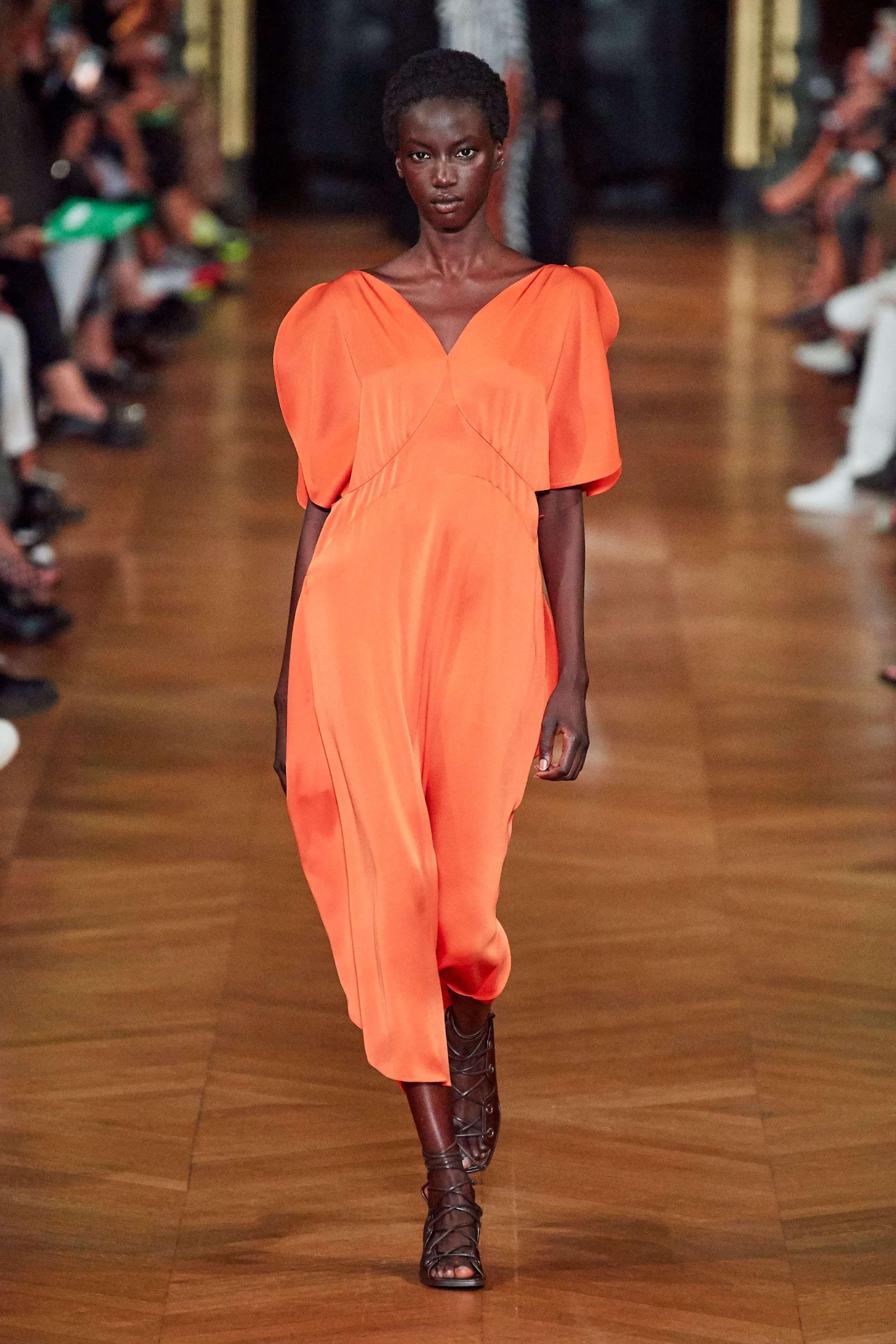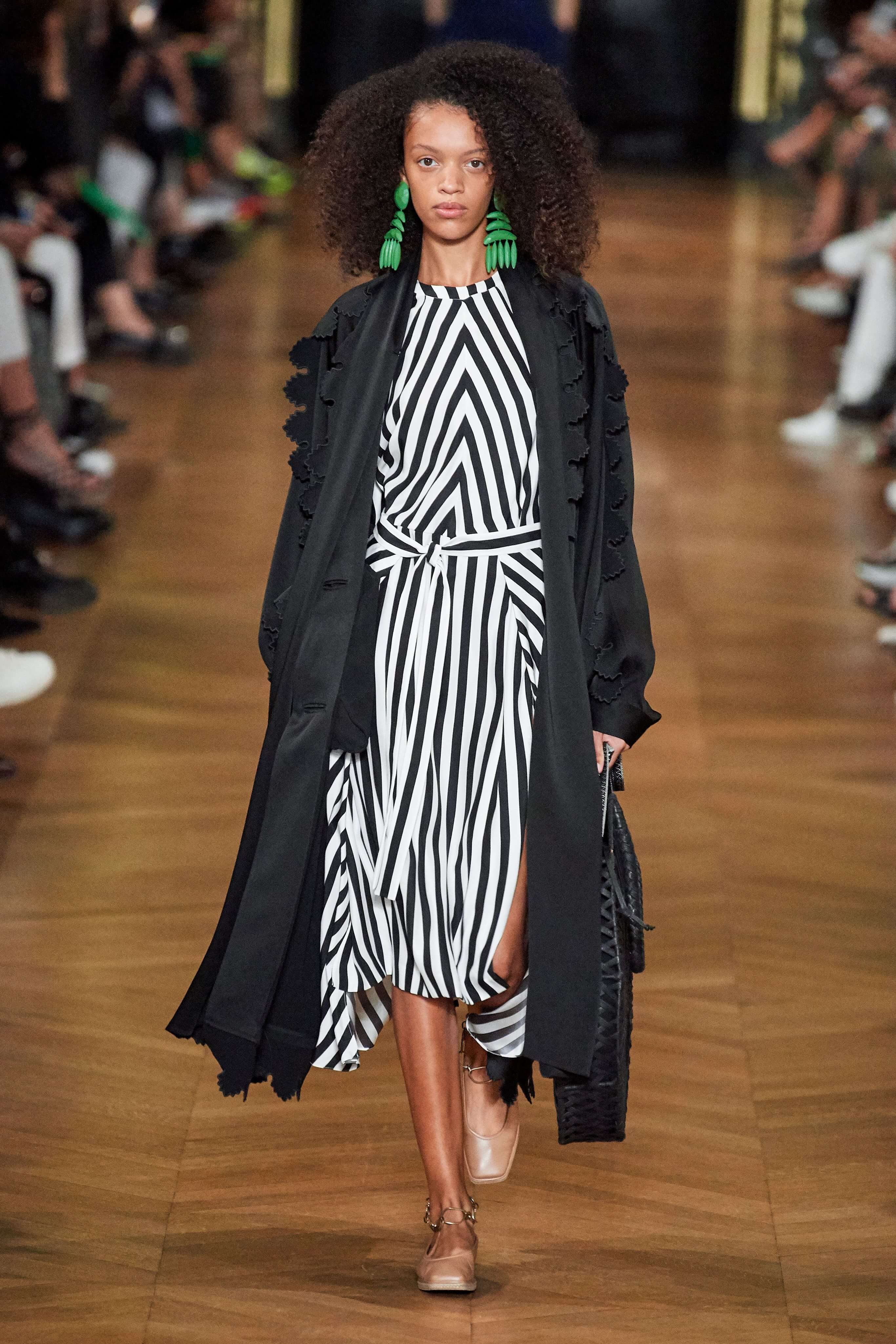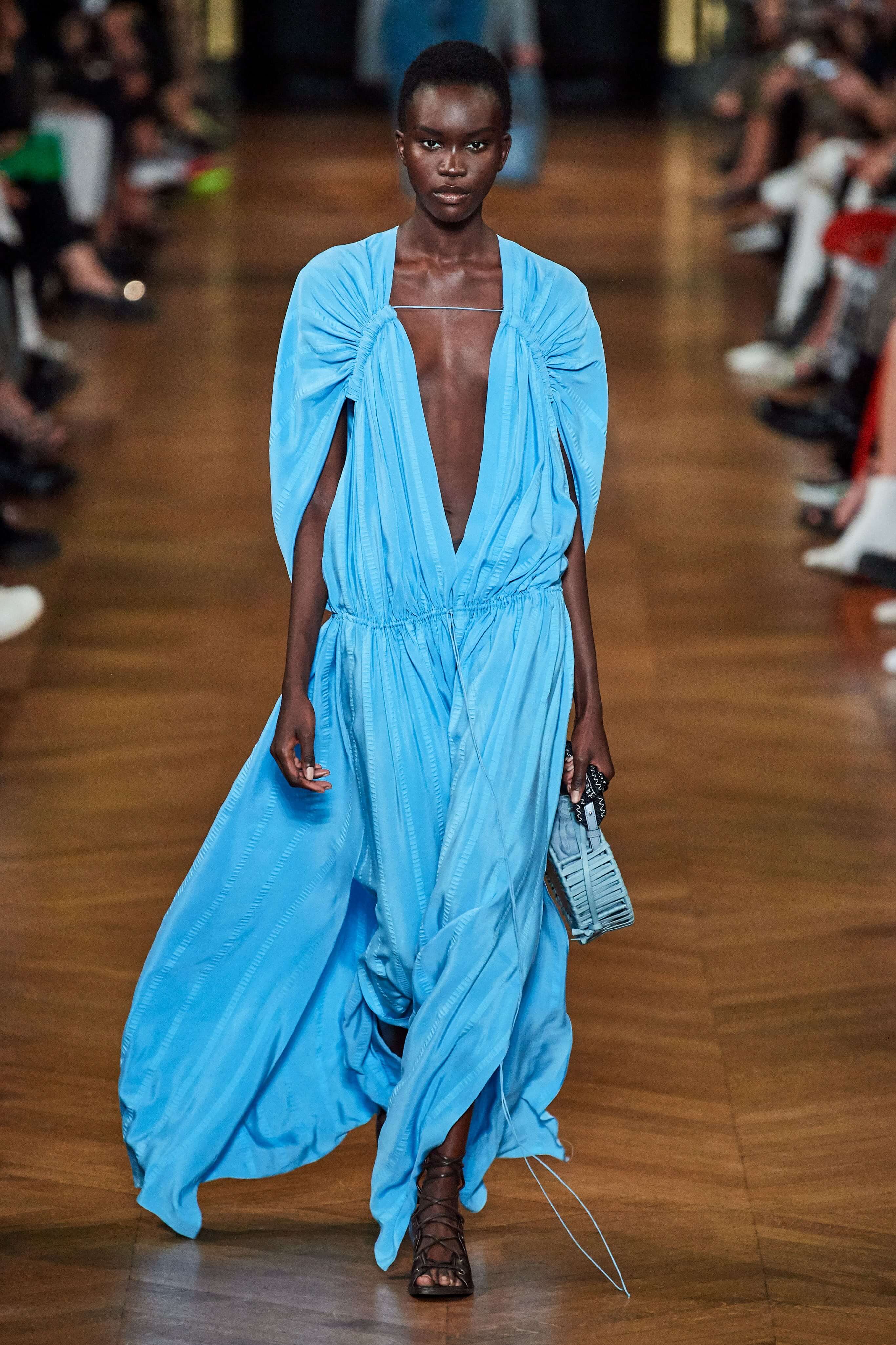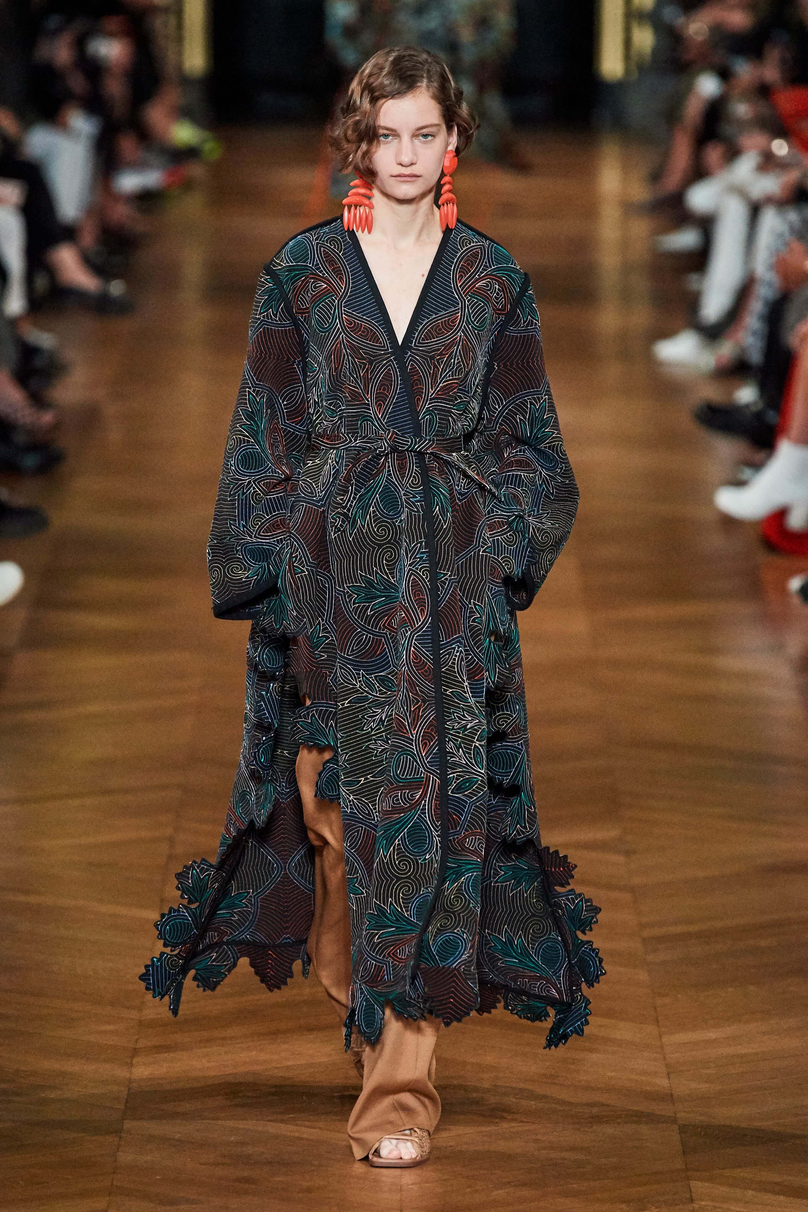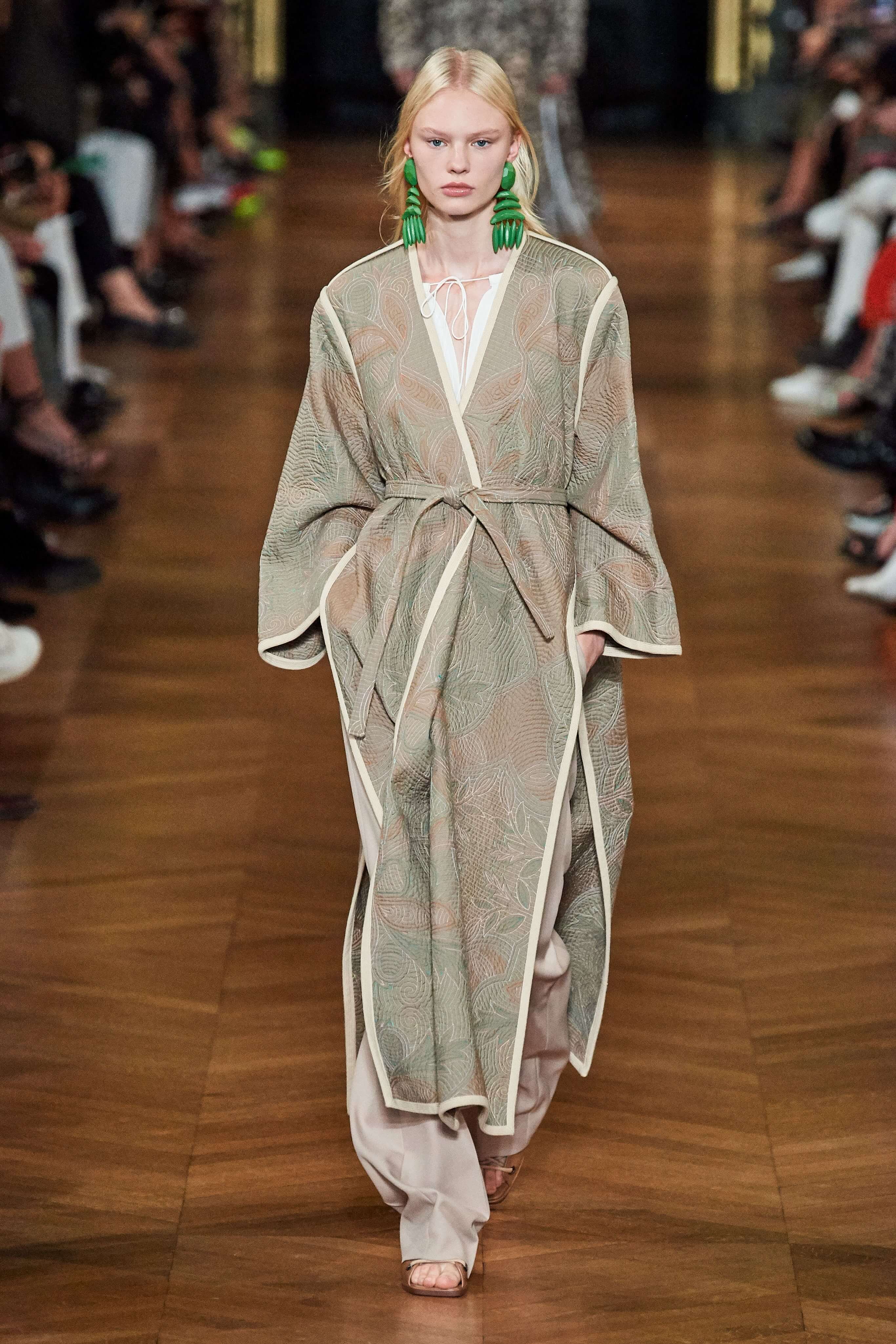 Вещи из коллекции Стеллы Маккартни нам всем будут нужны будущей весной: это женственные блузы нежных оттенков с рукавами-крыльями и резными зубчатыми краями, уютные платья-халаты в ориентальных узорах, мягкие платья из трикотажа с люрексом, прозрачные кружевные топы, надетые под расслабленные околоделовые костюмы, романтичные тренчи и "рабочие" жилеты с накладными карманами и поясами-канатами, с кисточками на конце. В линии аксессуаров – кепки-блейзеры из сетки, сумки-мешки, очки на цепях в стиле 70-х, деревянные серьги и серьги из связанных крючком кружевных салфеток.