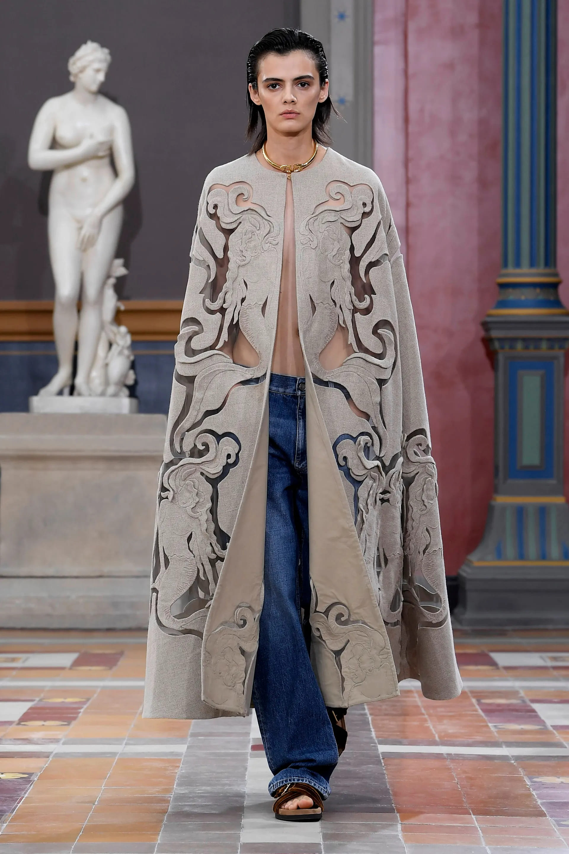 Повернення до витоків, гра символізму й первозданна оголеність у колекції Valentino SS24 нікого не лишили байдужим, а танцювальний перформанс за участі FKA Twigs надав показу органічного обрамлення: ансамбль сучасного танцю, очолюваний британською співачкою, виконував танець «Unearth Her» на платформах, наповнених природними матеріалами.
