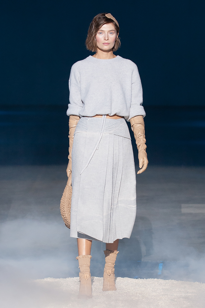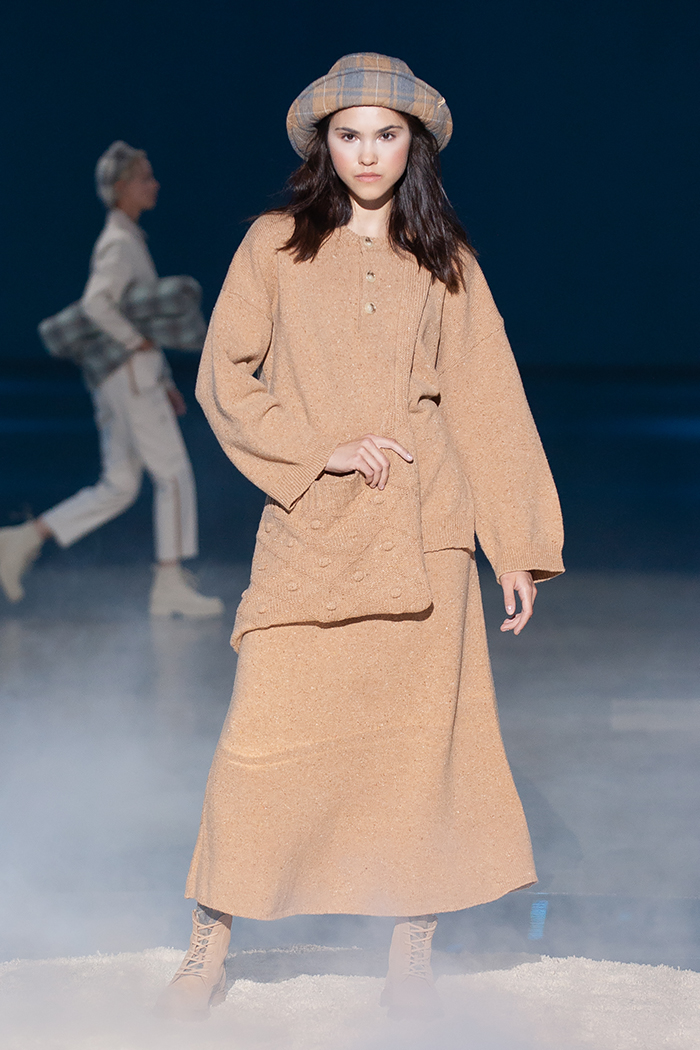 Показ весенней коллекции дизайнера Кати Сильченко открыл 49-й сезон украинской Недели моды. Гости шоу могли рассмотреть костюмы, пончо и джемперы из кашемира, уютные бомберы и комбинезоны, свитеры-рубашки и вещи ручной вязки — эту часть коллекции дизайнер именовала Cozy the Coat. Вторая линейка, под названием Eleganza, была обращена к традиционной ДНК бренда — силуэтные пальто в духе ретрошика, платья-футляры и брючные костюмы безупречного кроя. Аксессуарами сезона Тhe Coat становятся кросс-боди-сумки, рукавицы и объемные, будто свернутые пледы, клатчи, мягкие панамы и кепки, а также несколько видов мини-сумок из текстиля и кожи. В этом единении двух диаметральных тем, таких как многослойность, близкая к загородной и домашней одежде, и изысканная, чистая силуэтность, Катя Сильченко осмысливает новую реальность, в которой каждый из нас переживает массу противоречивых эмоций, стремится к поиску комфорта и вместе с тем не желает расставаться с элегантностью, уверенностью в себе и завтрашнем дне.