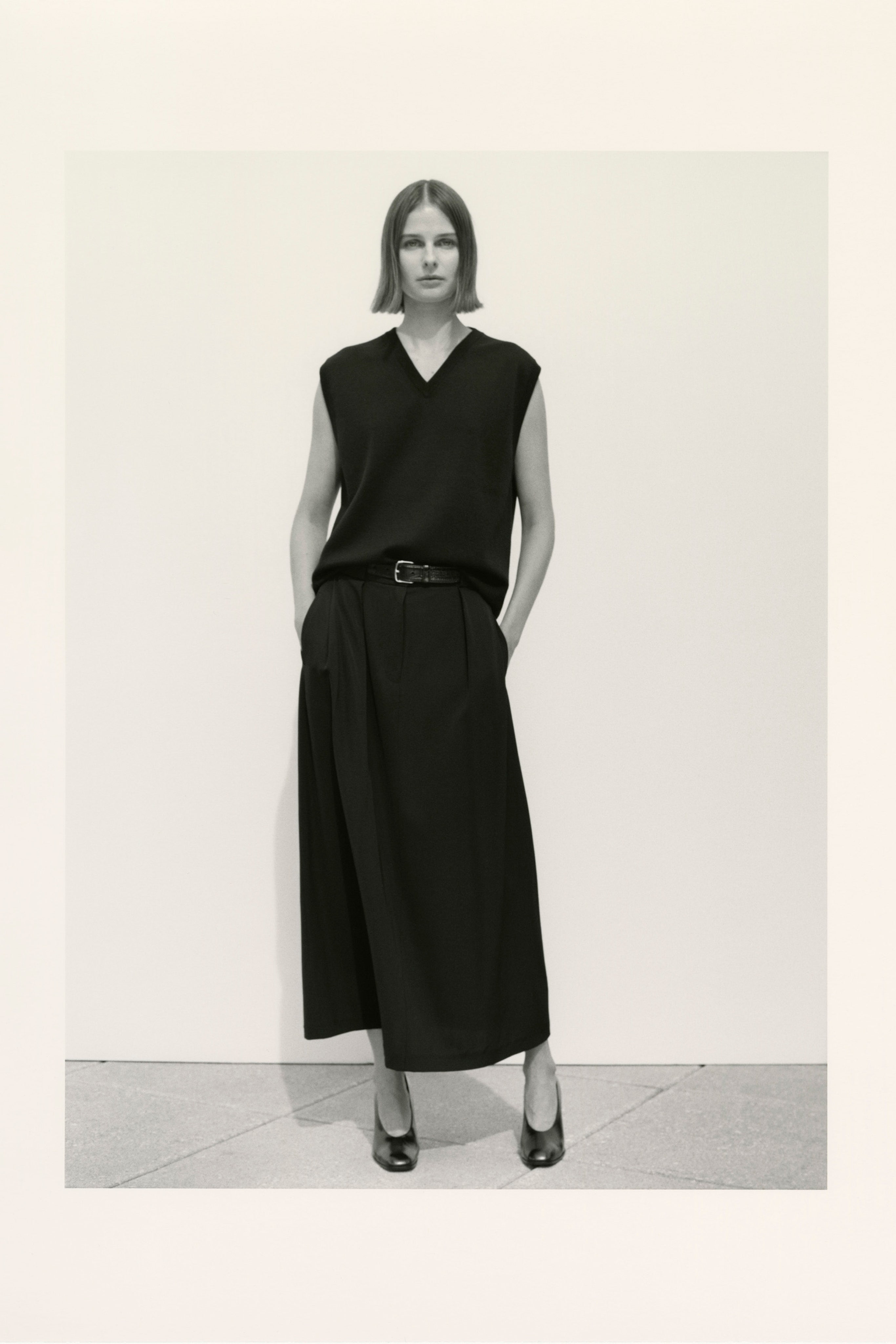 Всё те же брючные костюмы оверсайз, но брюки со складками и жакеты как будто струятся. Всё те же знакомые безупречные пальто, но как будто по-новому элегантные. Сёстры Мэри-Кейт и Эшли Олсен по-прежнему верны своему королевскому минимализму, однако он у них снова вышел свежим. Дизайнеры добавили в универсальный гардероб героини бренда жакеты-блузы, которые можно носить поверх рубашек и на голое тело, трикотажные жилеты, которые будут хороши как с юбкой миди, так и со свободными брюками, силуэтные кардиганы и вязаные сумки. Все вещи традиционно гармонично сочетаются между собой в любых пропорциях.
