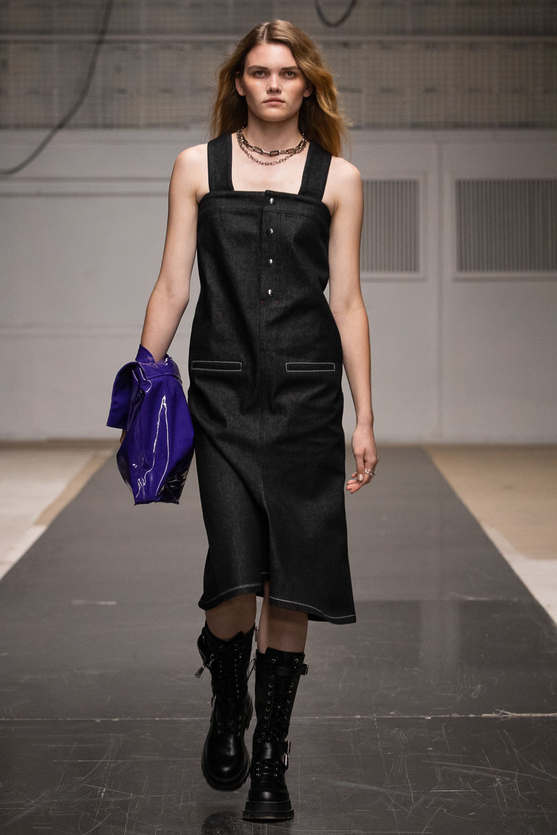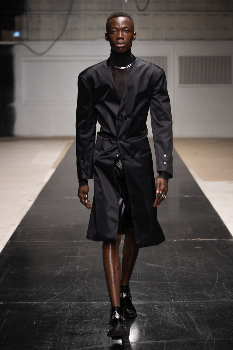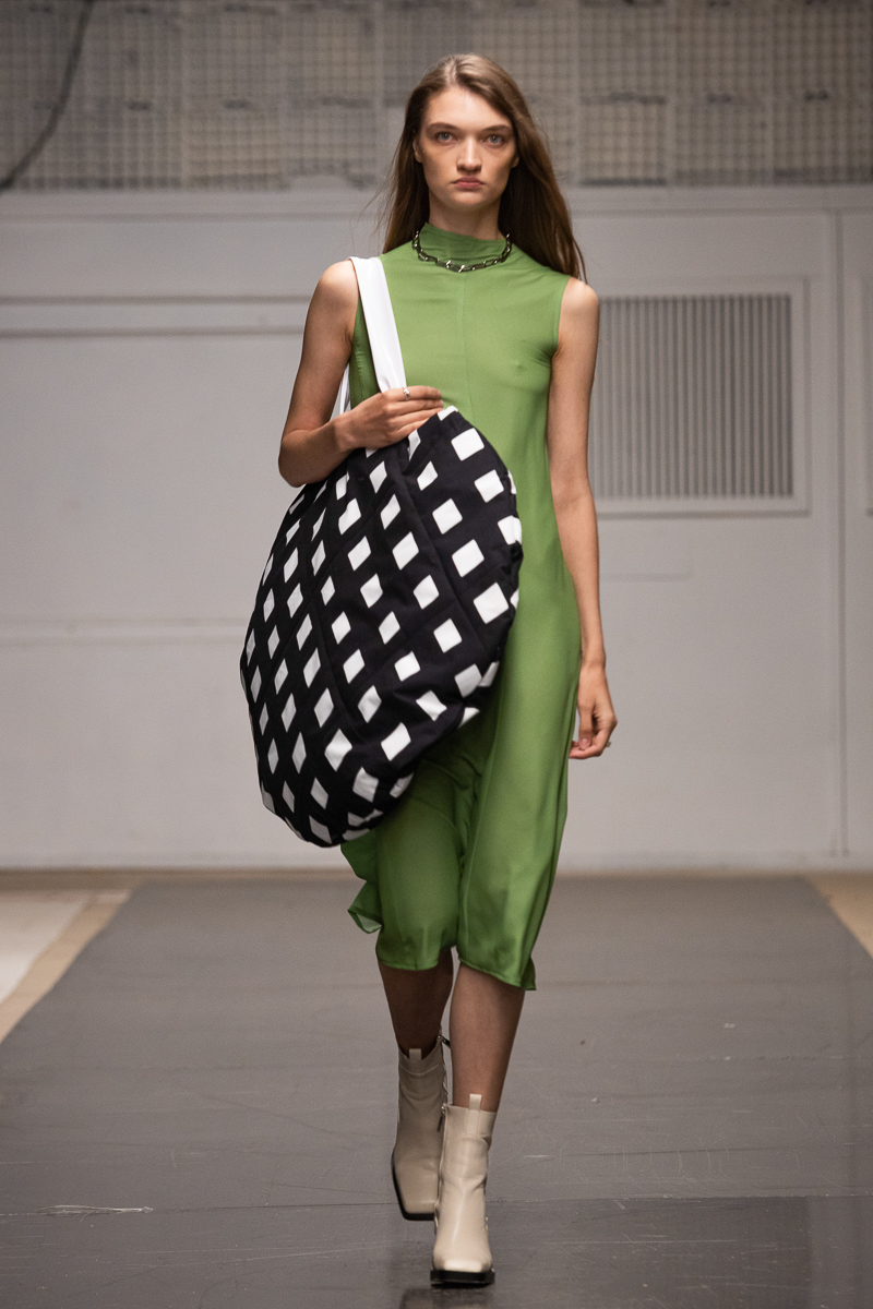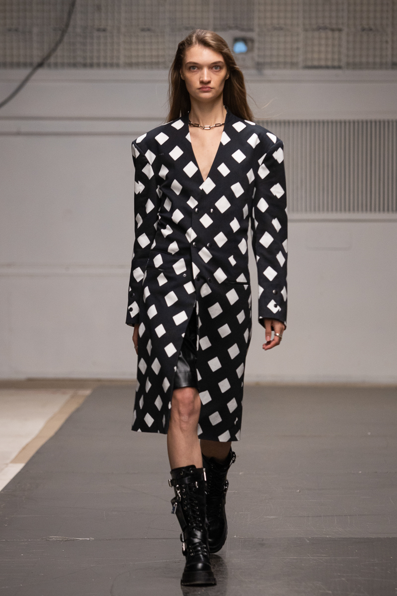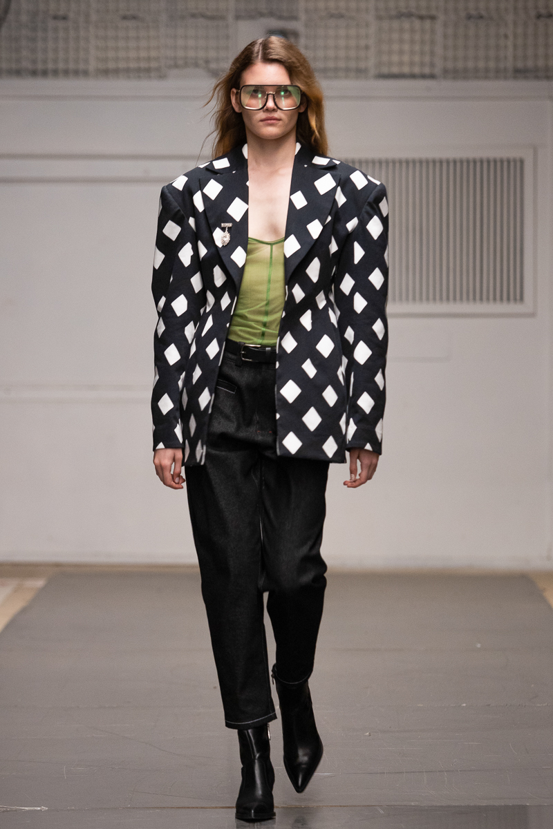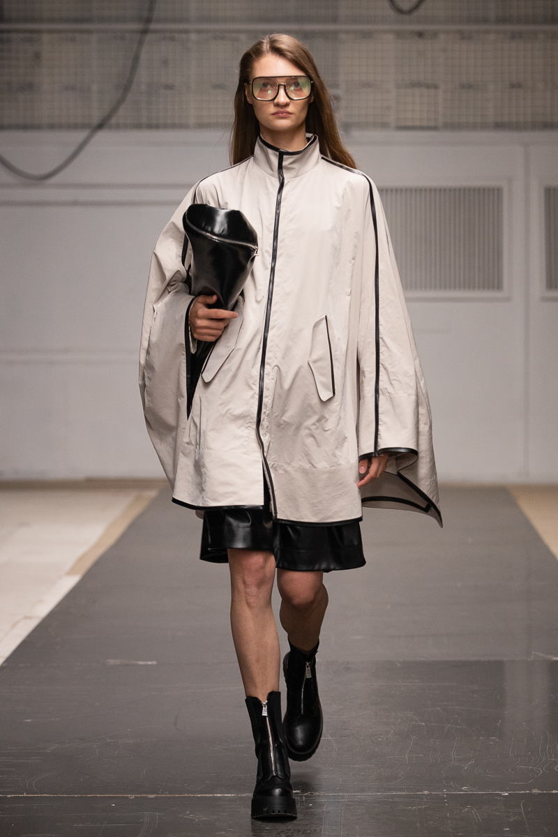 Дизайнер одел героиню бренда в графитовые сорочки и пальто, молочные костюмы с увеличенными пиджаками и трикотажные платья. Монохромный цветочный принт разбавили яркие всплески горохового, травянисто-зеленого и розового оттенков. В мужской линии коллекции — пятнистые пиджаки, лавандовые и фиалковые костюмы, а также кожаные шорты, которые эффектно дополняют полупрозрачные мужские топы и кремовые блейзеры. Вещи контрастны сами себе и в то же время составляют единую гармонию фактуры, силуэтов и цветовой гаммы.