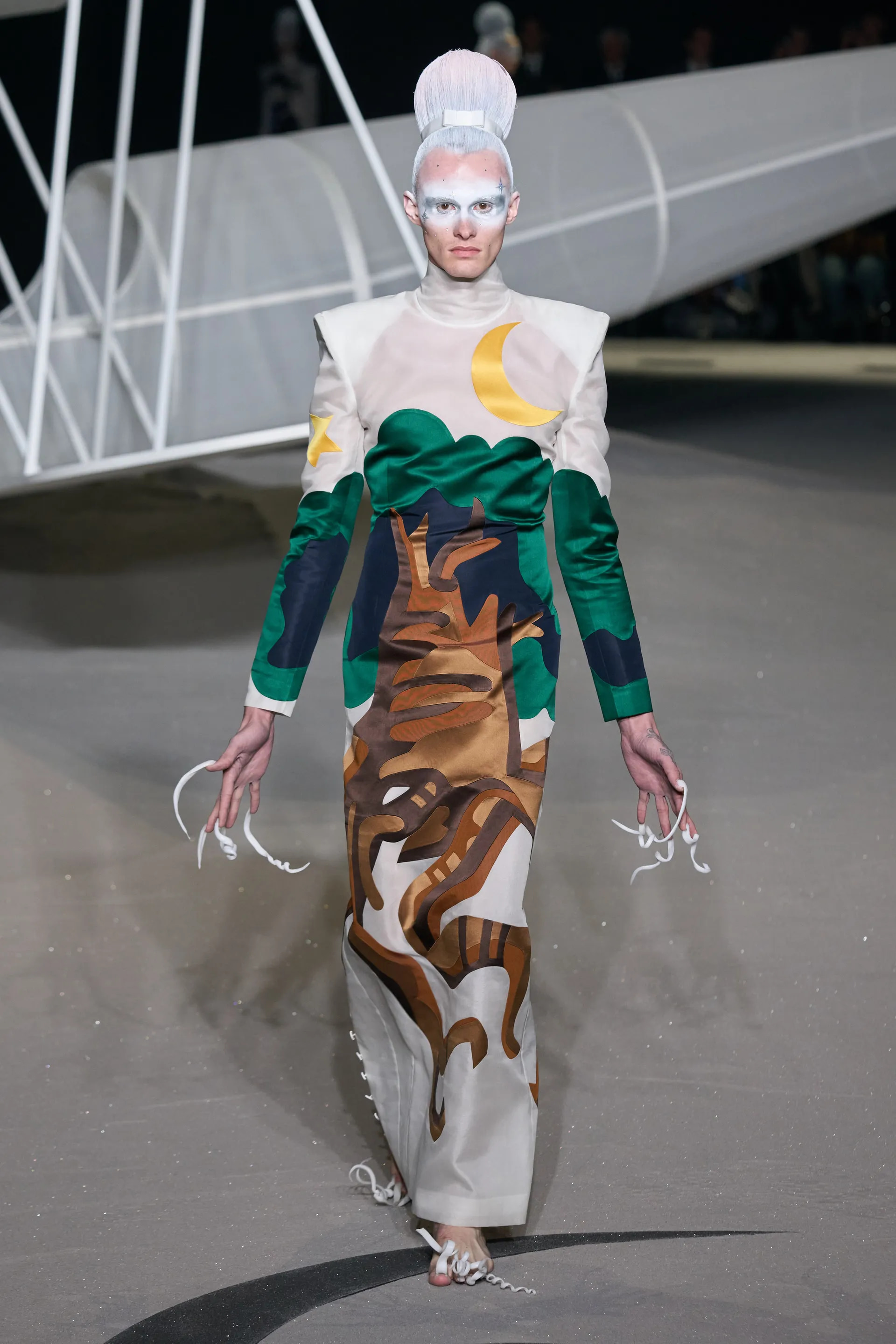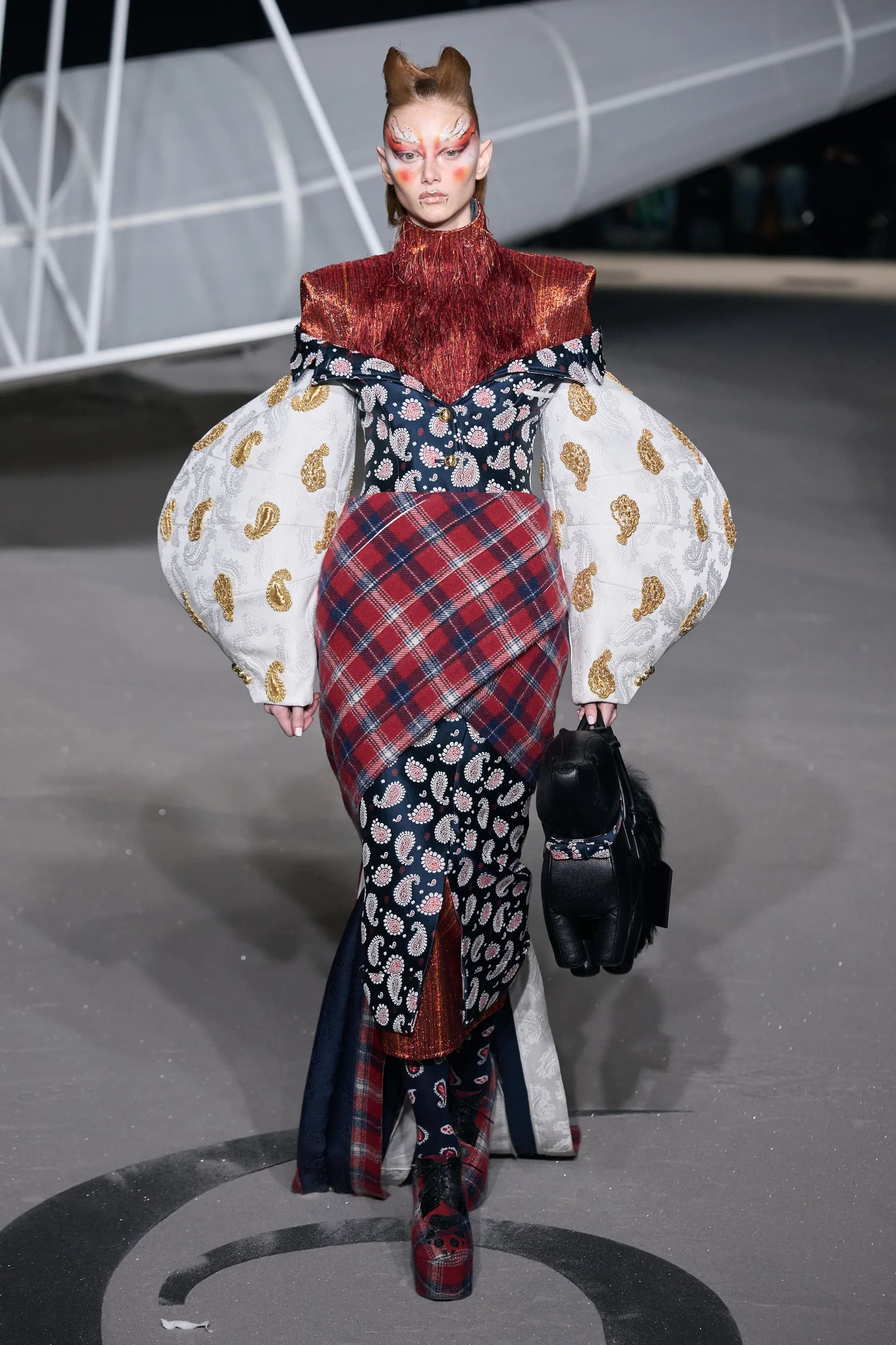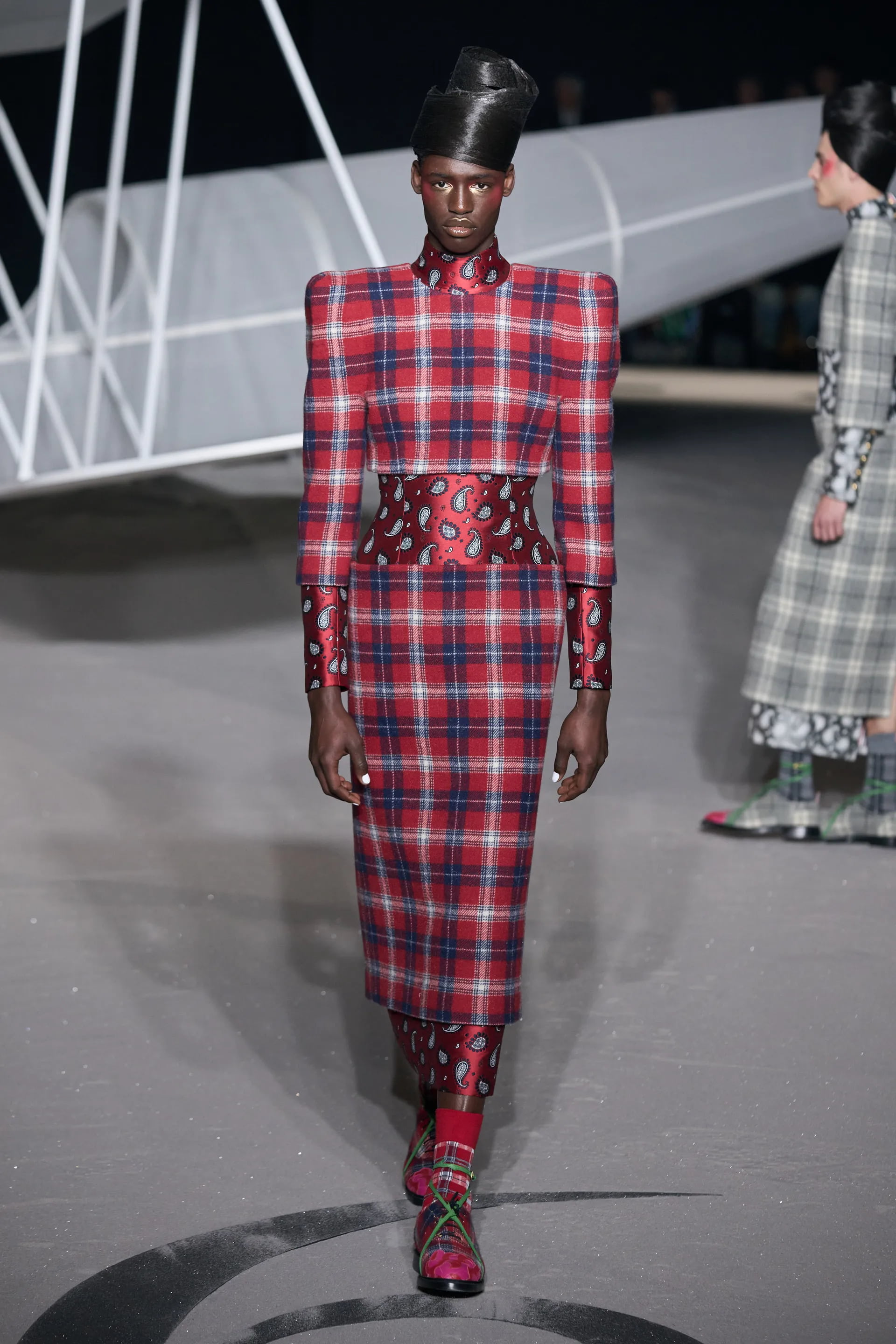 Помітною була й деконструкція, використана Брауном: її ми можемо побачити і в жіночих, і в чоловічих образах. Напів перешиті сукні з тканин різних фактур, різні об’єми та нашарування, однак зі спільною ідеєю, що криється в кольорі суконь, жакетів та юбок - знаковий сірий колір, “класичні” для бренду червоний та синій. Безумовно, була й клітинка - фактурні сукні з об’ємними рукавами та тонкою талією як мастхев ідеї нового сезону - а-гендерна елегантність та прості лінії.