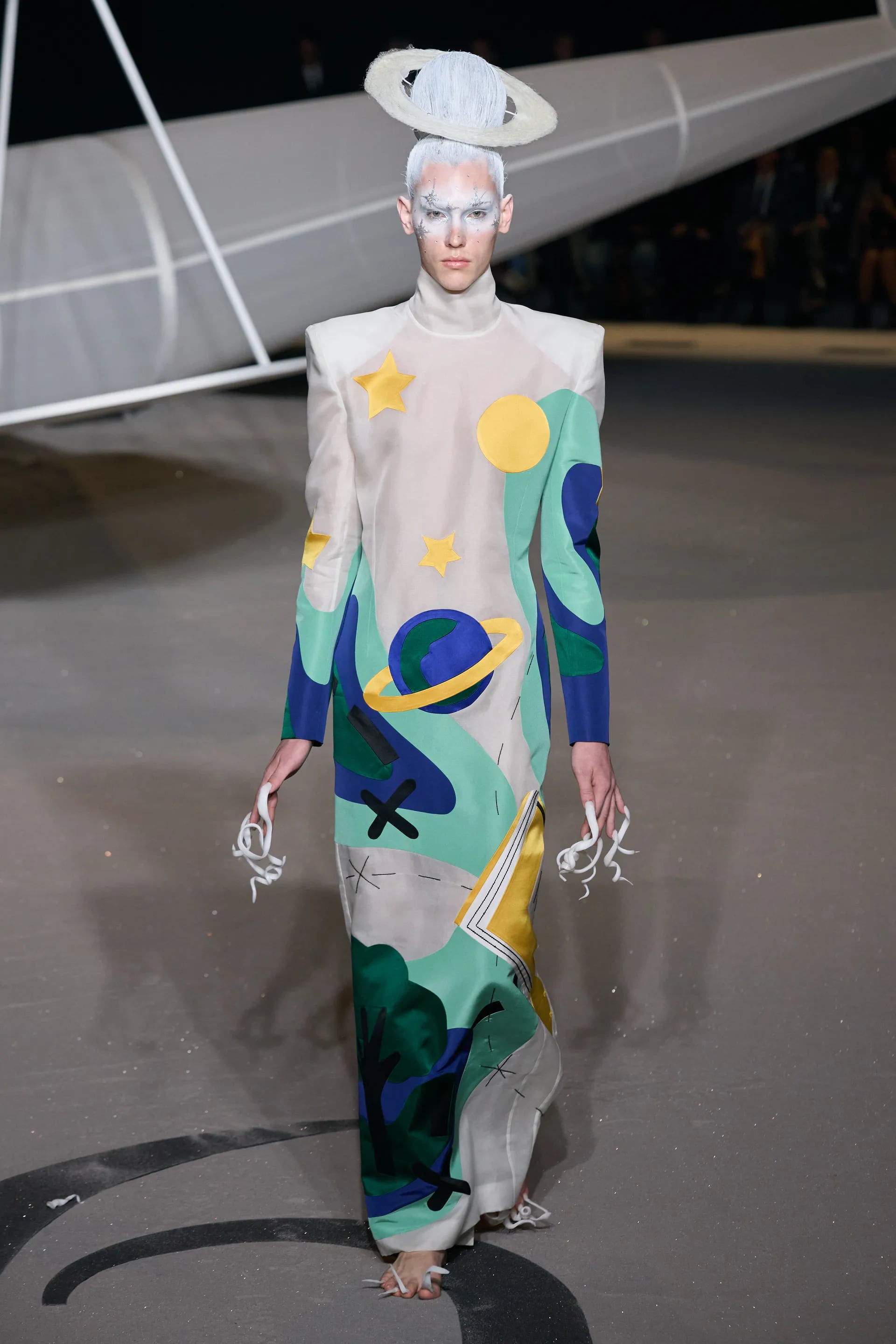 Поміж усіх різних та яскравих речей важко не помітити елементи, додані до колекції: цікаві золоті “капелюшки”, знакові сумки, акцент на годинник, зачіски у вигляді Сатурну, “гостре” взуття, білий закручений манікюр та педикюр.