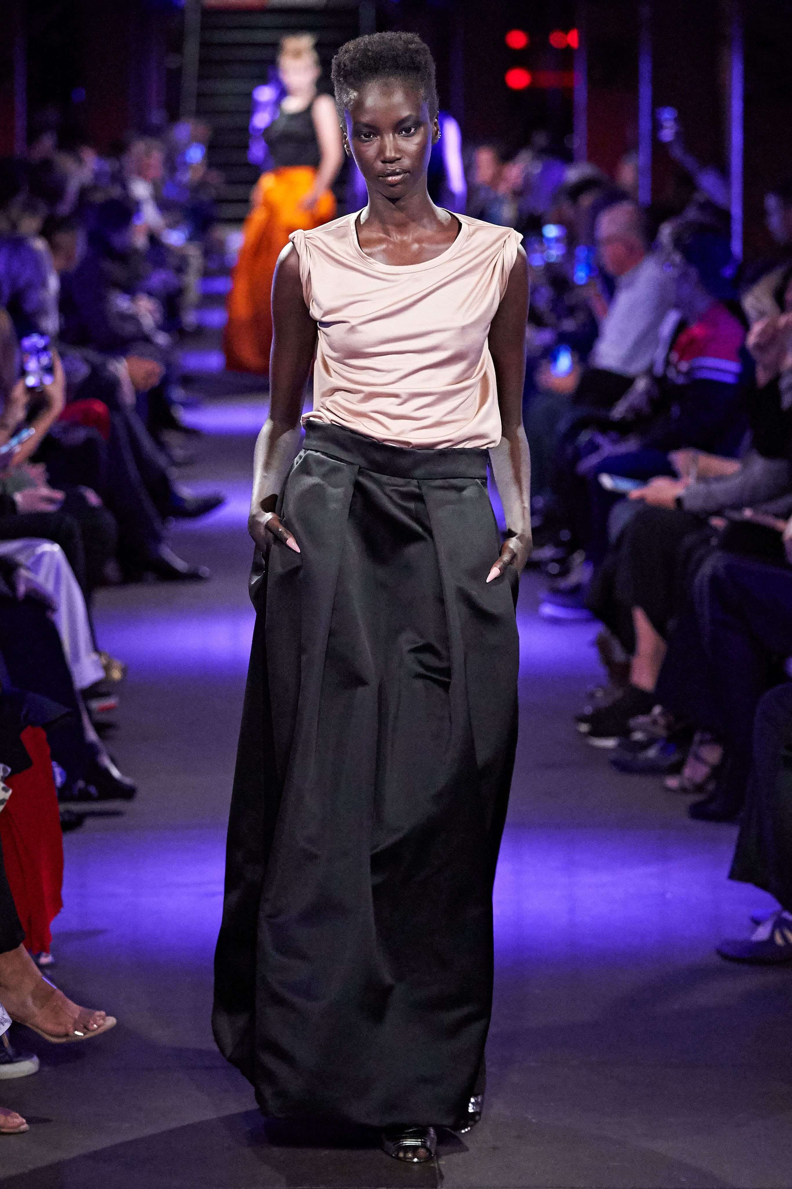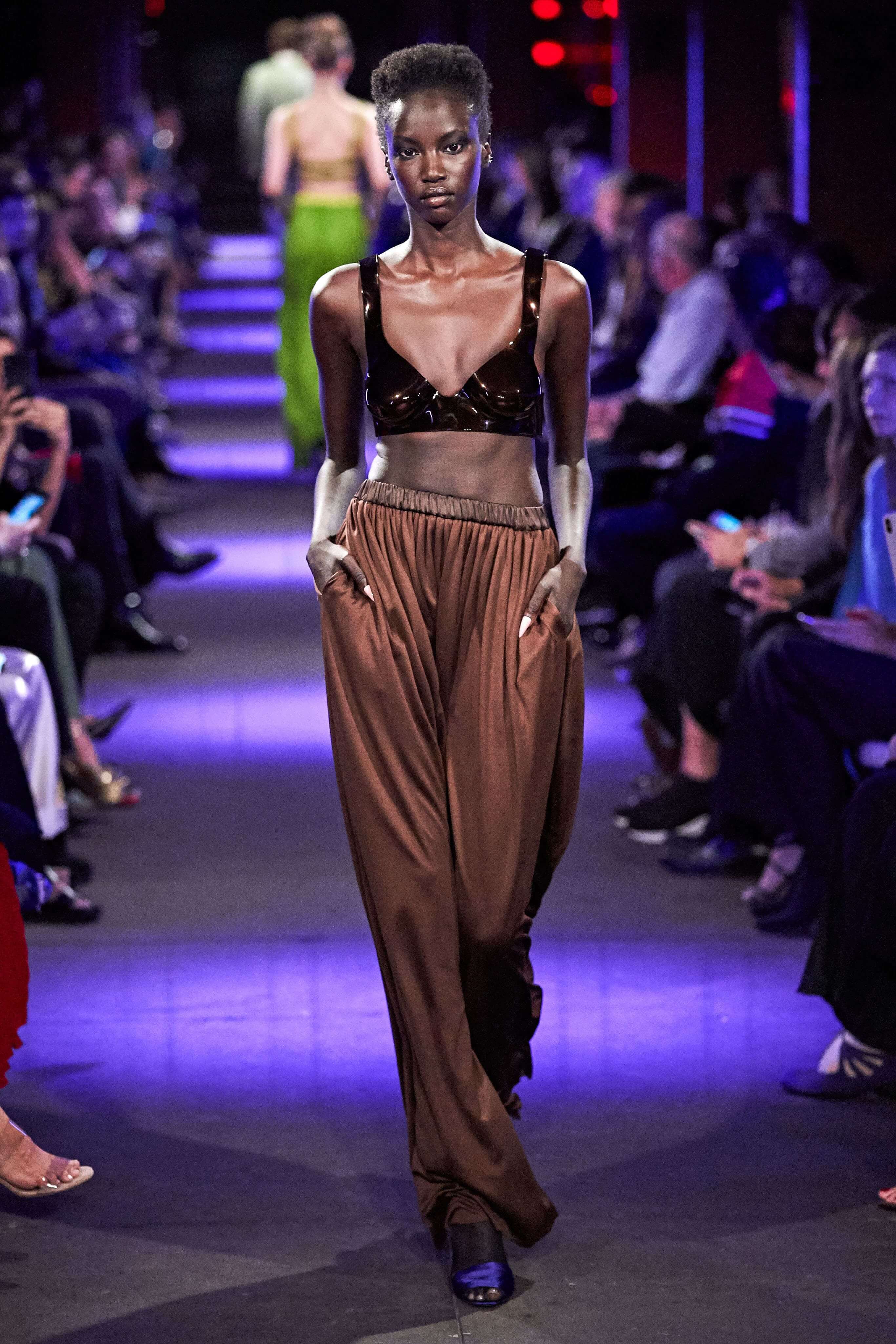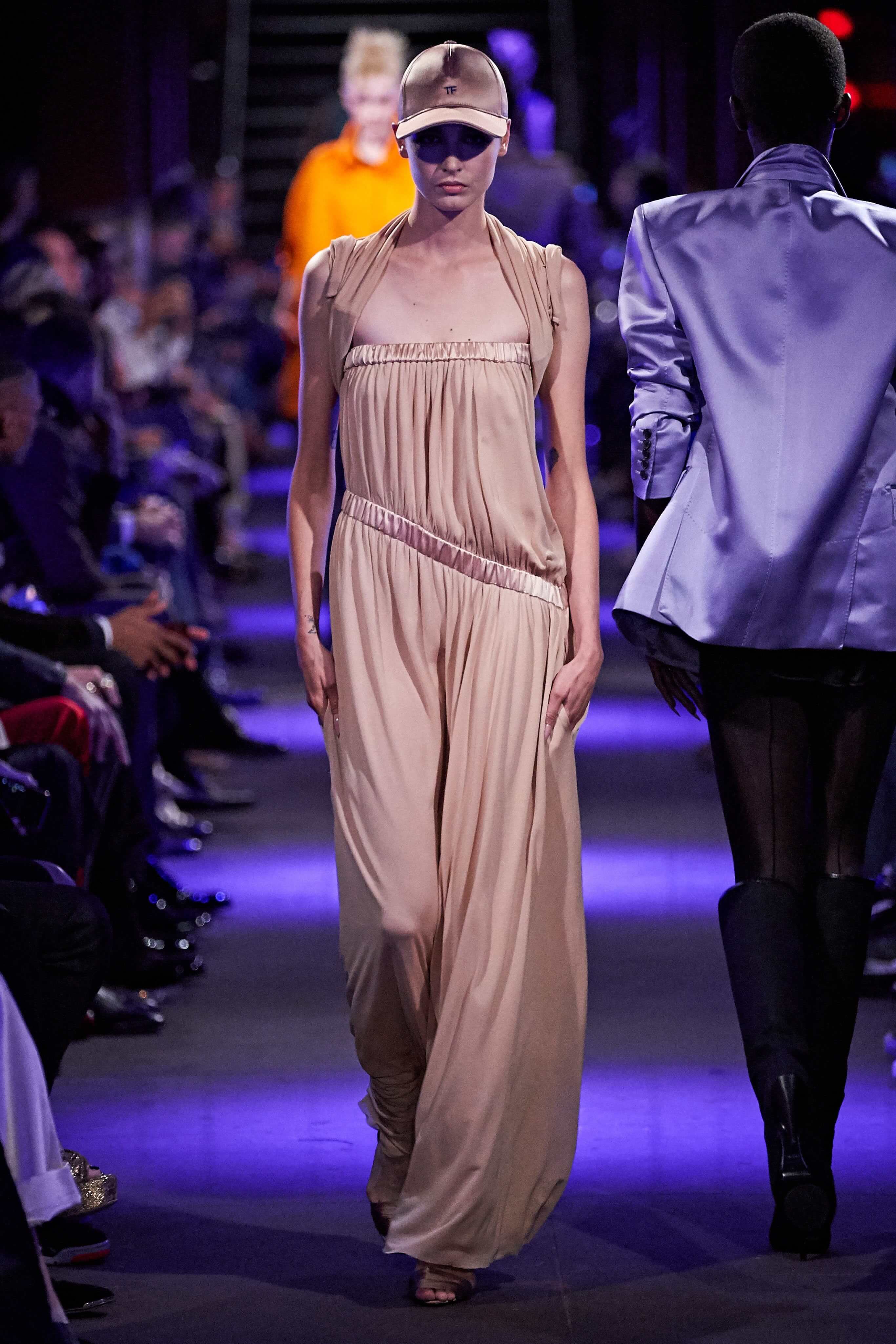 Том Форд продолжает вдохновляться творчеством Ива Сен-Лорана. На этот раз дизайнер представил оммаж коллаборации кутюрье со скульптором и художницей-сюрреалистом Клод Лаланн. В 70-х она сняла слепок с груди модели Верушки Фон Лендорф и сделала золотые накладки для одной из коллекций модельера. На показе Тома Форда модели носили цветные бюсты, повторяющие разные формы женской груди, их дополняли струящиеся брюки-шальвары.