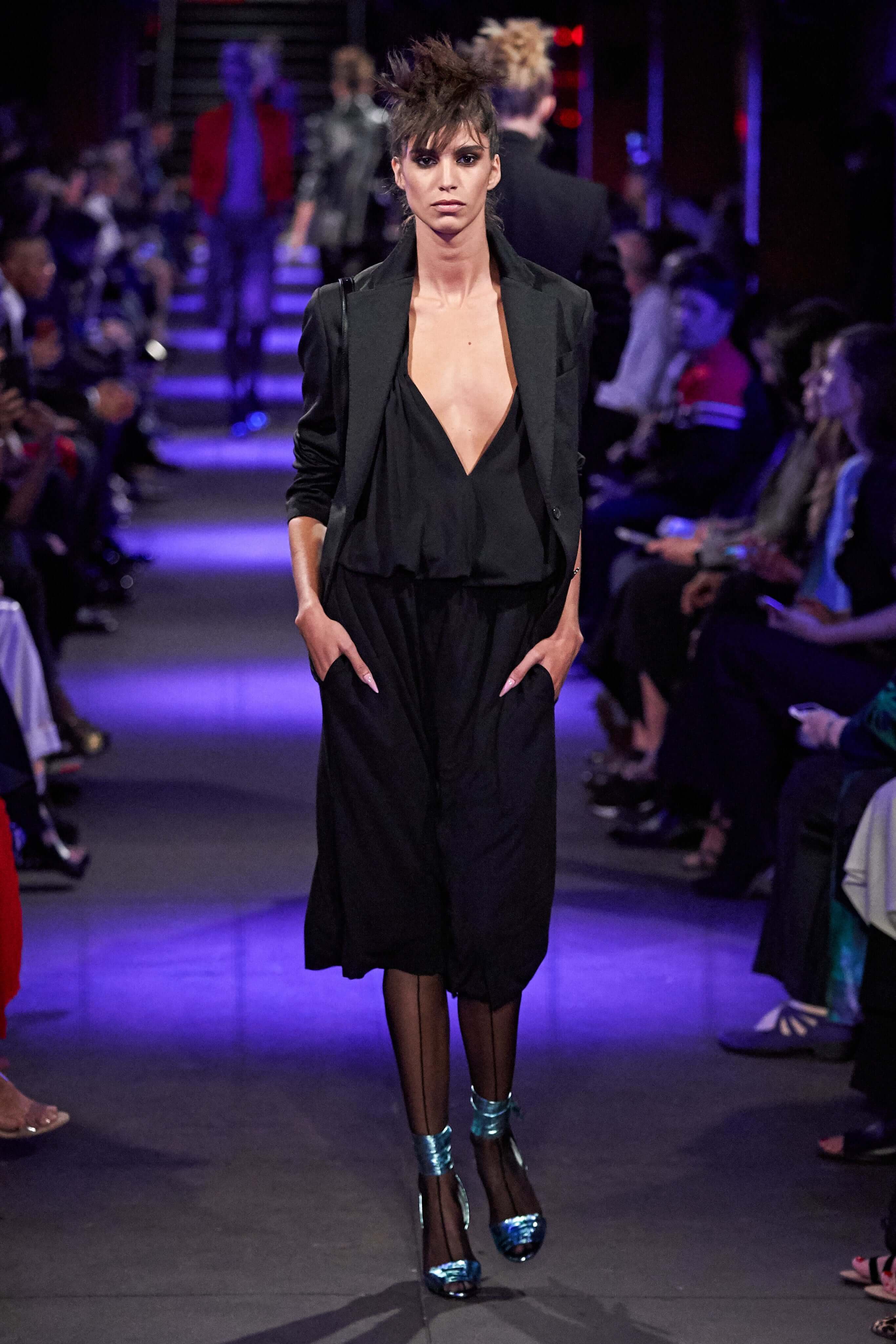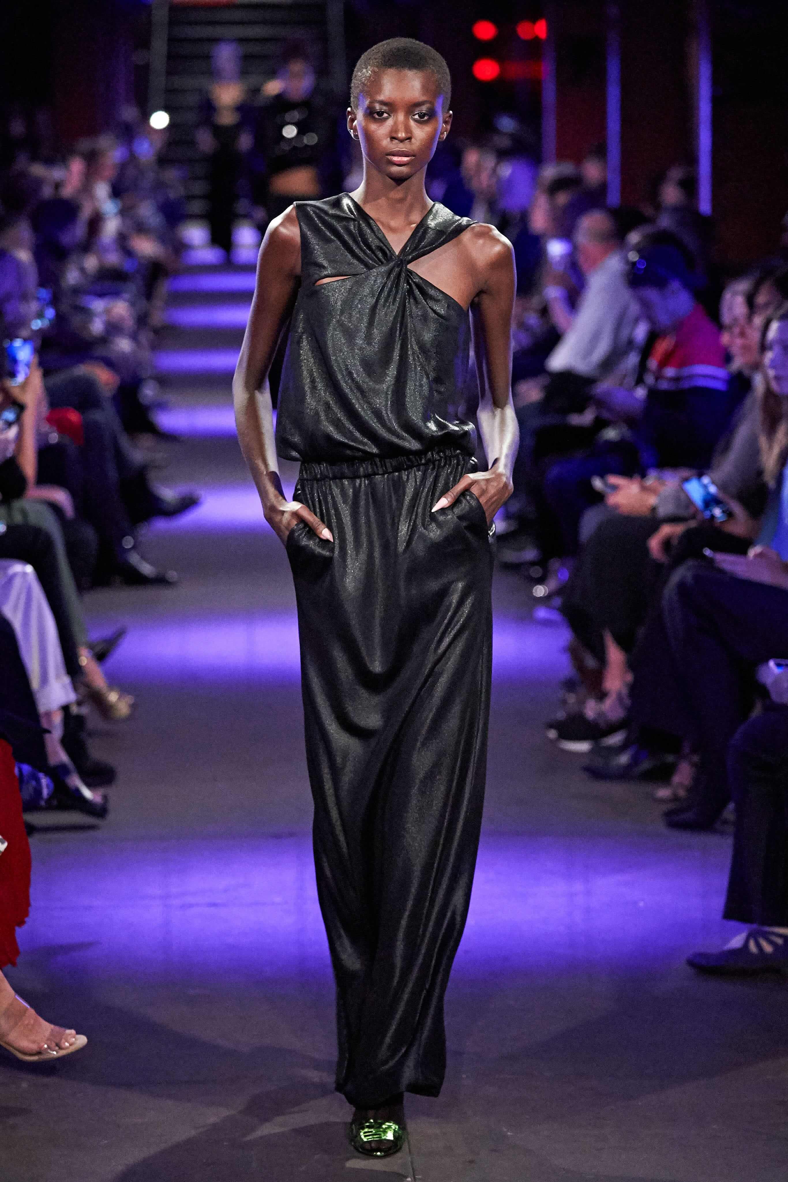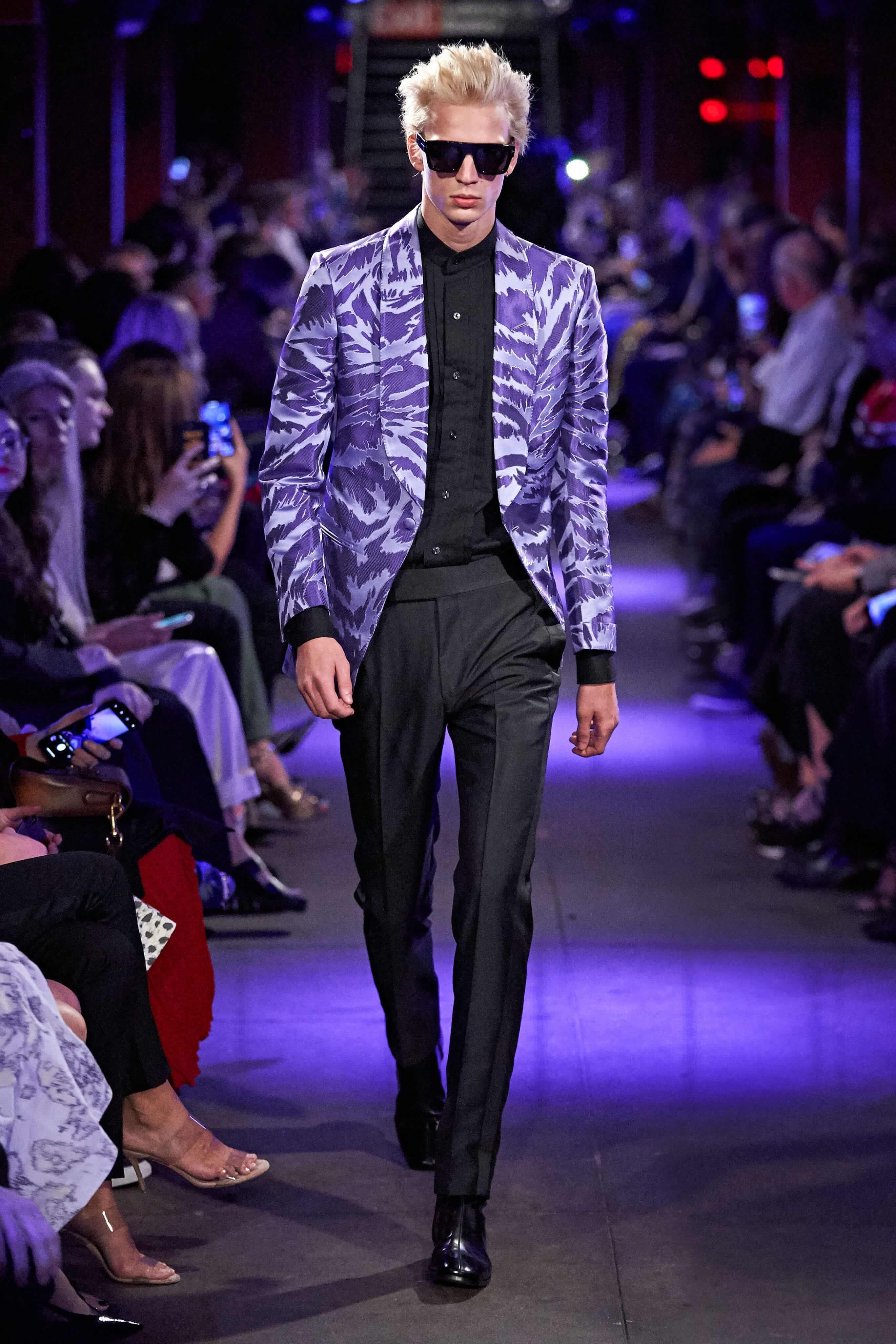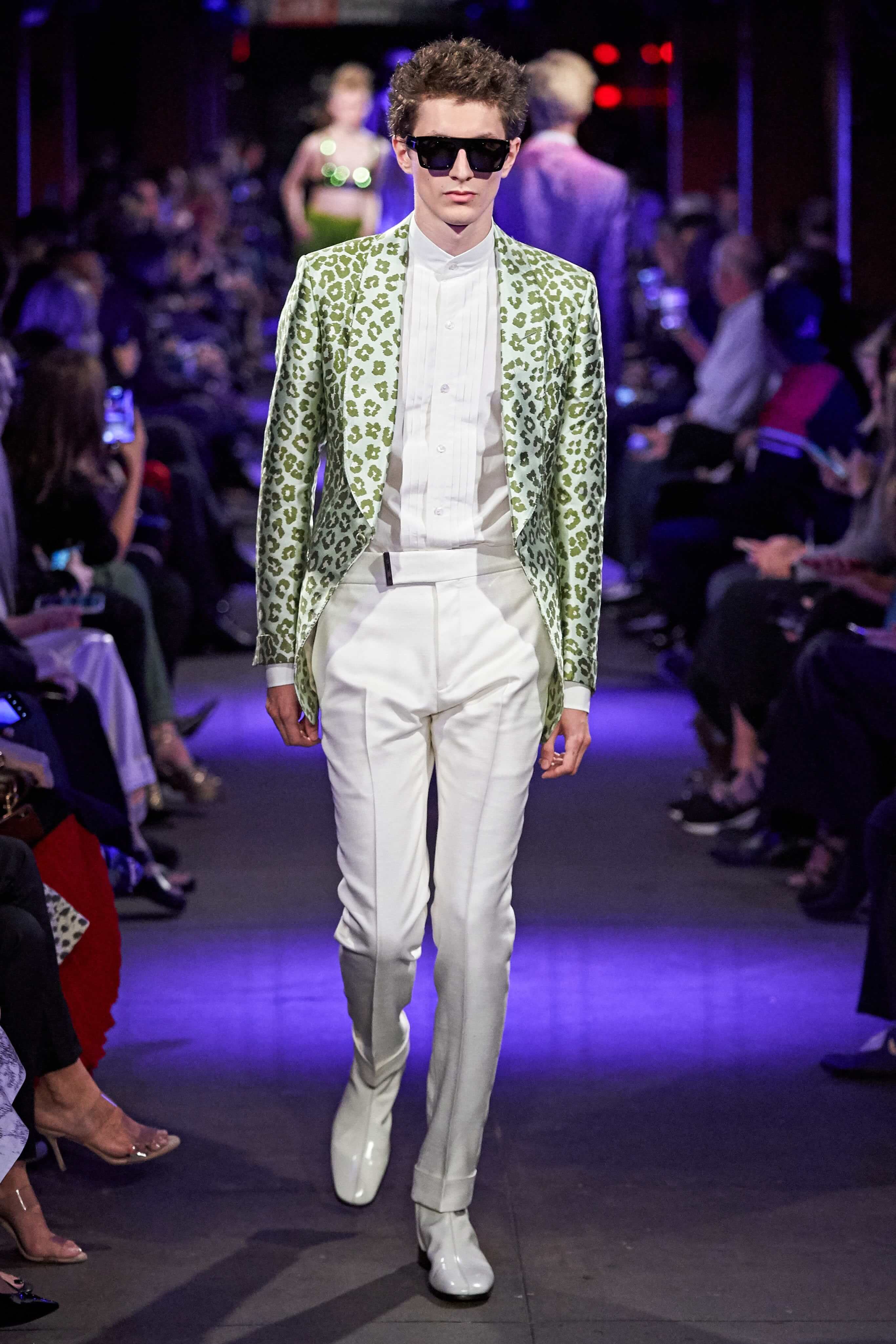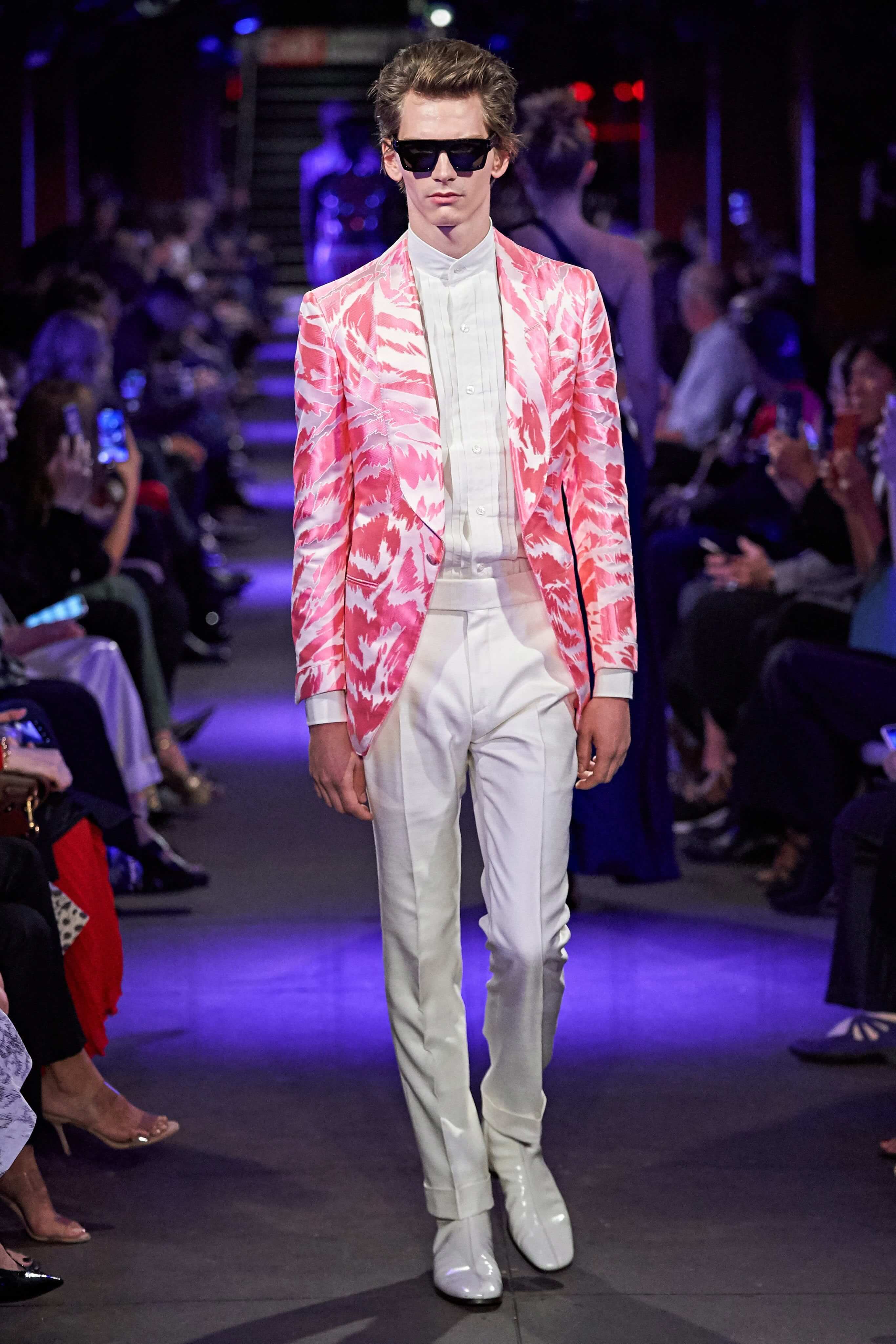 На этом эксцентрика от Форда не закончилась — мужская линия коллекции представлена яркими образами в духе Энди Уорхола: силуэтными облегающими брюками светлых оттенков, идеально скроенными рубашками и эпатажными пиджаками с принтами — леопардовыми и тигровыми. Кое-кто из моделей прохаживался по подиуму в подземной станции метро в купальнике с соблазнительными прорезями, а кто-то в роскошных вечерних платьях античных силуэтов или в плечистых атласных жакетах. Собирательный образ — улицы и мода Нью-Йорка 70-х, с его удивительной смесью авангарда и популярной культуры.