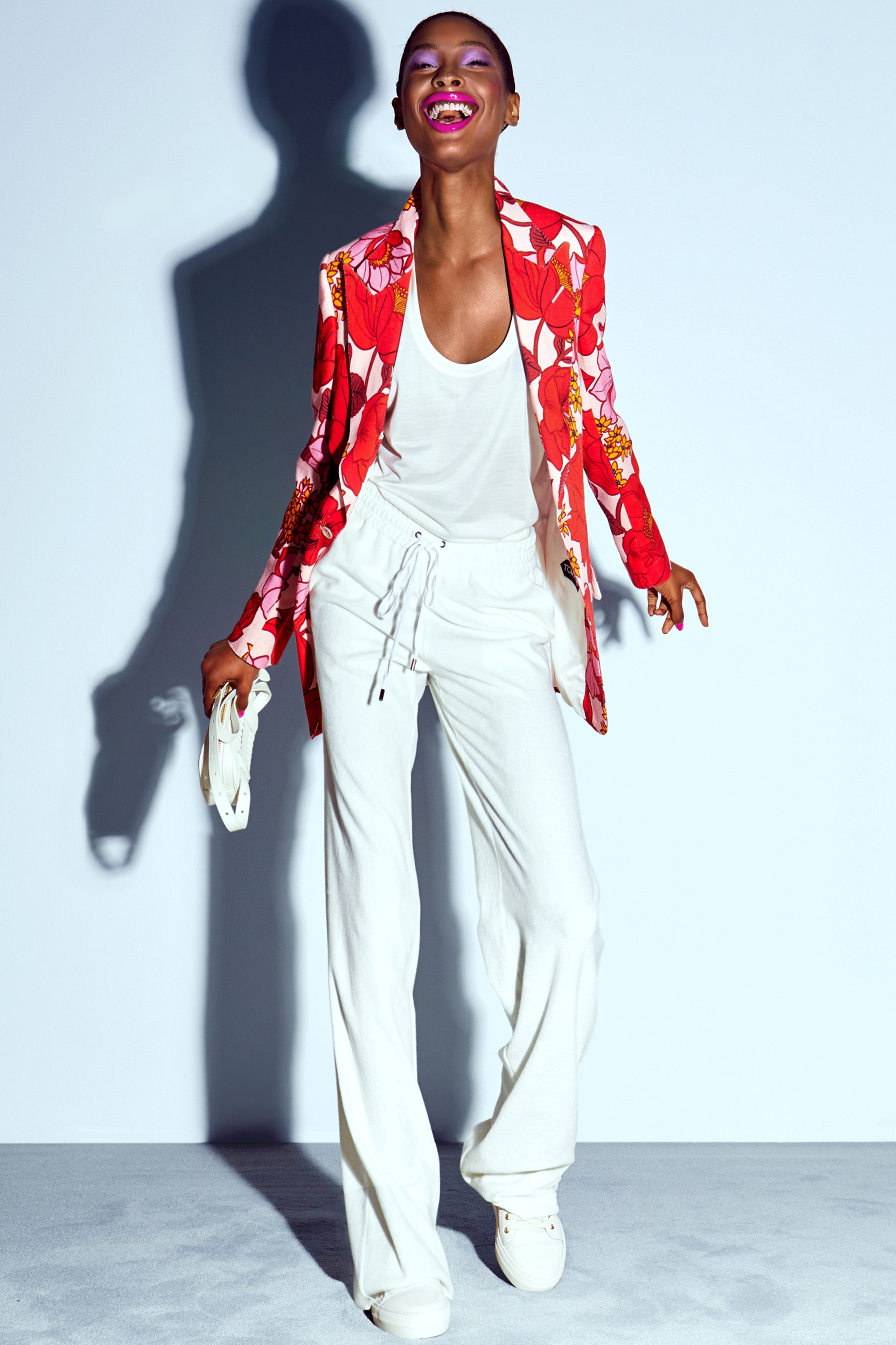 Одежда будущей весны наполнена легкостью и праздником по задумке самого Форда. Блузы в ней расстегнуты до самого пупка, как на весеннем показе Gucci 1995 года, а струящиеся брюки, платья и туники покрывают яркие цветочные принты, ставшие хитом в конце 90-х. Ярко-голубой комбинезон и вовсе напомнил о знаменитой блузе, в которой Мадонна получила премию MTV в 1995 году. Также Форд предлагает носить блейзеры в цветах поверх базовых, но нарядных белых брюк и футболок, смешивать леопардовый принт с флористическим и зеброй, а шелковые спортивные брюки дополнять уютными джемперами.