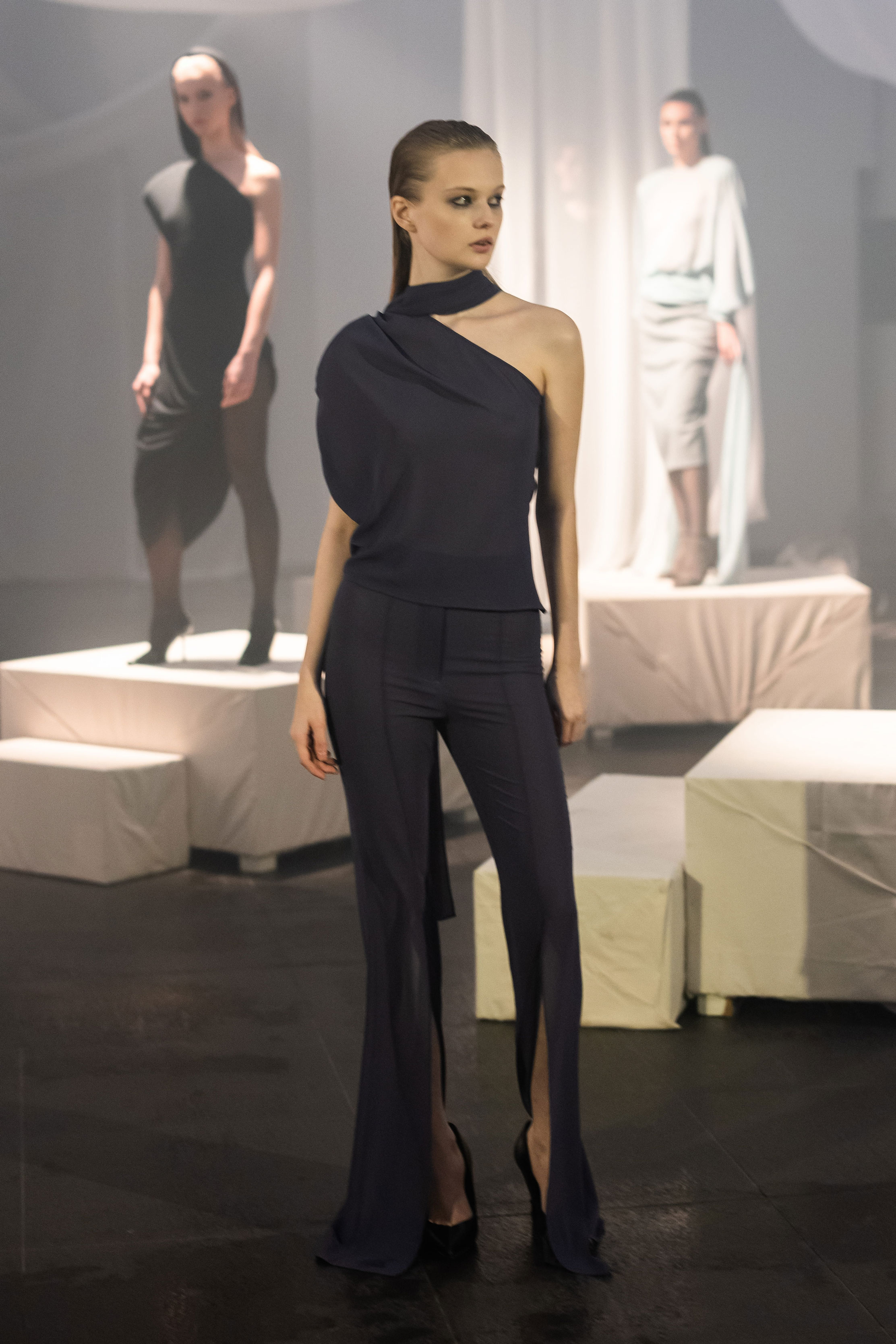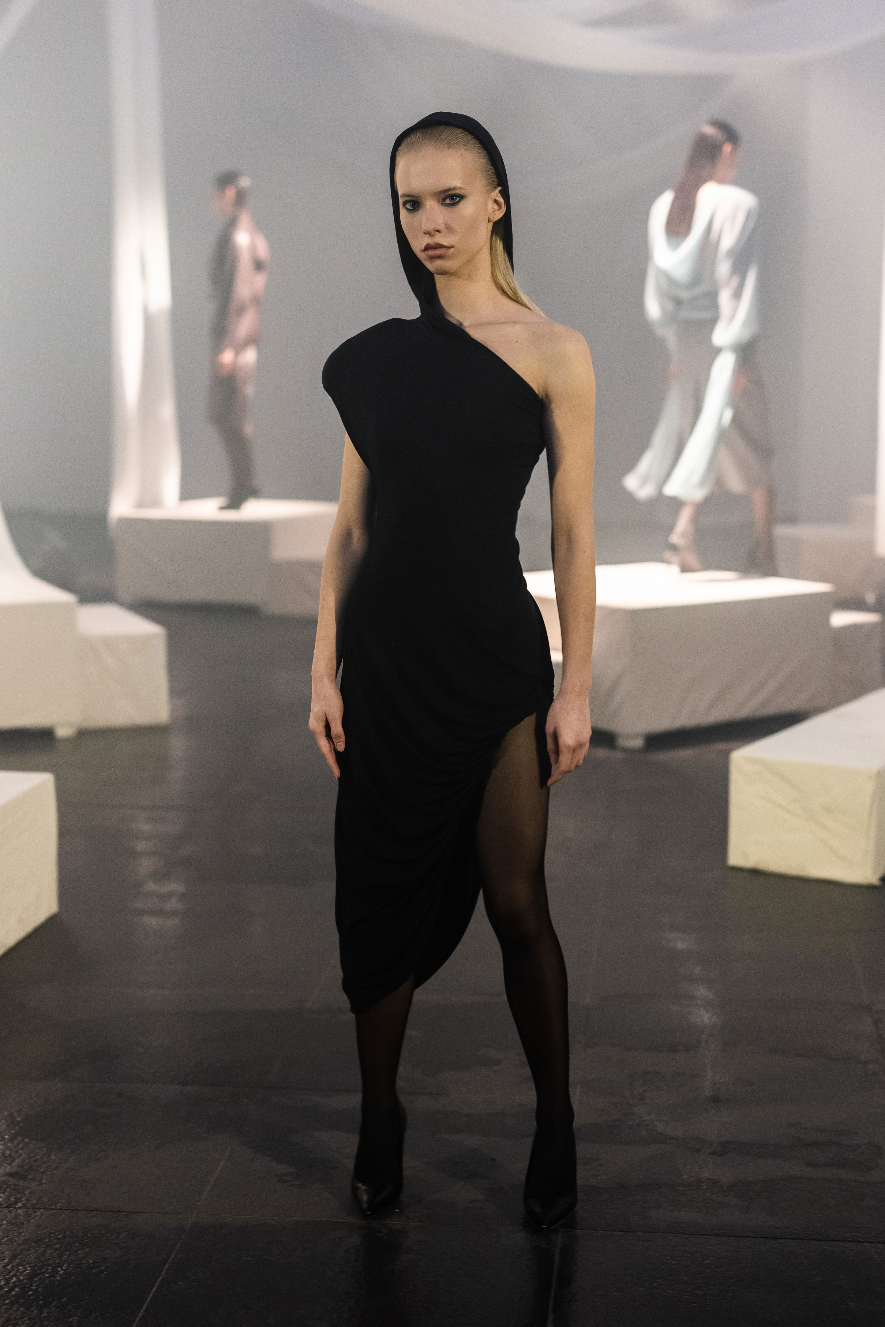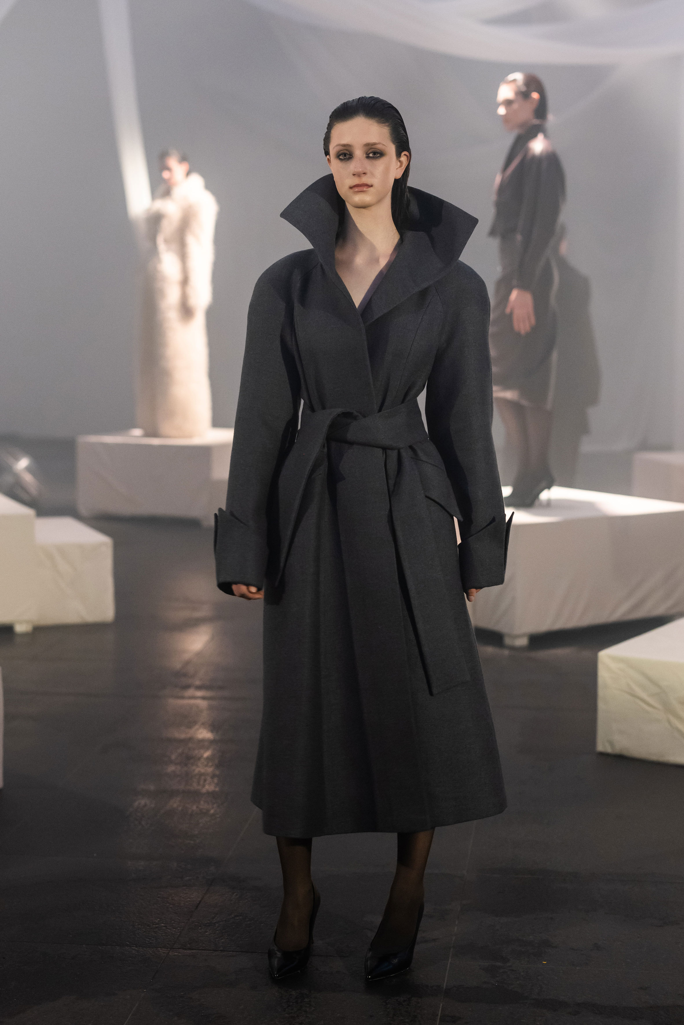 Колекція FW2026/27 отримала назву Berlin та осмислює досвід життя між двома країнами. В її основі — утвердження себе в новому суспільстві без втрати власної ідентичності. Об’ємні шуби зі штучного хутра, оксамитові корсети, напівпрозорі міні сукні з делікатним блиском і латексні силуети складають провокаційний гардероб — без зайвих пояснень і виправдань. Поєднання шовку, оксамиту, хутра та екошкіри разом зі сміливими акцентами на відкритій спині, прозорих тканинах і корсетних формах складає виразну, чуттєву колекцію з характером і свободою самовираження.
