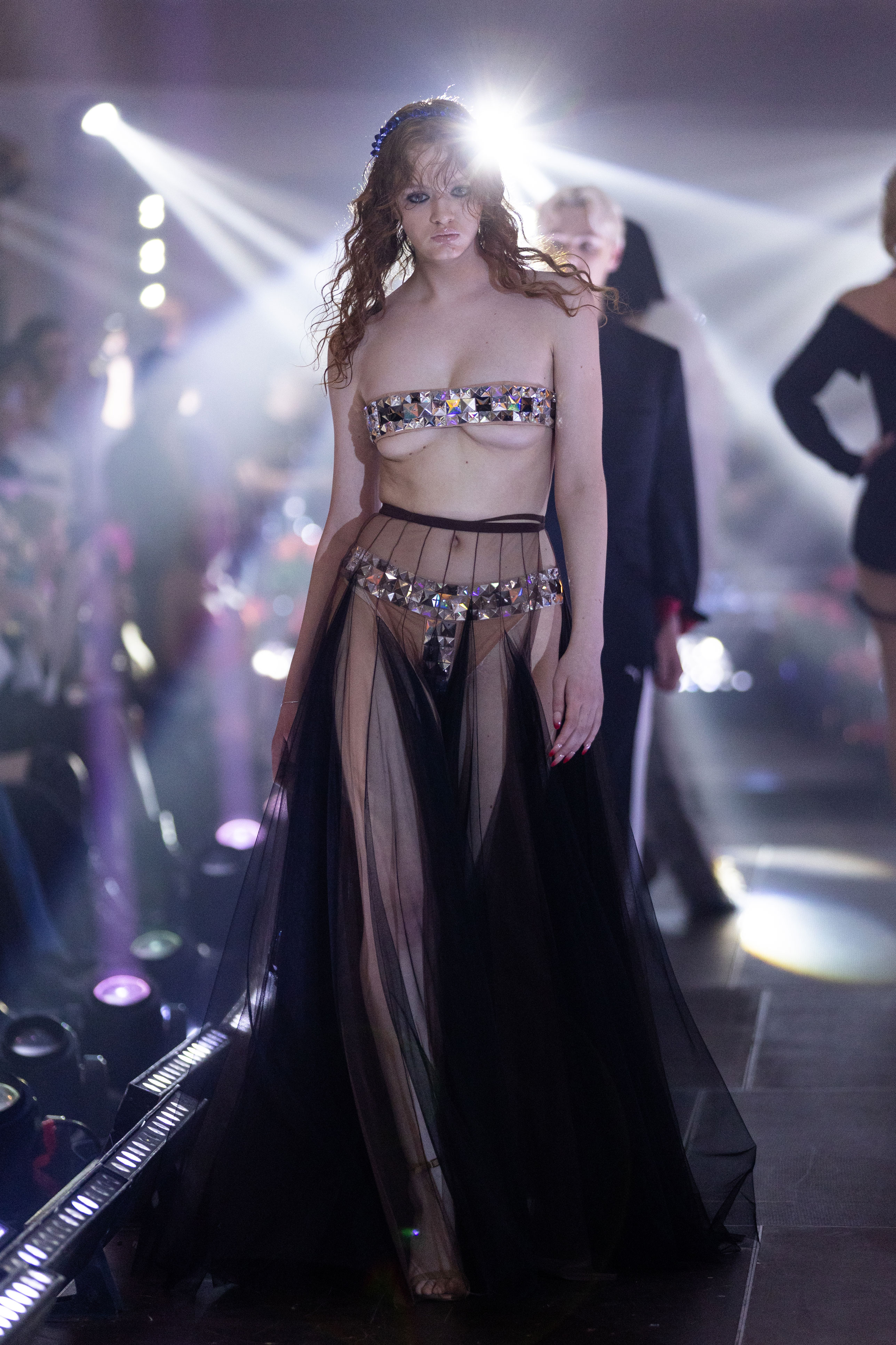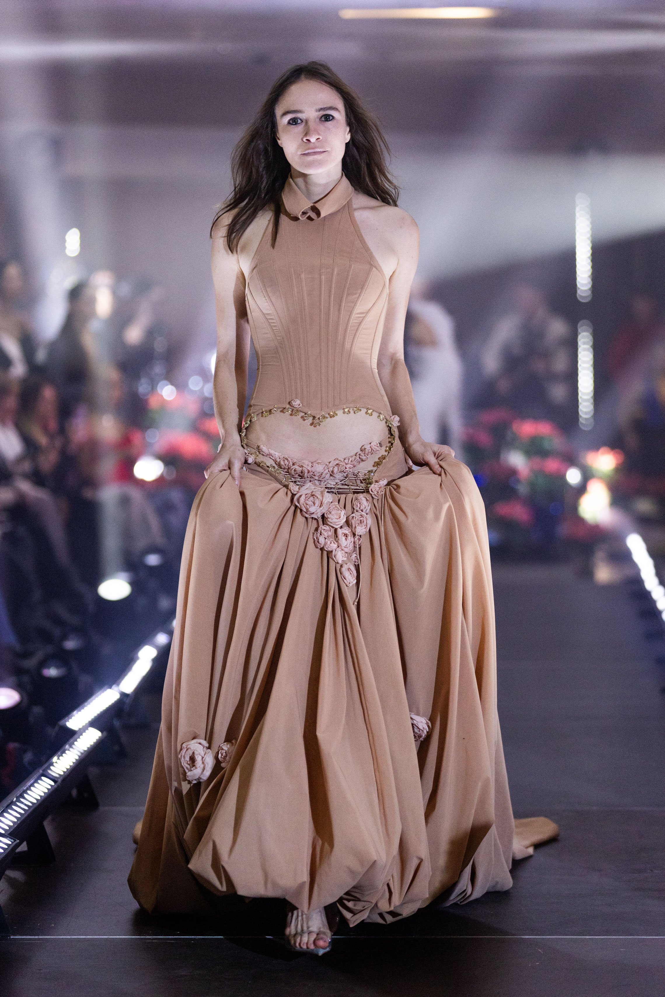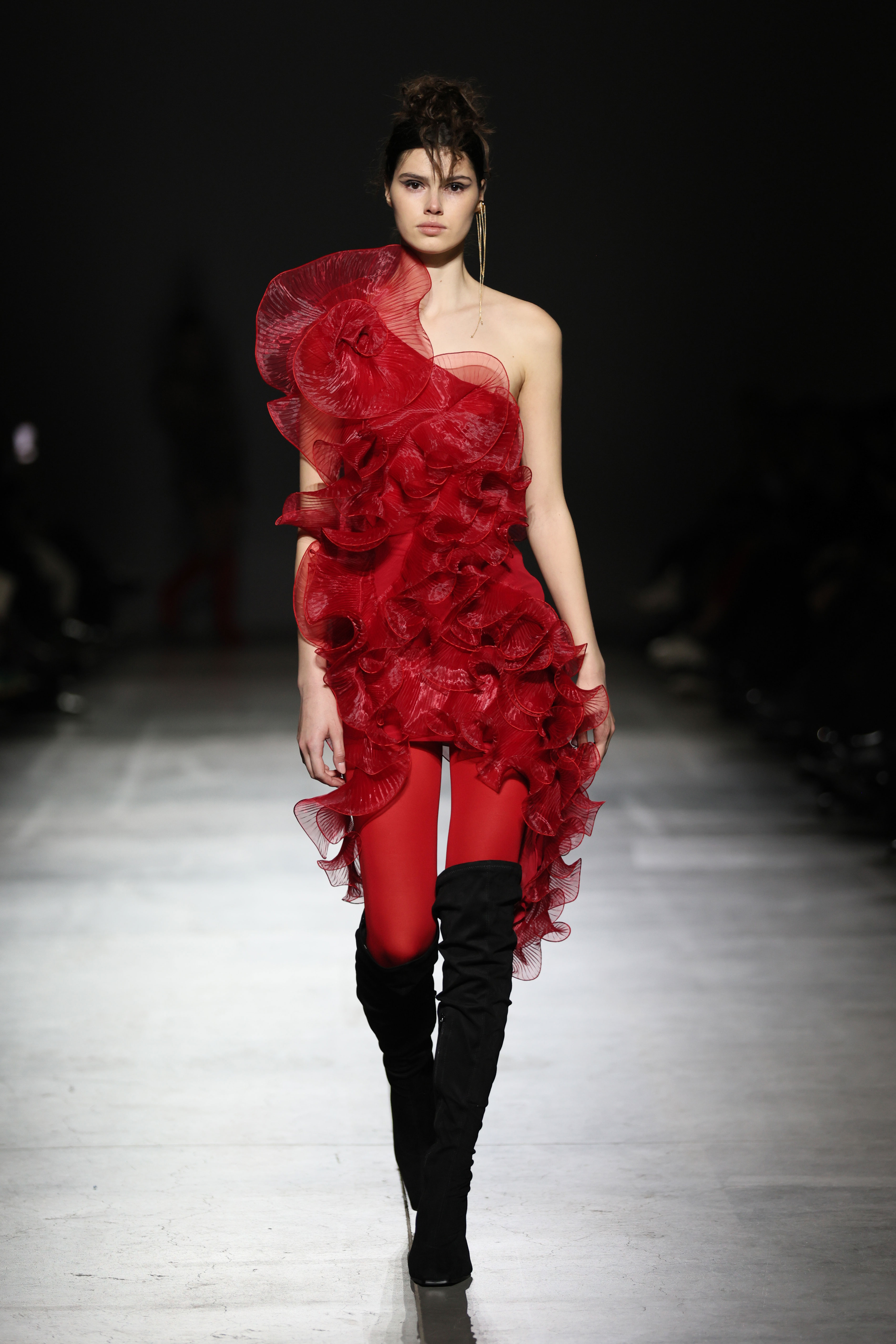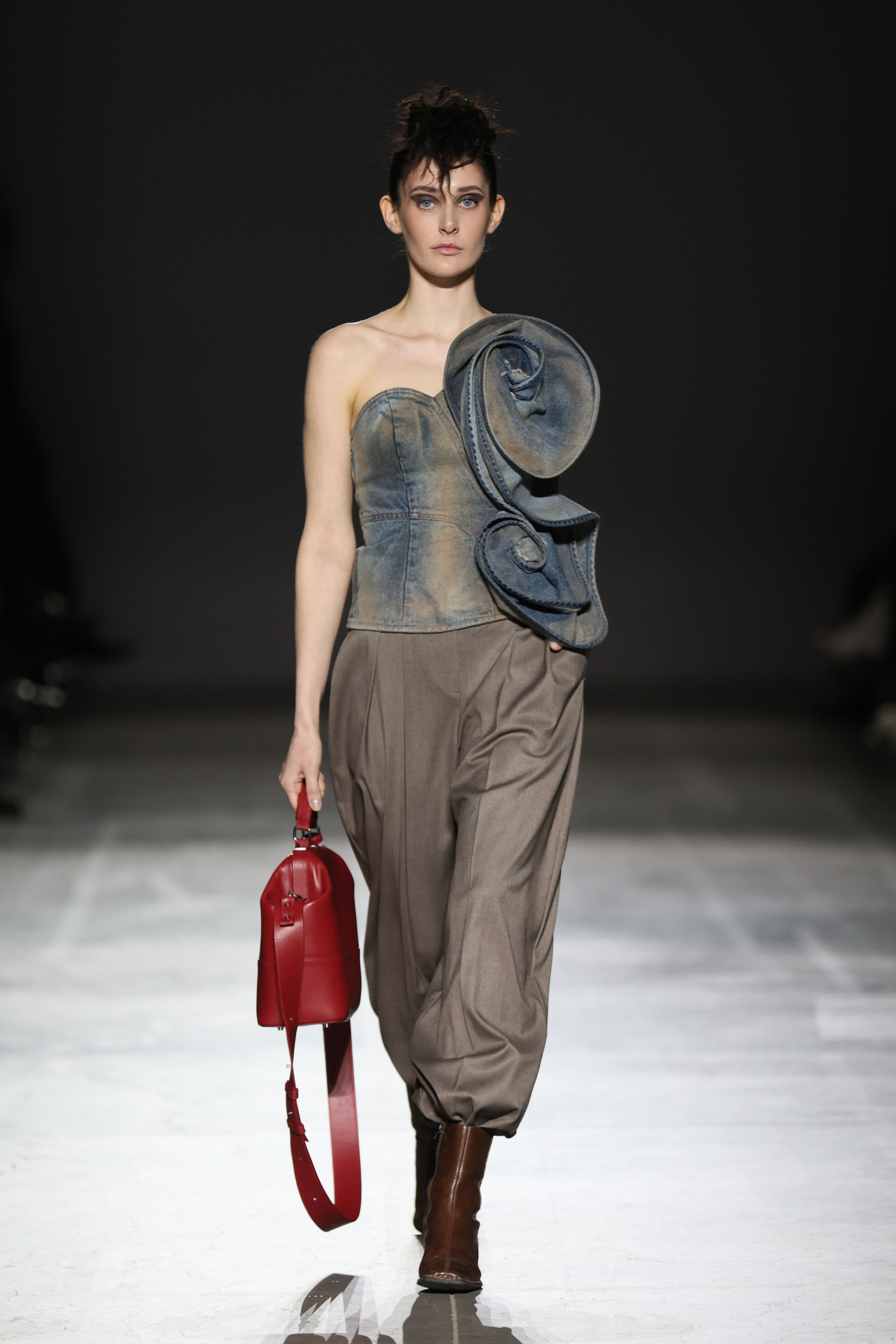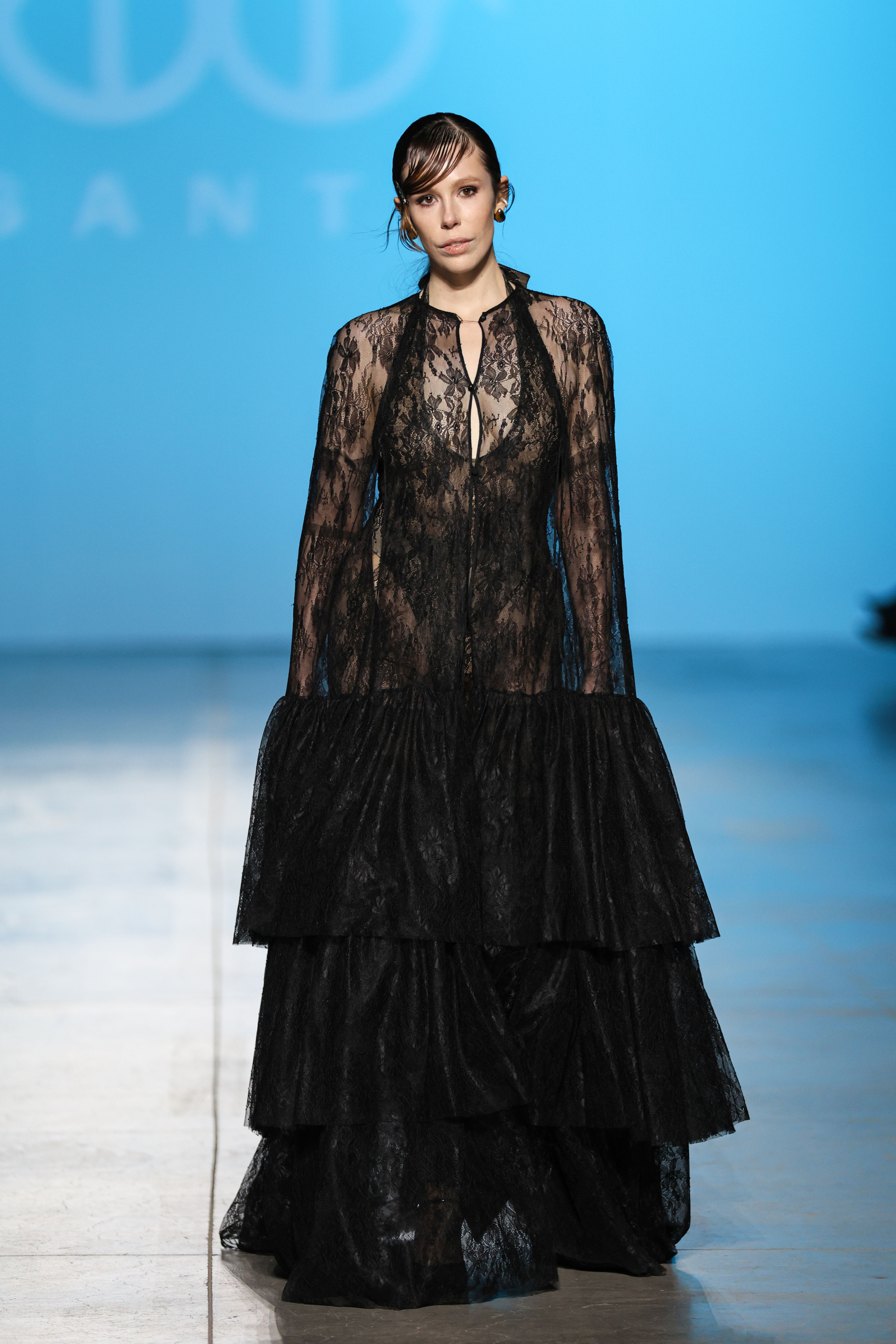 На показі SANTA прозоре мереживо зіштовхувалося з щільною текстурою шкіри, продовжуючи філософію бренду про двоїстість жіночної природи, де переплітається чуттєвість і рішучість, грайливість та міць. У колекції з’явилися характерні для SANTA матеріали у вигляді розкішного хутра, об'ємного пір’я, глибокого оксамиту. «Від строгих силуетів суконь і корсетів до масивних плечей жакетів — кожна річ із колекції кидає виклик традиційному сприйняттю жіночого образу», — розповідають у бренді.