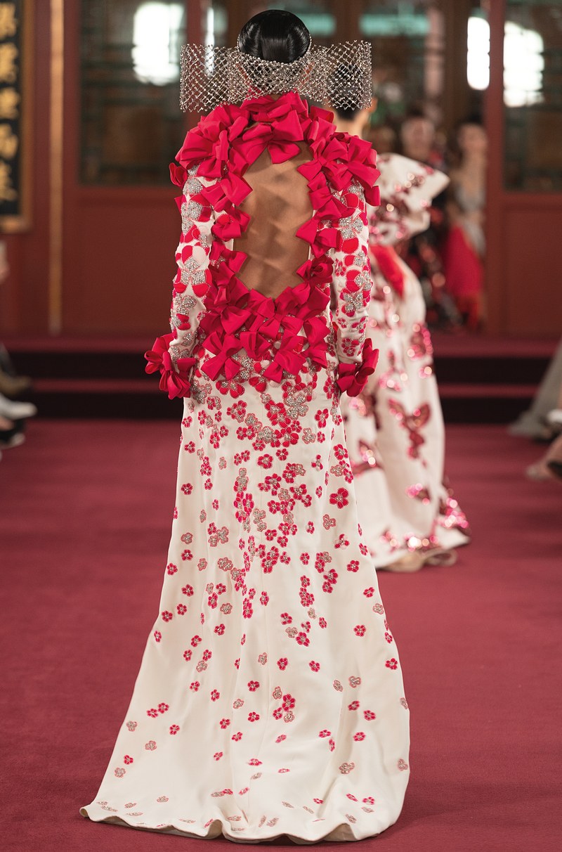 Грандиозное шоу прошло в пекинском Летнем императорском дворце. На создание образов дизайнера вдохновил период итальянского Ренессанса. Пиччоли также отметил, что считает очень важной дружбу двух культур — диаметрально разных, но прекрасных. Совсем недавно креативный директор дома даже вдохновился культурой традиционного китайского костюма, работая над зимней кутюрной коллекцией. В этот раз Пиччоли также интегрировал в образы ориентальные элементы — головы моделей украшали маленькие черные шапочки, а макияж включал вытянутые черные стрелки и золотое напыление на лице, напоминающее маски актёров кантонской оперы.