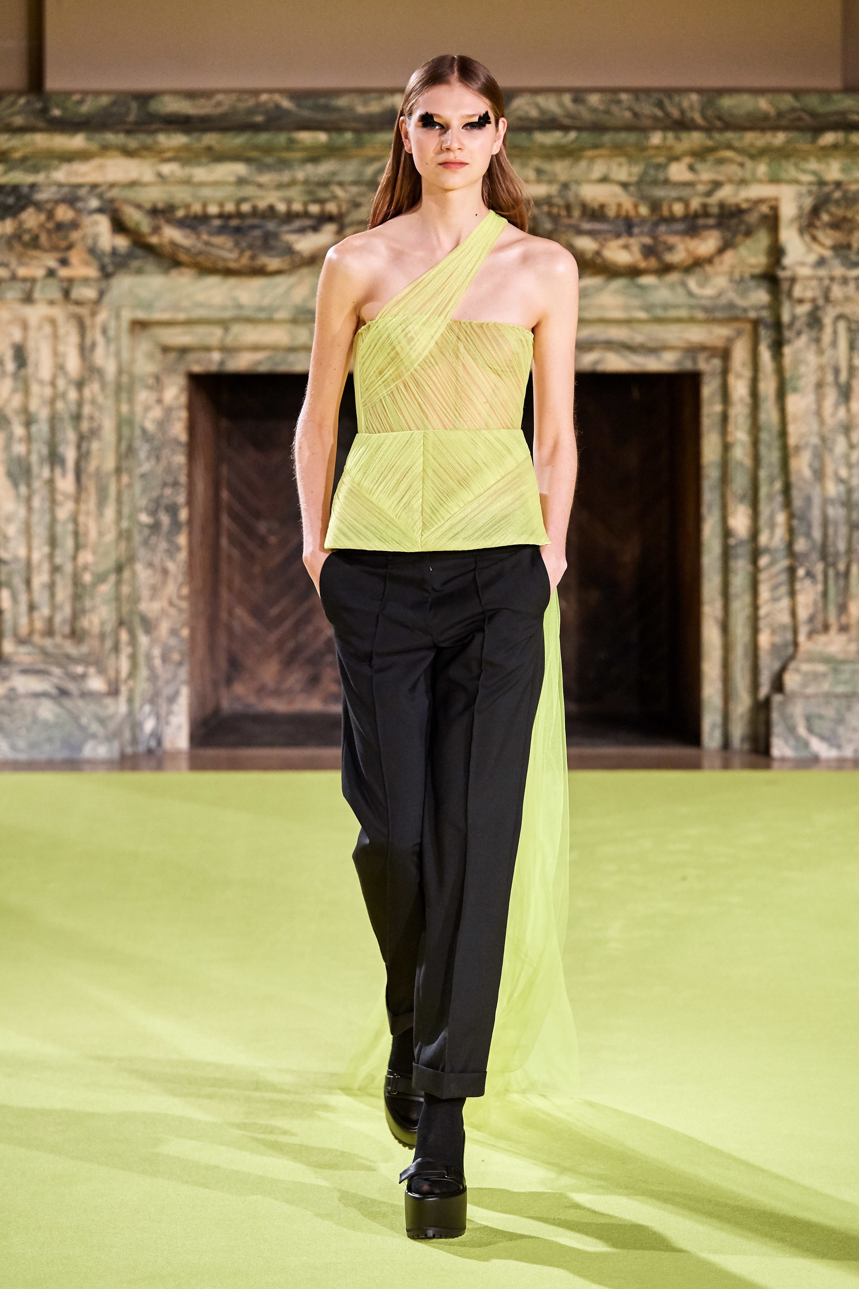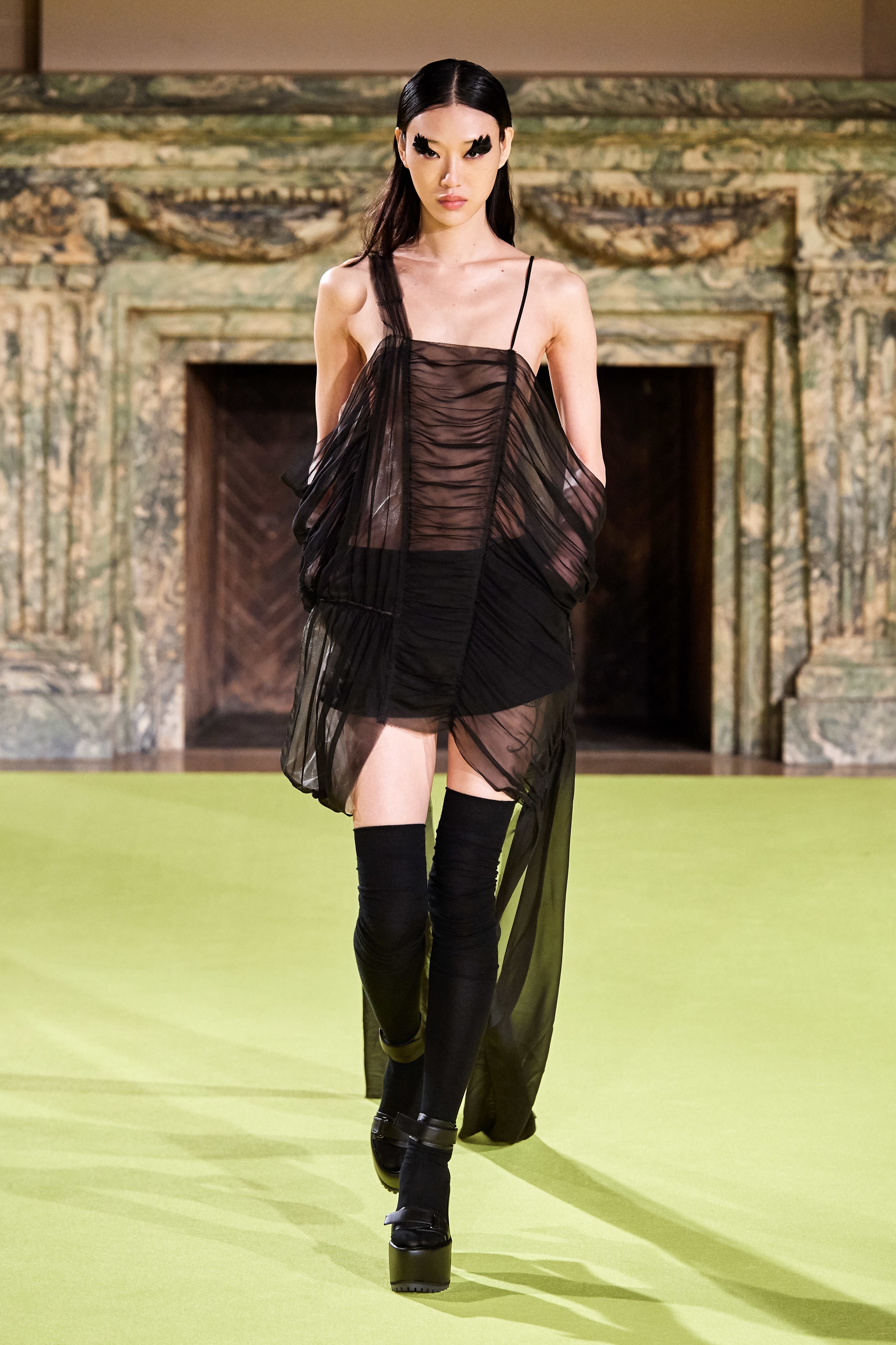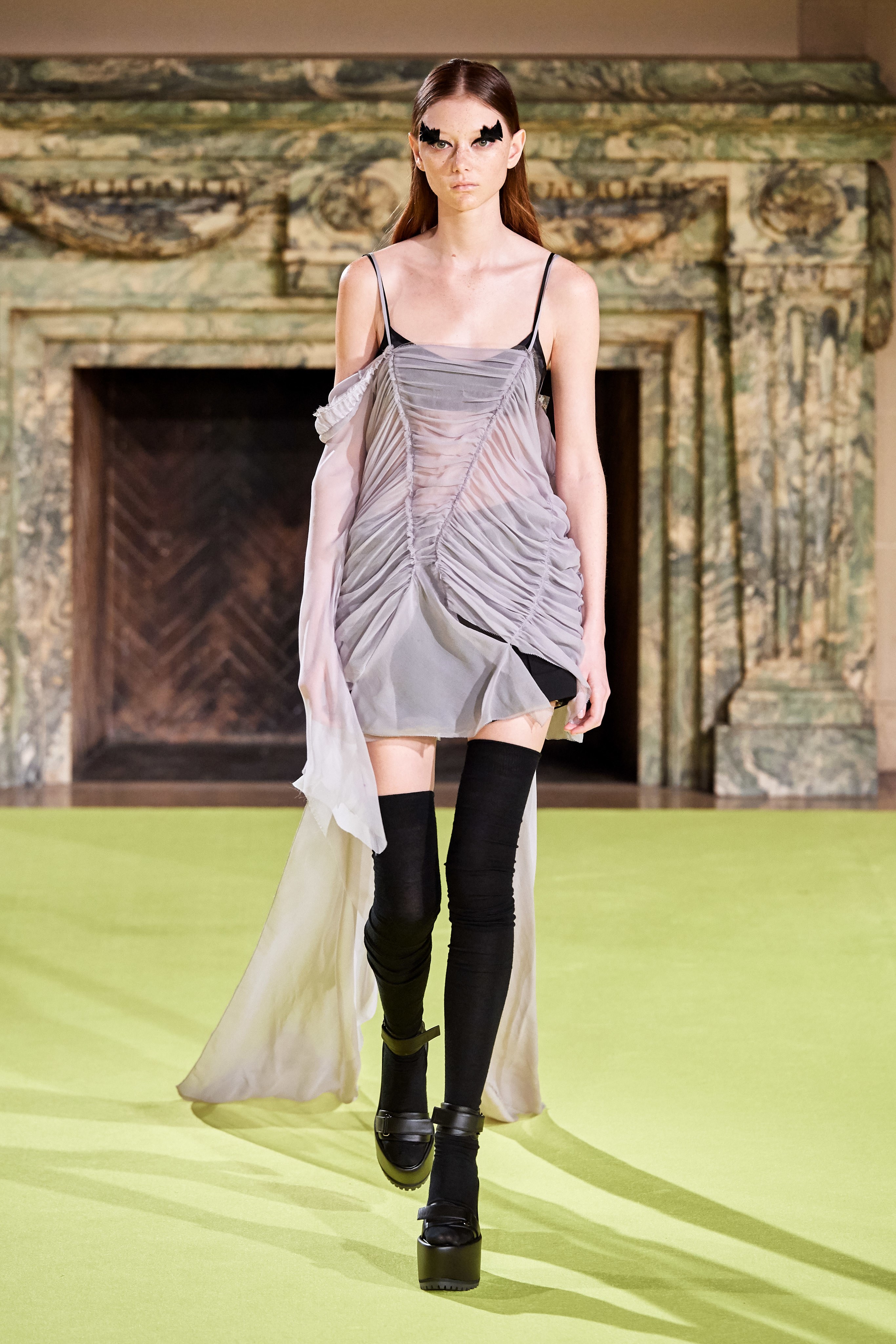 В Нью-Йорке прошёл показ осенней коллекции Vera Wang. Специально для шоу был выстлан подиум в доме знаменитого американского промышленника и миллионера Джеймса Бьюкенена Дьюка. В стенах монументального сооружения, среди мраморных колонн и гигантских каминов, к гостям выходили модели в неоготических образах: в асимметричных тюлевых платьях поверх спортивных топов и микрошорт, соблазнительных топах со шлейфами и вечерних платьях средневековых силуэтов. Наряды завершали босоножки на платформе, высокие чёрные гольфы и шелковые перчатки с отворотами выше локтя.