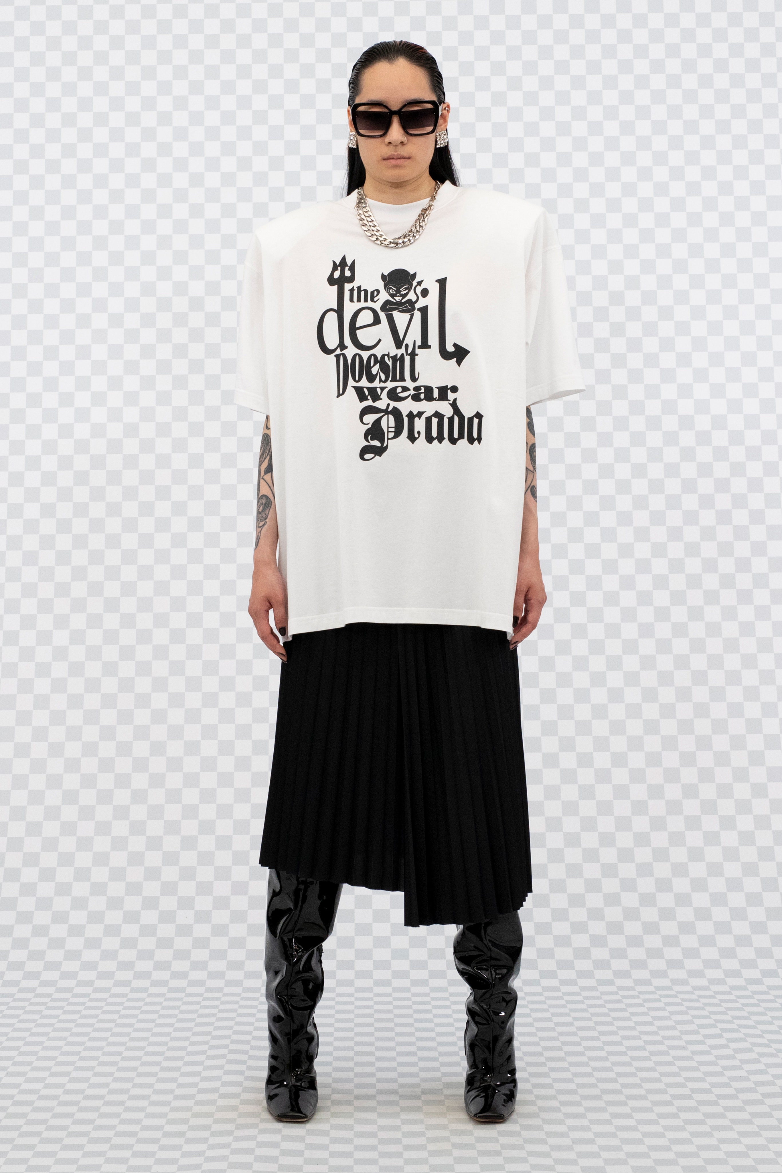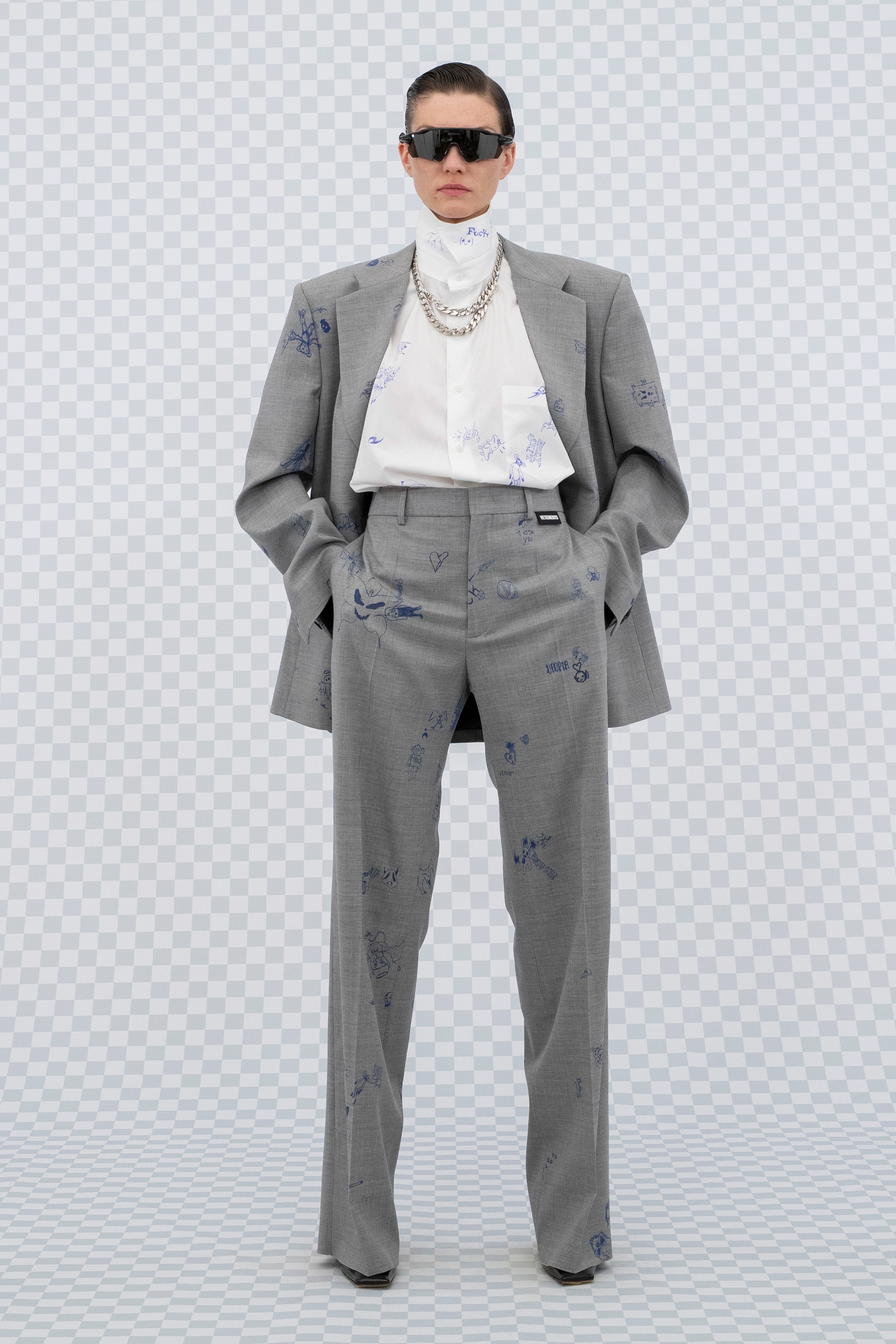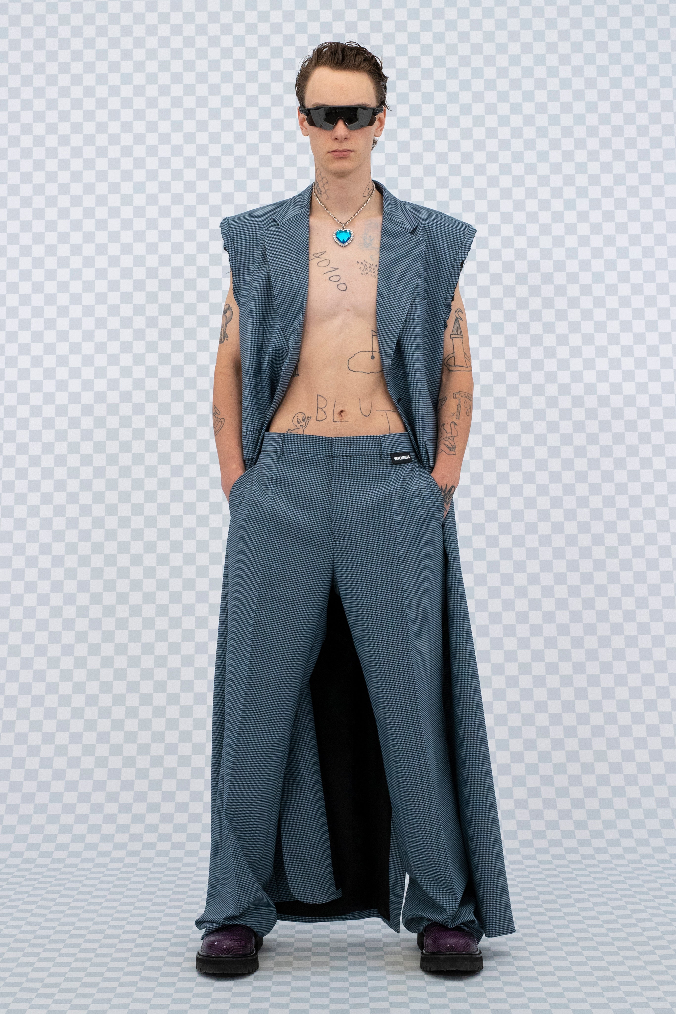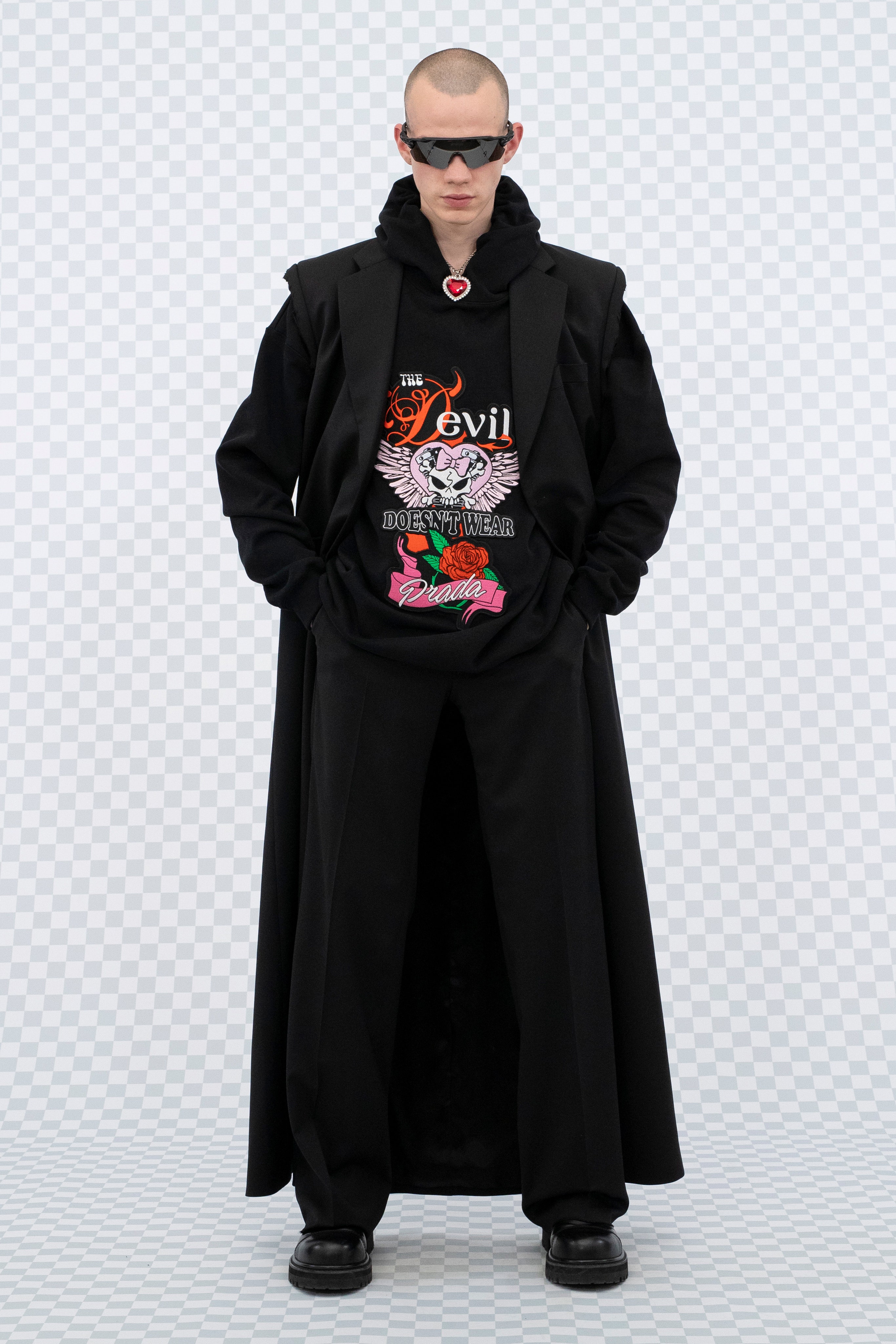 Образы коллекции напоминают персонажей игр, а также включают отсылки к популярной культуре 2000-х. Так, среди героев лукбука есть рок-н-ролльщики с укладками в стиле культового музыканта Брайана Сетцера, персонажи в духе фильмов "Блейд" и Mortal Combat, а также модели в толстовках и футболках с надписью "Дьявол не носит Prada". В последнем жесте угадываются подспудные планы Гвасалии на сотрудничество с Миуччей Прадой (остается только догадываться).