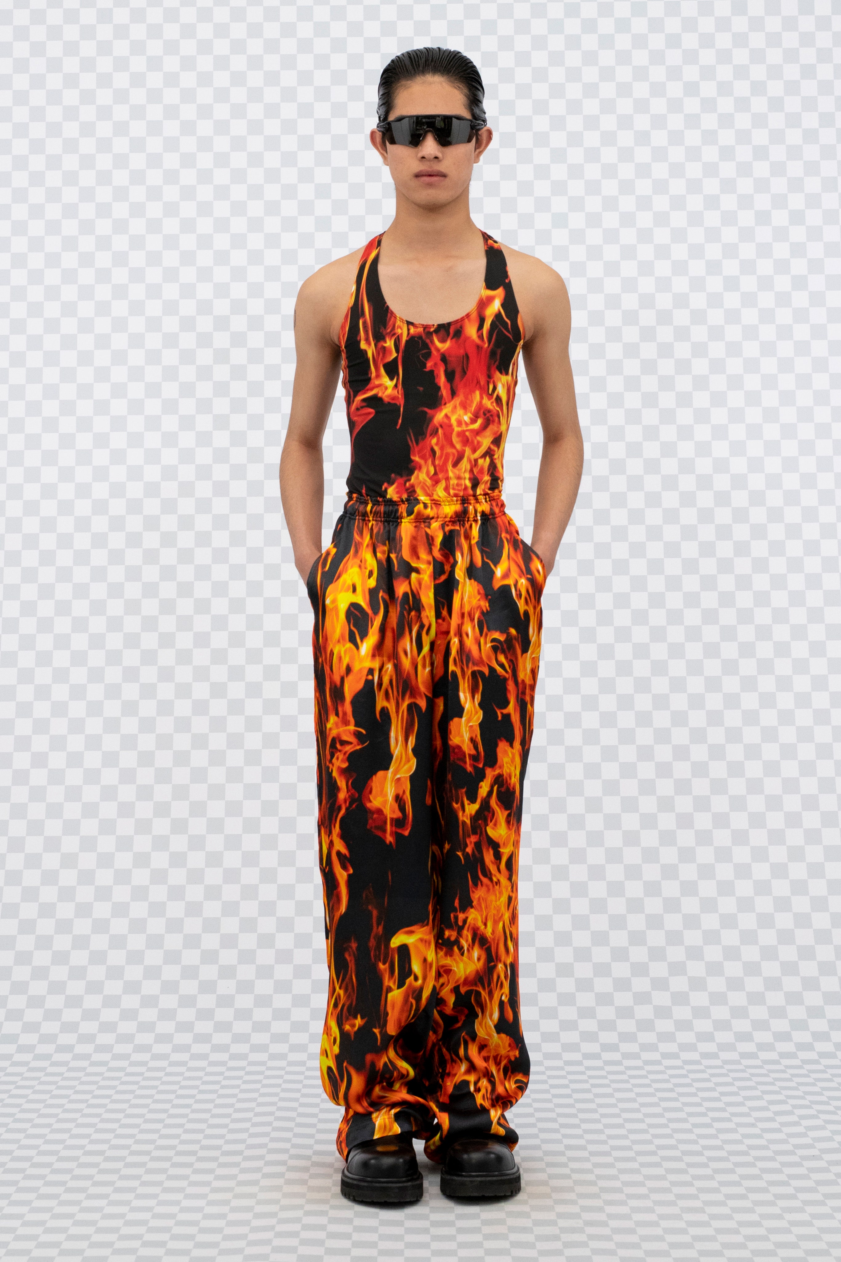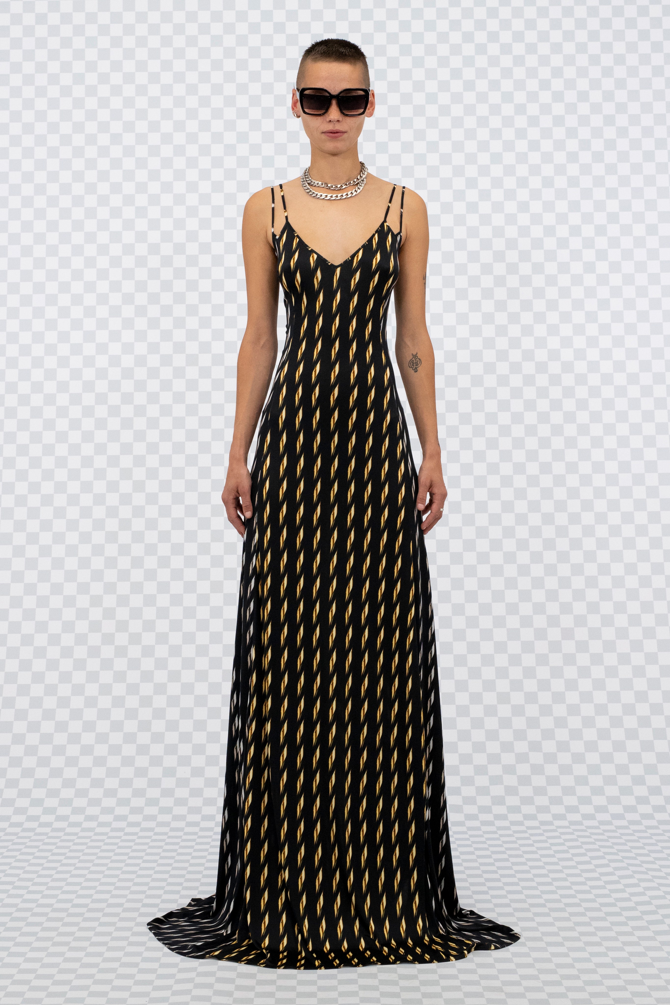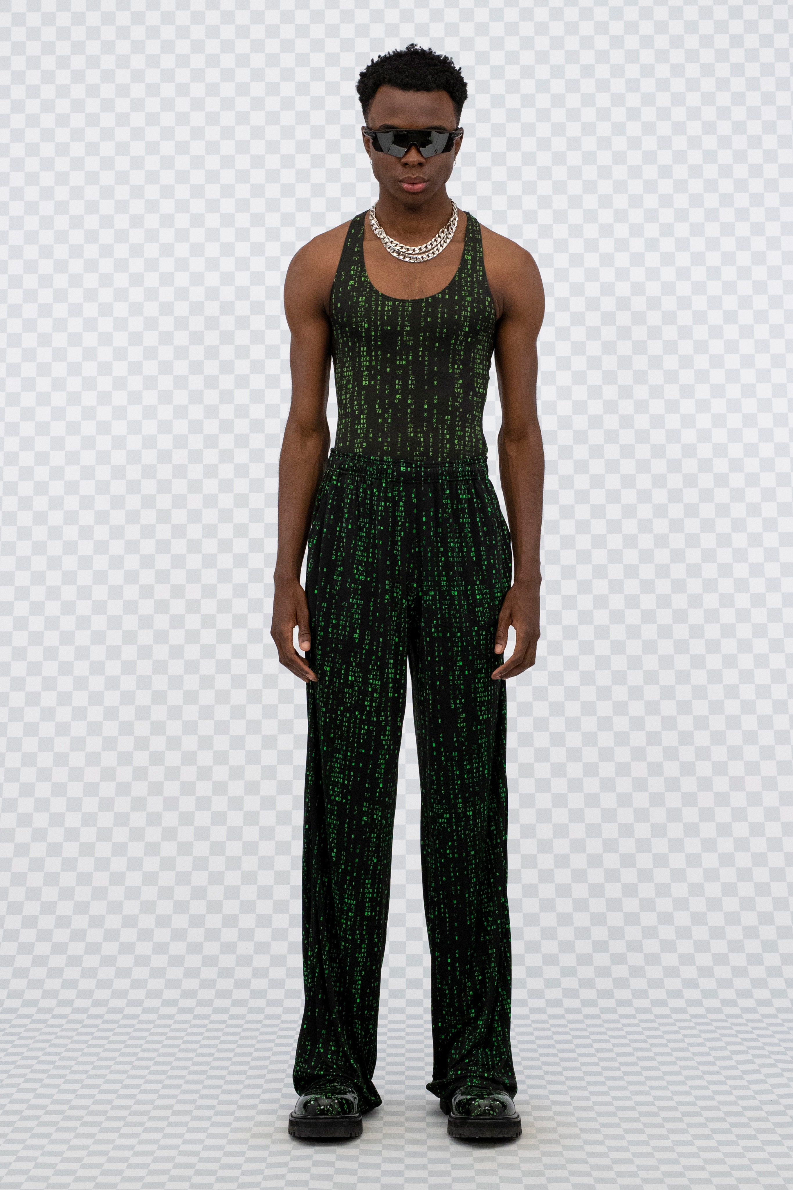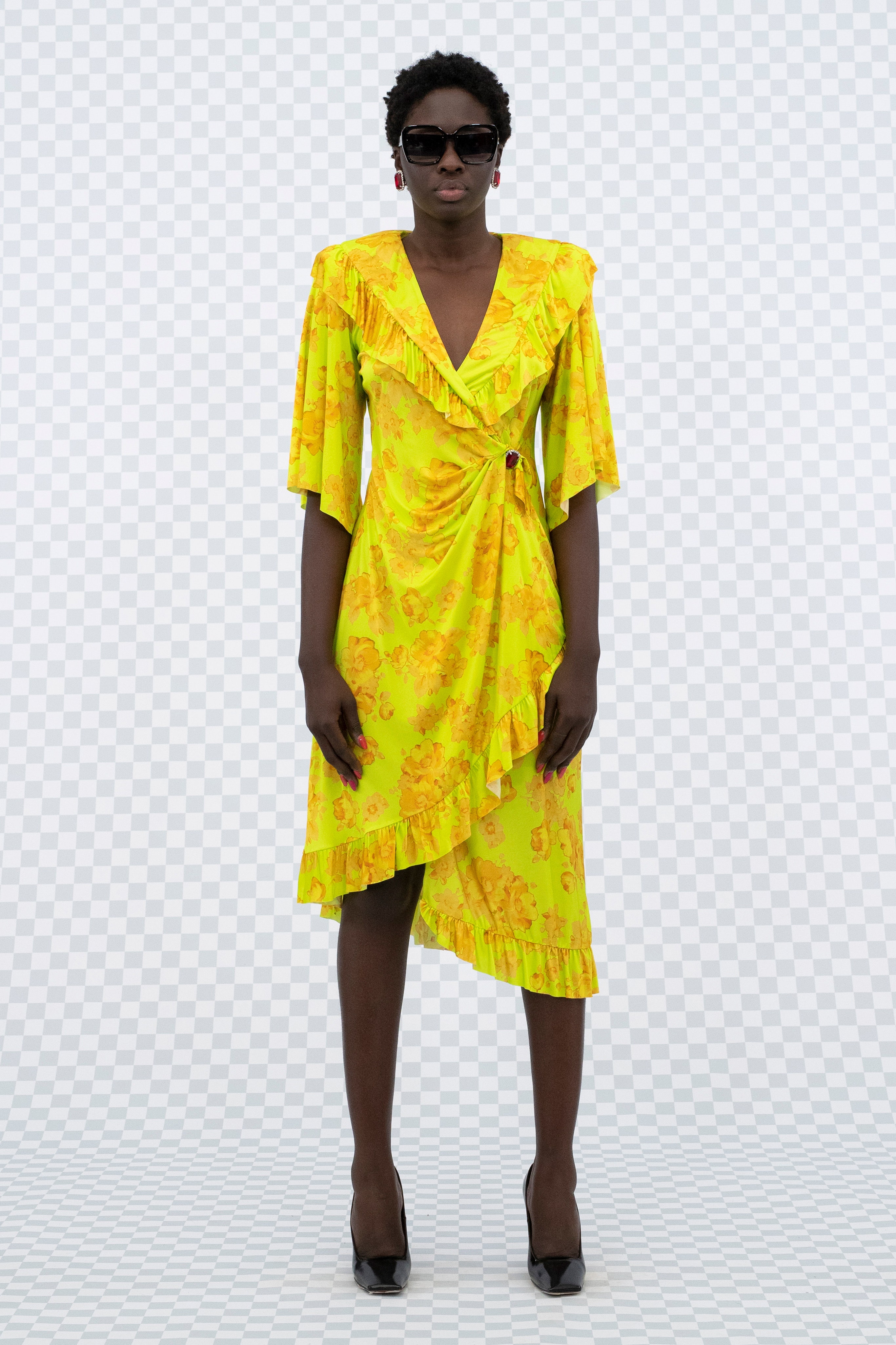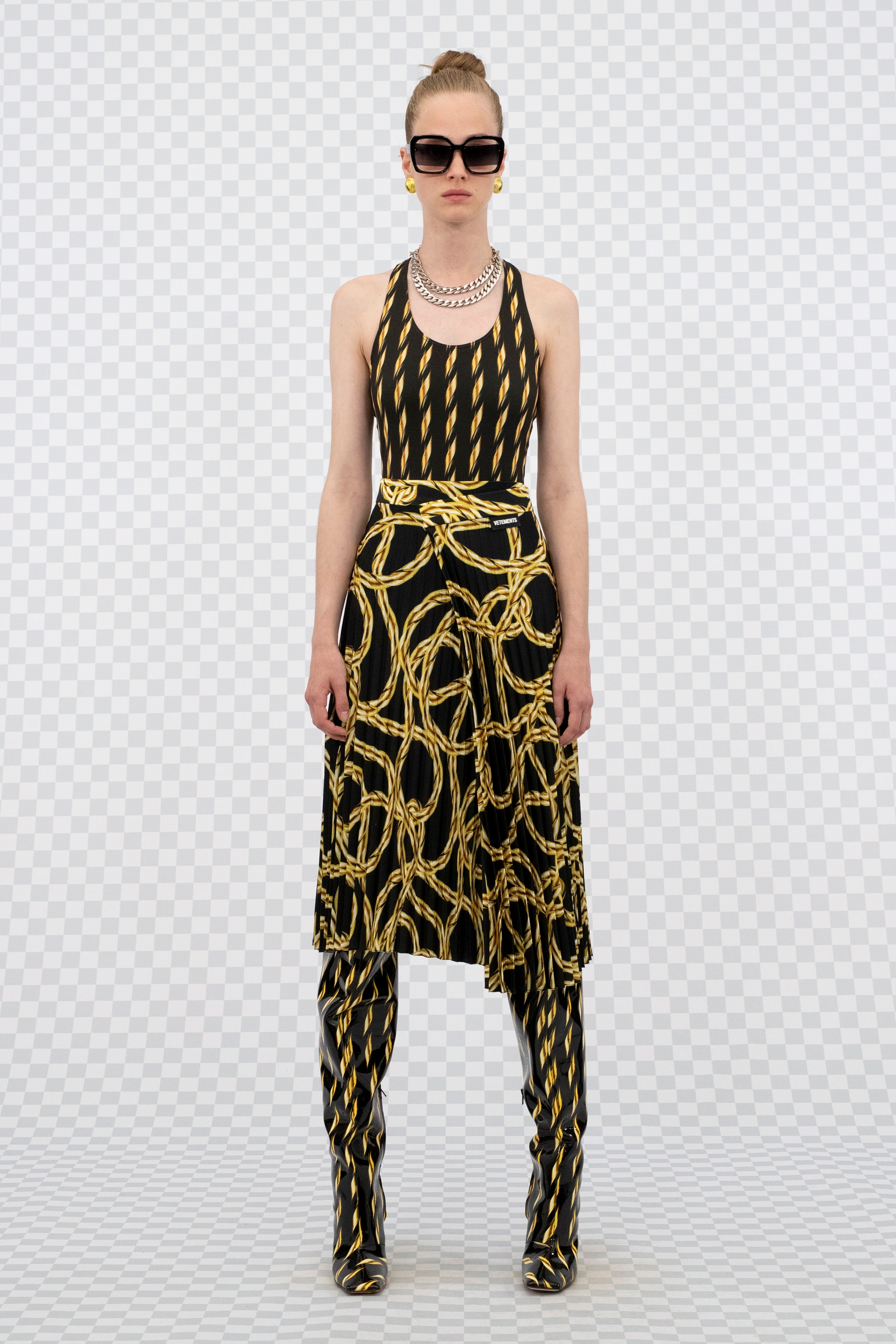 В коллекции будущей весны содержатся узнаваемые коды этой двухмерной реальности, в которую мы так погружены через свои смартфоны и компьютеры. К примеру, лукбук представлен на стандартном для приложения Photoshop сером шахматном фоне (насколько правдивы изображения, которые мы видим в Instagram?), а на моногольфах, рубашках, платьях и топах разместились принты в виде цифрового кода из культового фильма "Матрица", оптических элементов вроде разноцветных полос и графических языков пламени. Эти узоры разбавлены и более природными, например узором спинки саламандры и почти пасторальными, пышными букетами роз — намек на всеобщее стремление заново воссоединиться с природой в рамках невозможности отринуть цифровые реалии.