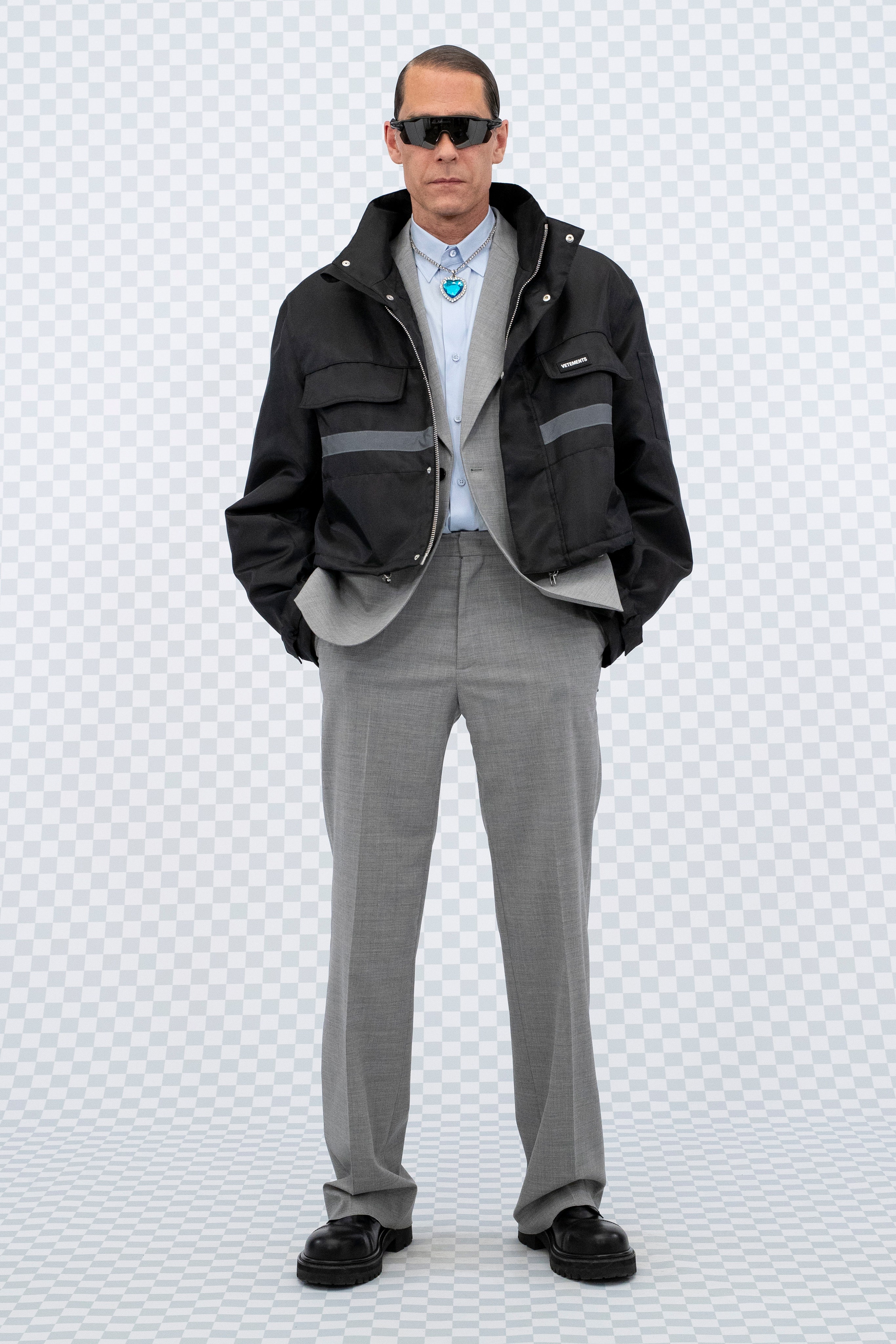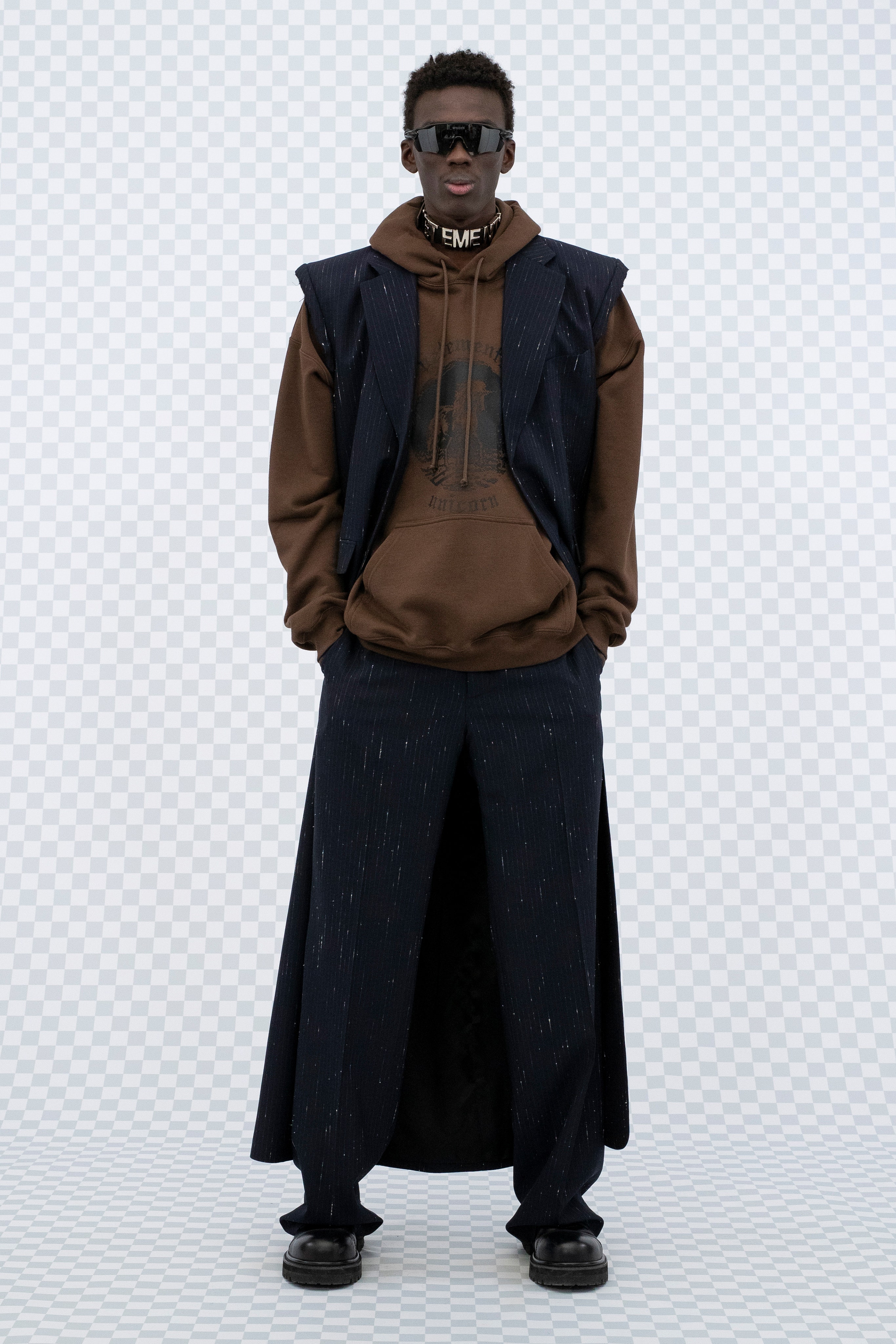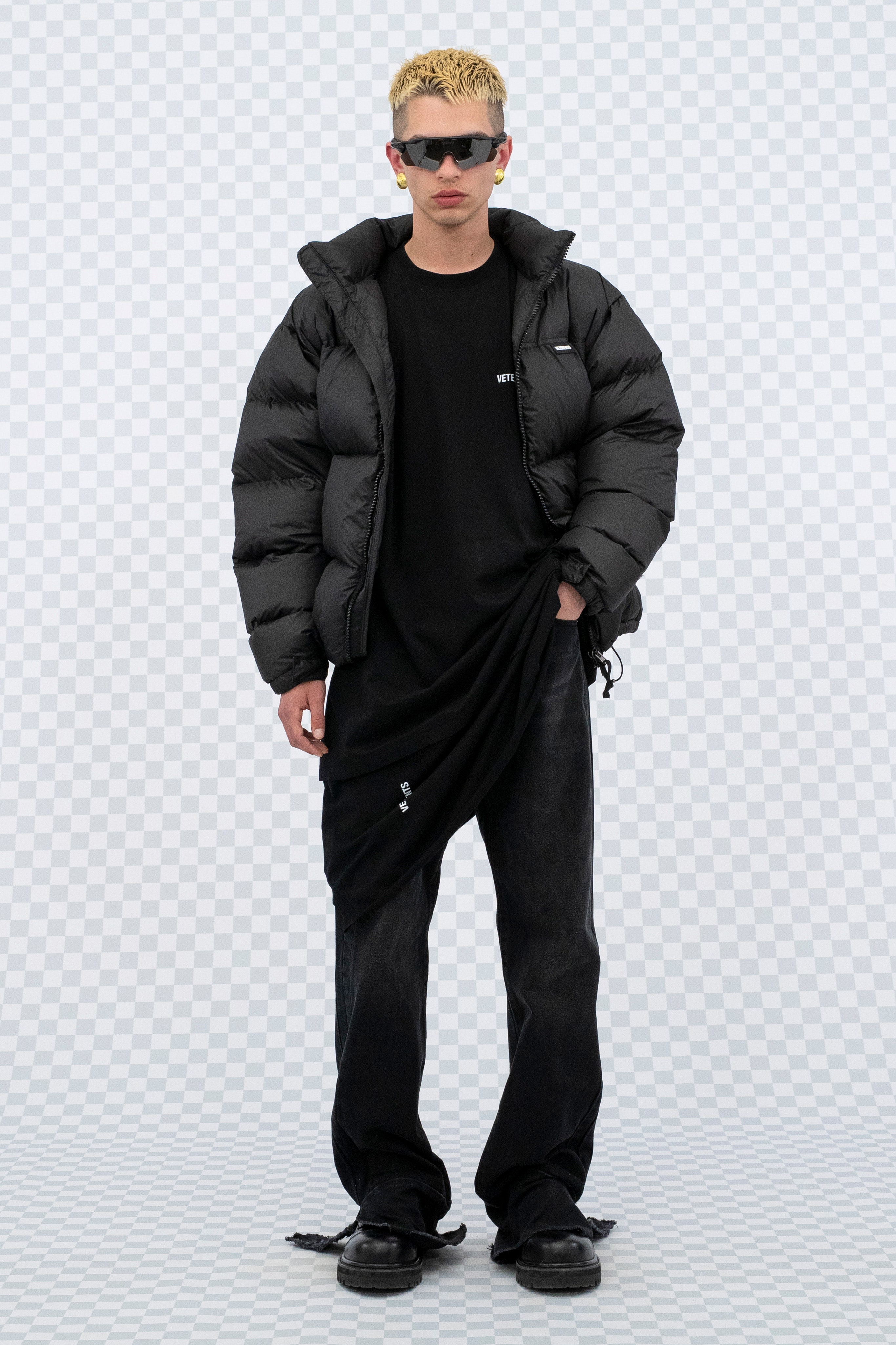 В новой коллекции Vetements — 129 образов, и все они подчинены идее нашего тесного взаимодействия с интернет-реальностью. Гурам Гвасалия, соучредитель марки, размышляет над тем, в какой момент мы оказываемся между реальностями, листая ленту Instagram и потребляя визуальный и культурный контент. Быть может, это интернет потребляет нас?