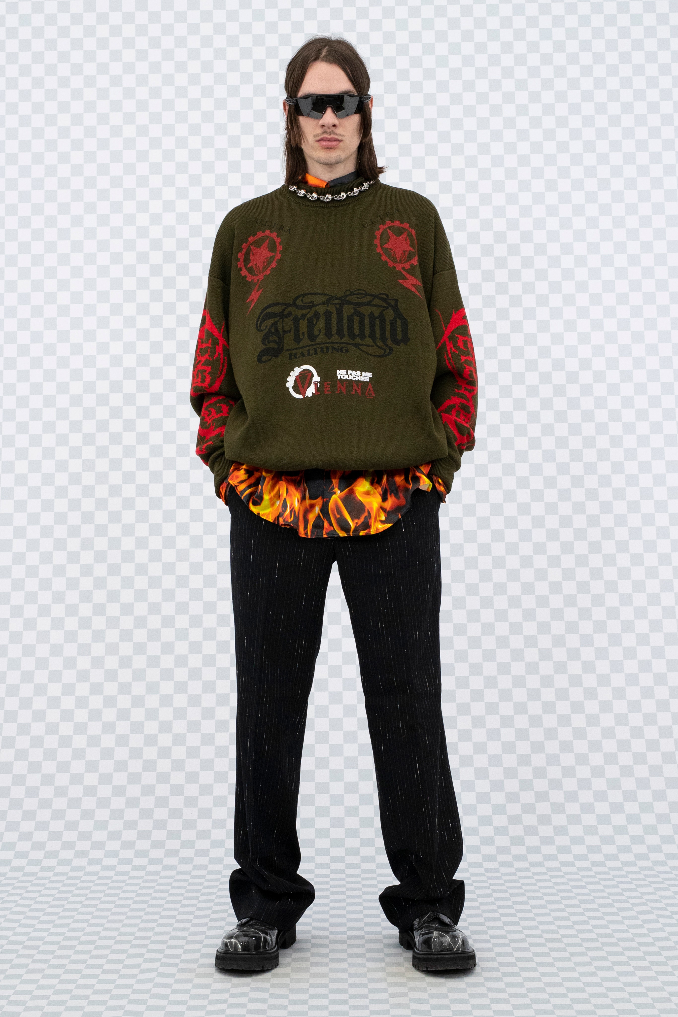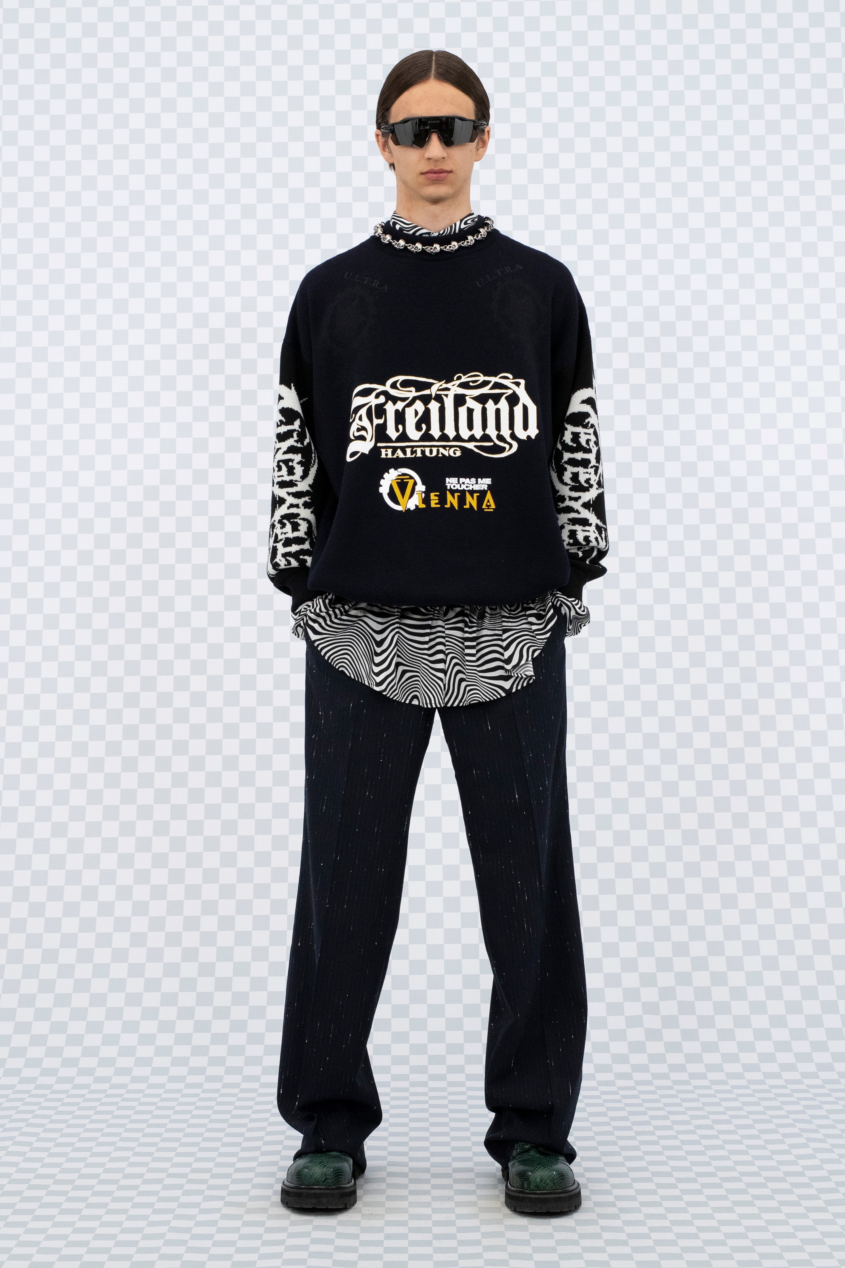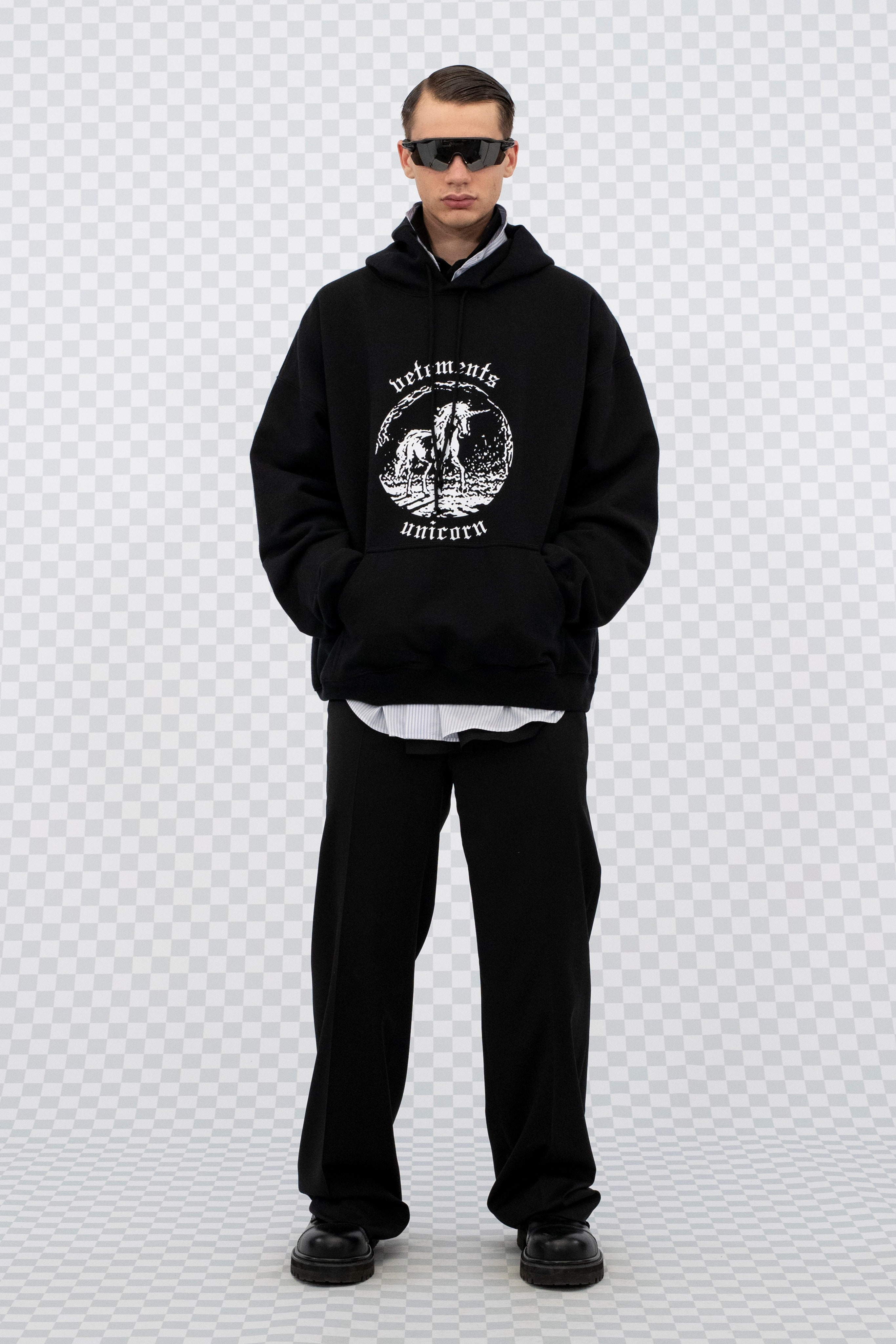 В новой коллекции Vetements — 129 образов, и все они подчинены идее нашего тесного взаимодействия с интернет-реальностью. Гурам Гвасалия, соучредитель марки, размышляет над тем, в какой момент мы оказываемся между реальностями, листая ленту Instagram и потребляя визуальный и культурный контент. Быть может, это интернет потребляет нас?