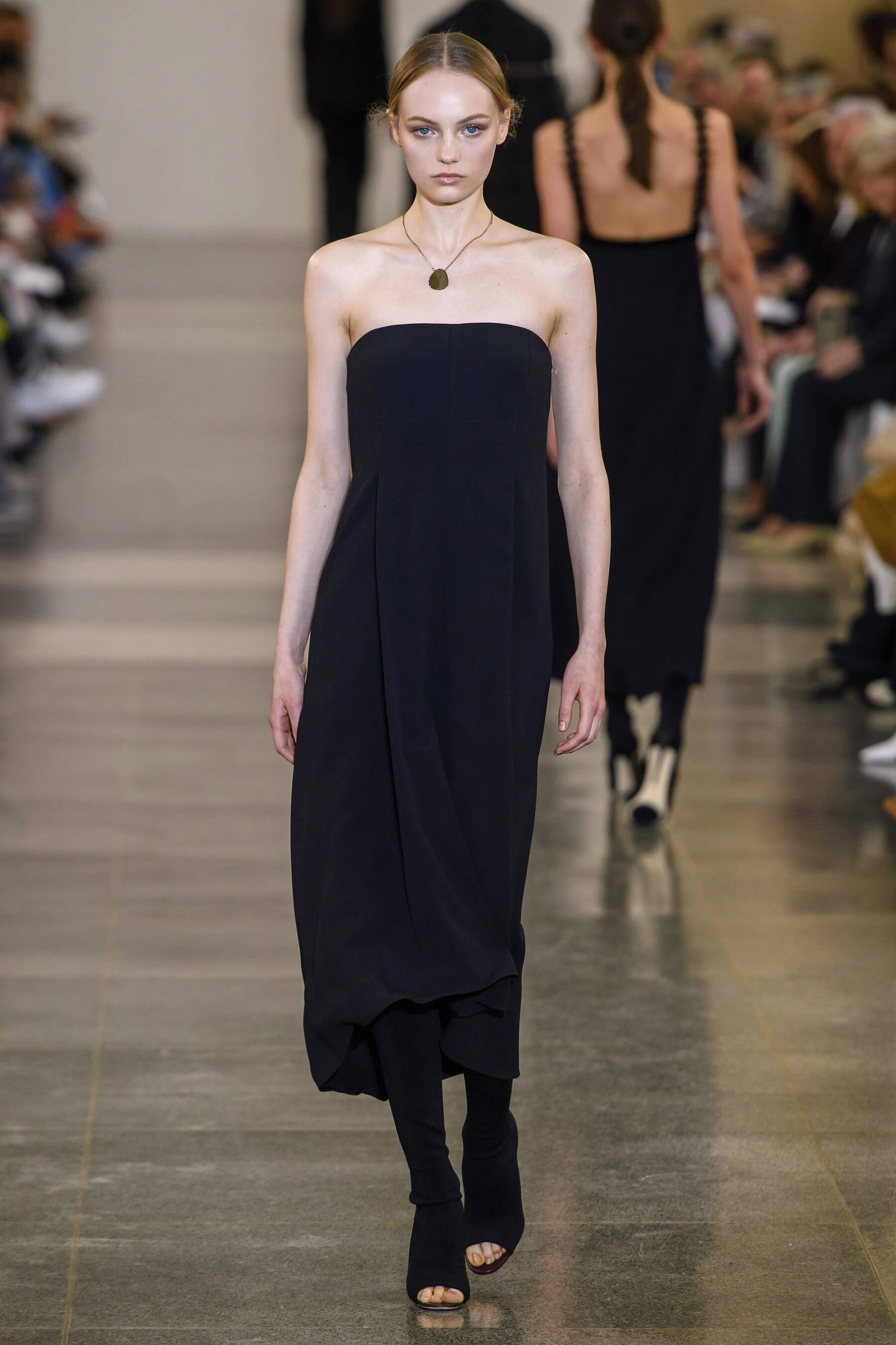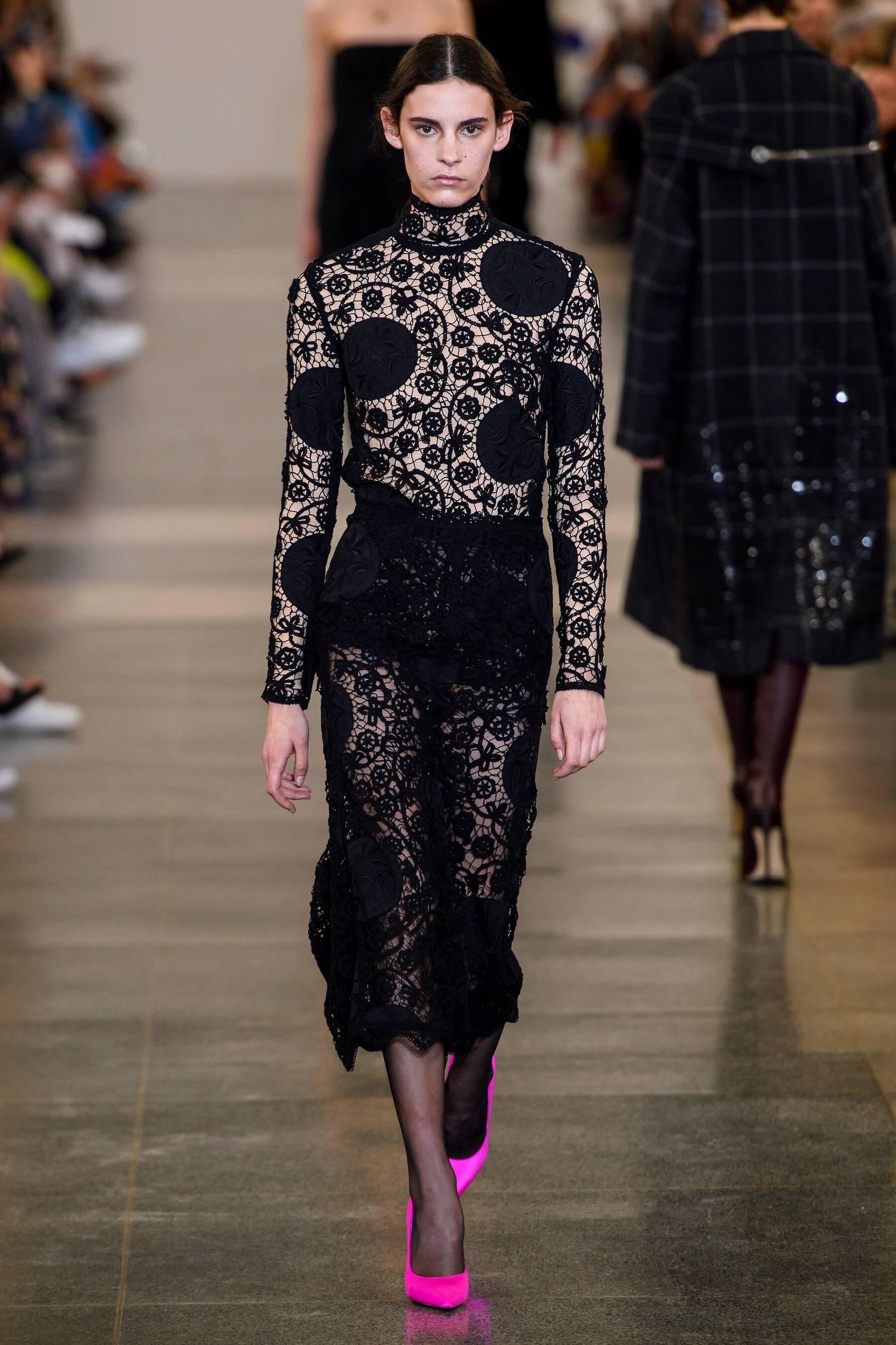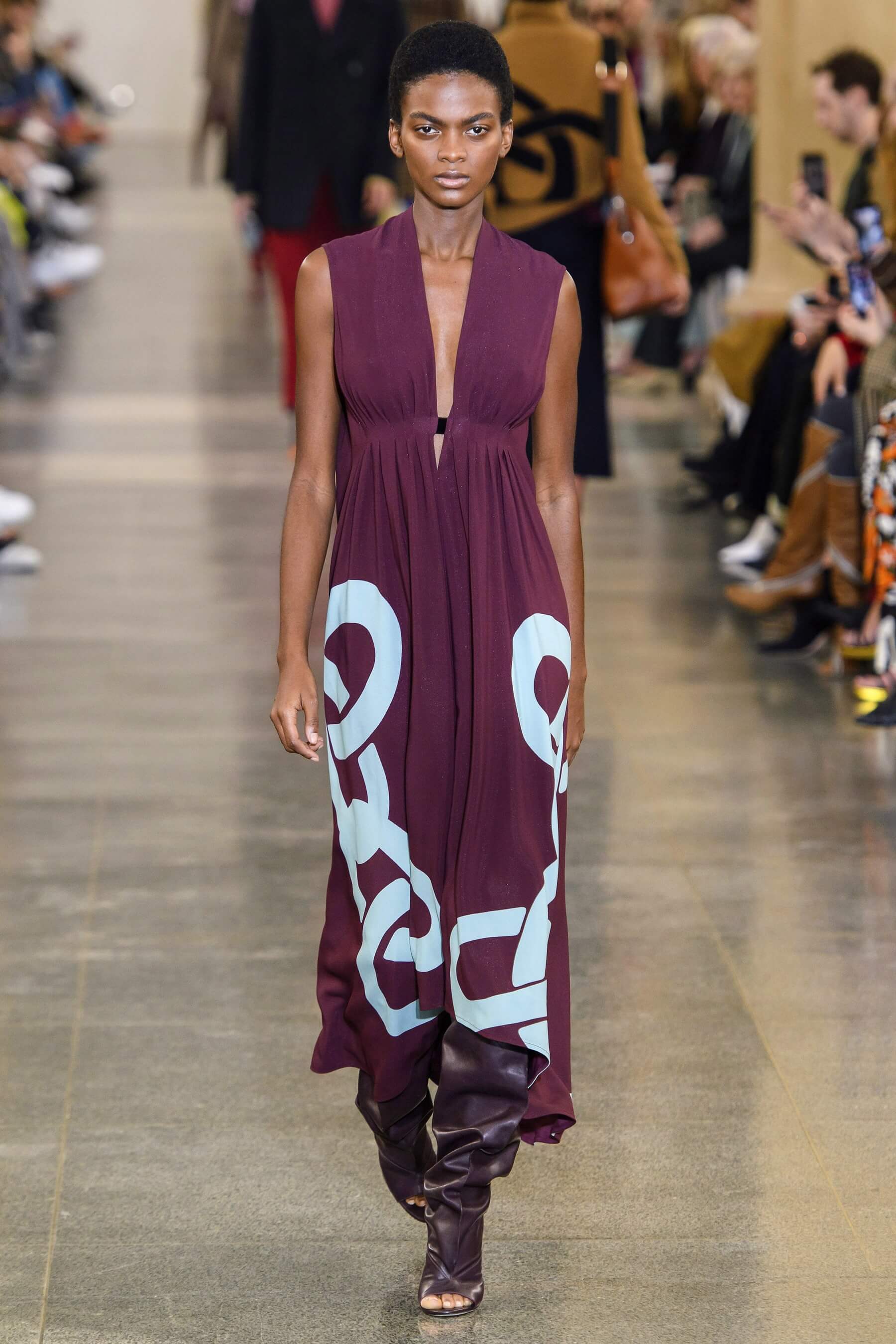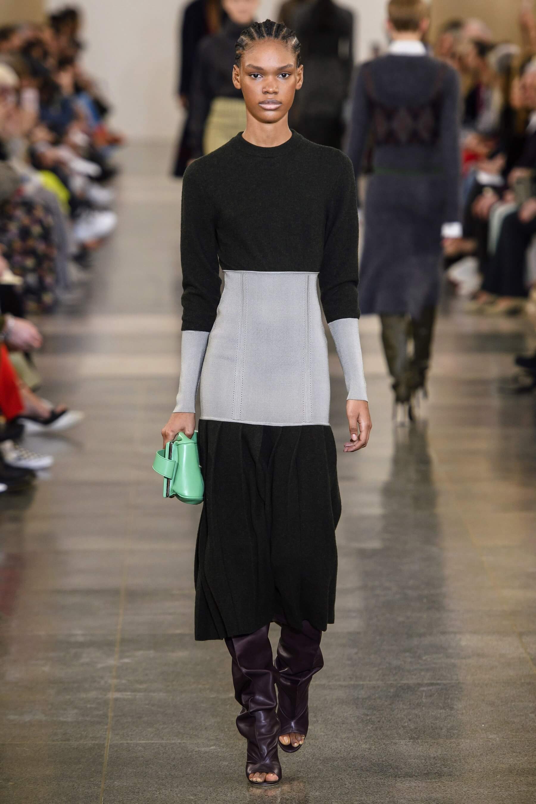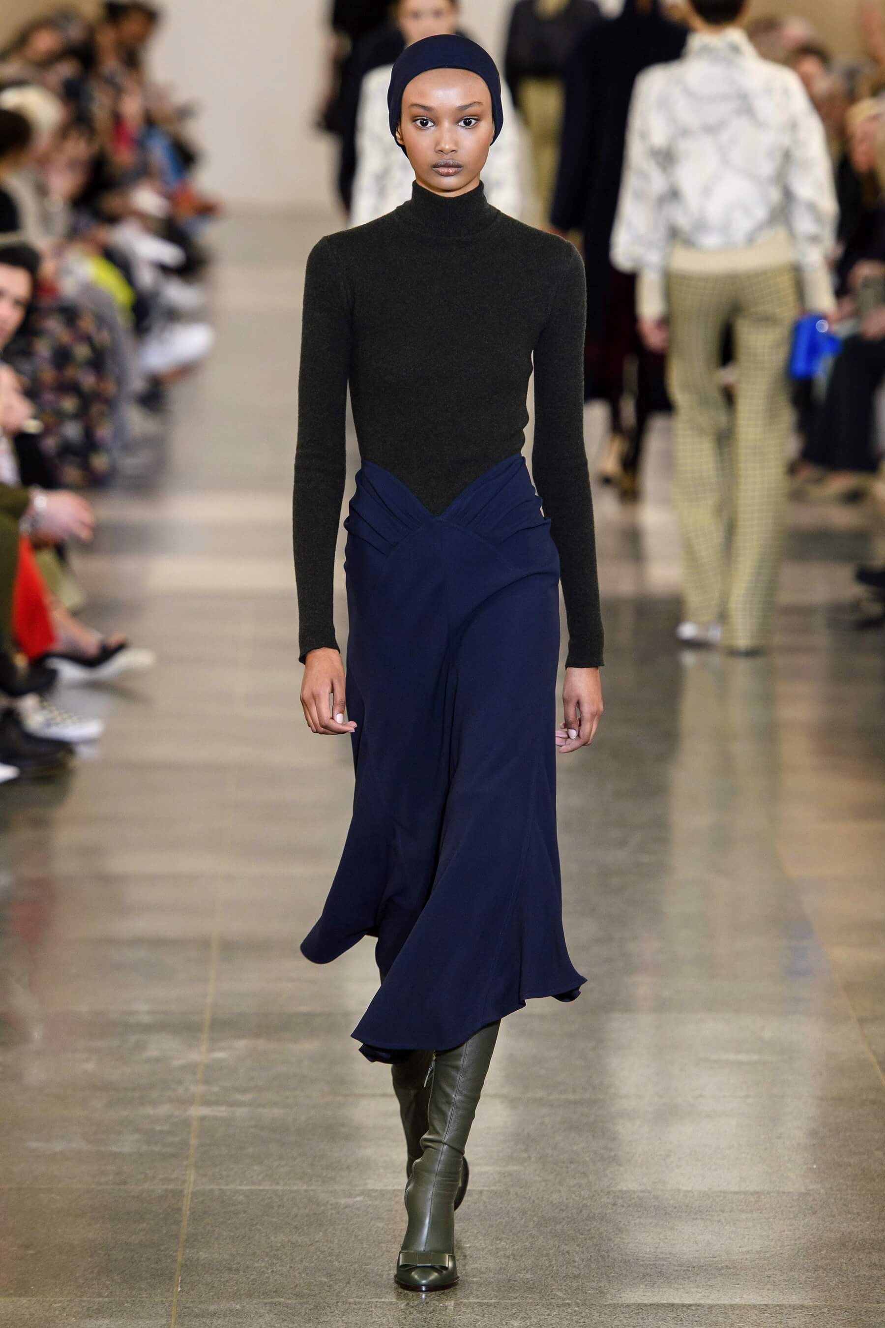 Струящиеся бежевые брюки, неоново-желтые лодочки и обилие удлиненных жакетов и пальто в клетку на показе Виктории Бекхэм дополнили клетчатые блузы с острыми отложными воротниками, мохеровые джемперы — всё как в 70-е, только лучше. Клетка — от пунктирной до классической мелкой "аргайл" — и горячий оранжево-красный оттенок стали главными элементами очередной и, как всегда, удачной работы Виктории на тему базового гардероба современной женщины. Для вечерних образов в коллекции также нашлось место — на подиуме появлялись модели в минималистичных черных платьях.
