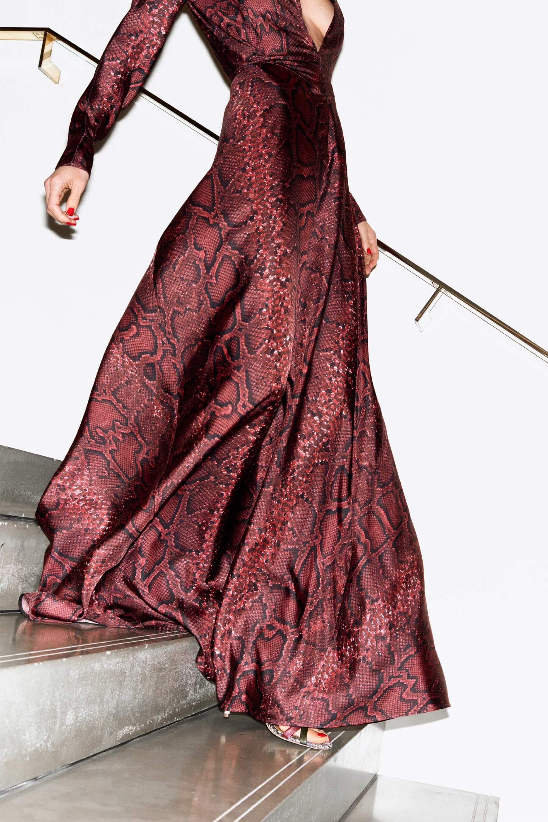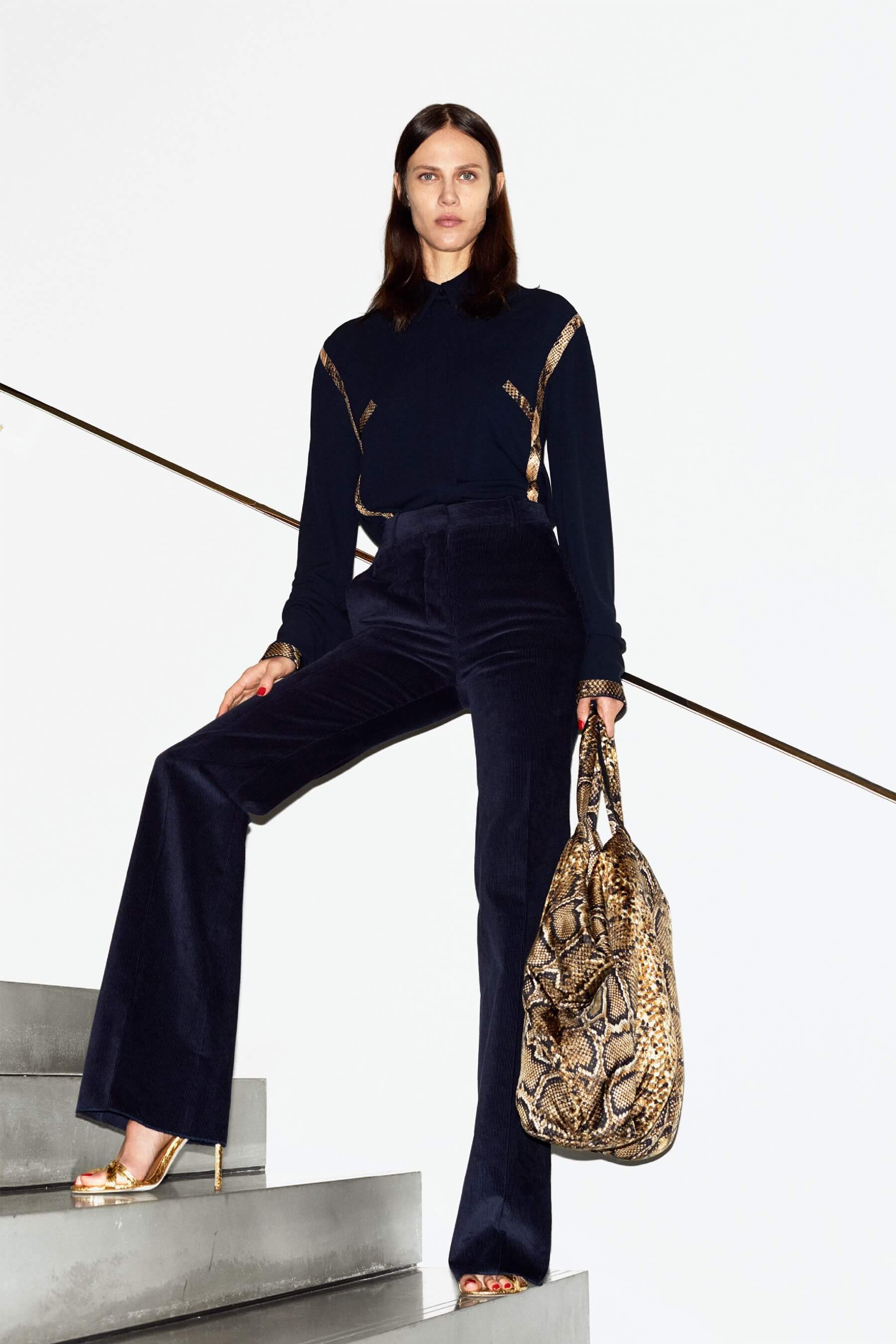 В коллекцию вошли легкие платья, шерстяные костюмы и пальто, вязаный трикотаж. Виктория отходит от любимых ею костюмов “как с мужского плеча” и делает ставку на яркие аксессуары, способные изменить весь образ. Сатиновые лодочки цвета фуксии — еще один центральный элемент коллекции — наиболее выигрышно смотрятся с шелковым платьем со змеиным принтом и сумкой в тон.
