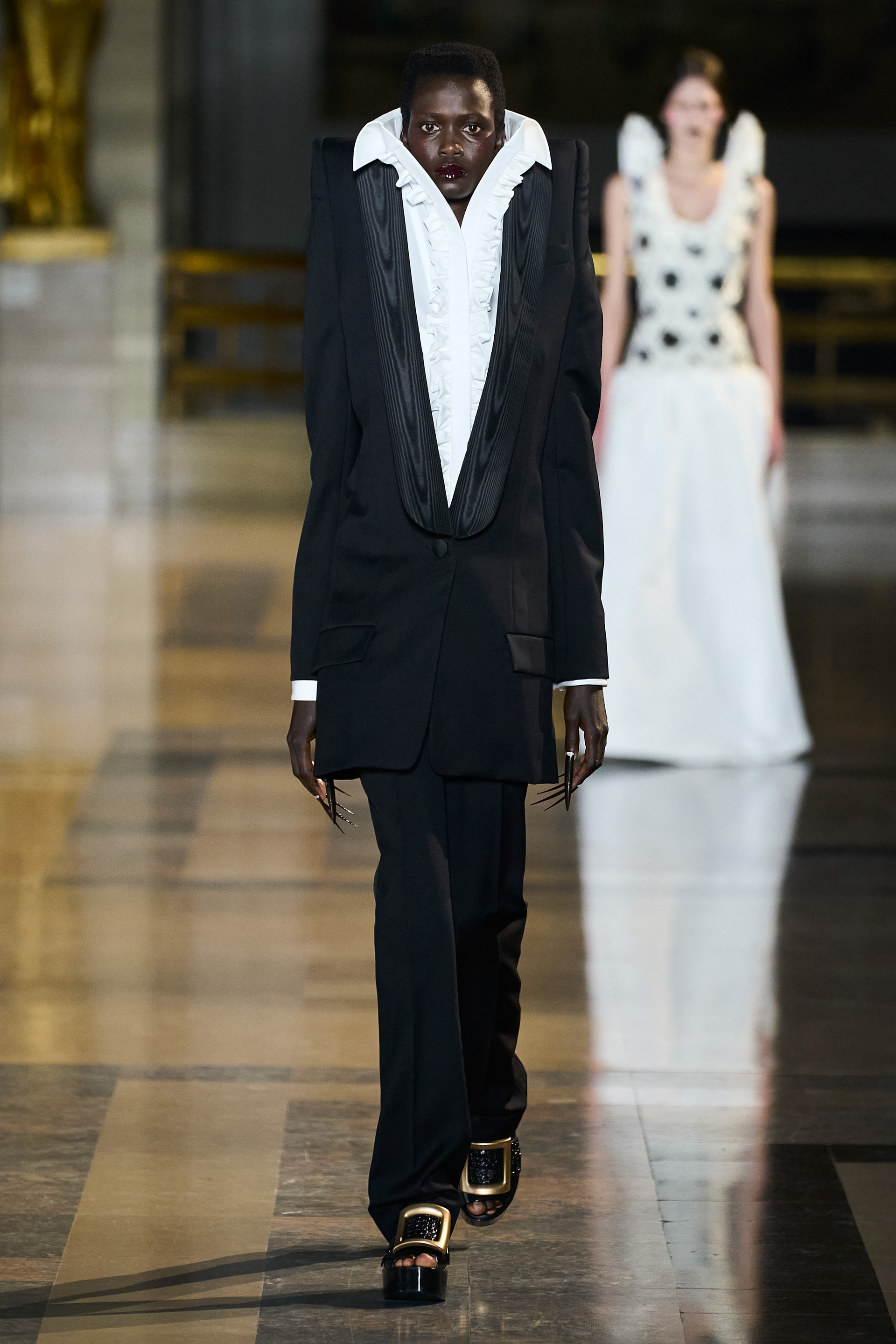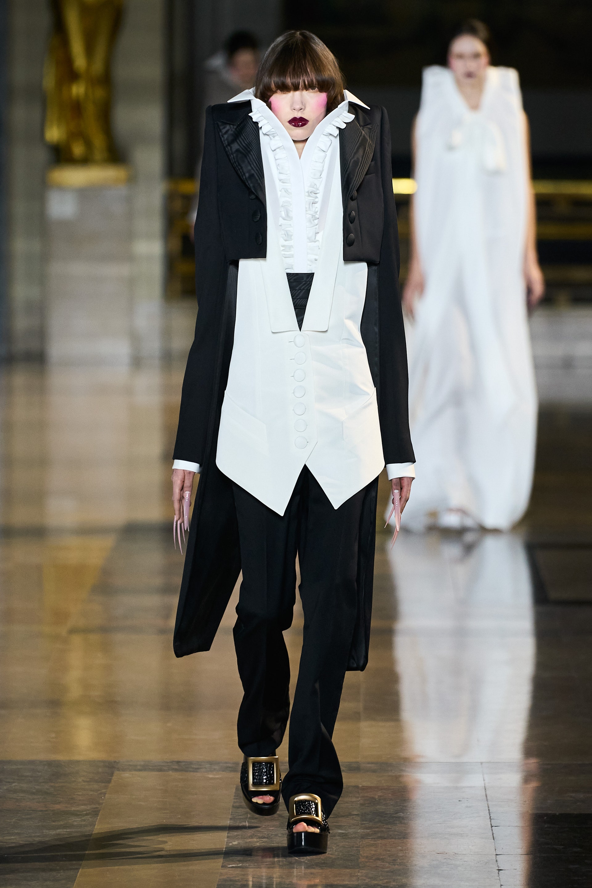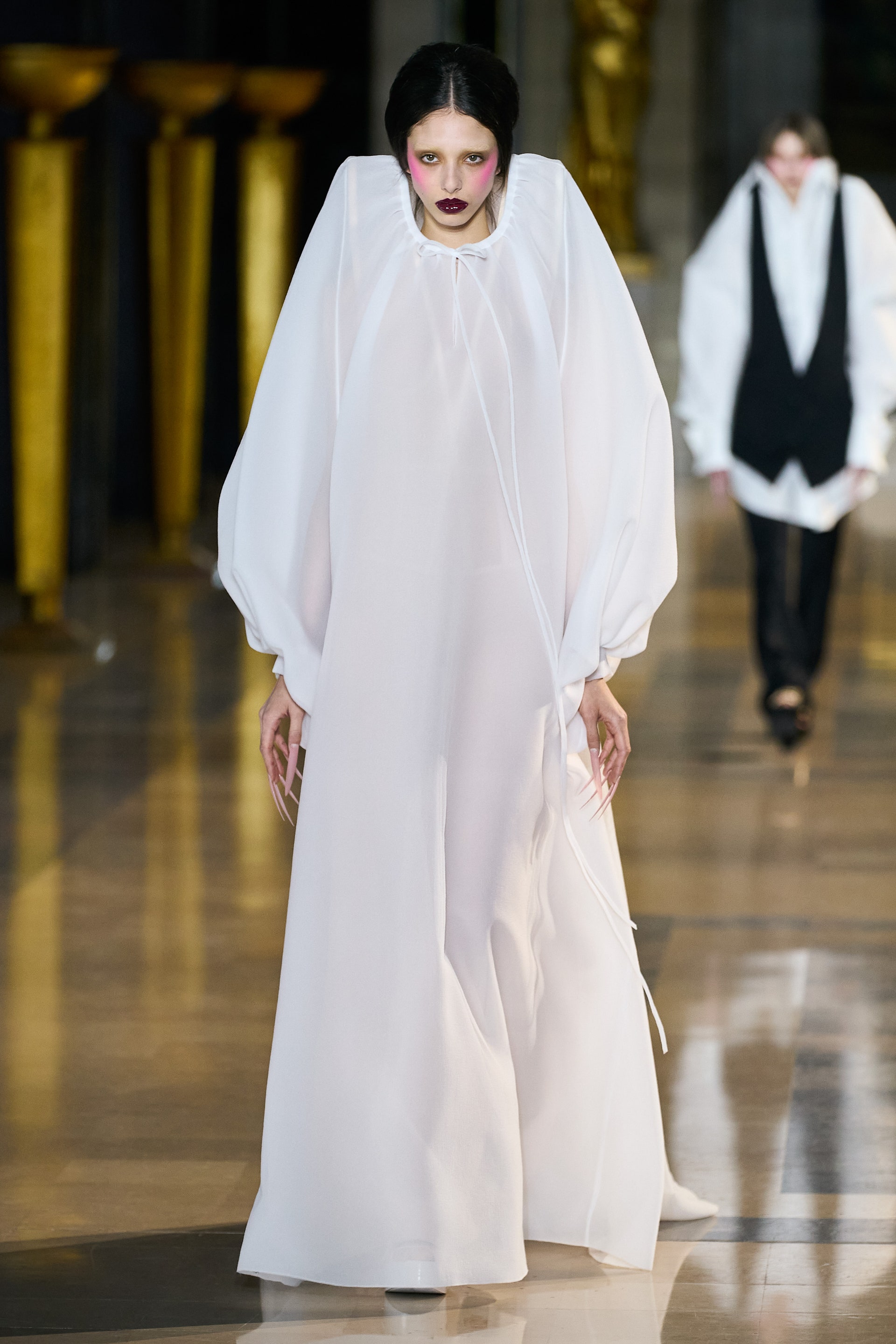 Виктор Хорстинг и Рольф Снорен обошлись без надписей и обилия блестящей мишуры и показали брючные костюмы, платья с белоснежными воротами, серые тренчи и классические блузы с бантами. С поправкой лишь на то, что каждый образ в коллекции имеет необычайно вытянутые пропорции, трансформирующие тело в нечто пугающее и гротескное. Однако именно этого и добивались дизайнеры, выбирая источником вдохновения старые голливудские фильмы о вампирах.