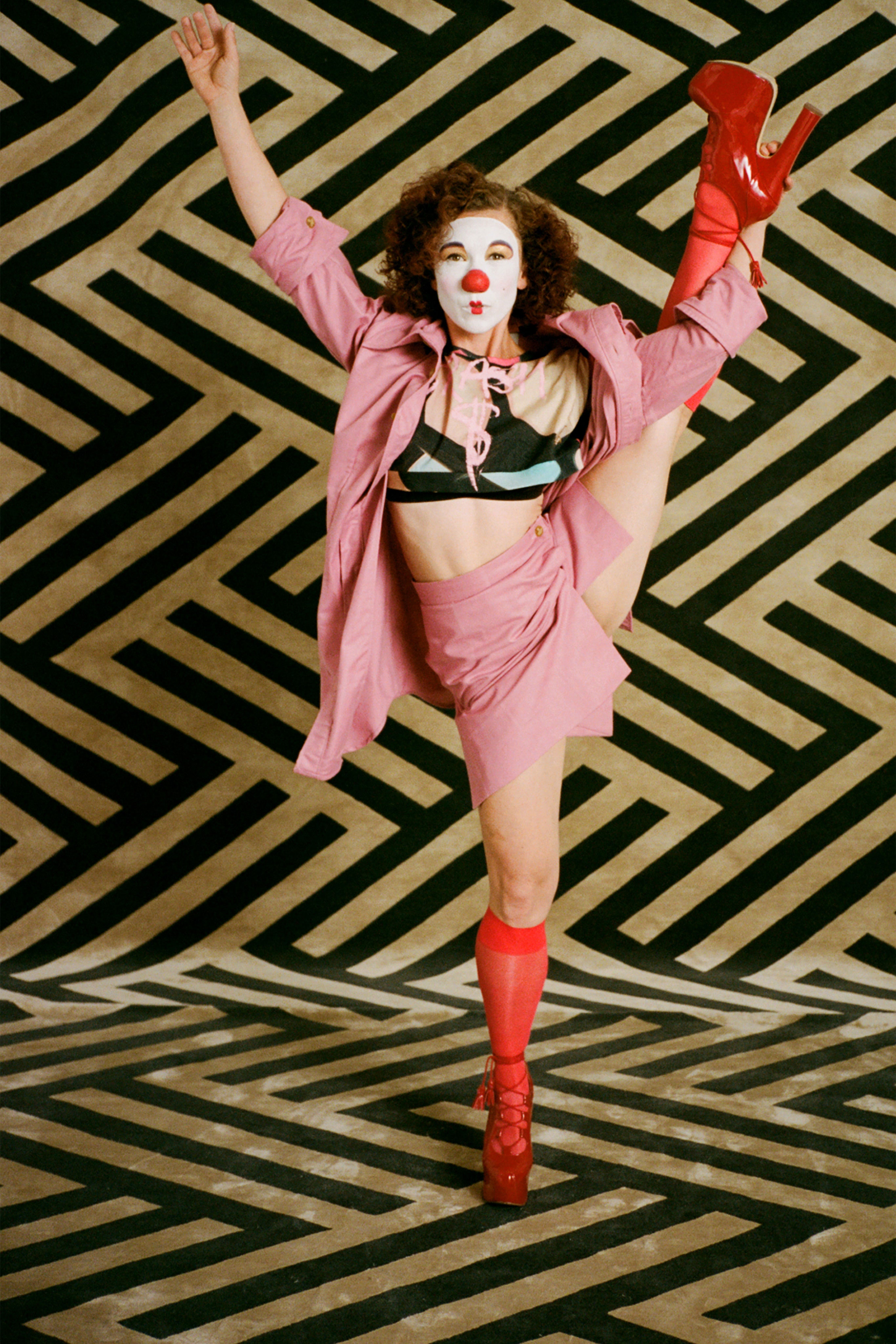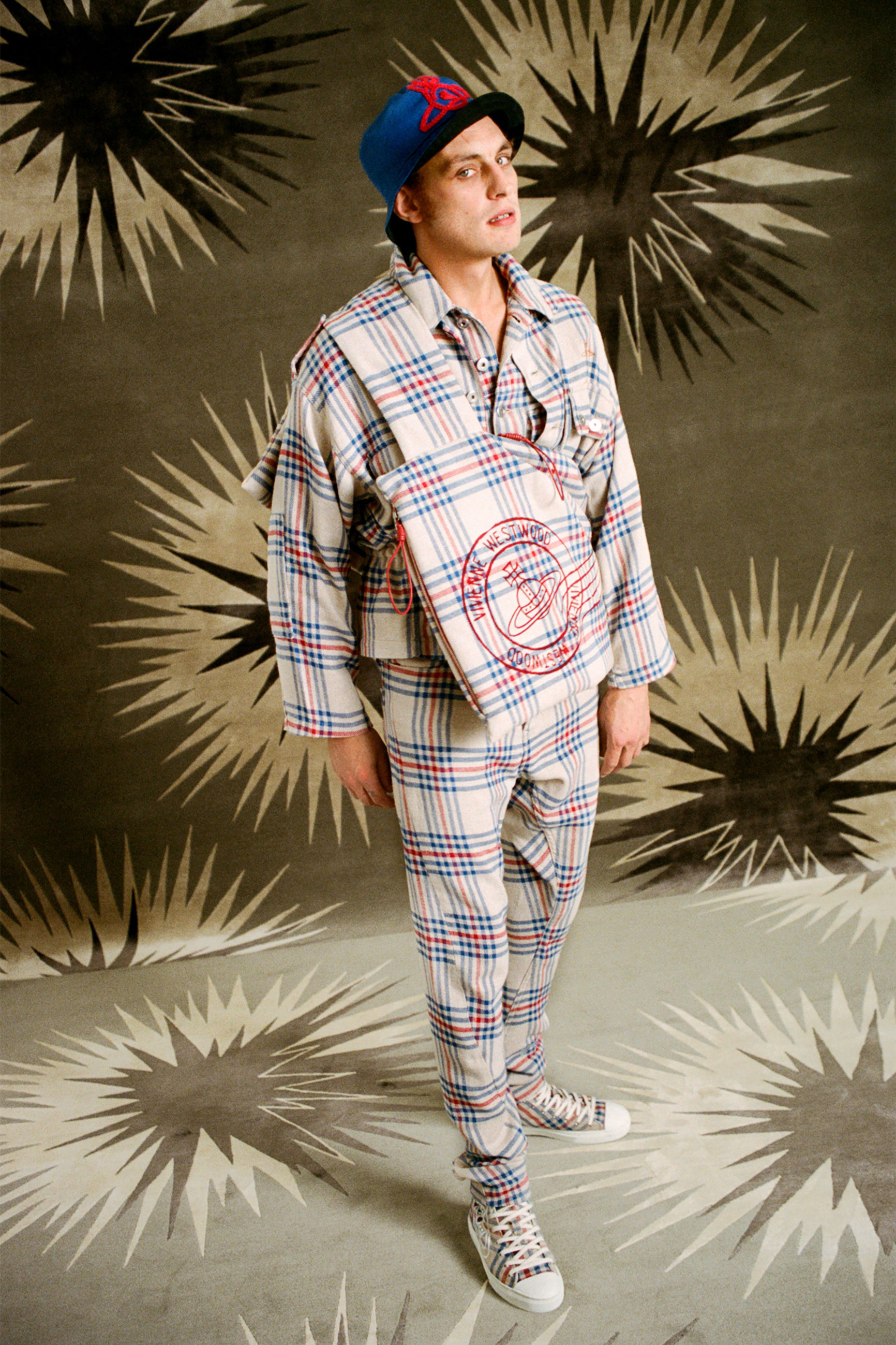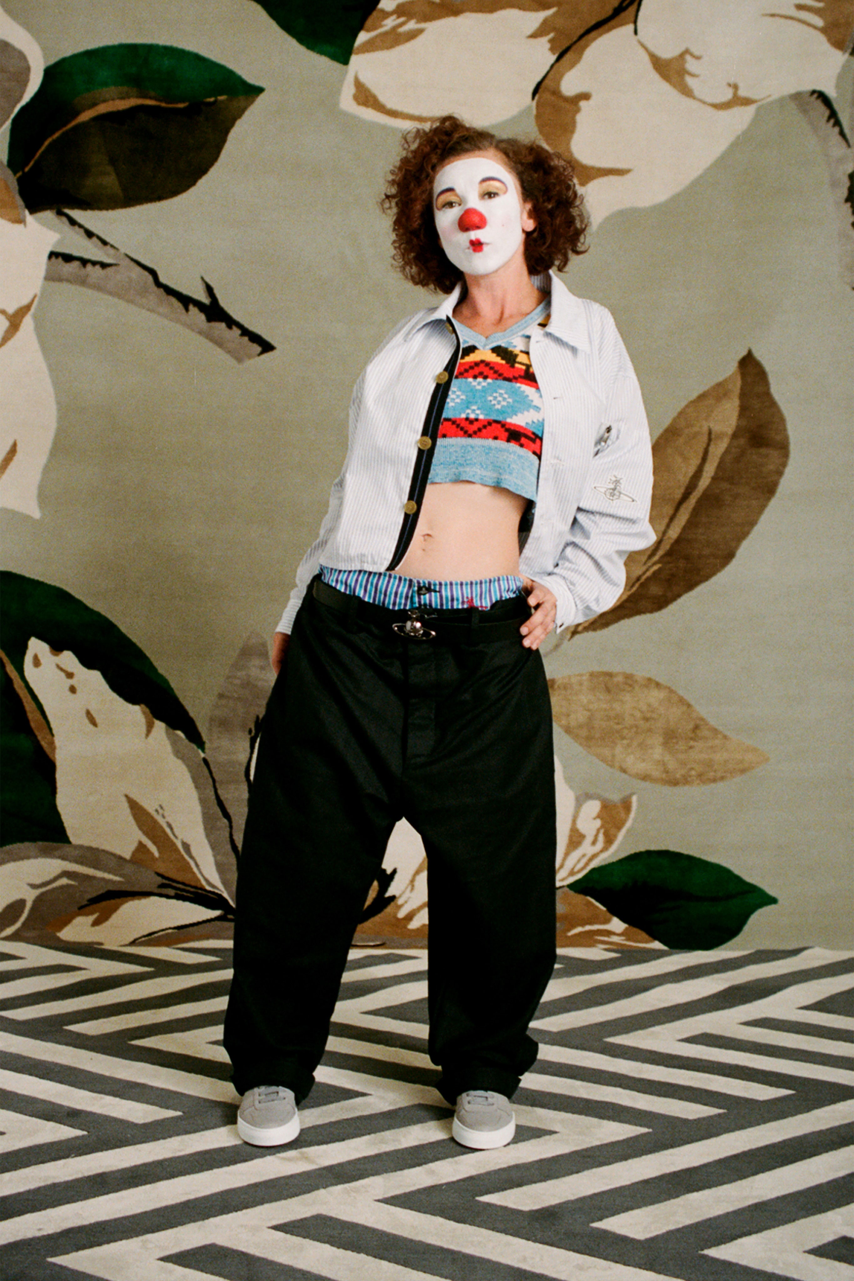 В лукбуке новой коллекции Vivienne Westwood женщины в пёстрых, будто в хмельном кураже надетых вещах позируют вместе с мужчинами в элегантных костюмах и платьях. Акробаты с цирковым гримом на лицах демонстрируют трюки в розовых и алых костюмах, а кое-кто и в вечернем платье. Традиционно в модном балагане от Vivienne Westwood нашлось место лондонским панк-денди в клетчатых костюмах с галстуками из шелка и жаккарда, фрейлинам в корсетах и полосатых чулках.