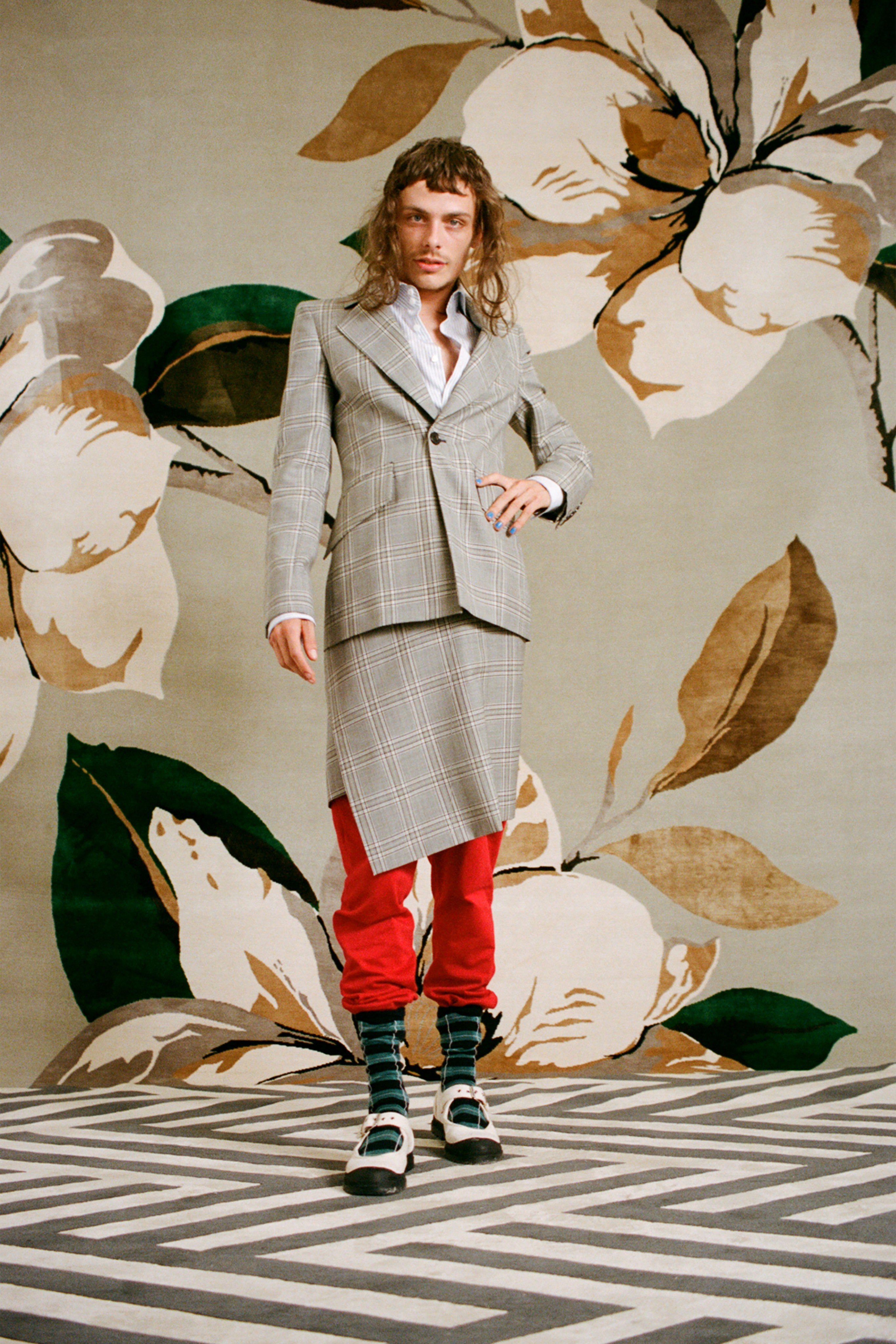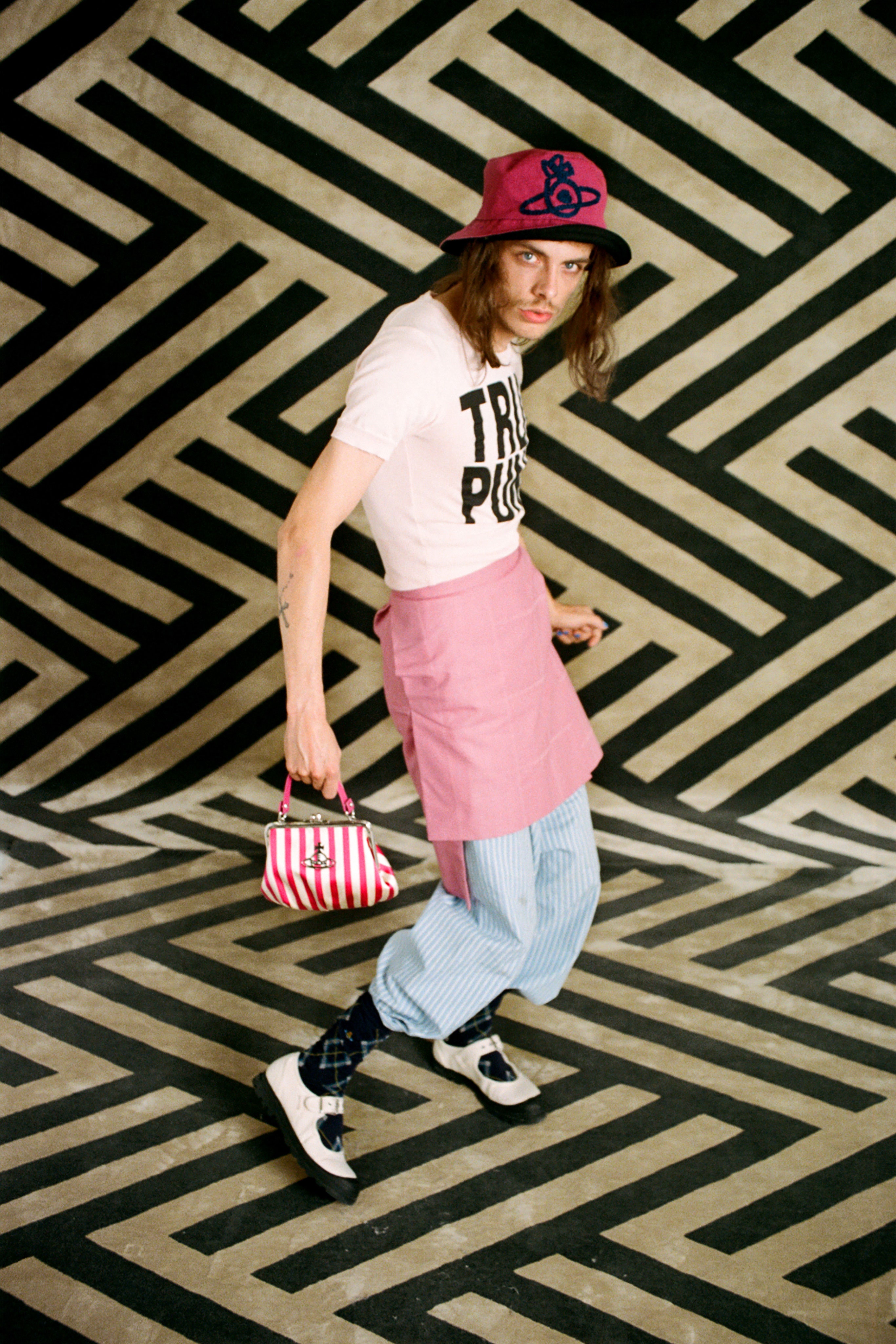 Будущей весной дизайнеры бренда – сама Вивьен и Андреас Кронталлер – предлагают носить разноцветные шапочки, дополнять мужские брючные костюмы жеманными сумочками, а под костюм с юбкой надевать яркие брюки. Многие из нас в детстве любили перетряхивать родительские шкафы, чтобы нарядиться в самые немыслимые образы. Настало время делать это осознанно.