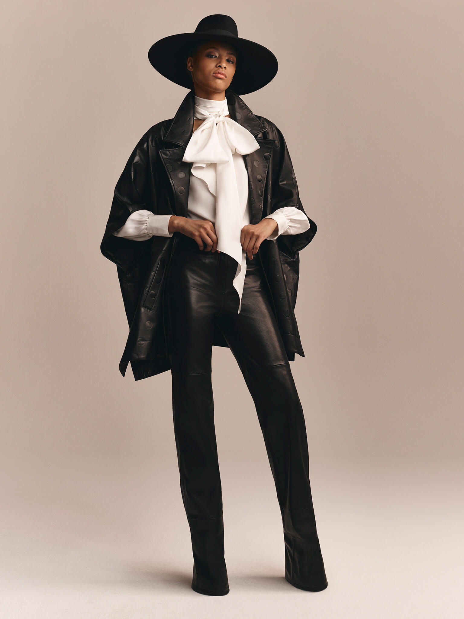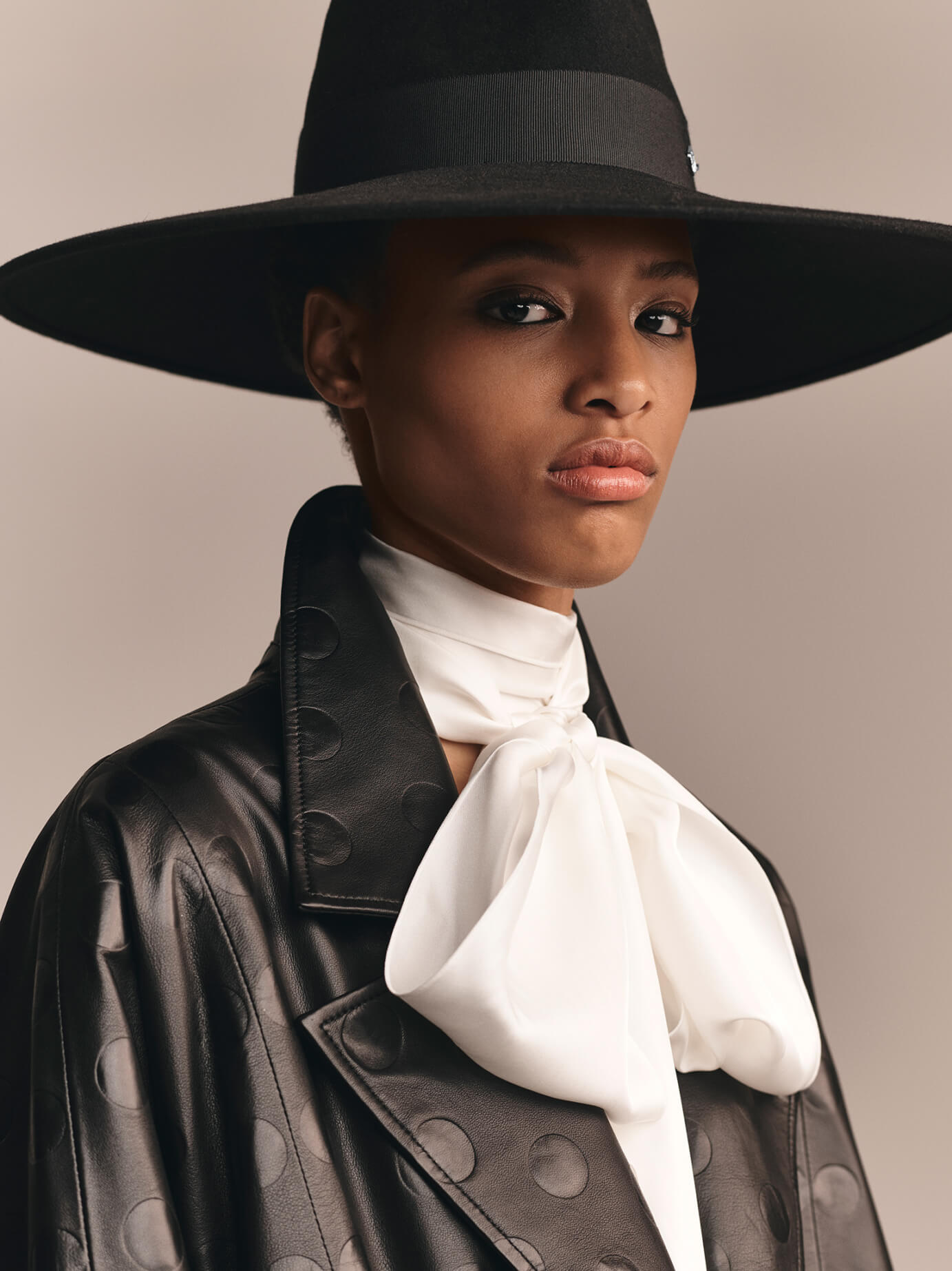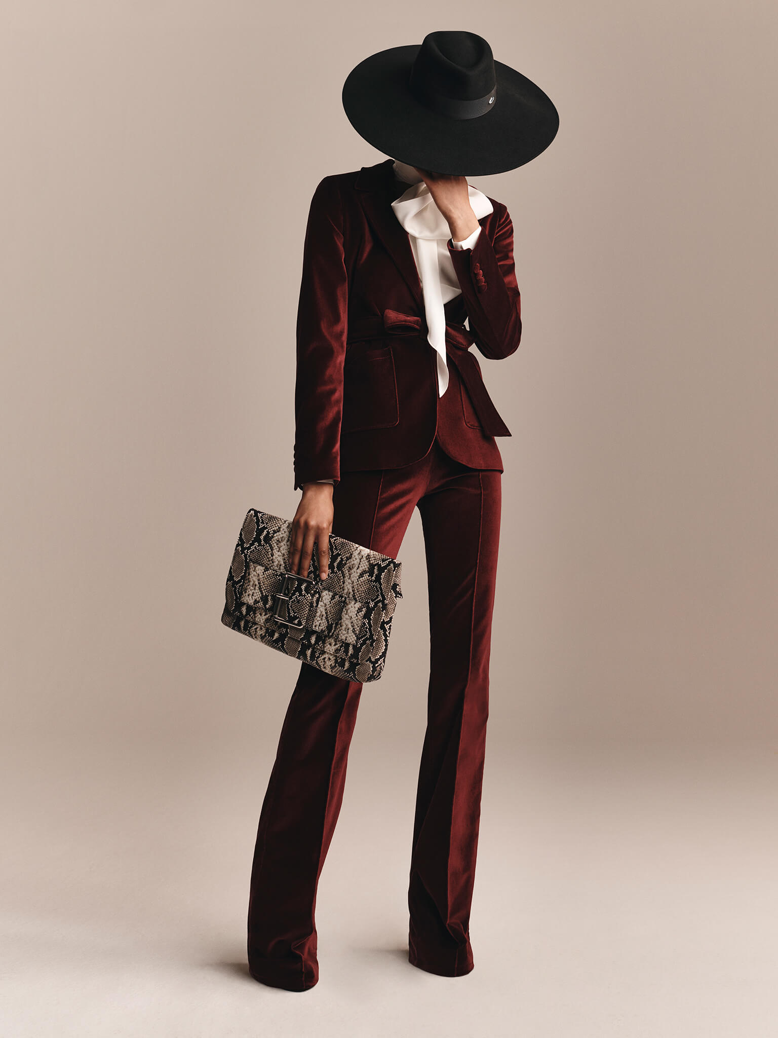 В лукбуке TommyXZendaya представлены широкие брюки, платья, костюмы, пальто и плащи, а также яркие аксессуары и несколько шляп. Коллекция выполнена в белом, черном, сером и бордовом цветах, некоторые вещи сделаны из кожи, искусственного меха, бархата и украшены отделкой из серебристого металла.