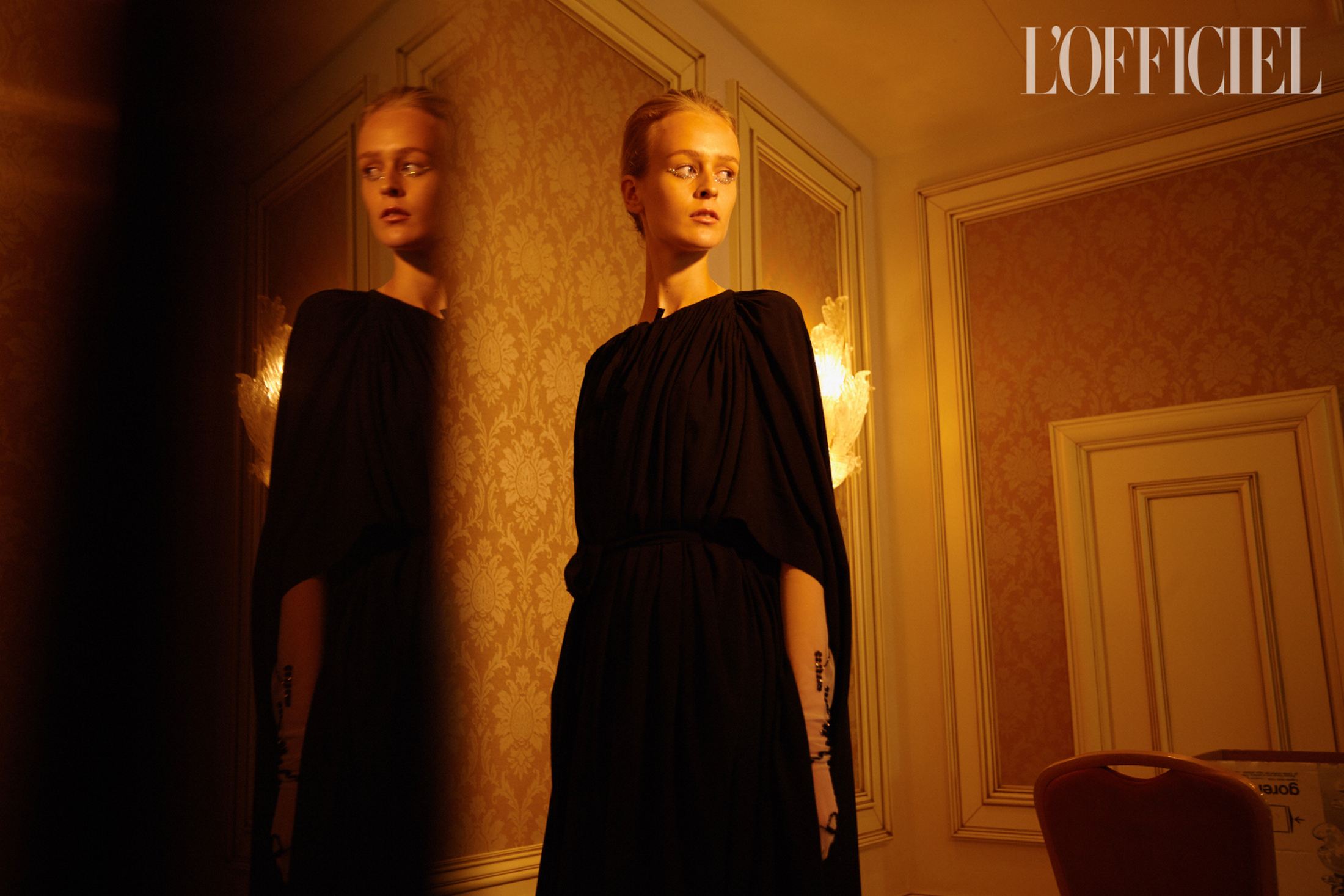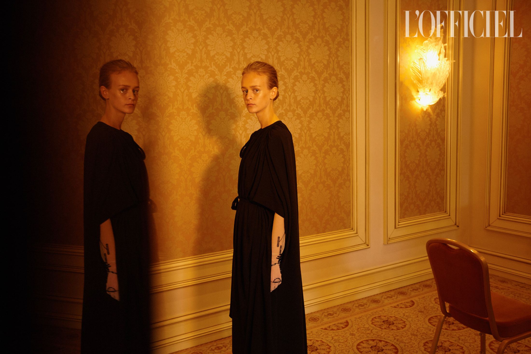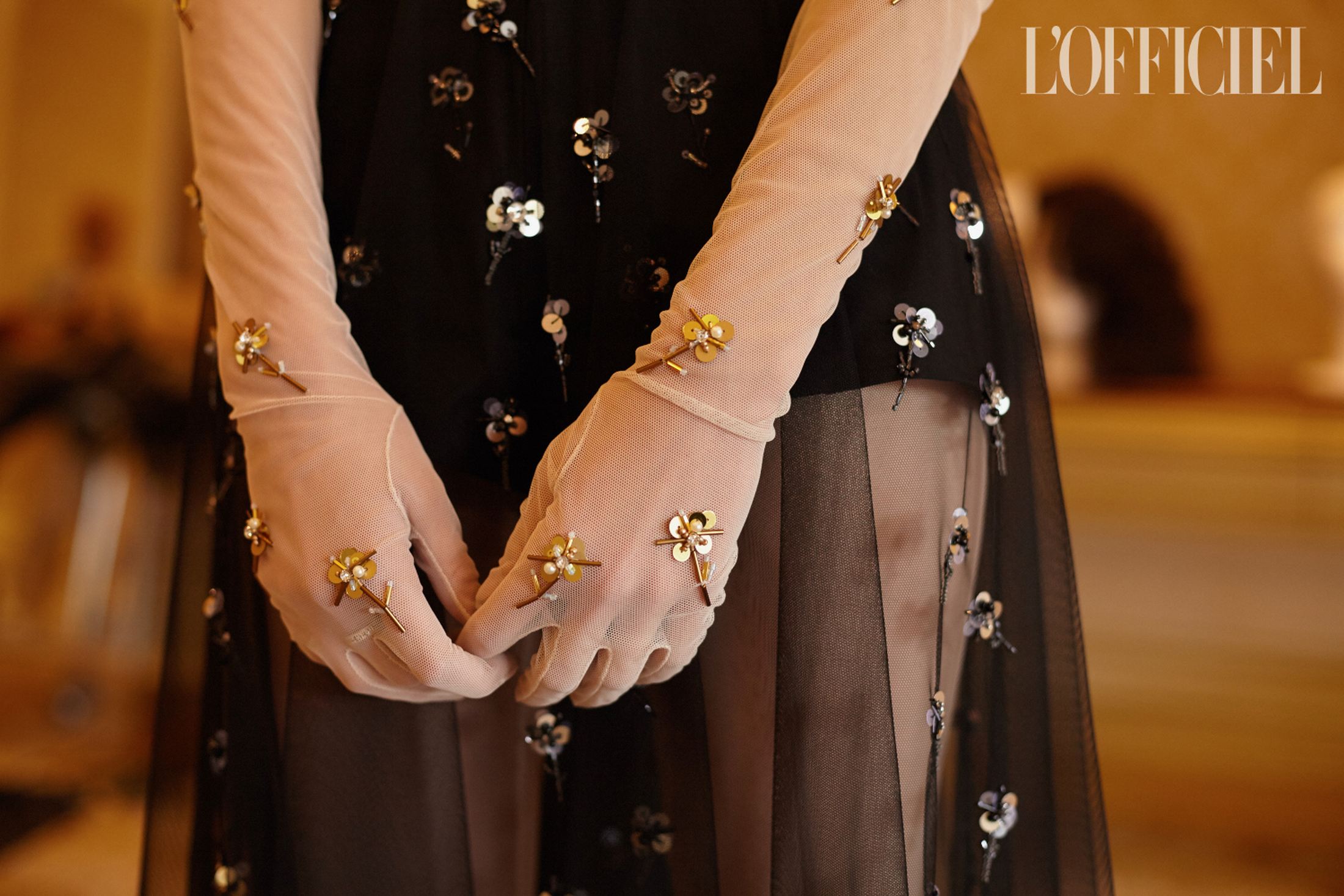 Крошечные цветы червоной руты — прямая отсылка к названию фильма — появляются не только на силуэтных платьях и невесомых юбках, но и на тонких длинных перчатках, и даже на шифоновых рейтузах. Флора здесь так же символична, как и красный цвет, без которого не обходится ни один показ дизайнера, — ведь эта коллекция о любви.