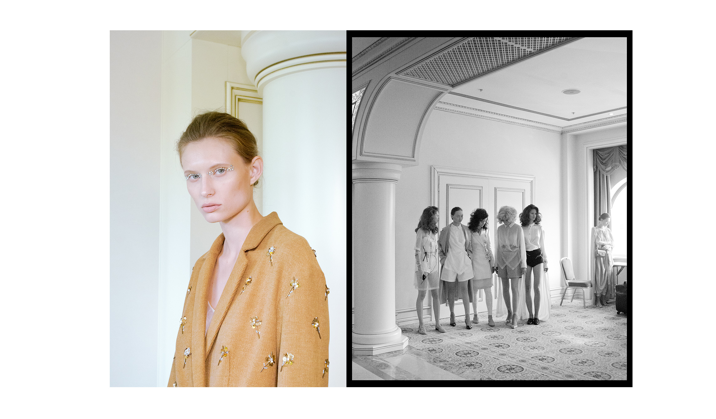 География весенне-летней коллекции ArtemKlimchuk начинается у металлургических заводов и угольных шахт на востоке Украины и тянется белоснежной вышивкой и черными россыпями бисера к диким лесам и холодным горам Карпат. И все это неслучайно: по такому же маршруту бежит поезд "Донецк — Верховина" в фильме "Червона рута" 1971 года, который послужил лейтмотивом коллекции. Артем Климчук рассказывает историю о встрече парня с Донбасса и девушки с Буковины — противоположностей, которым посчастливилось встретиться в одном месте.