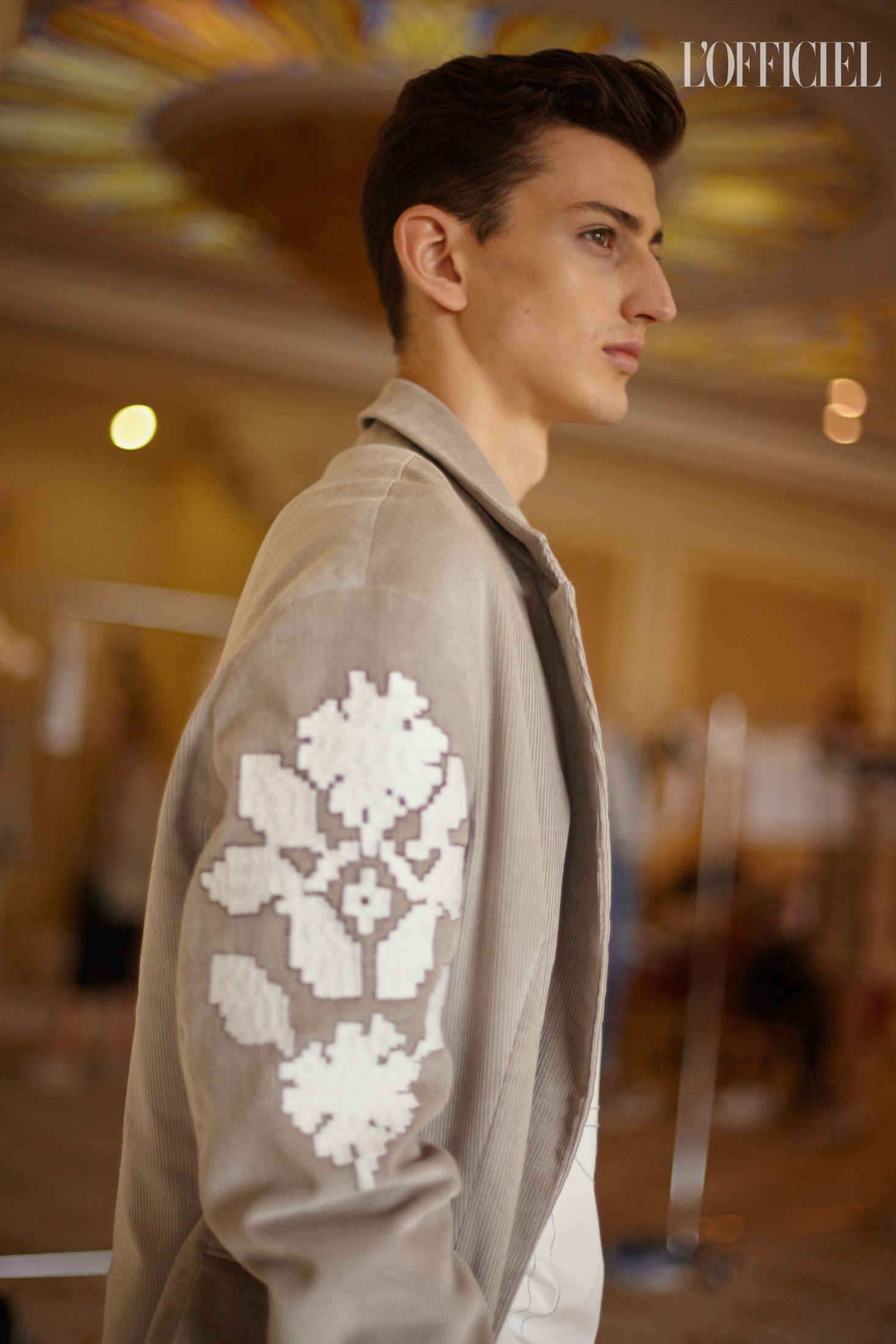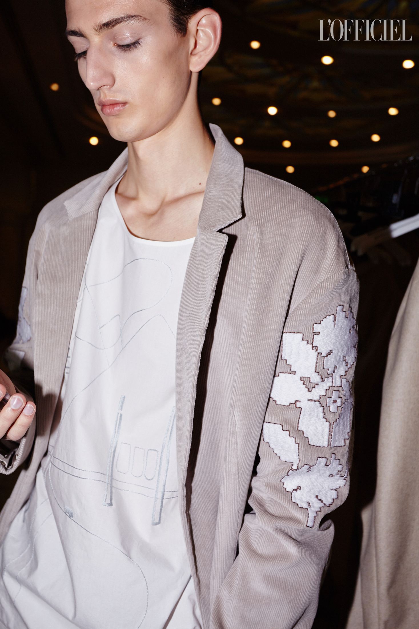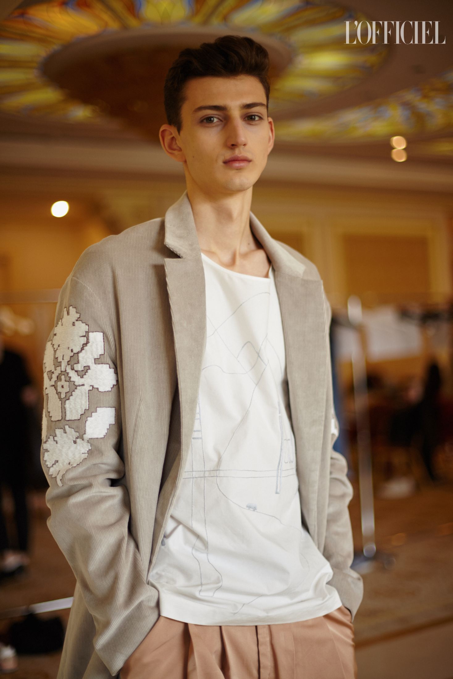 Показ Артема Климчука, который прошел в отеле Fairmont, открыл парень — модель Даня Фесенко — в хлопковых шортах, белой футболке и кардигане. Согласитесь, как для женского демикутюрного бренда, с одной стороны, и дизайнера, восхваляющего женственность, с другой, — это как минимум необычно. Впрочем, равно как и один из мотивов коллекции Артема — схематизированные пейзажи Восточной Украины, напоминающие технические чертежи и карты. Можно утверждать, что в этом и заключается талант Артема — романтизировать даже то, что кажется очень далеким от мечтаний. И если раньше мы читали письма с потекшими чернилами, танцевали юными на дискотеках и открывали заново старый Киев, то в новой коллекции через контраст урбанистики и природы мы наблюдаем историю любви.