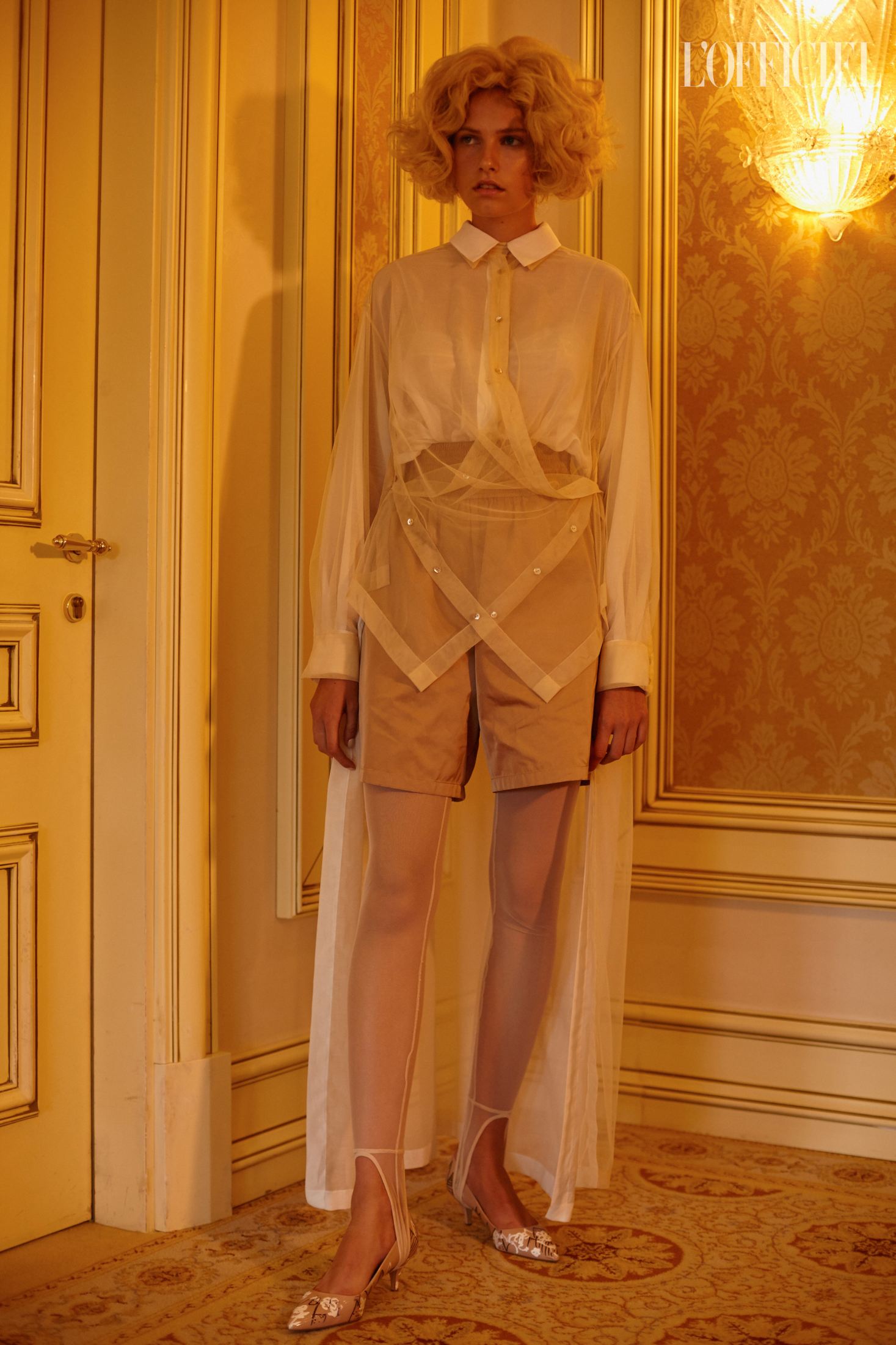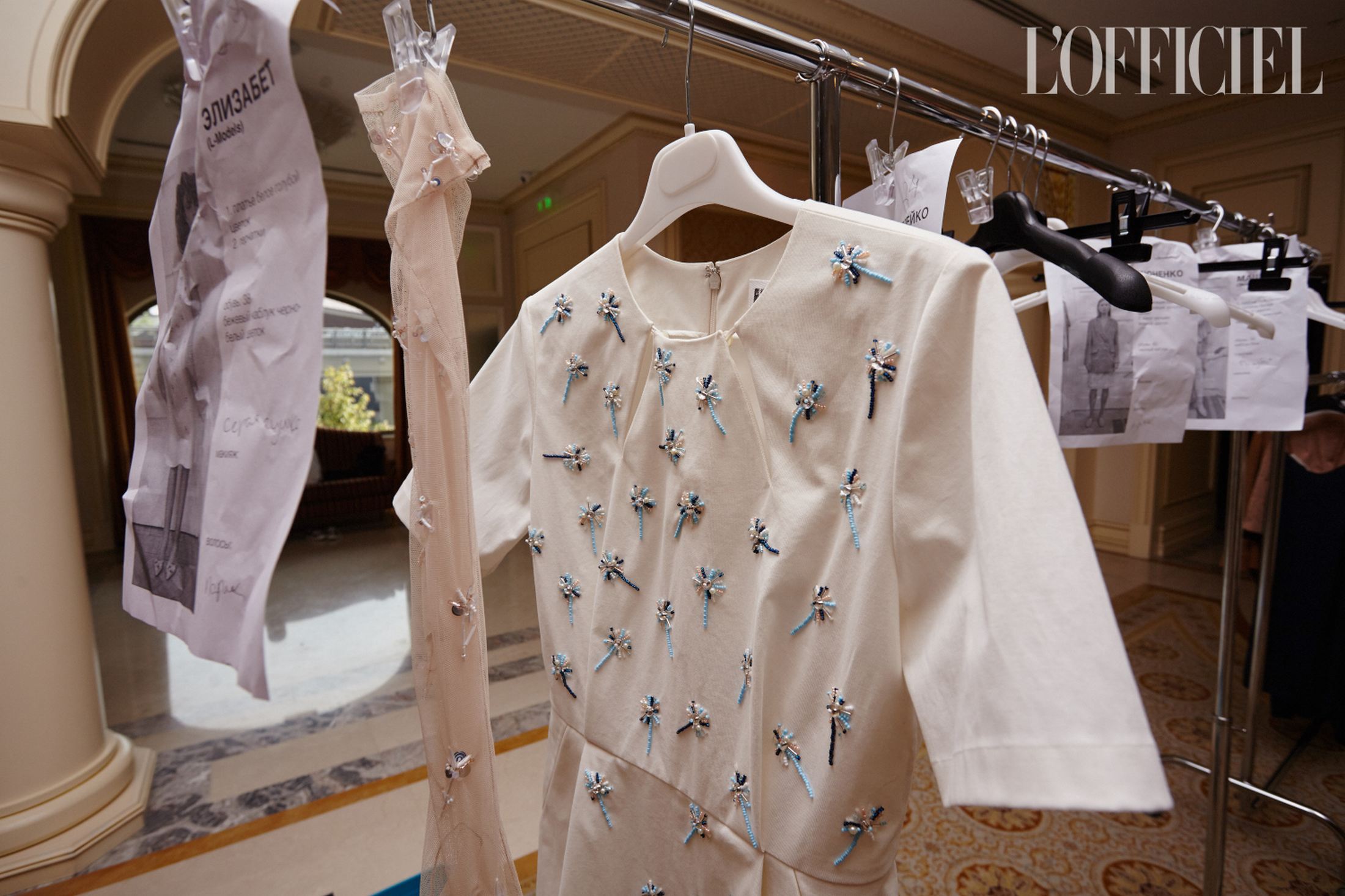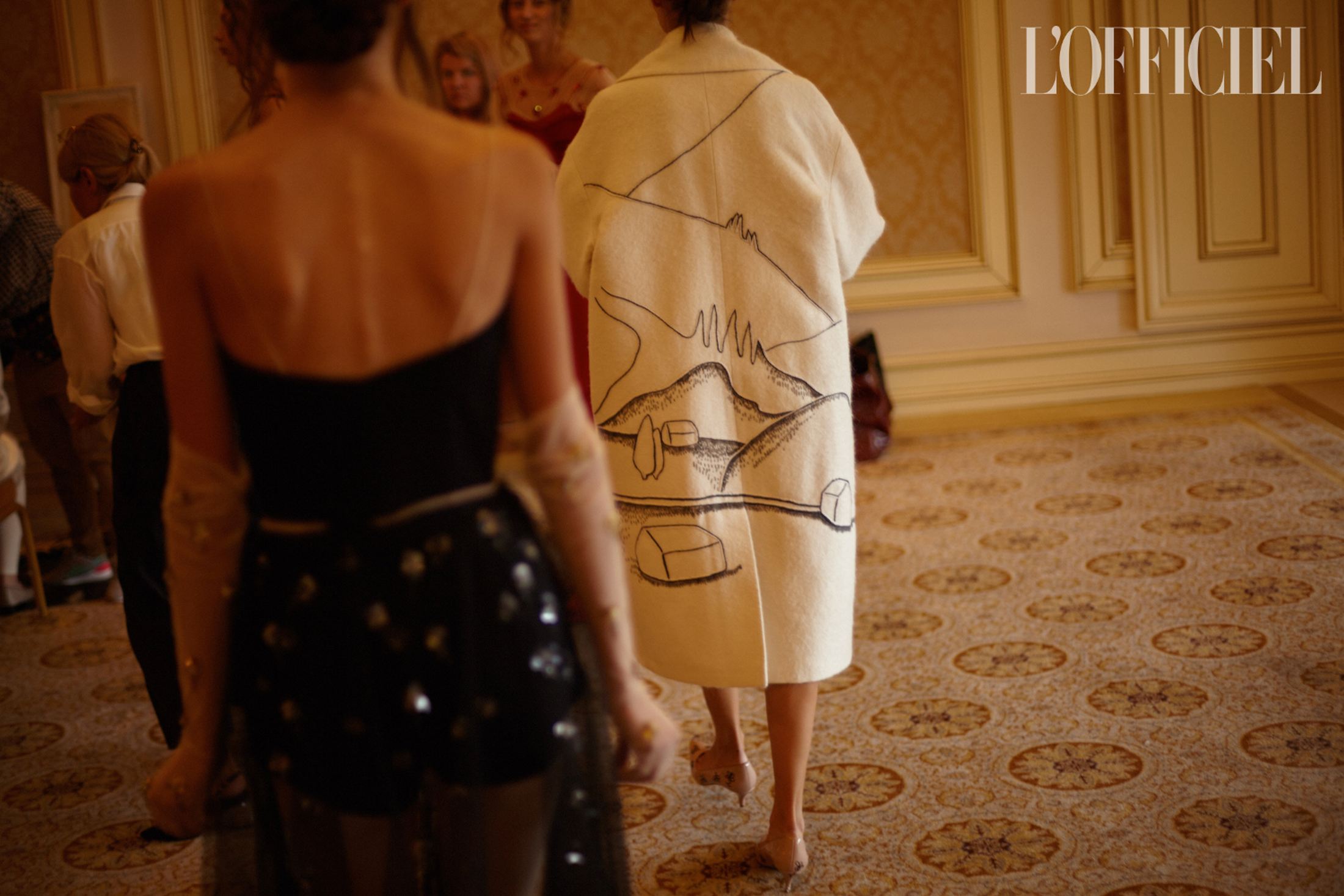 Показ Артема Климчука, который прошел в отеле Fairmont, открыл парень — модель Даня Фесенко — в хлопковых шортах, белой футболке и кардигане. Согласитесь, как для женского демикутюрного бренда, с одной стороны, и дизайнера, восхваляющего женственность, с другой, — это как минимум необычно. Впрочем, равно как и один из мотивов коллекции Артема — схематизированные пейзажи Восточной Украины, напоминающие технические чертежи и карты. Можно утверждать, что в этом и заключается талант Артема — романтизировать даже то, что кажется очень далеким от мечтаний. И если раньше мы читали письма с потекшими чернилами, танцевали юными на дискотеках и открывали заново старый Киев, то в новой коллекции через контраст урбанистики и природы мы наблюдаем историю любви.