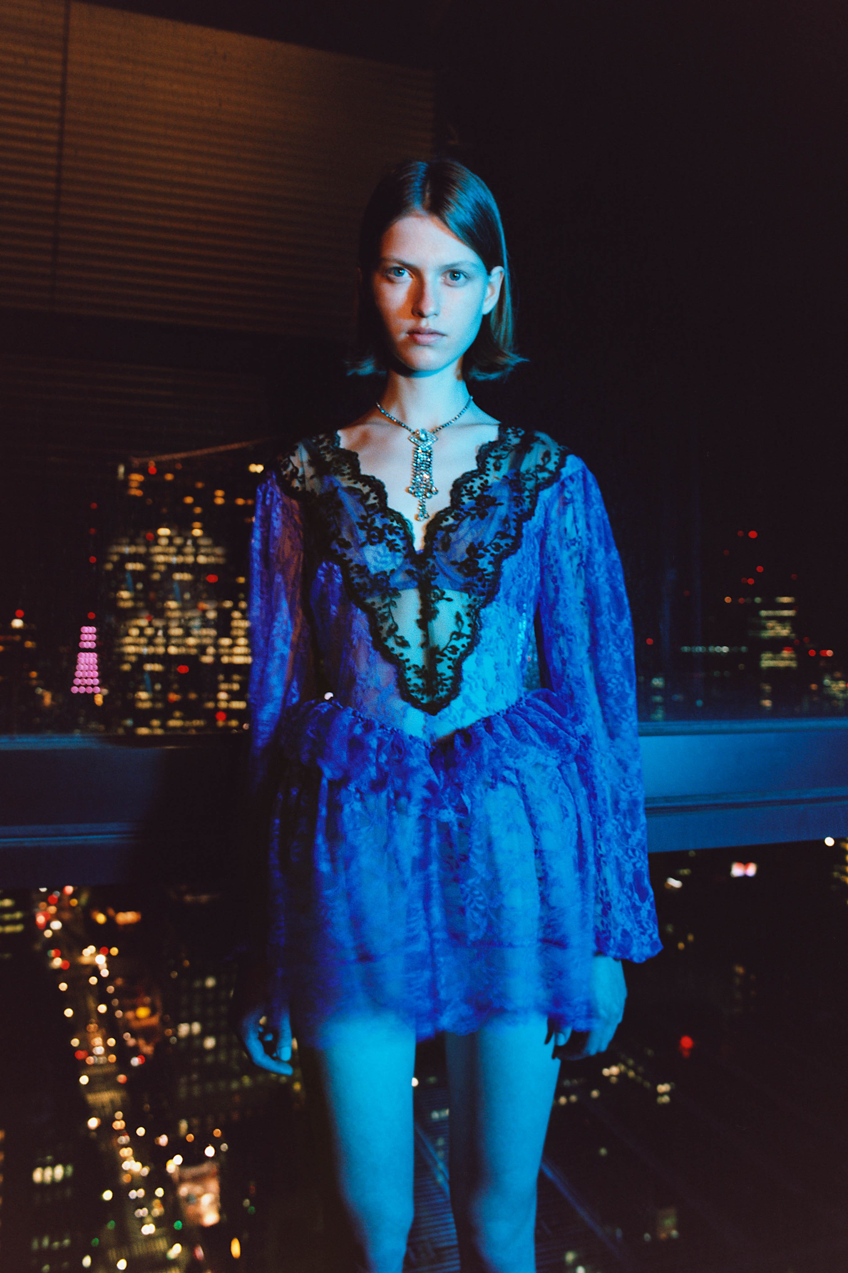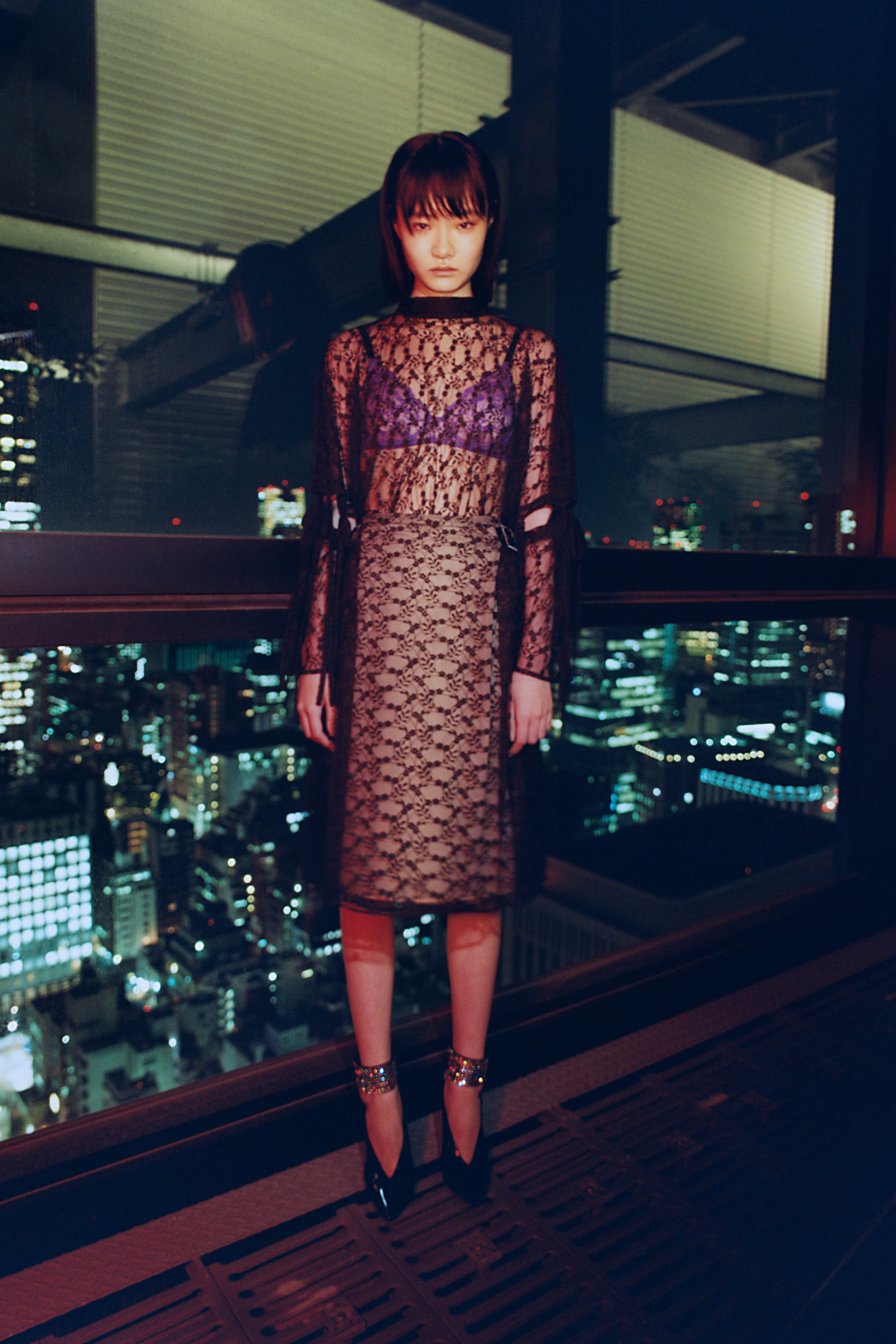 Новая коллекция Кристофера Кейна рассказывает о ночной жизни Токио: яркой, активной и с неприкрытой эротикой, которая проявляется в прозрачных юбках, обрезках кружев и черной коже. По словам дизайнера, для него этот город — бесконечный источник вдохновения. "Мы сняли лукбук спонтанно, во время рабочей поездки в Токио. Я подумал, это будет приятный сюрприз, — говорит дизайнер. — И я влюбился в этот городской пейзаж".